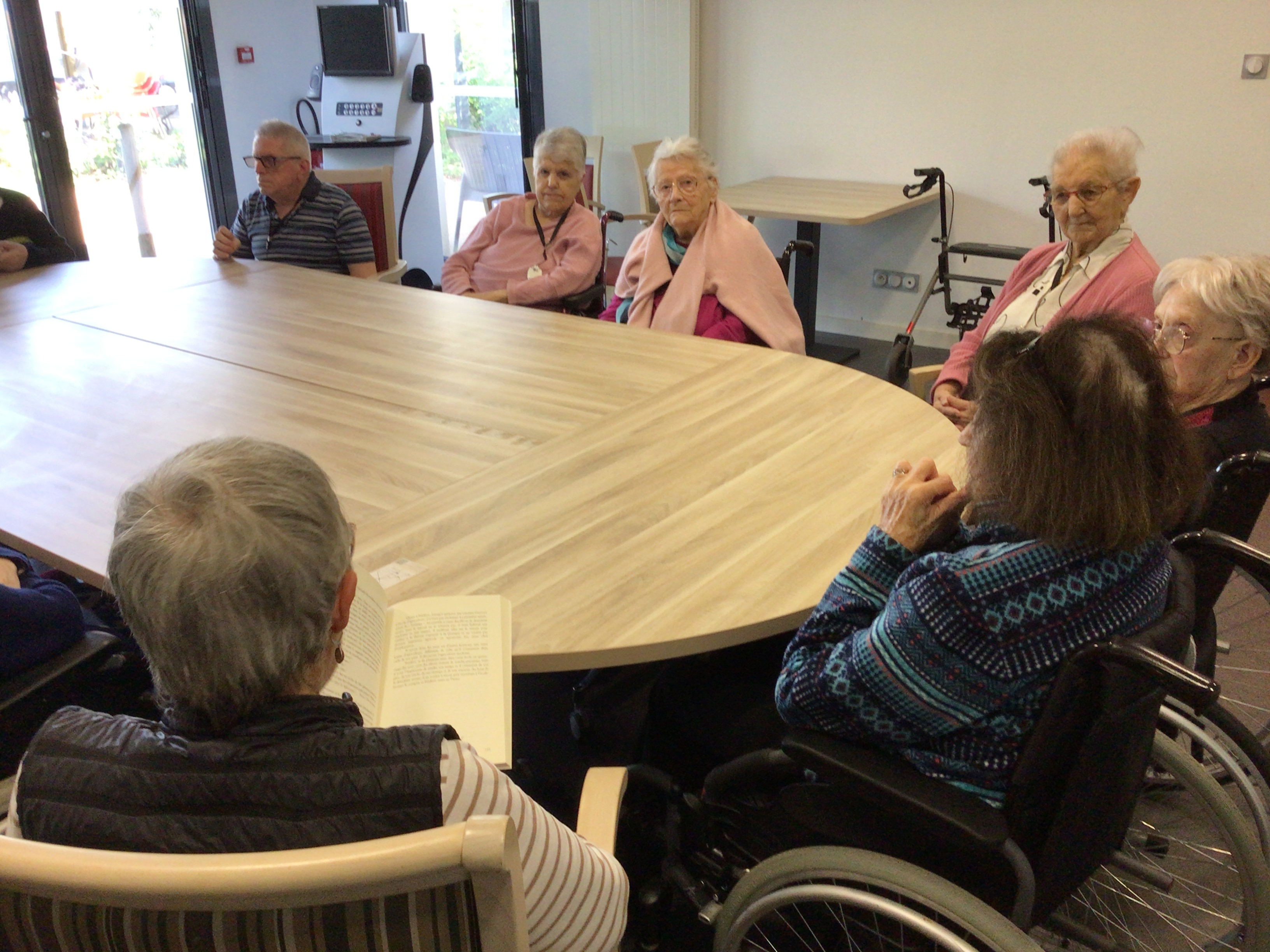 Reprise de l'atelier "Lecture à haute voix" ce matin, avec les bénévoles qui avaient pour l'occasion trouver de nouvelles lectures pour les résidents qui étaient présents.
