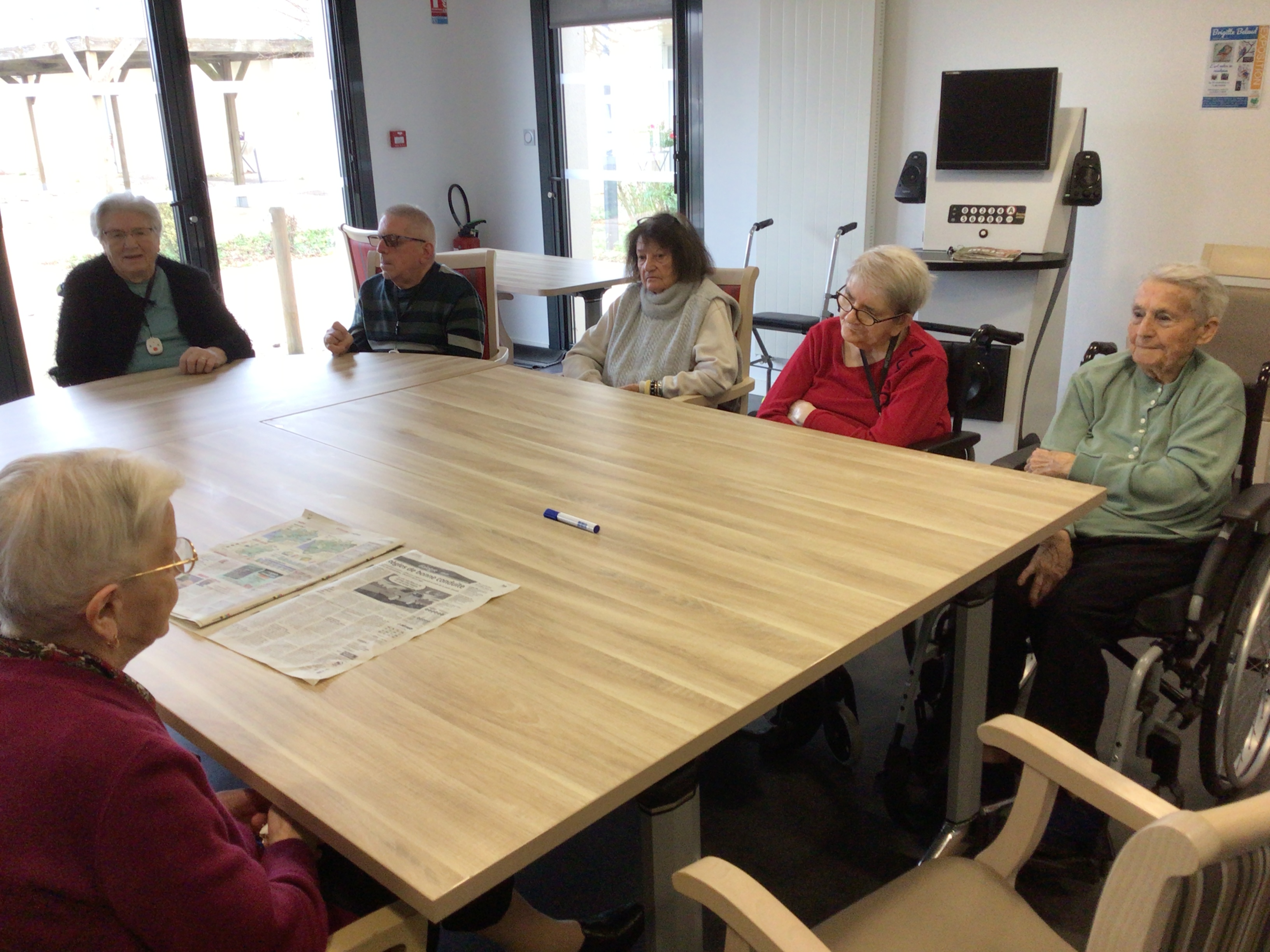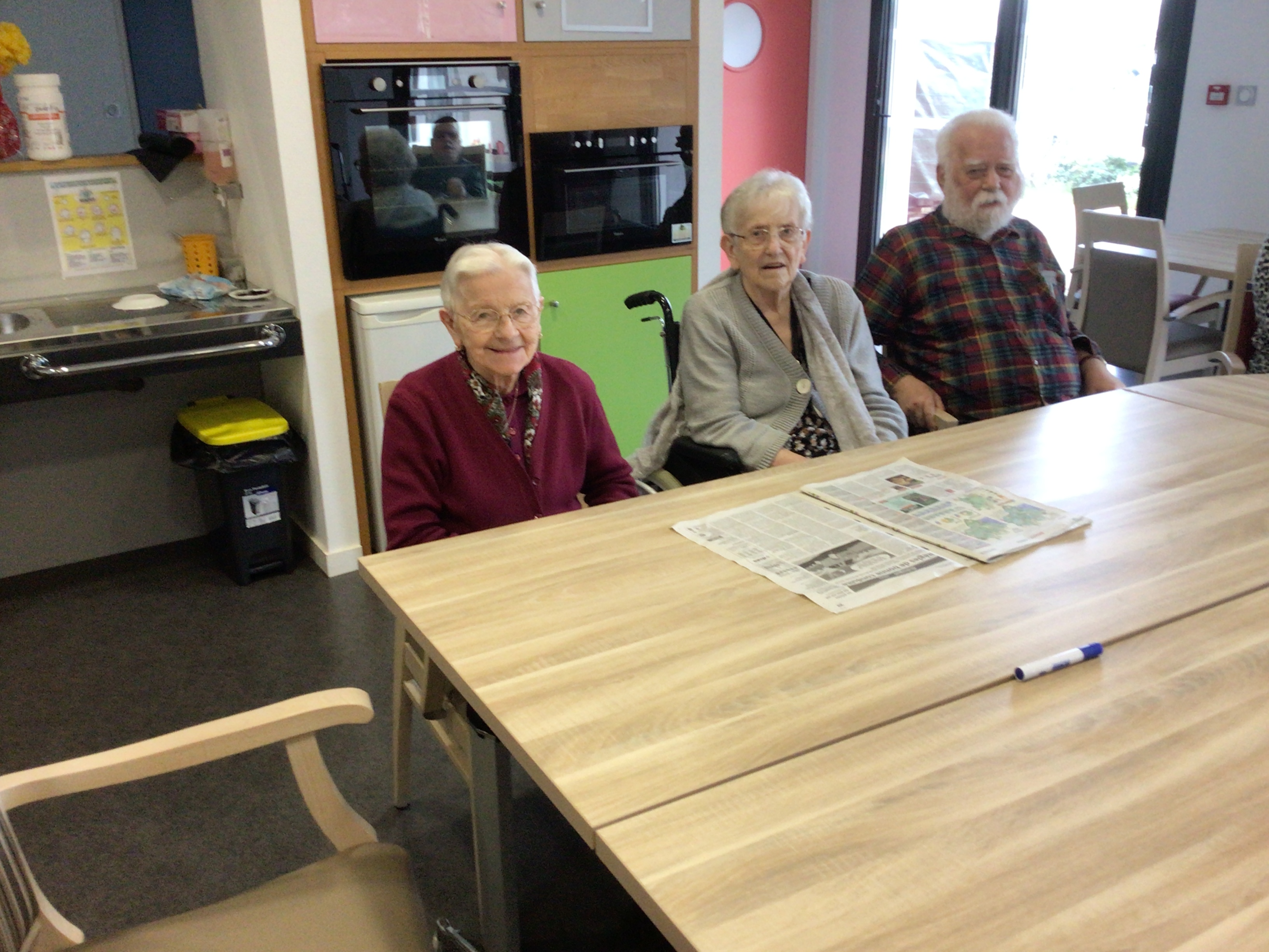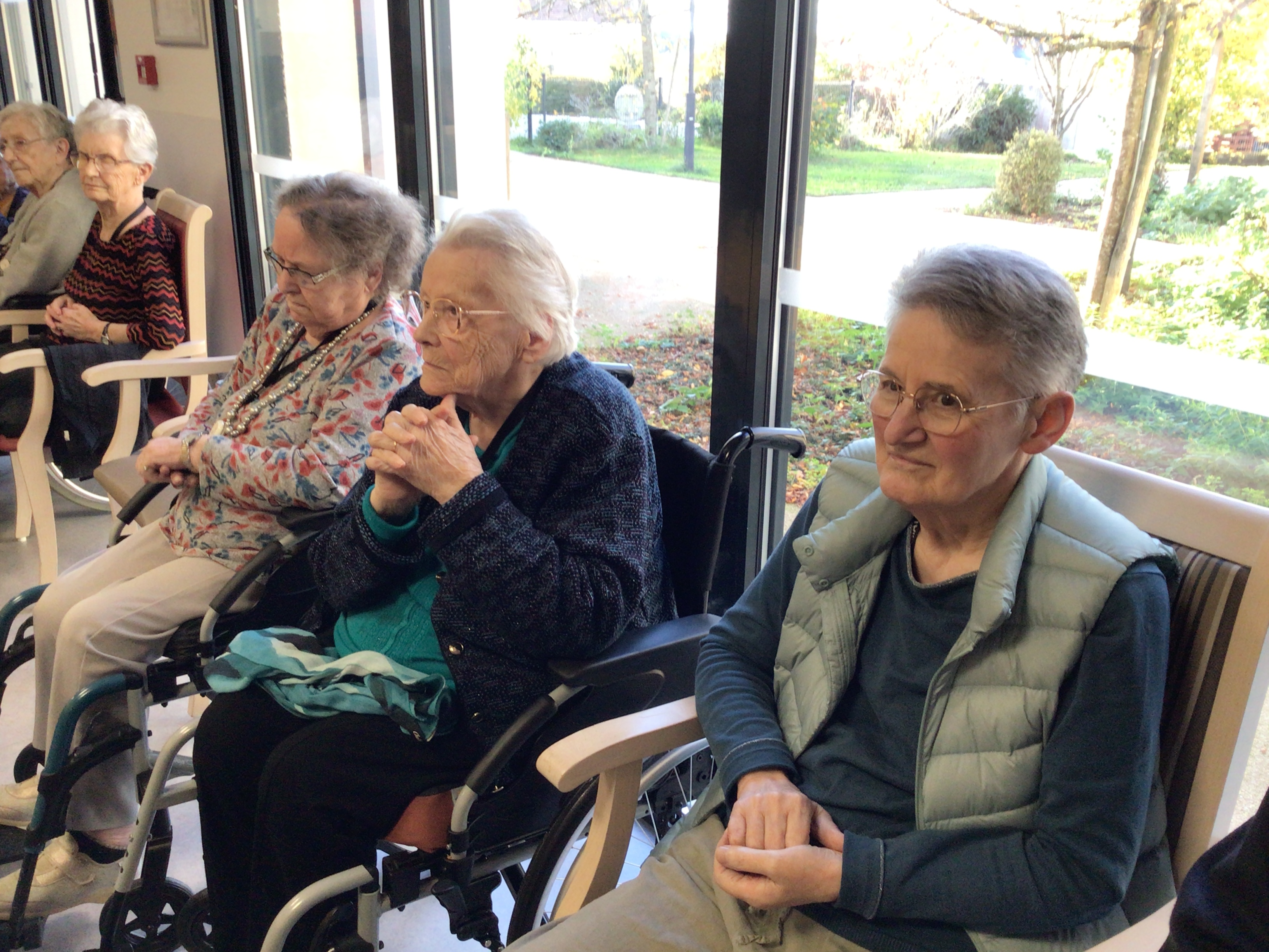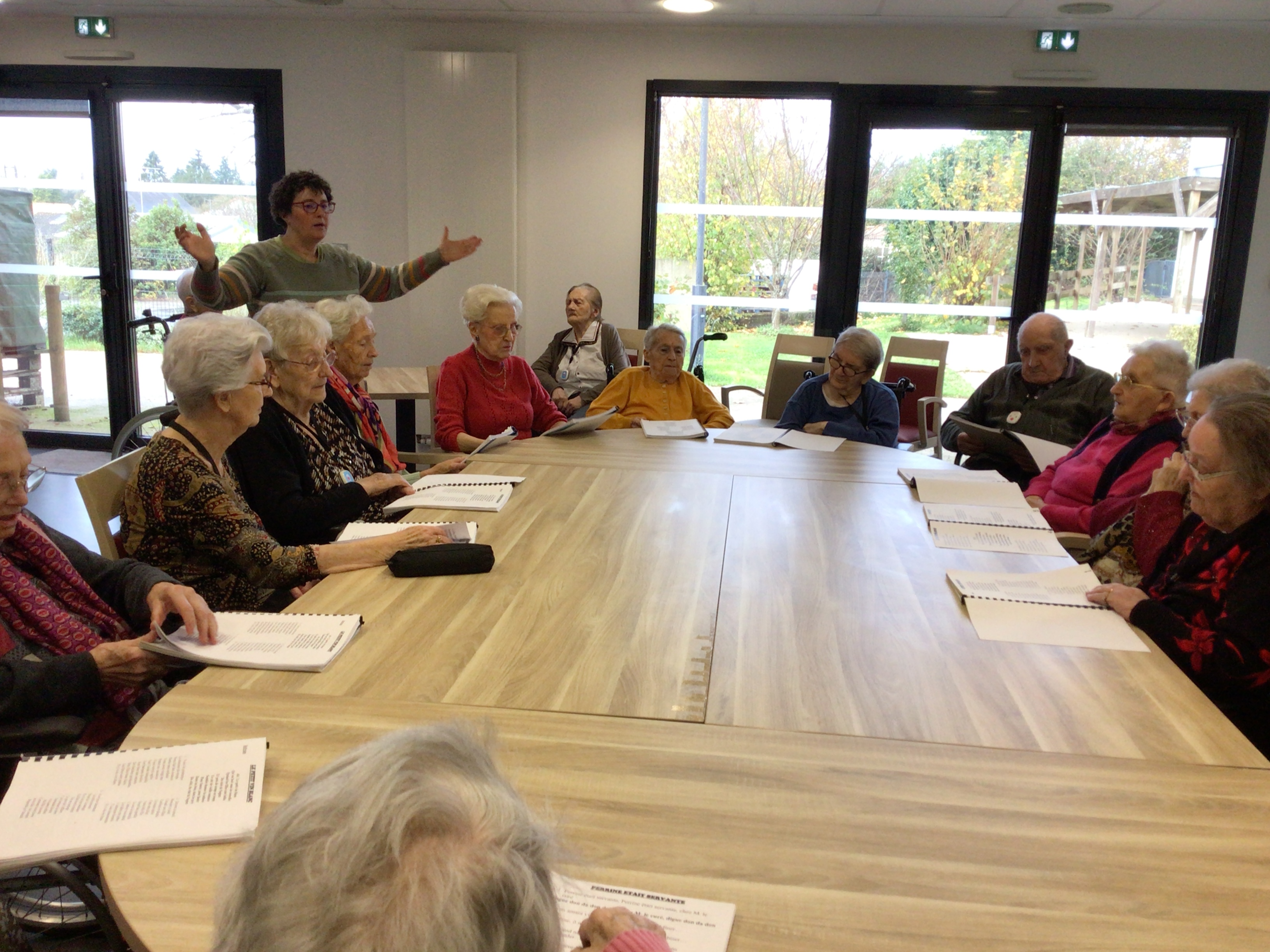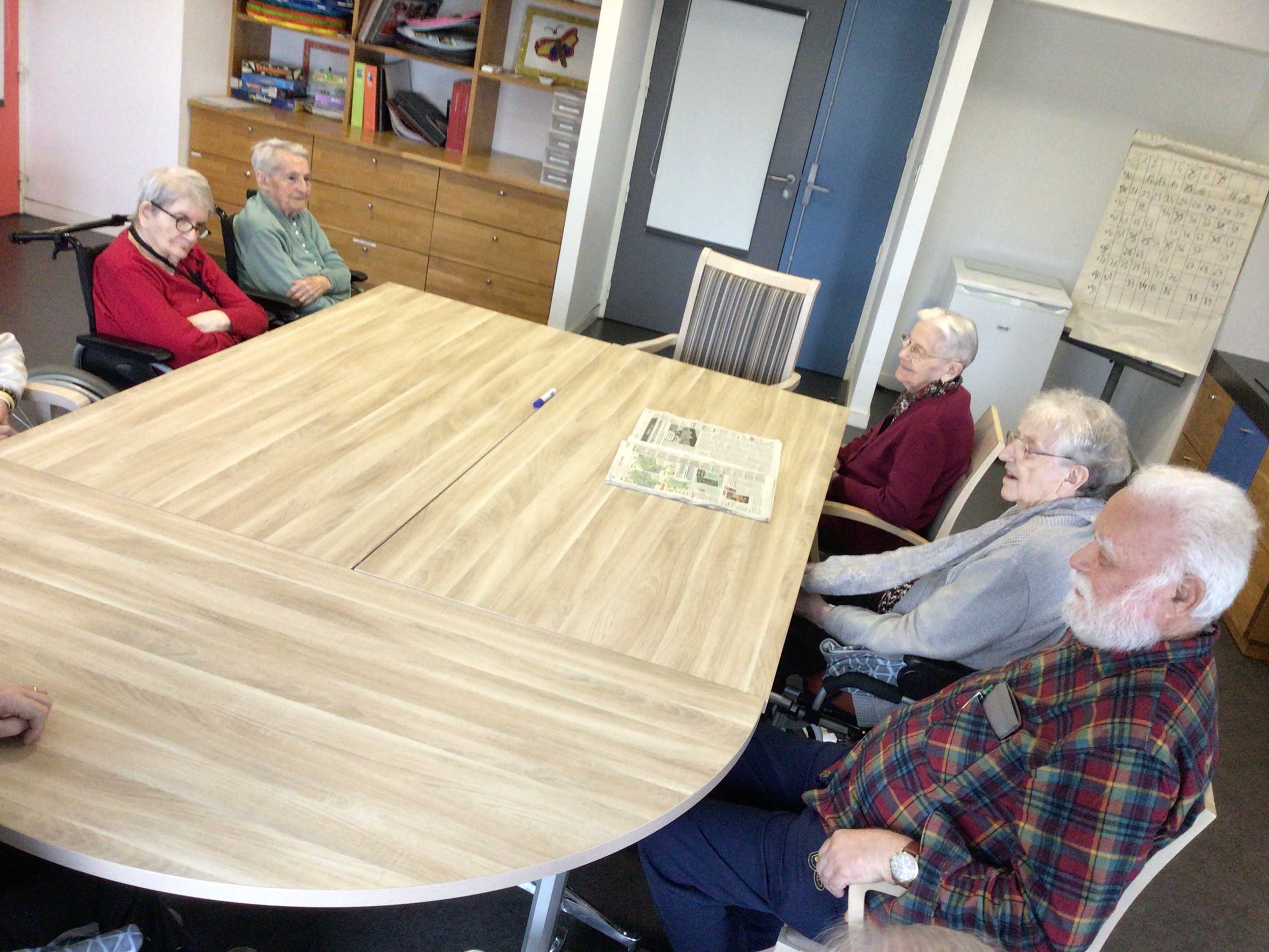 -Lecture à haute voix avec les bénévoles Josiane et Thérèse ce matin. Un moment de lecture toujours apprécié pour le groupe de résidents.