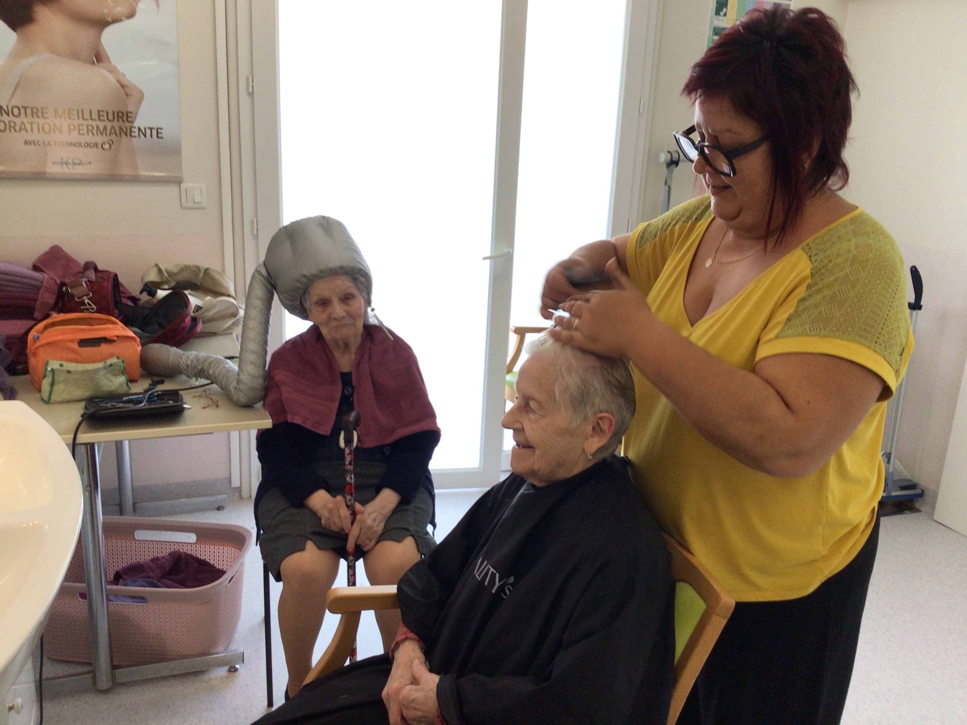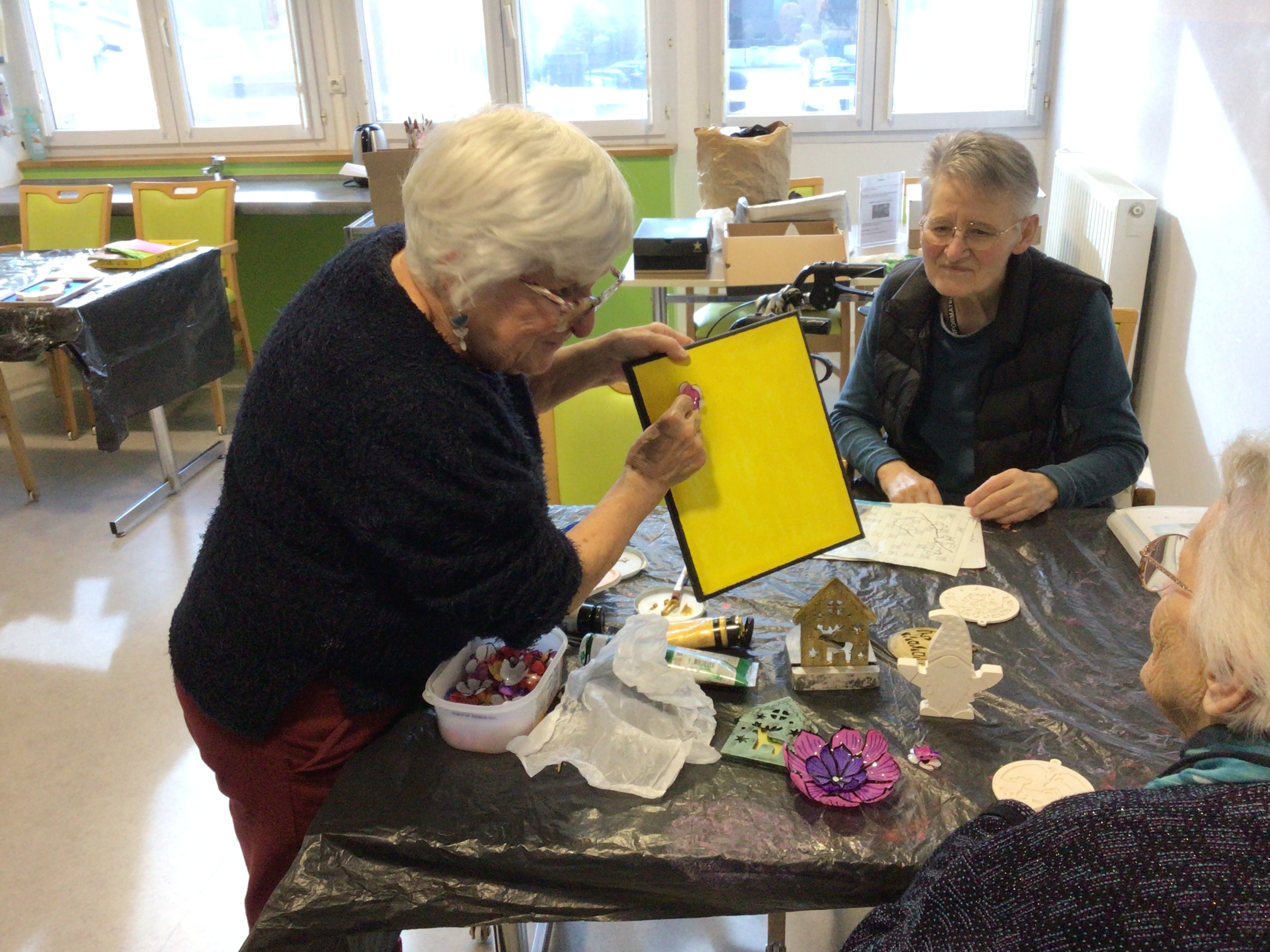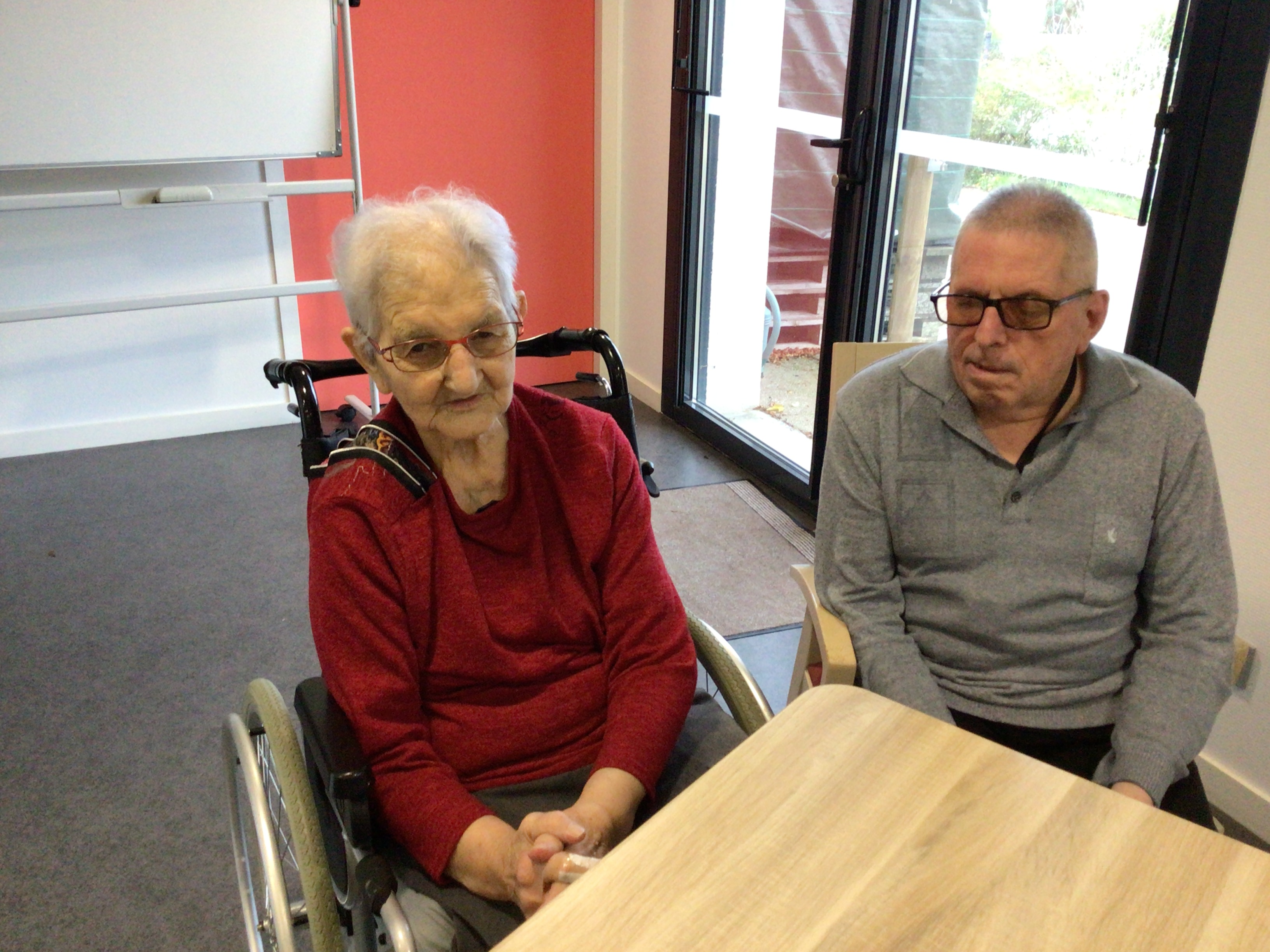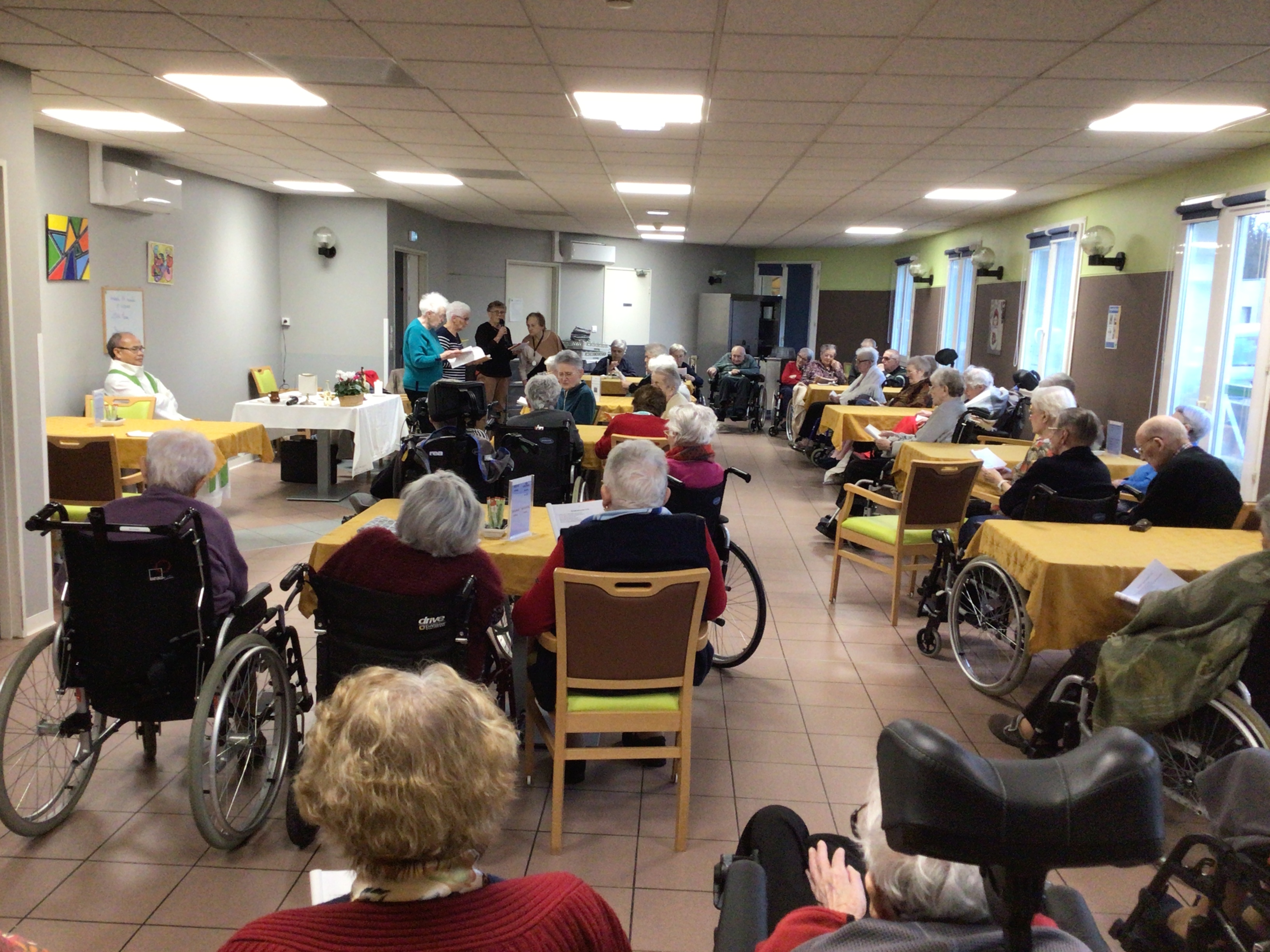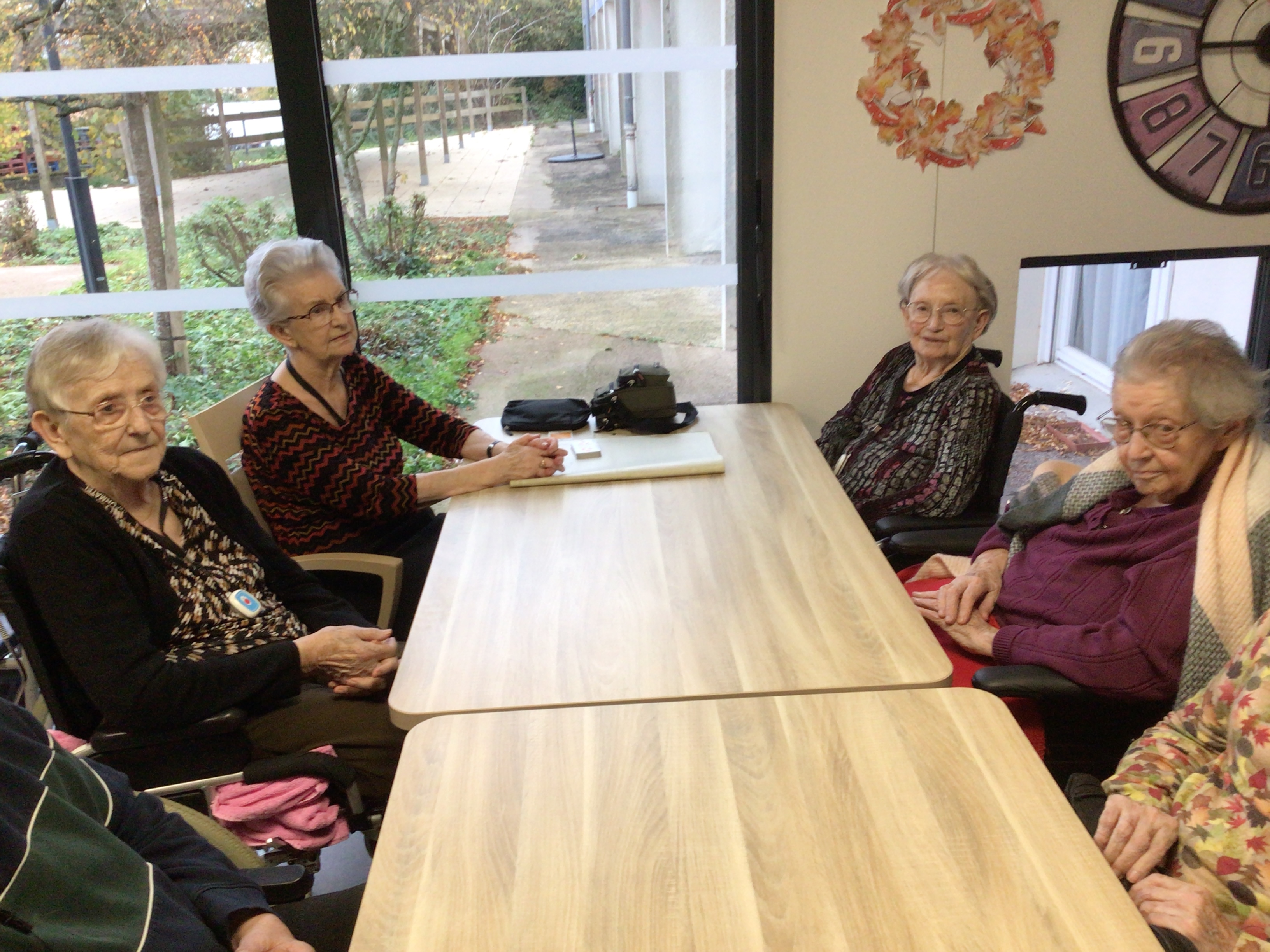 -Lecture à haute voix avec les bénévoles Josiane et Thérèse ce matin. Un moment de lecture toujours apprécié pour le groupe de résidents.