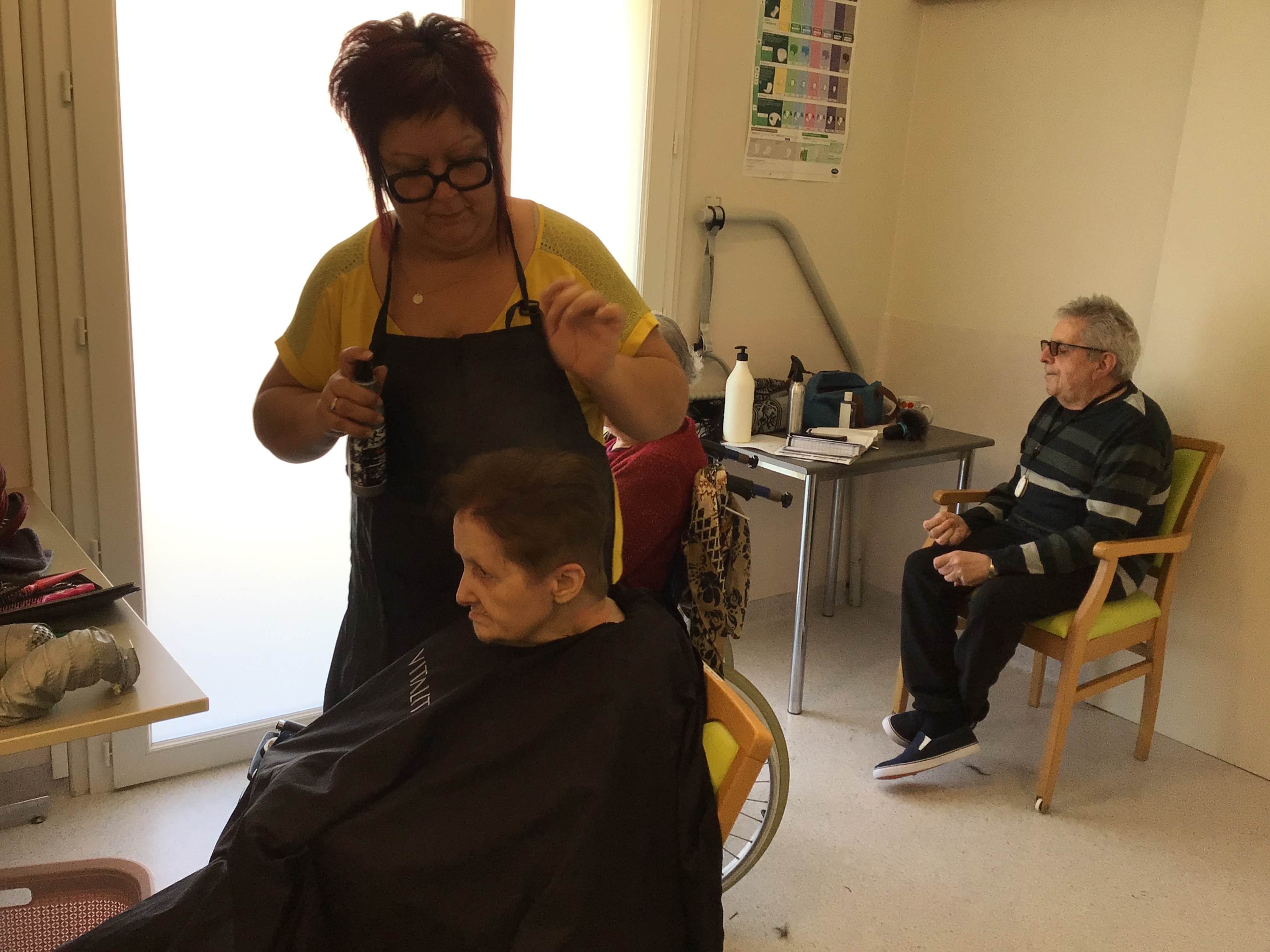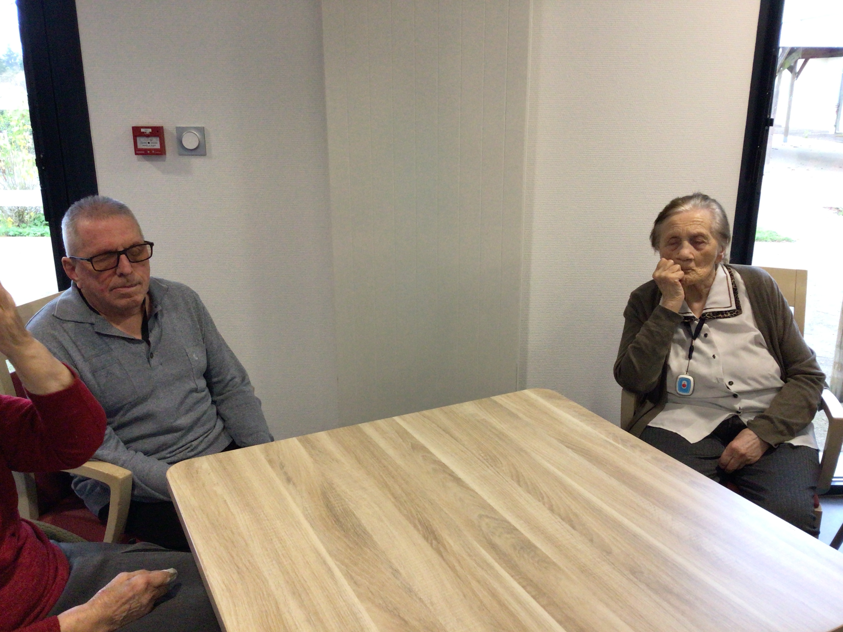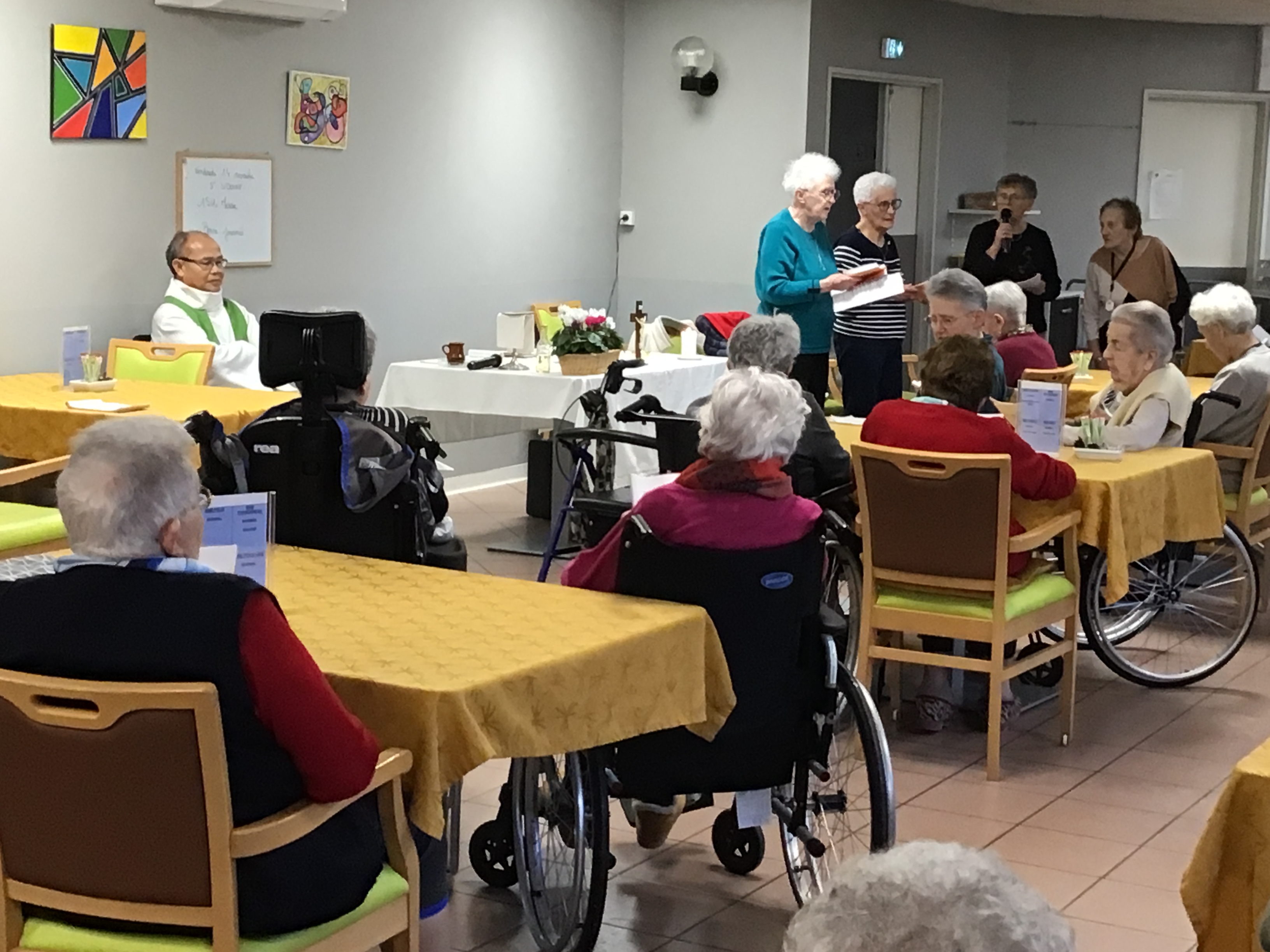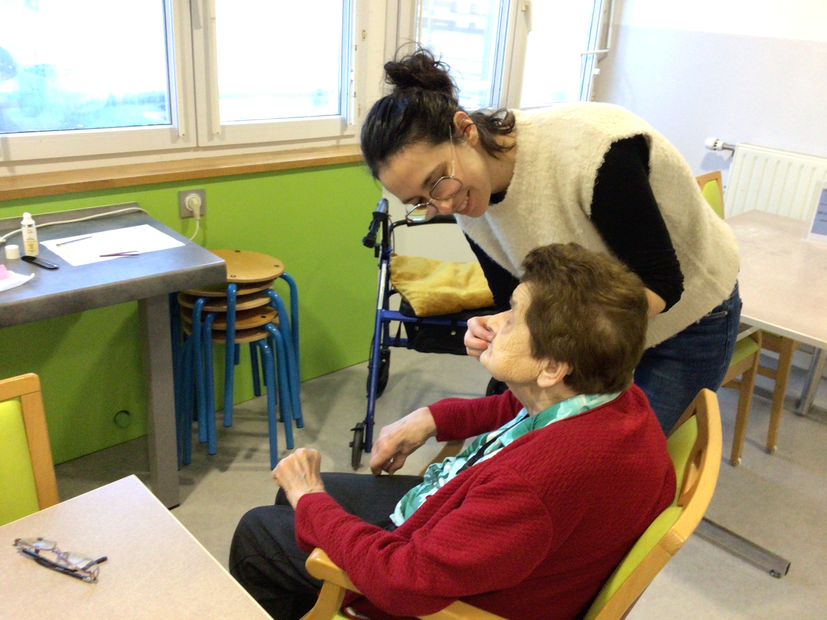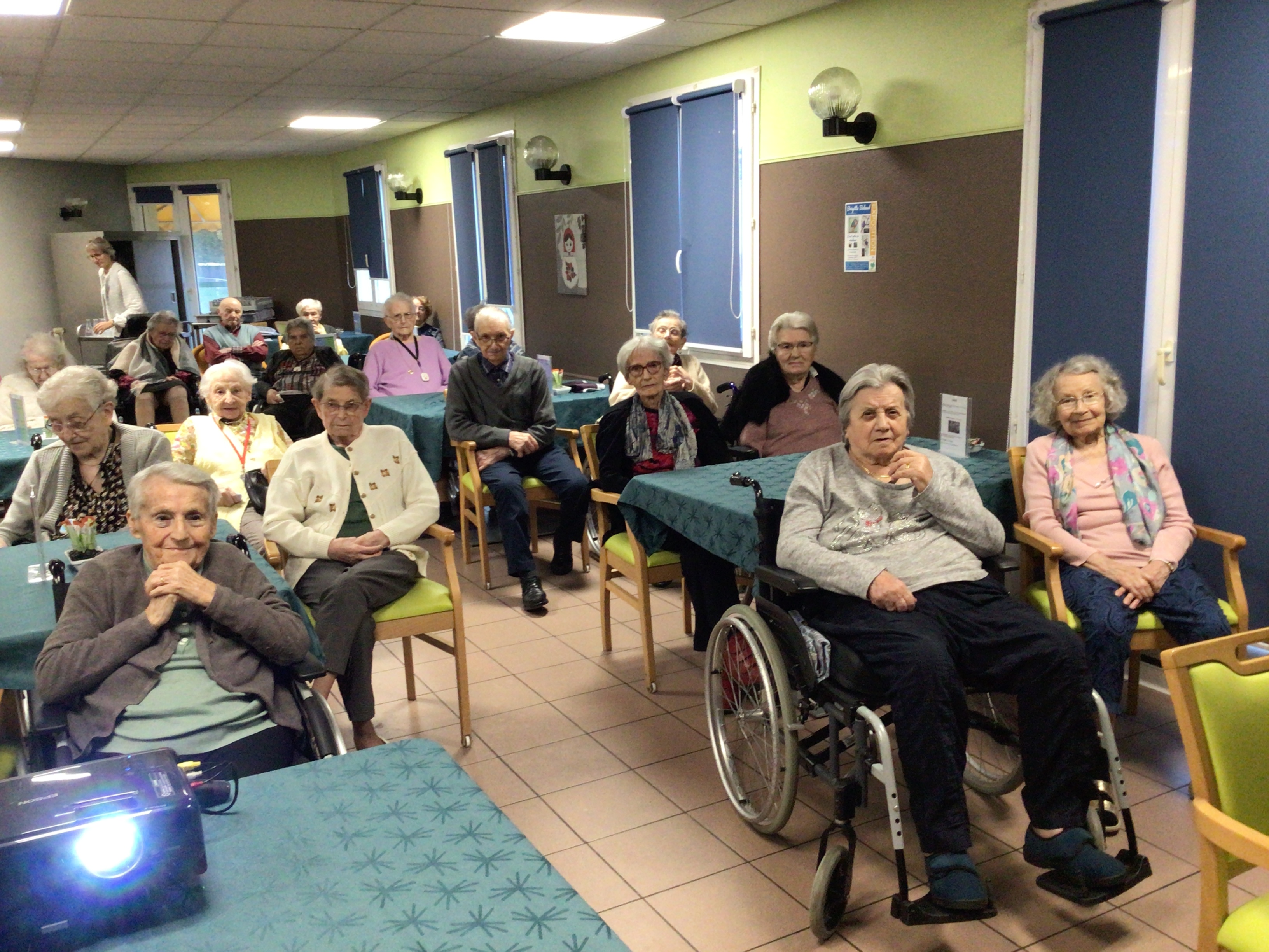 -Lecture à haute voix avec les bénévoles Josiane et Thérèse ce matin. Un moment de lecture toujours apprécié pour le groupe de résidents.