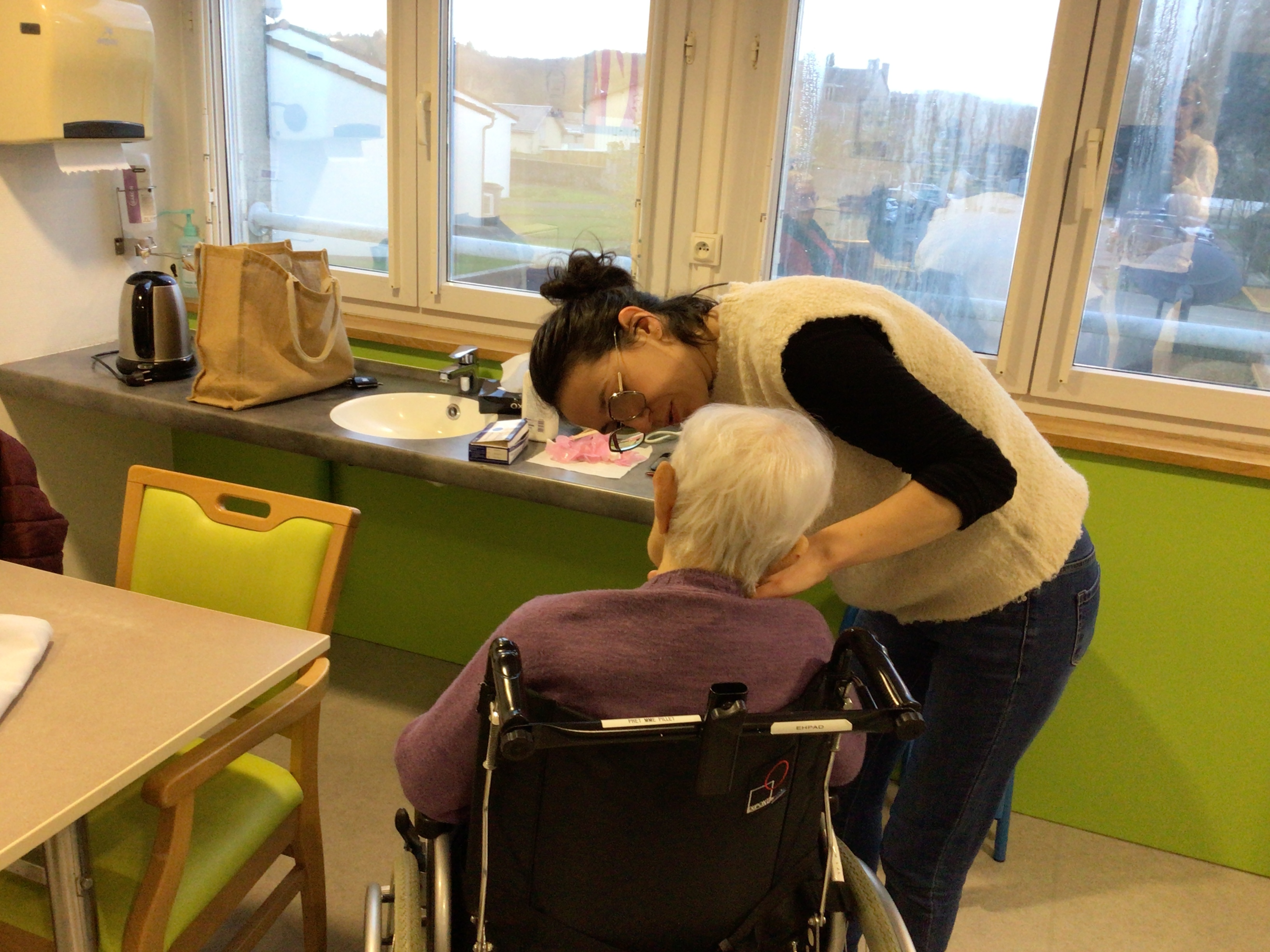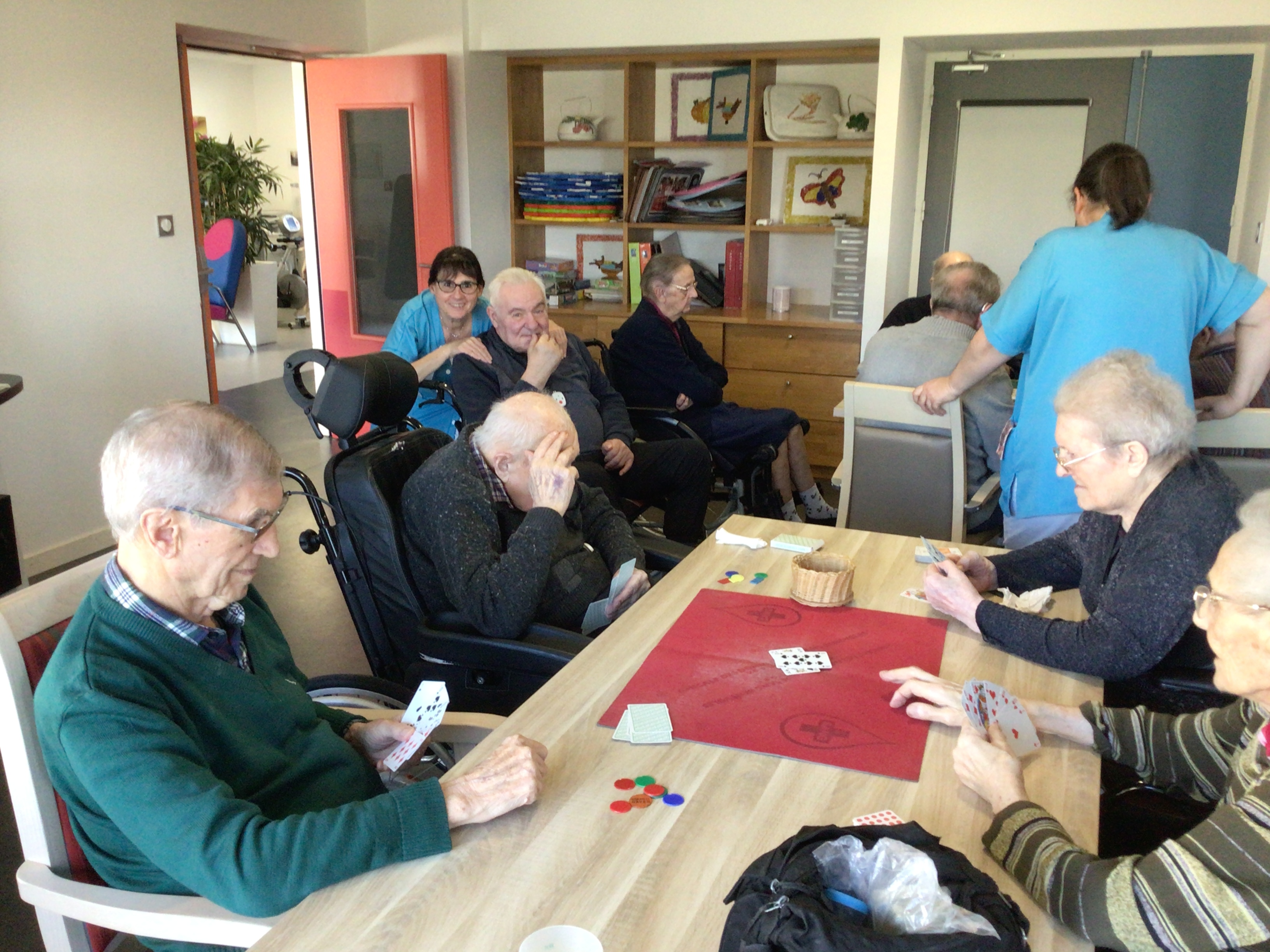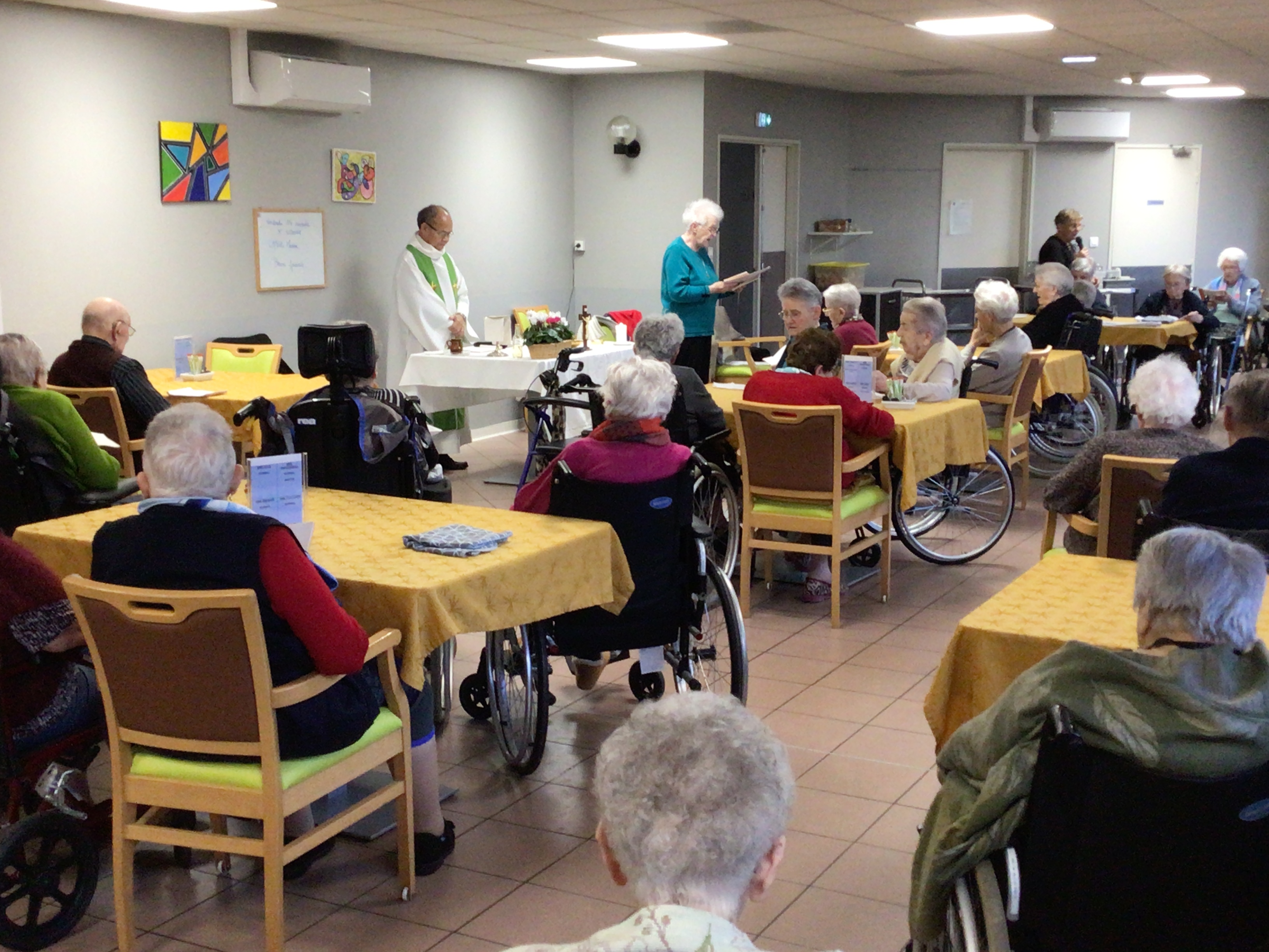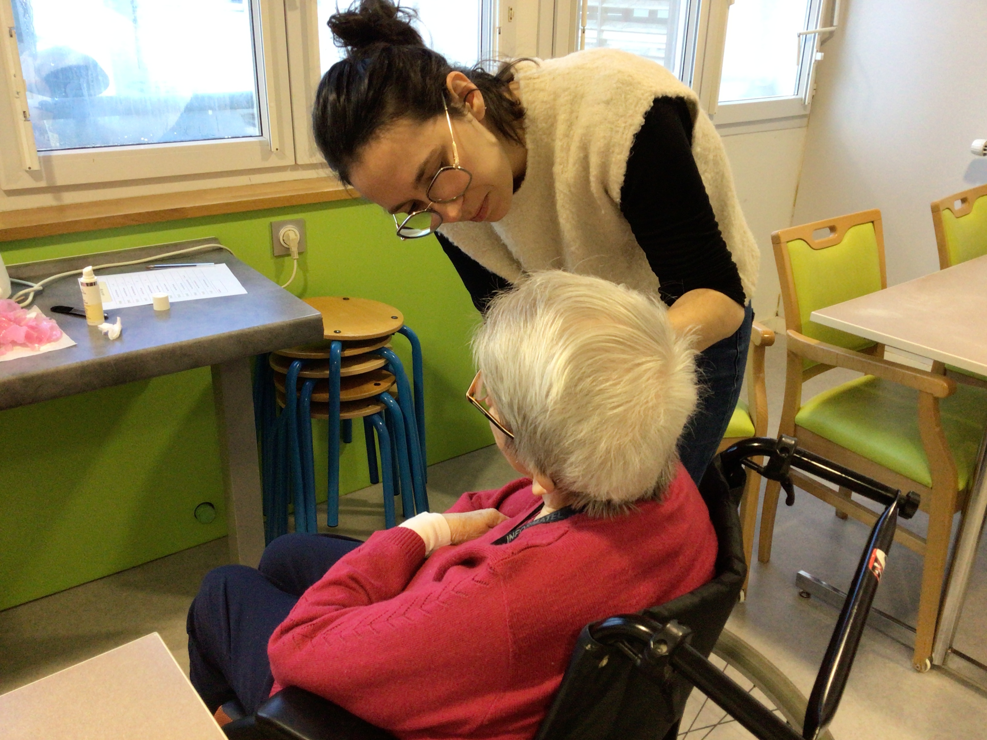 -Lecture à haute voix avec les bénévoles Josiane et Thérèse ce matin. Un moment de lecture toujours apprécié pour le groupe de résidents.