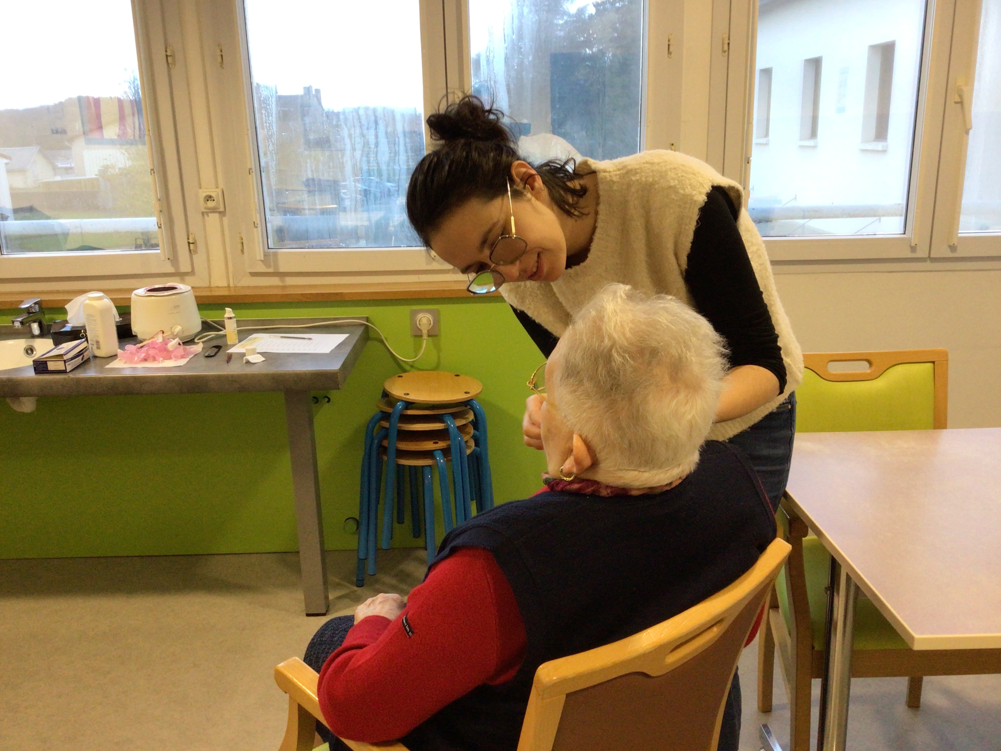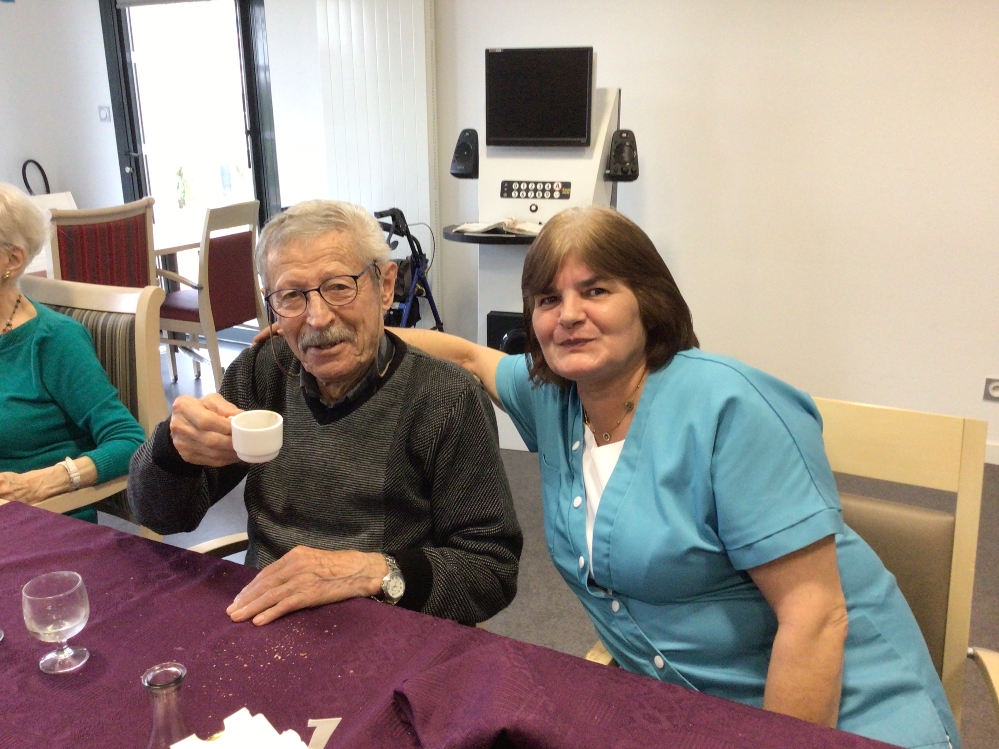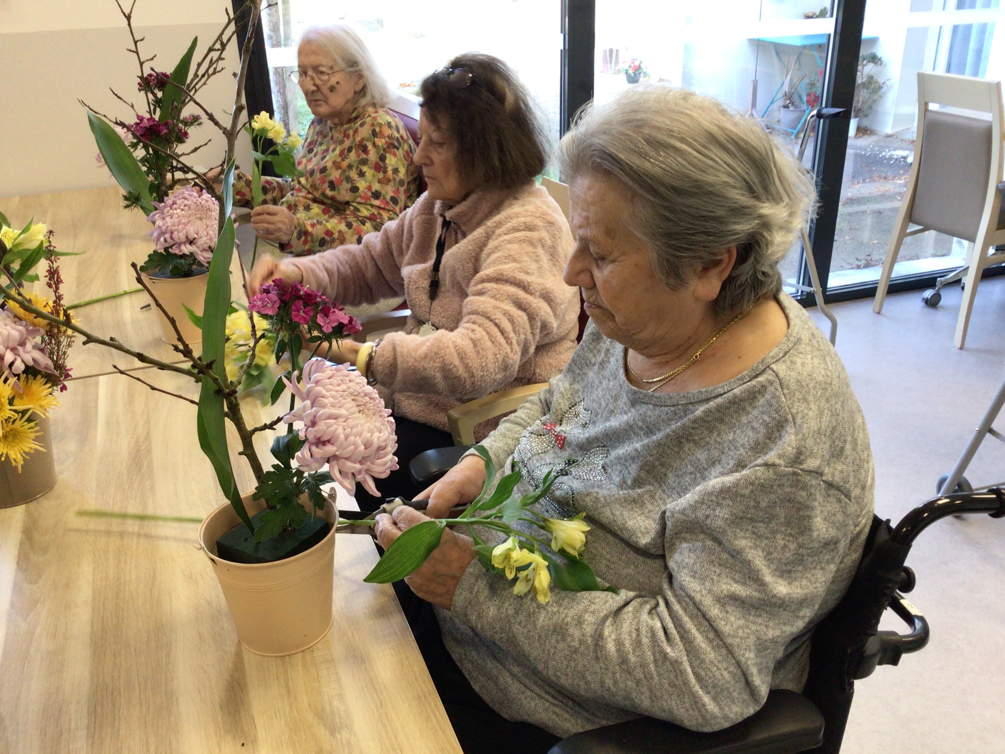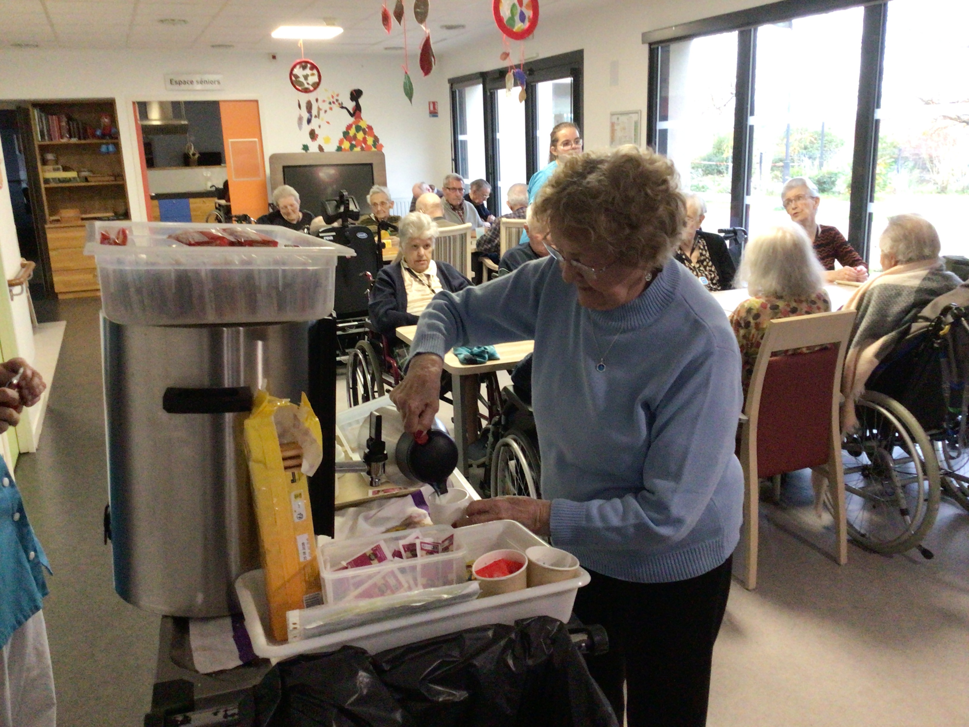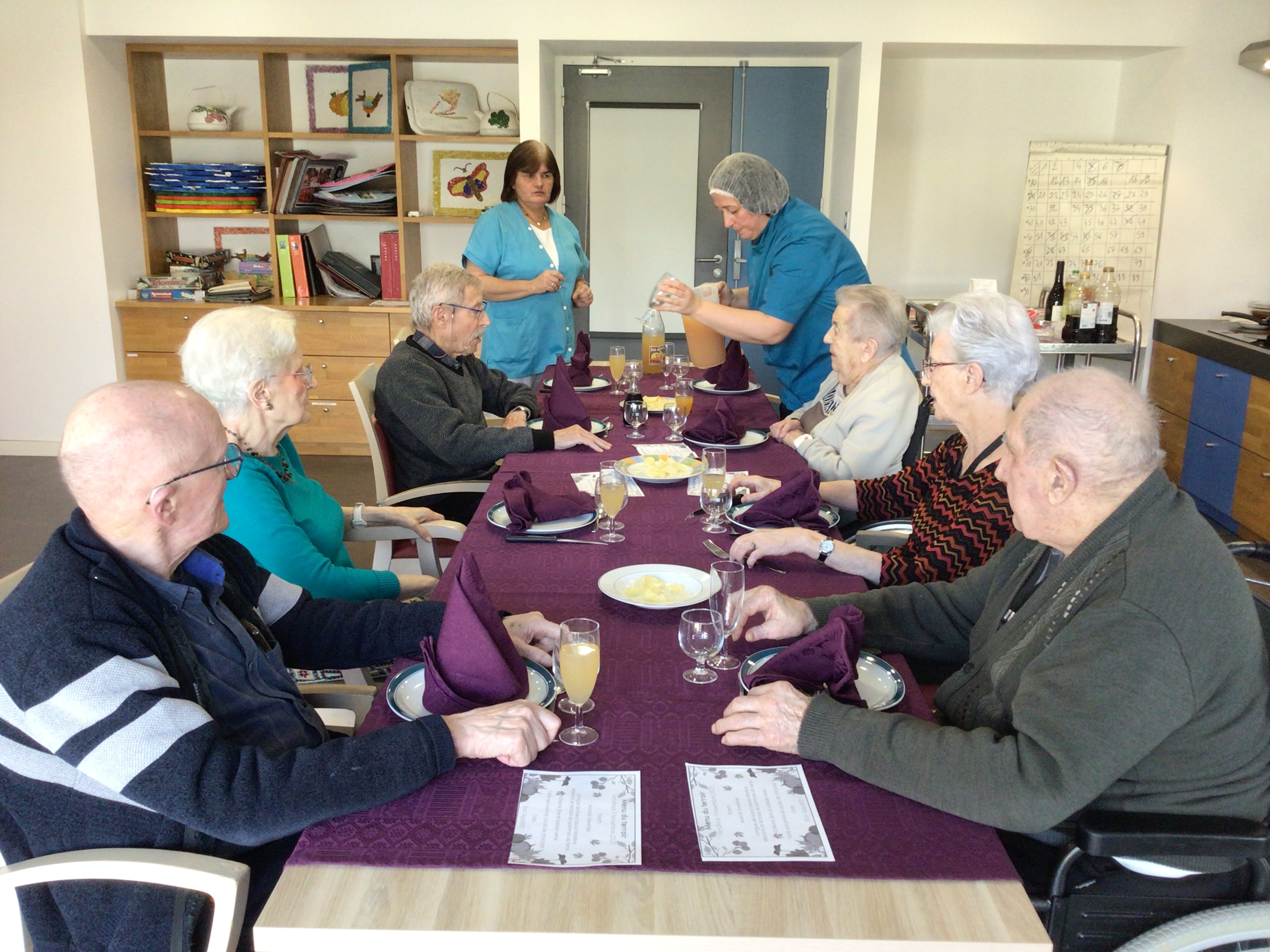 -Lecture à haute voix avec les bénévoles Josiane et Thérèse ce matin. Un moment de lecture toujours apprécié pour le groupe de résidents.