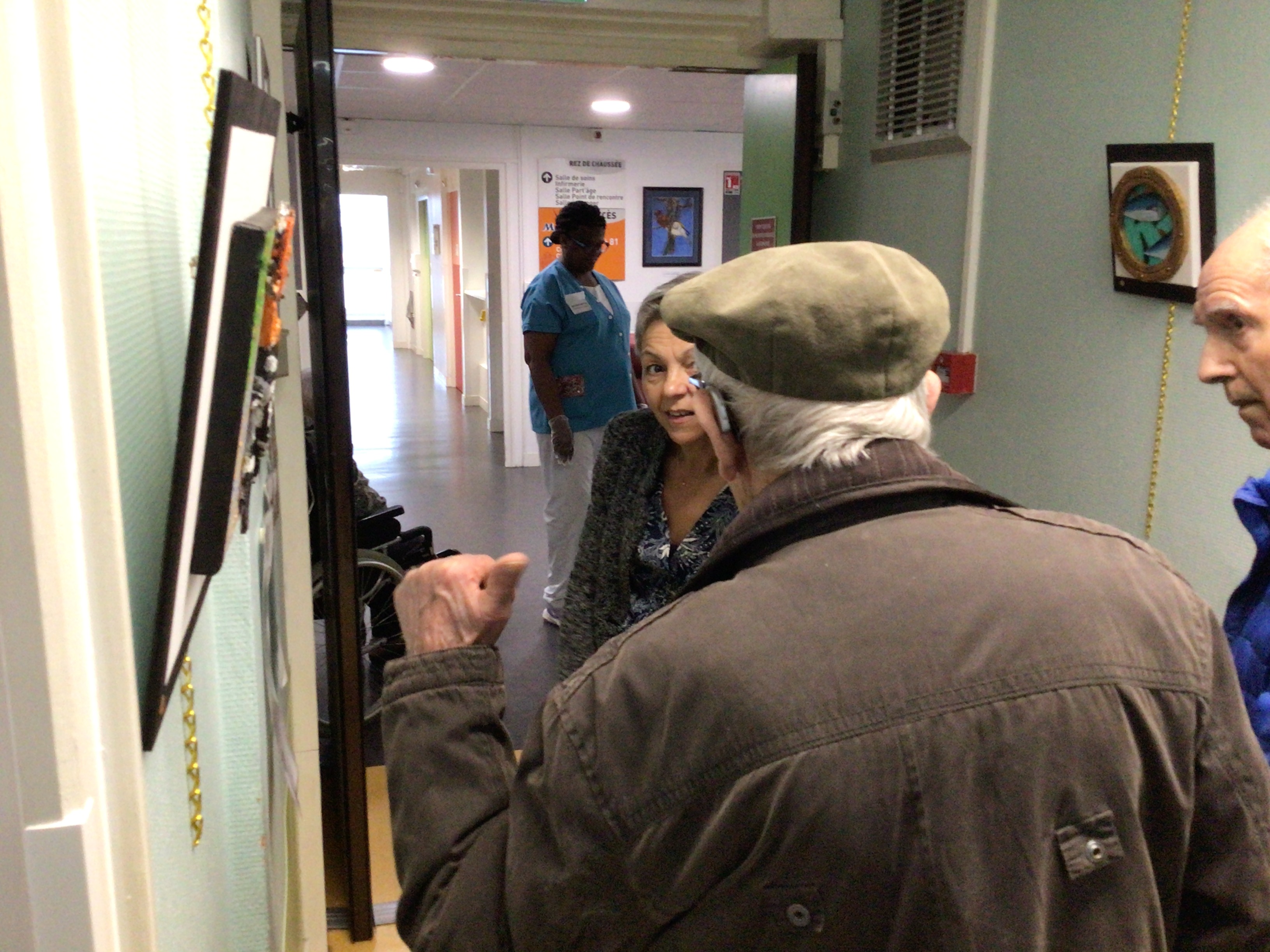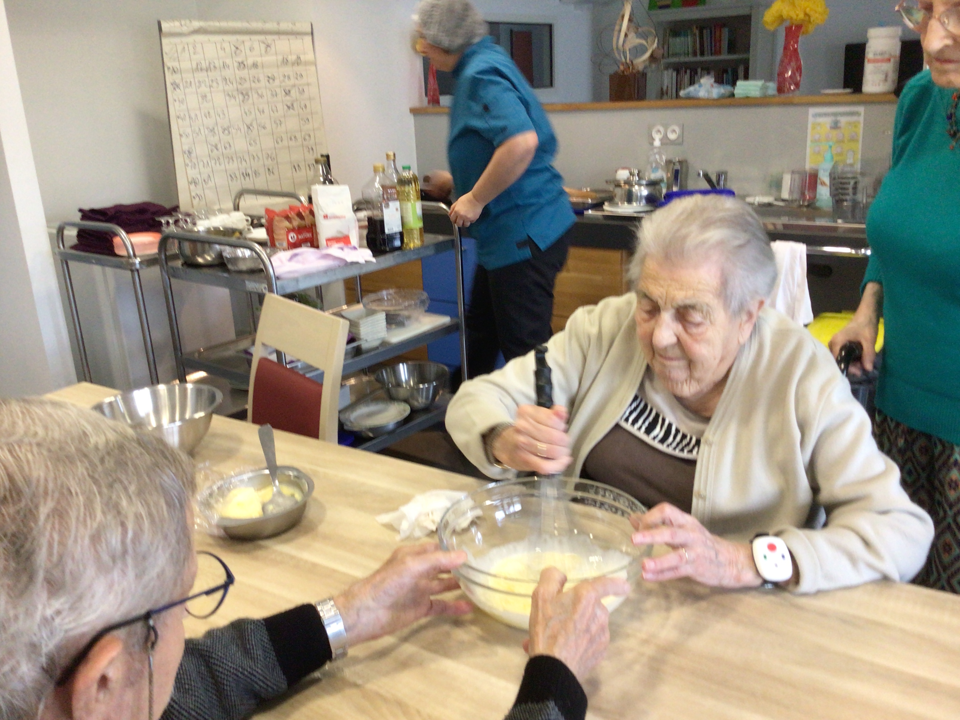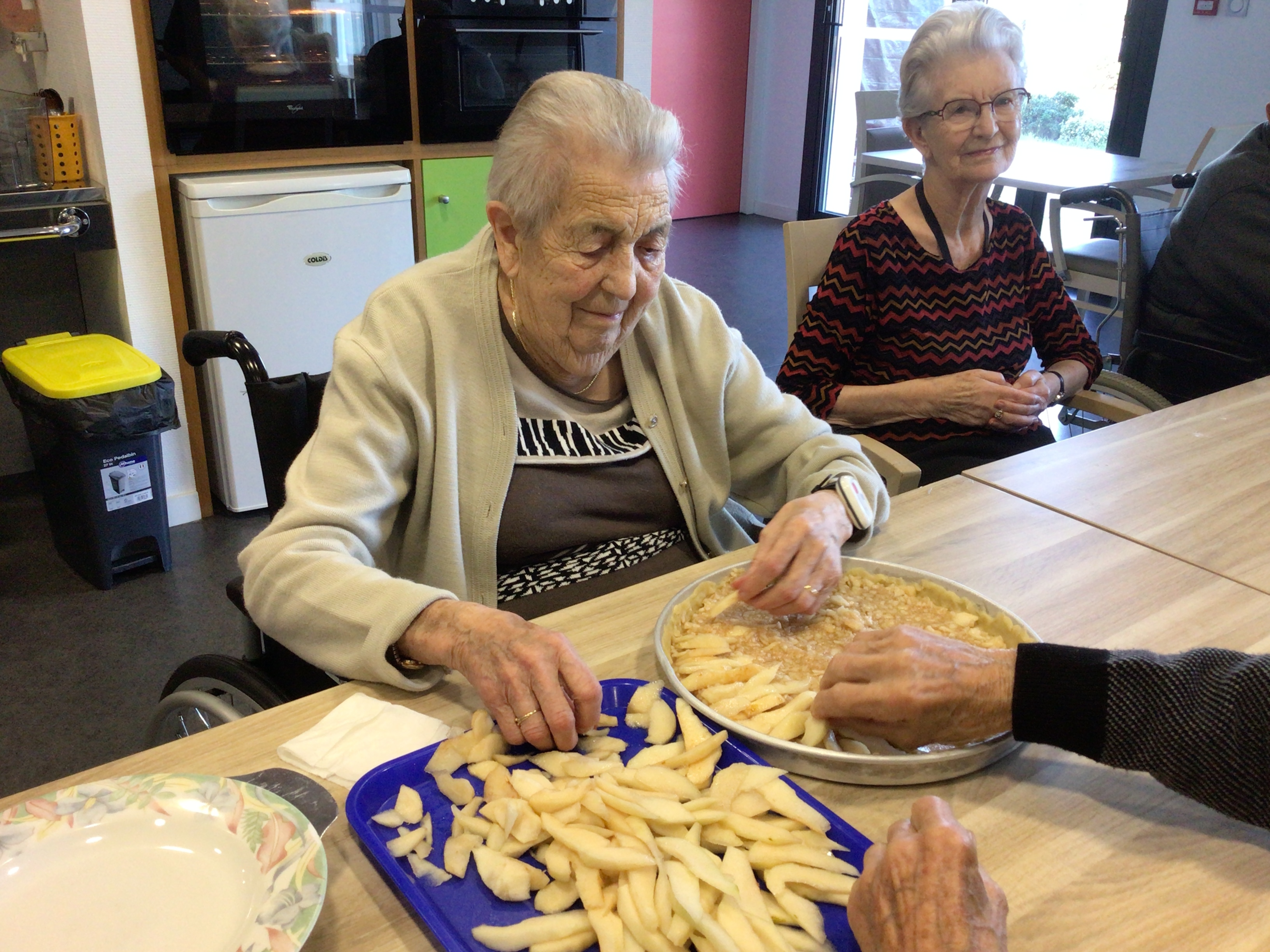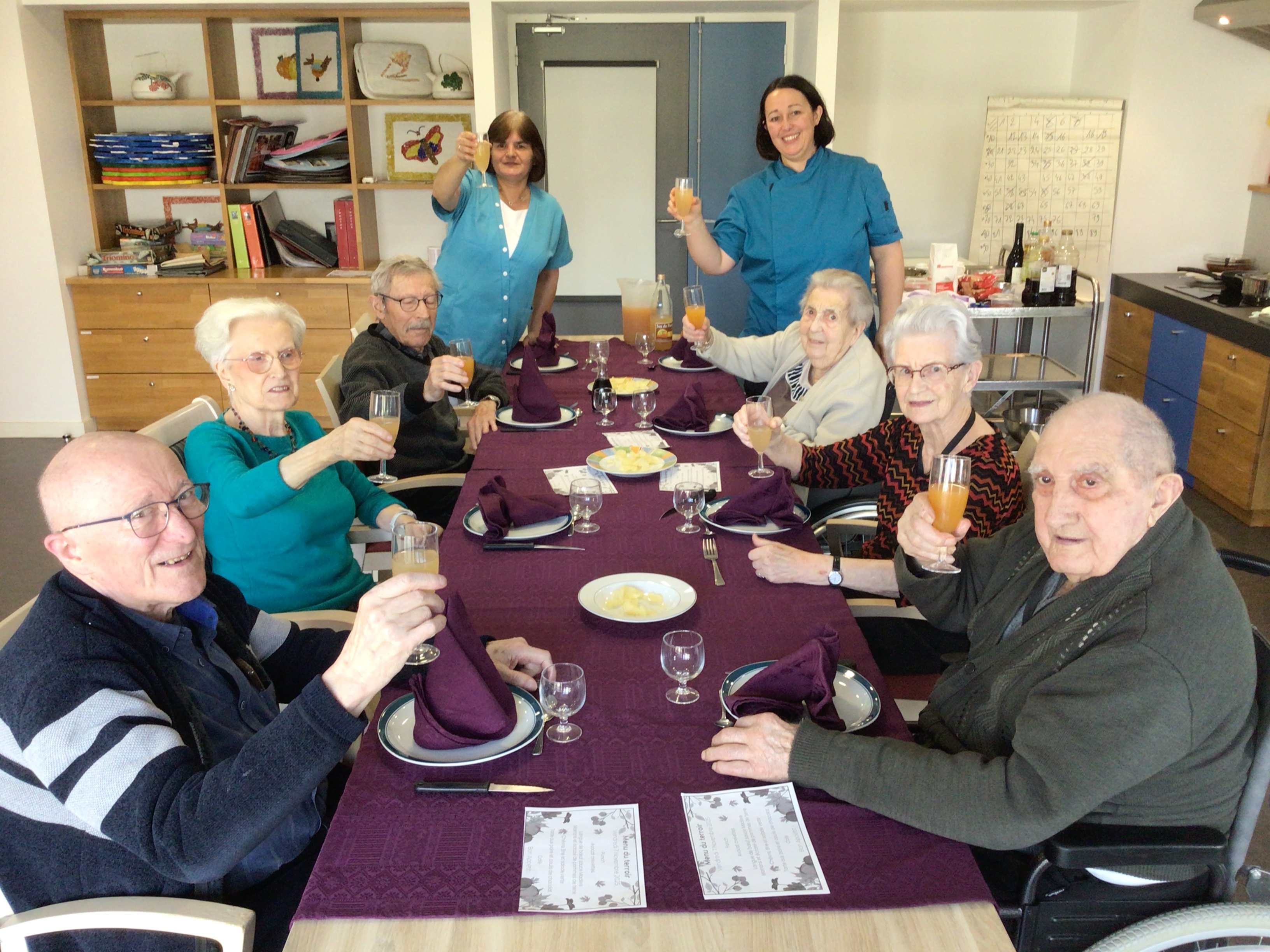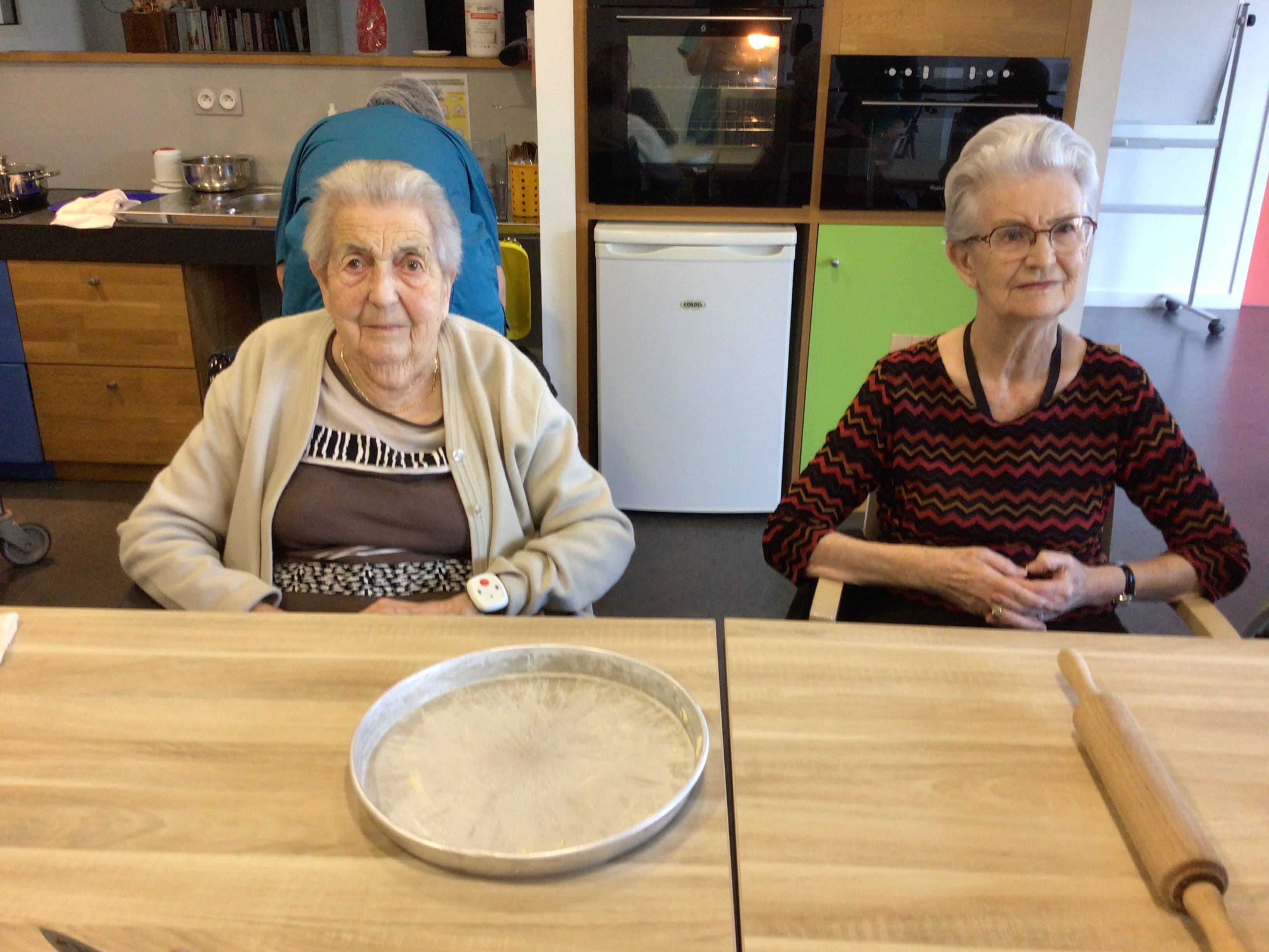 -Lecture à haute voix avec les bénévoles Josiane et Thérèse ce matin. Un moment de lecture toujours apprécié pour le groupe de résidents.