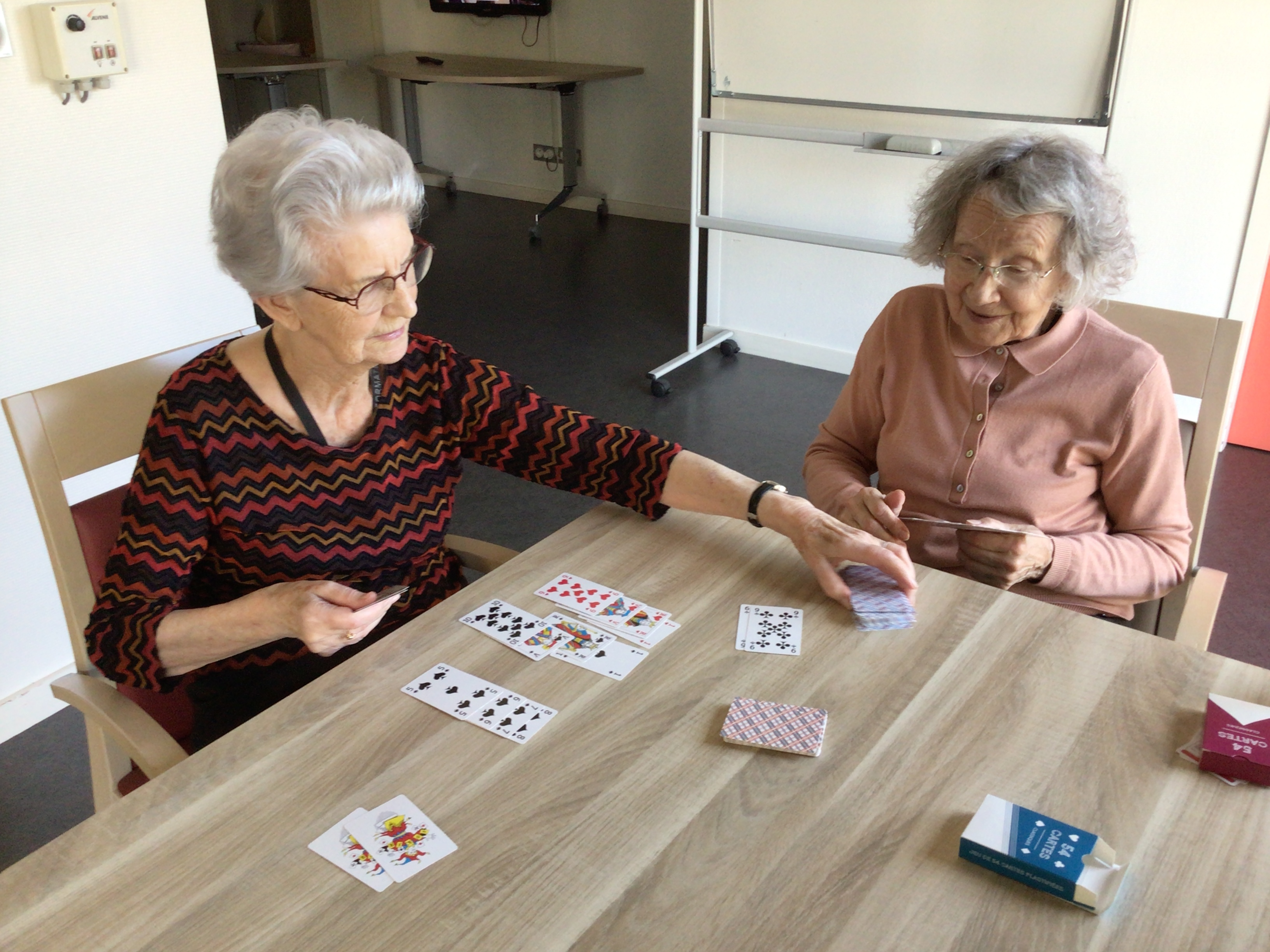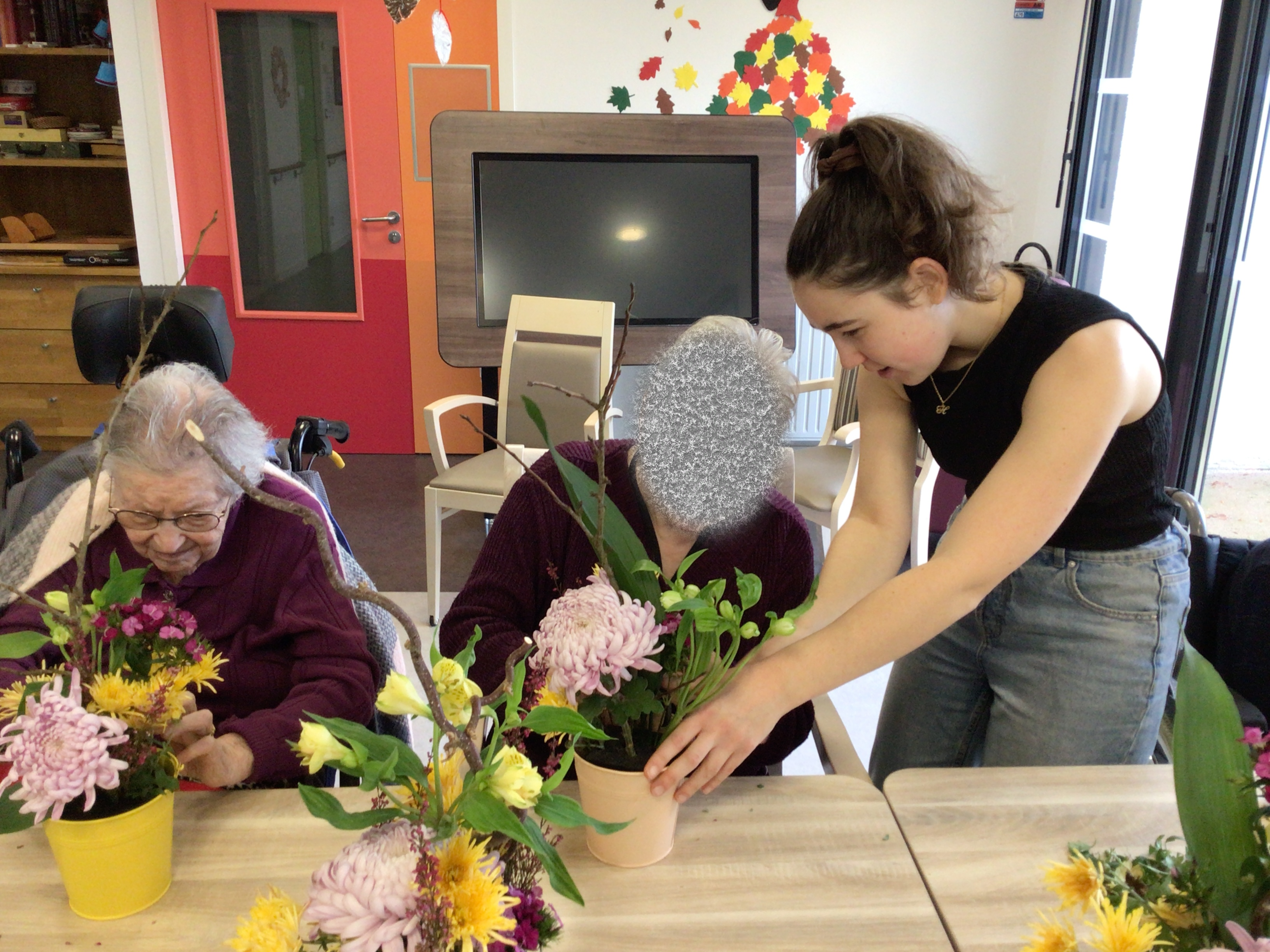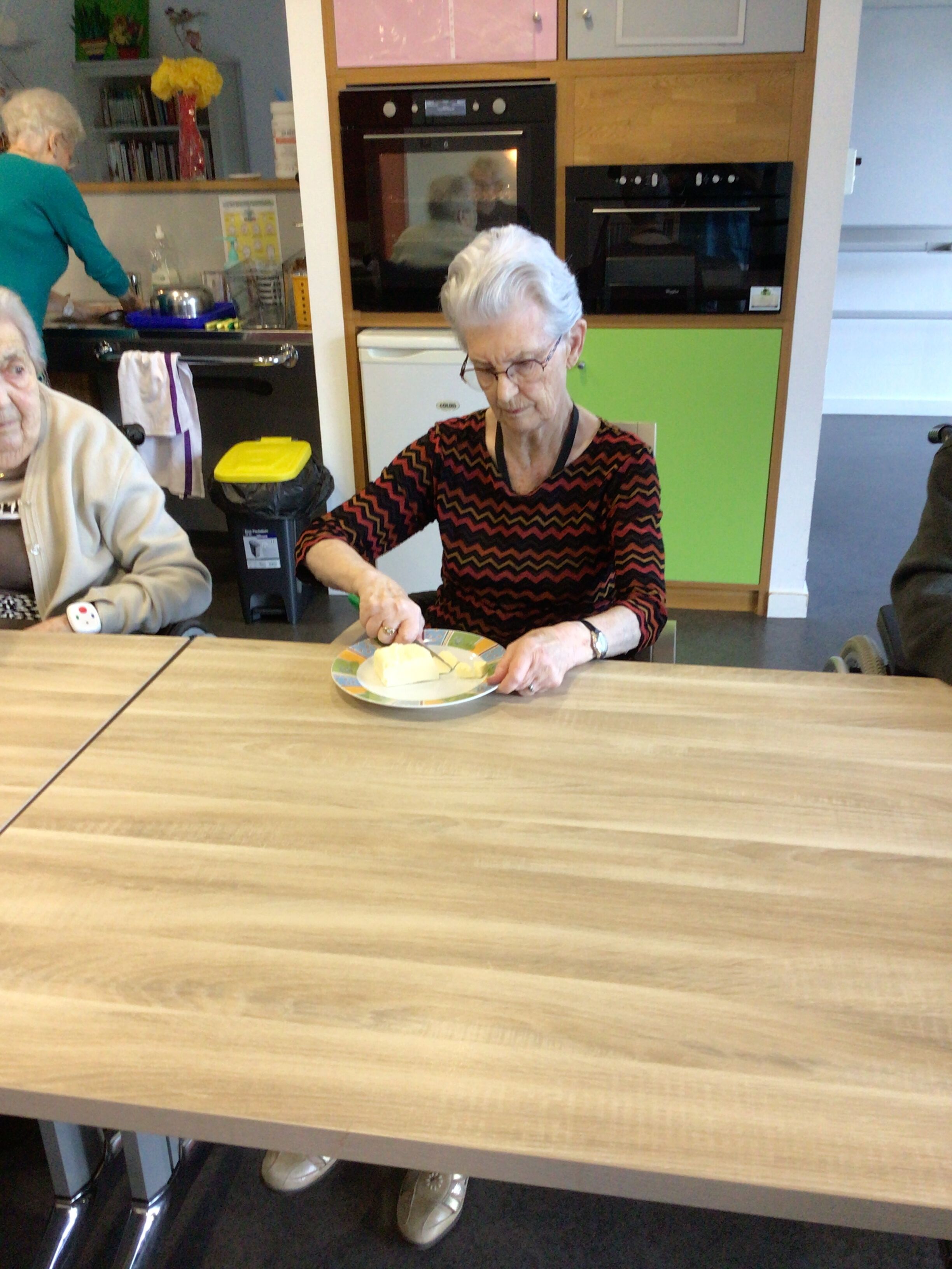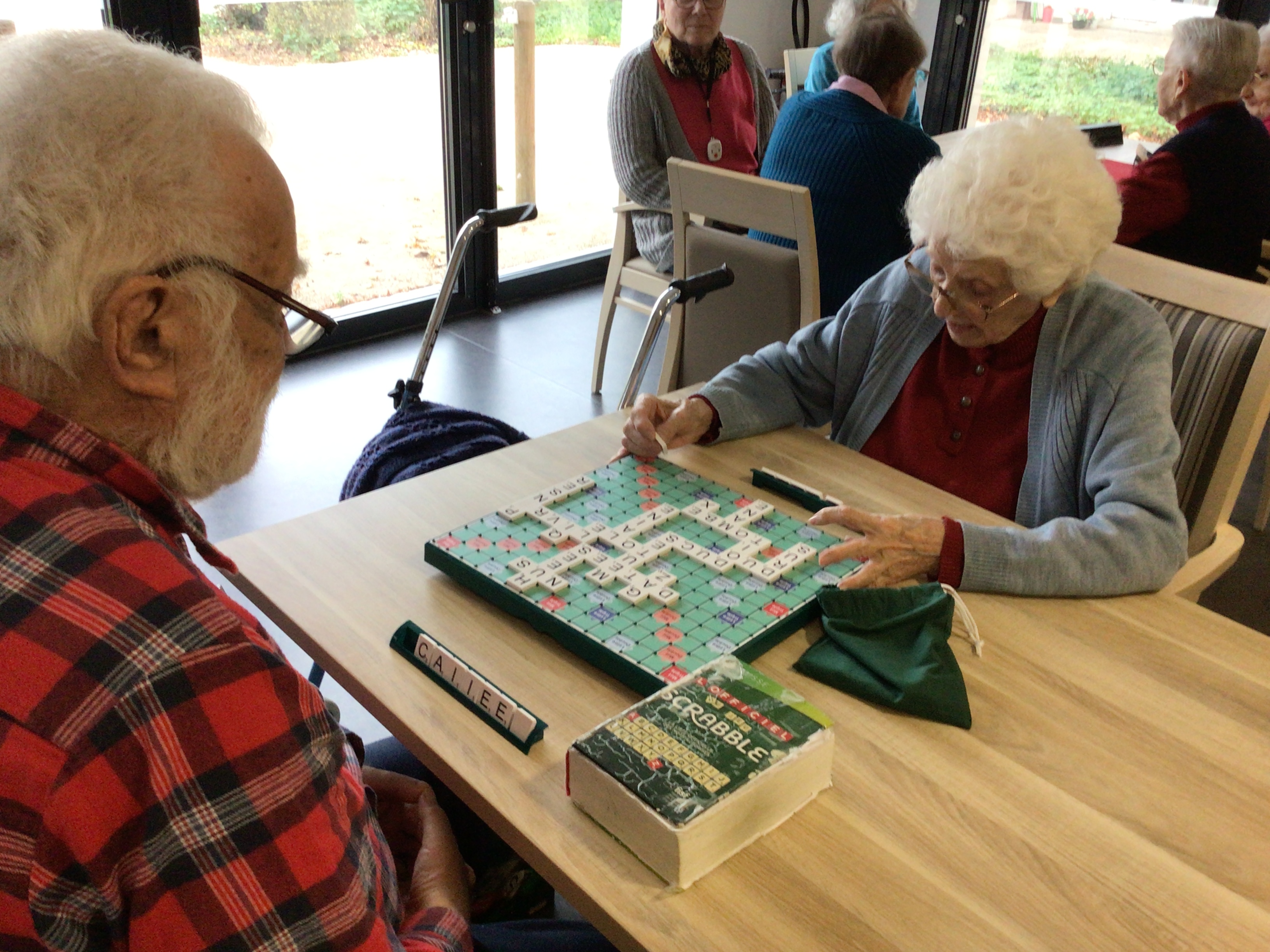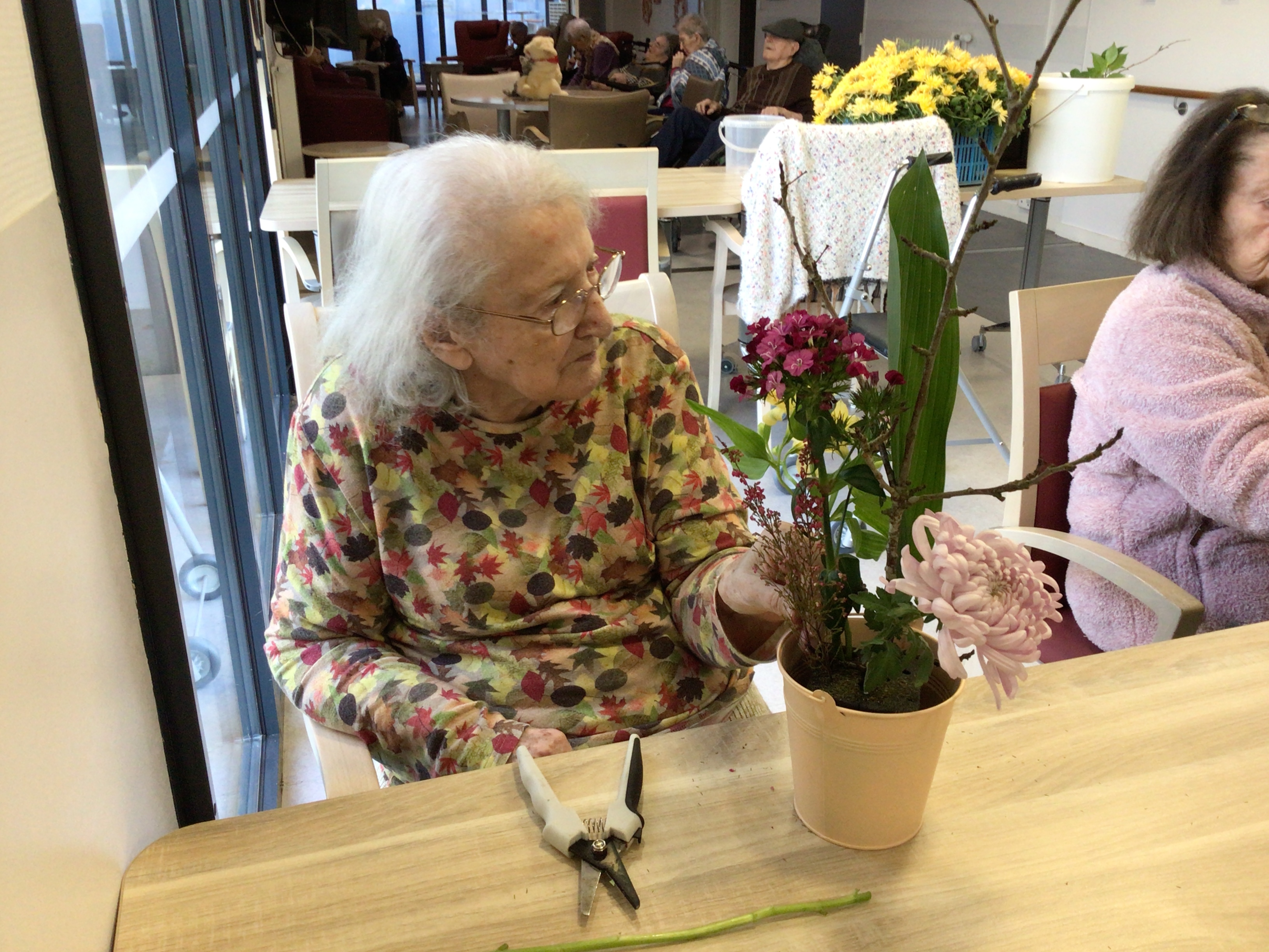 -Lecture à haute voix avec les bénévoles Josiane et Thérèse ce matin. Un moment de lecture toujours apprécié pour le groupe de résidents.