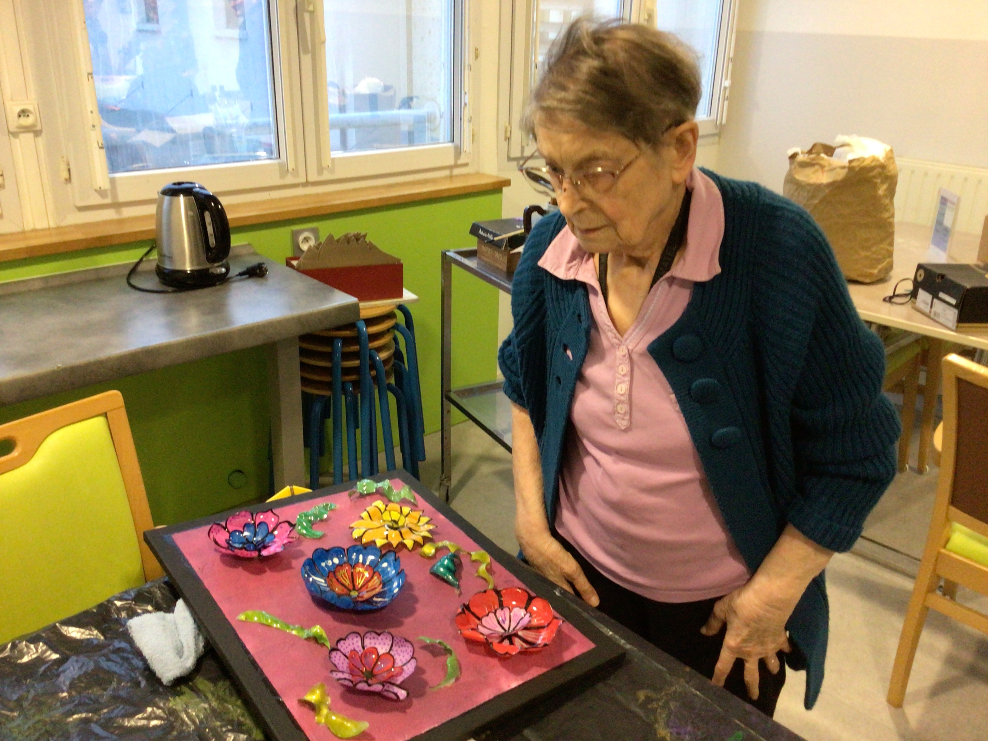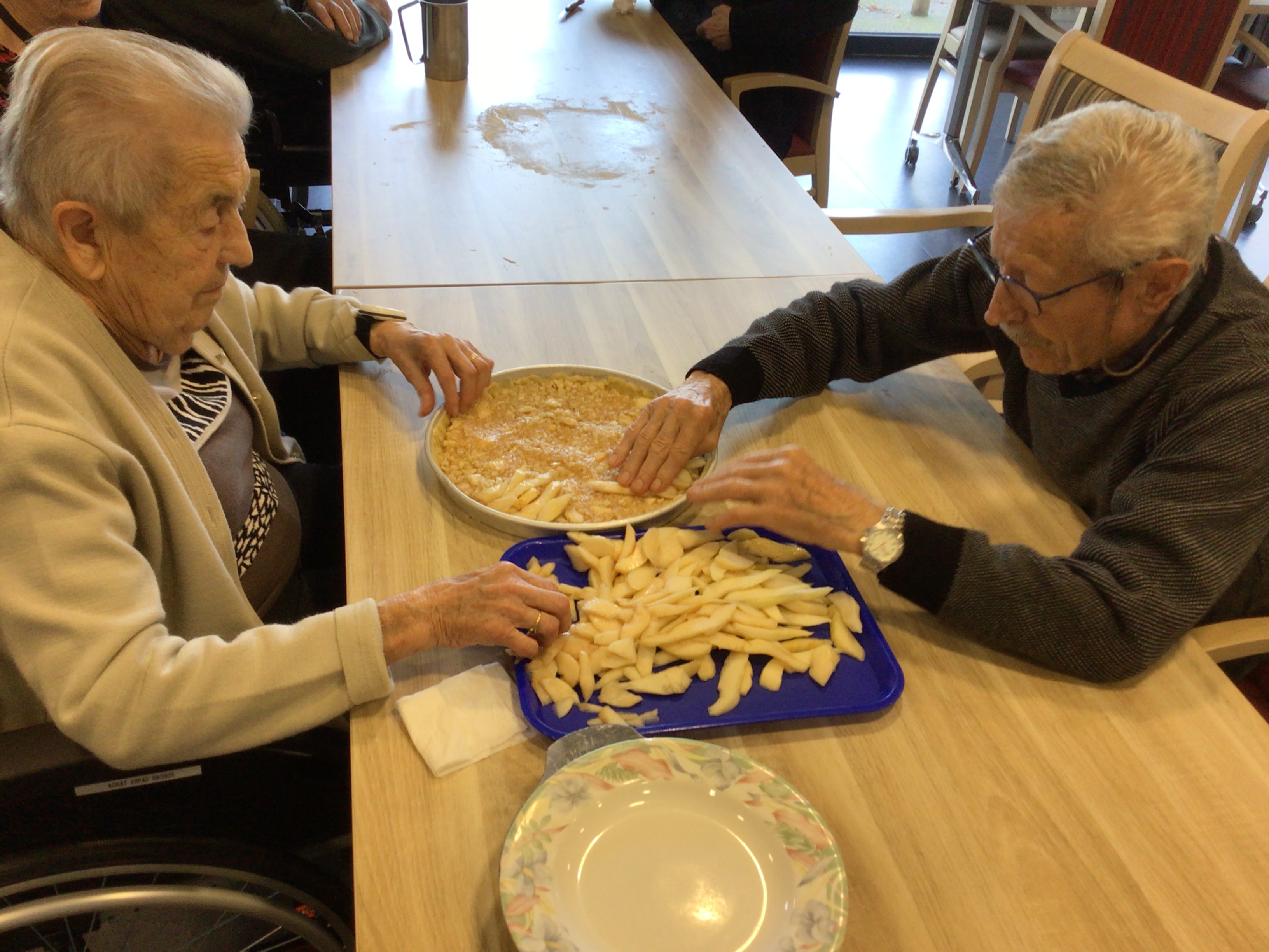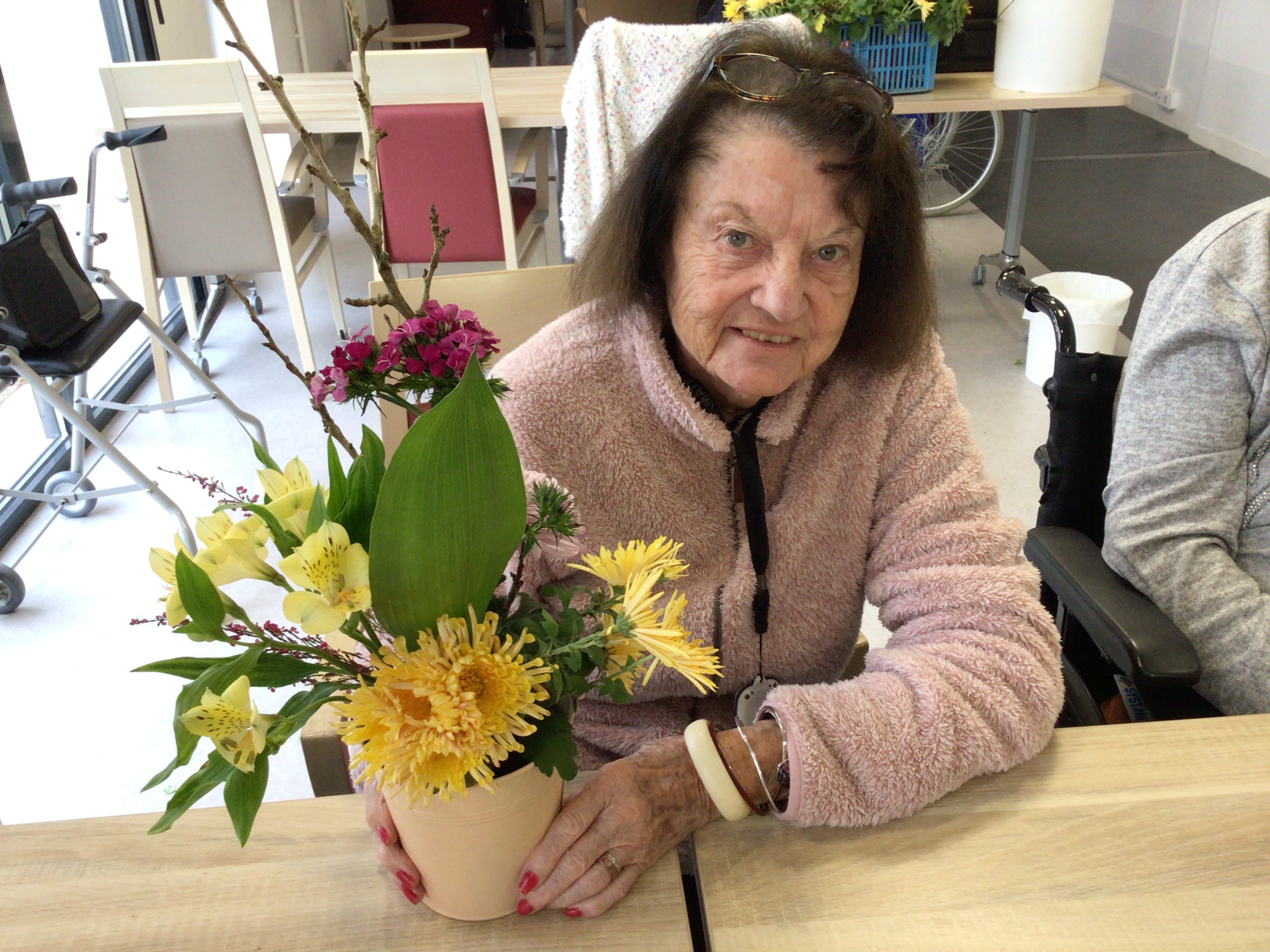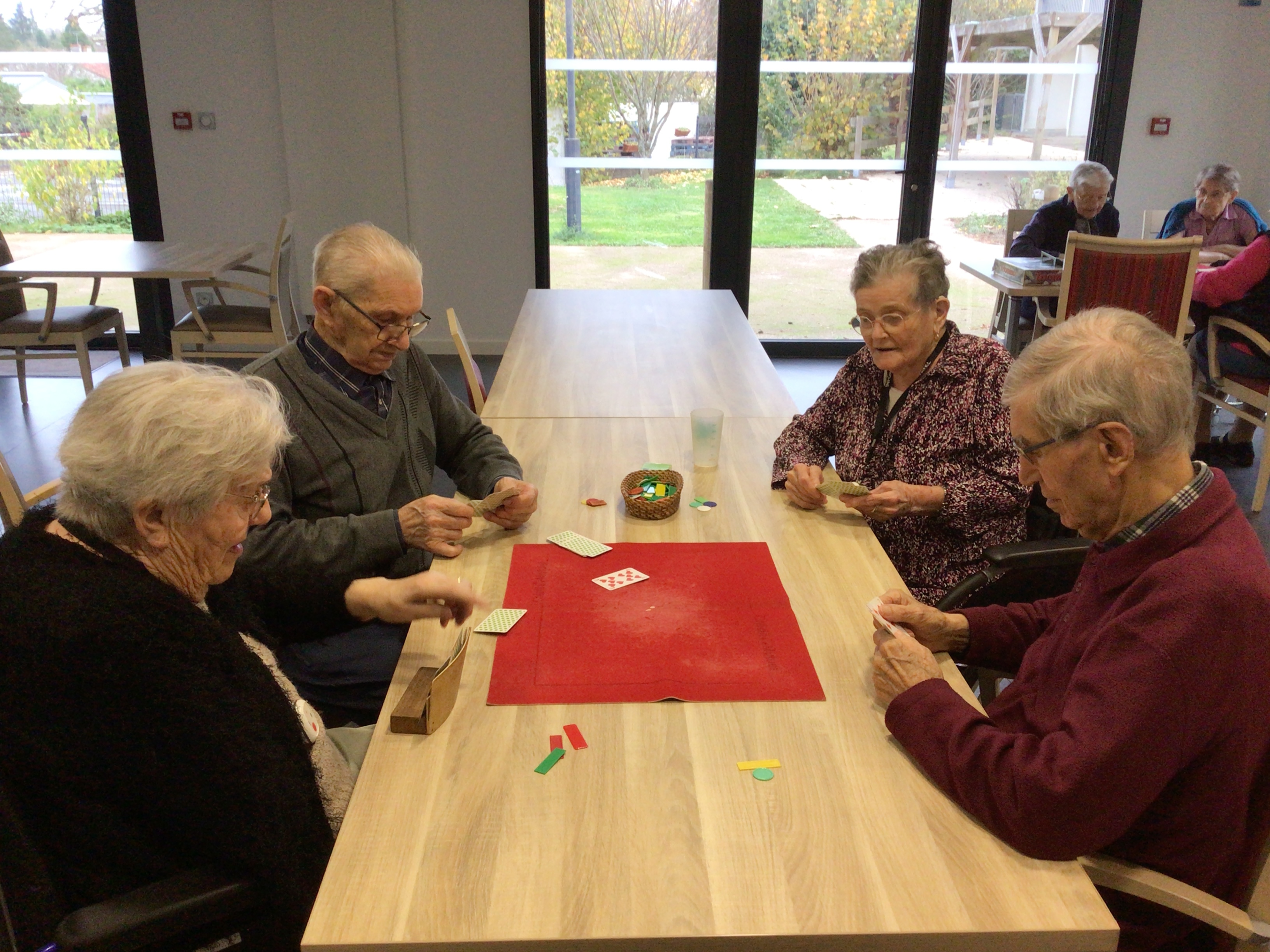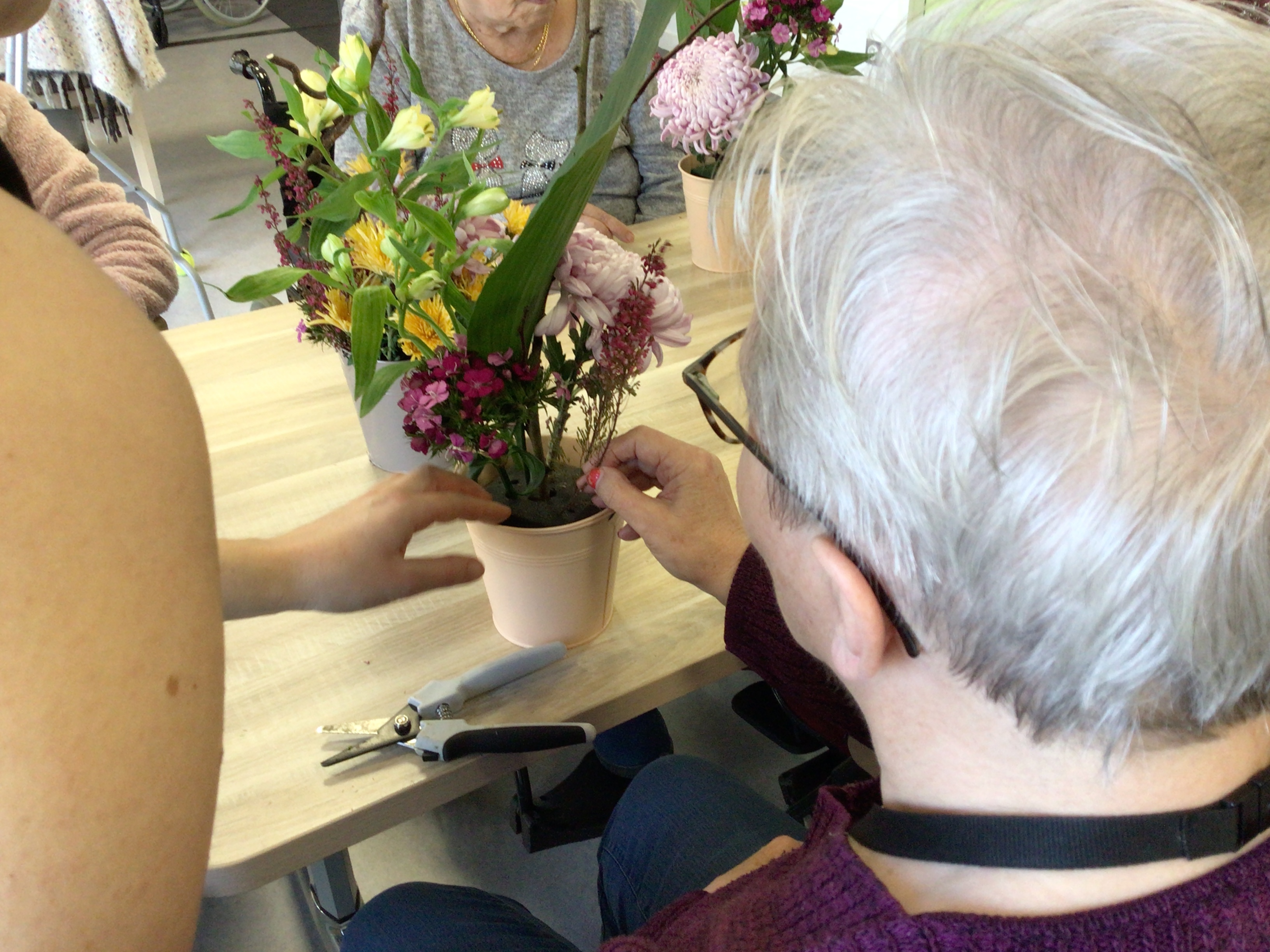 -Lecture à haute voix avec les bénévoles Josiane et Thérèse ce matin. Un moment de lecture toujours apprécié pour le groupe de résidents.