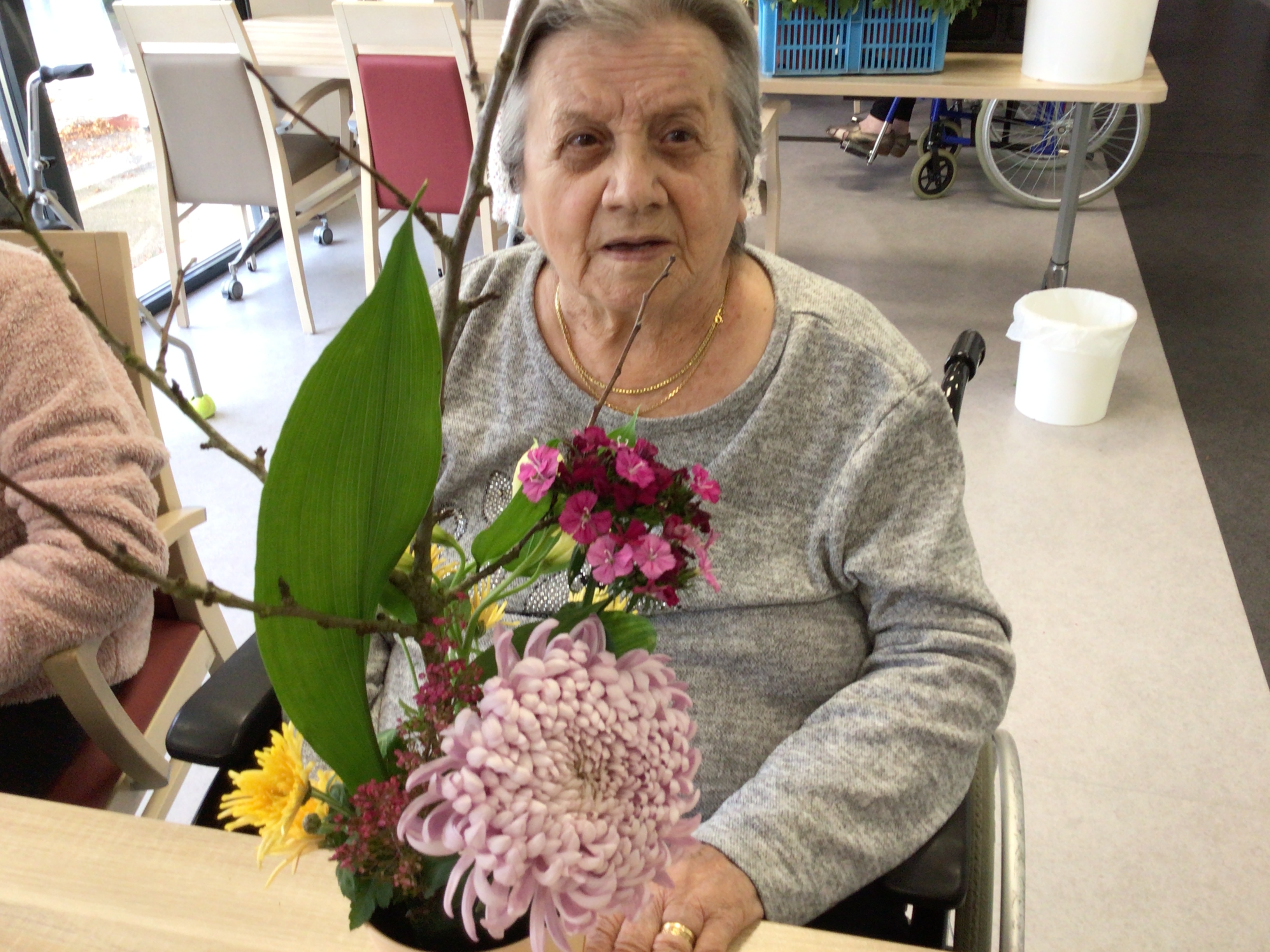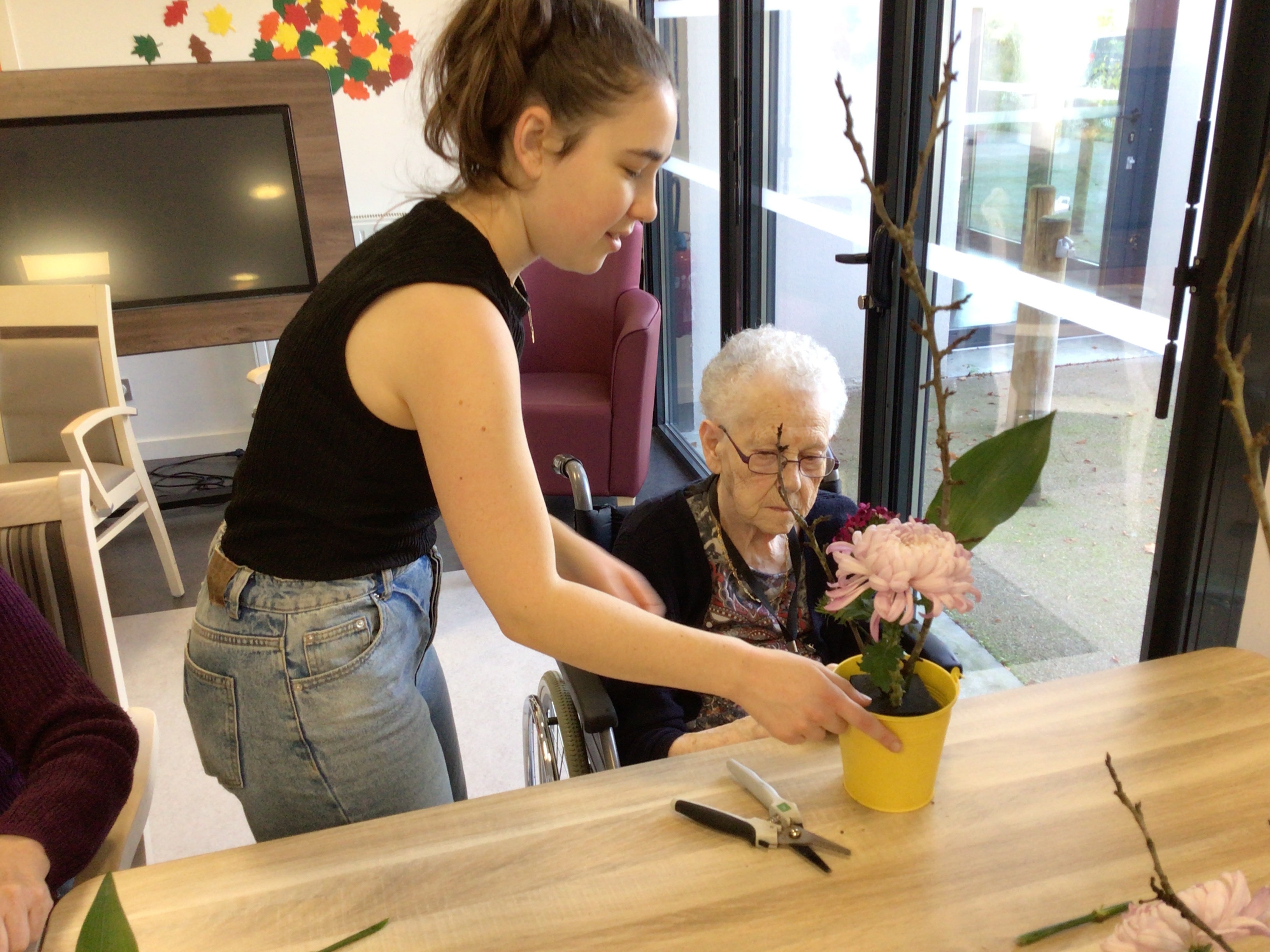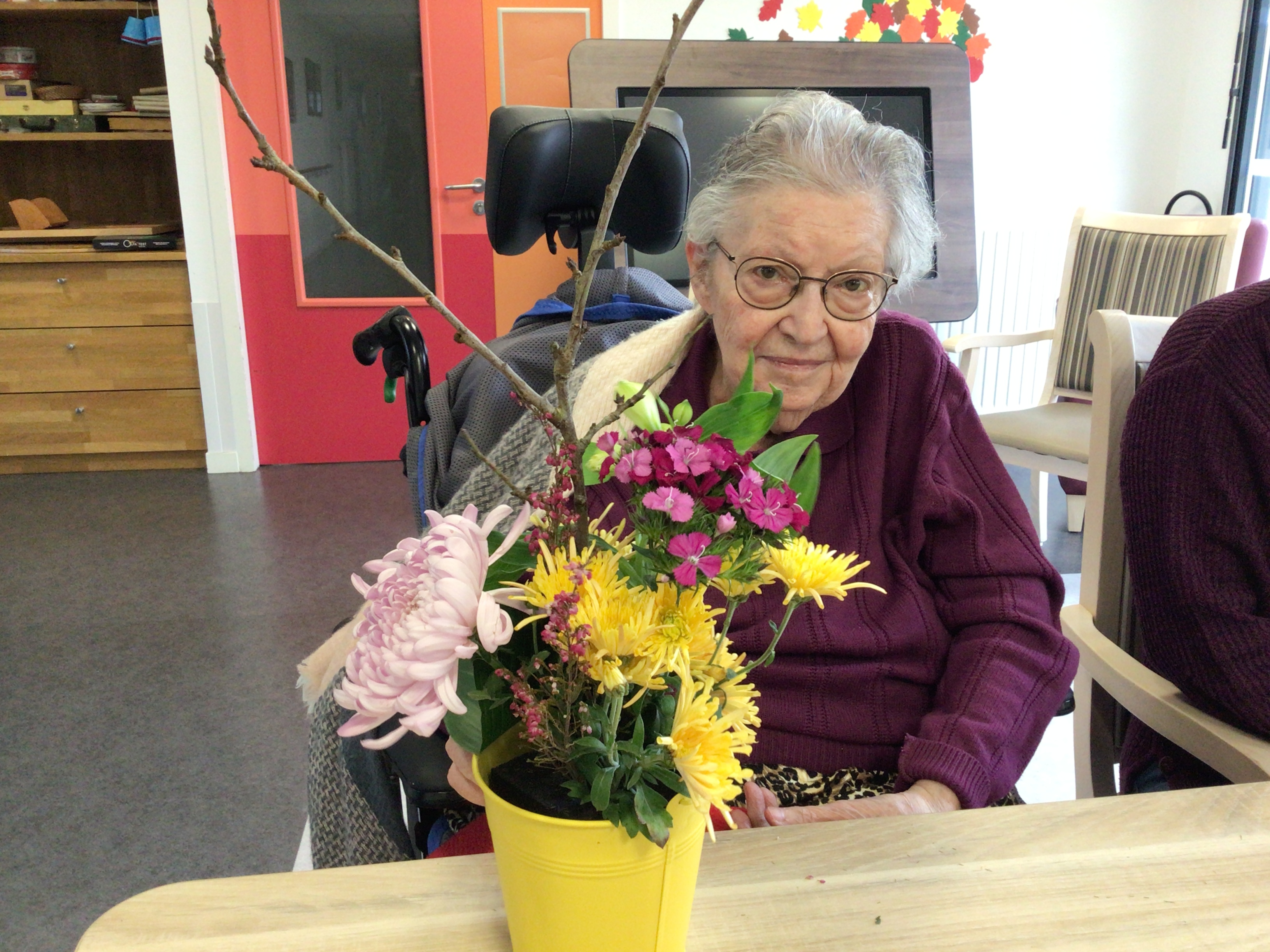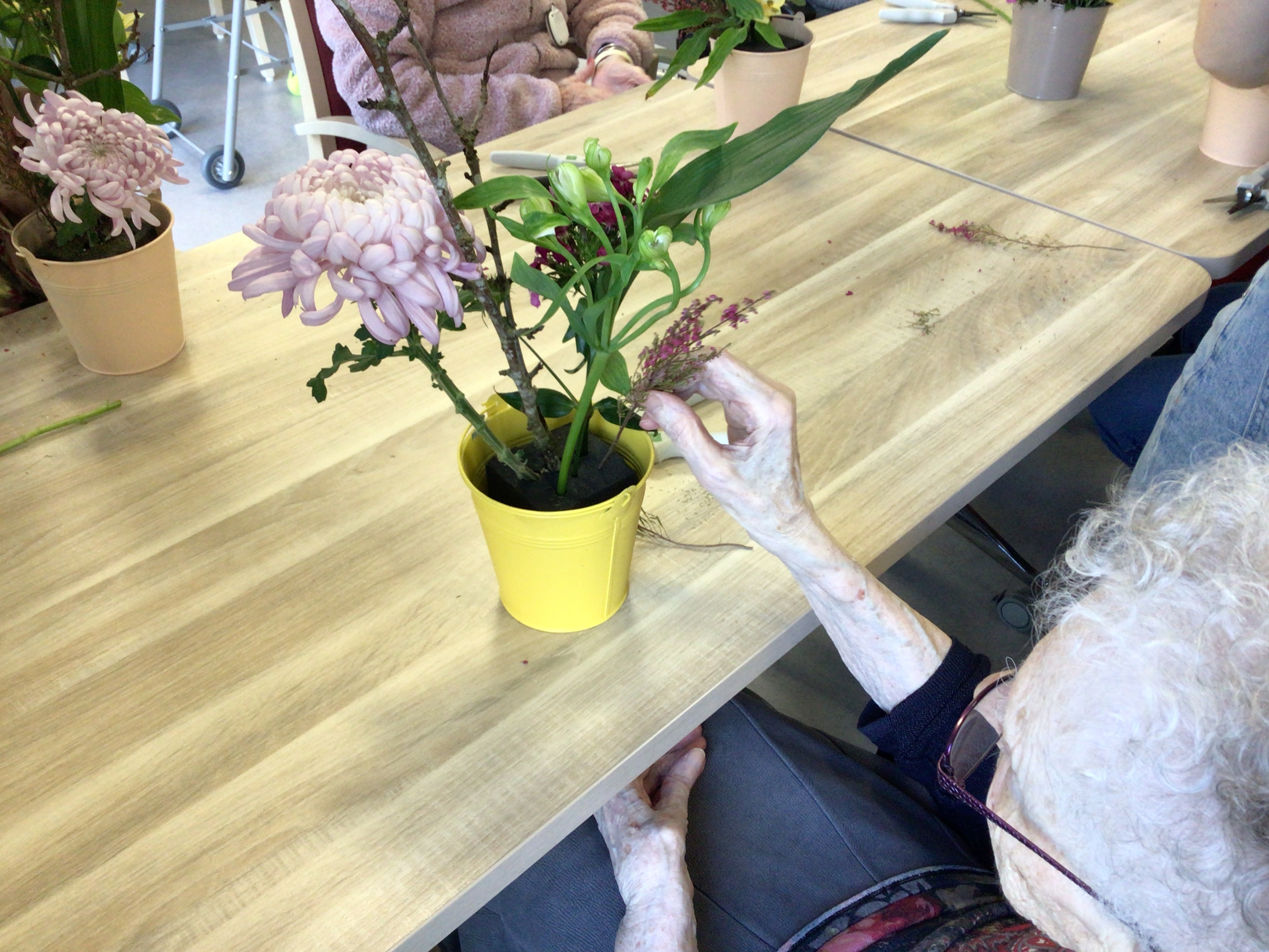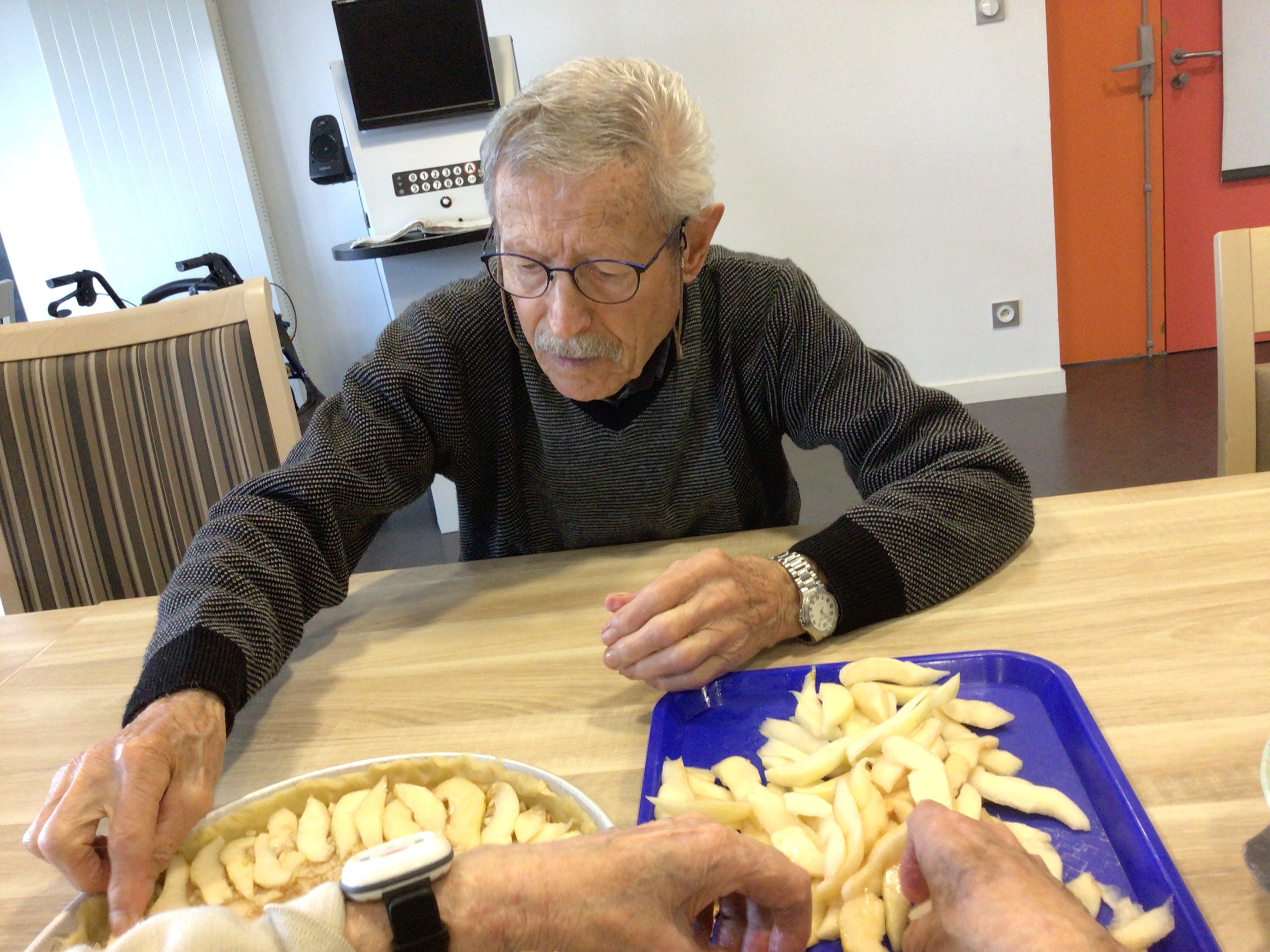 -Lecture à haute voix avec les bénévoles Josiane et Thérèse ce matin. Un moment de lecture toujours apprécié pour le groupe de résidents.