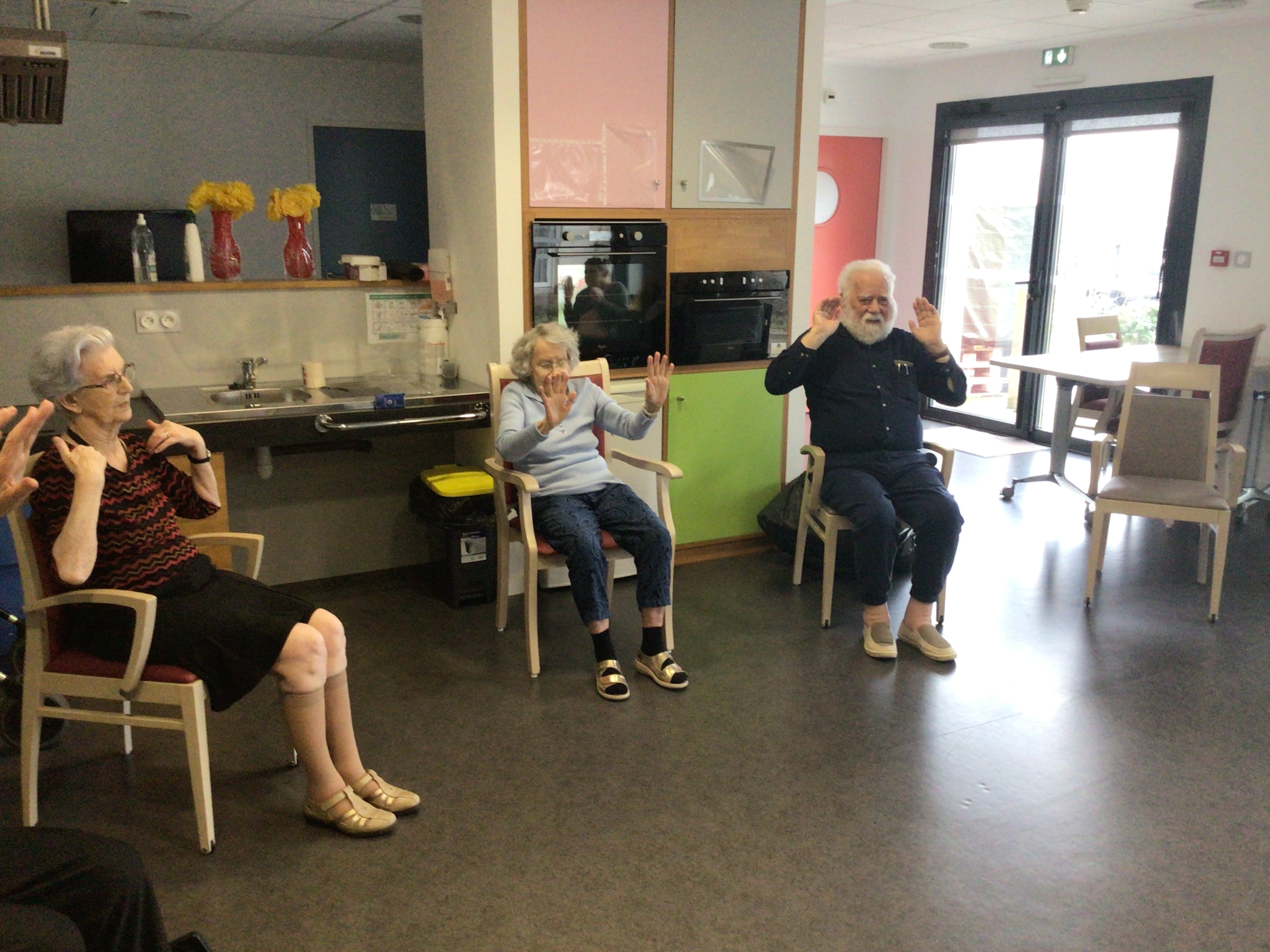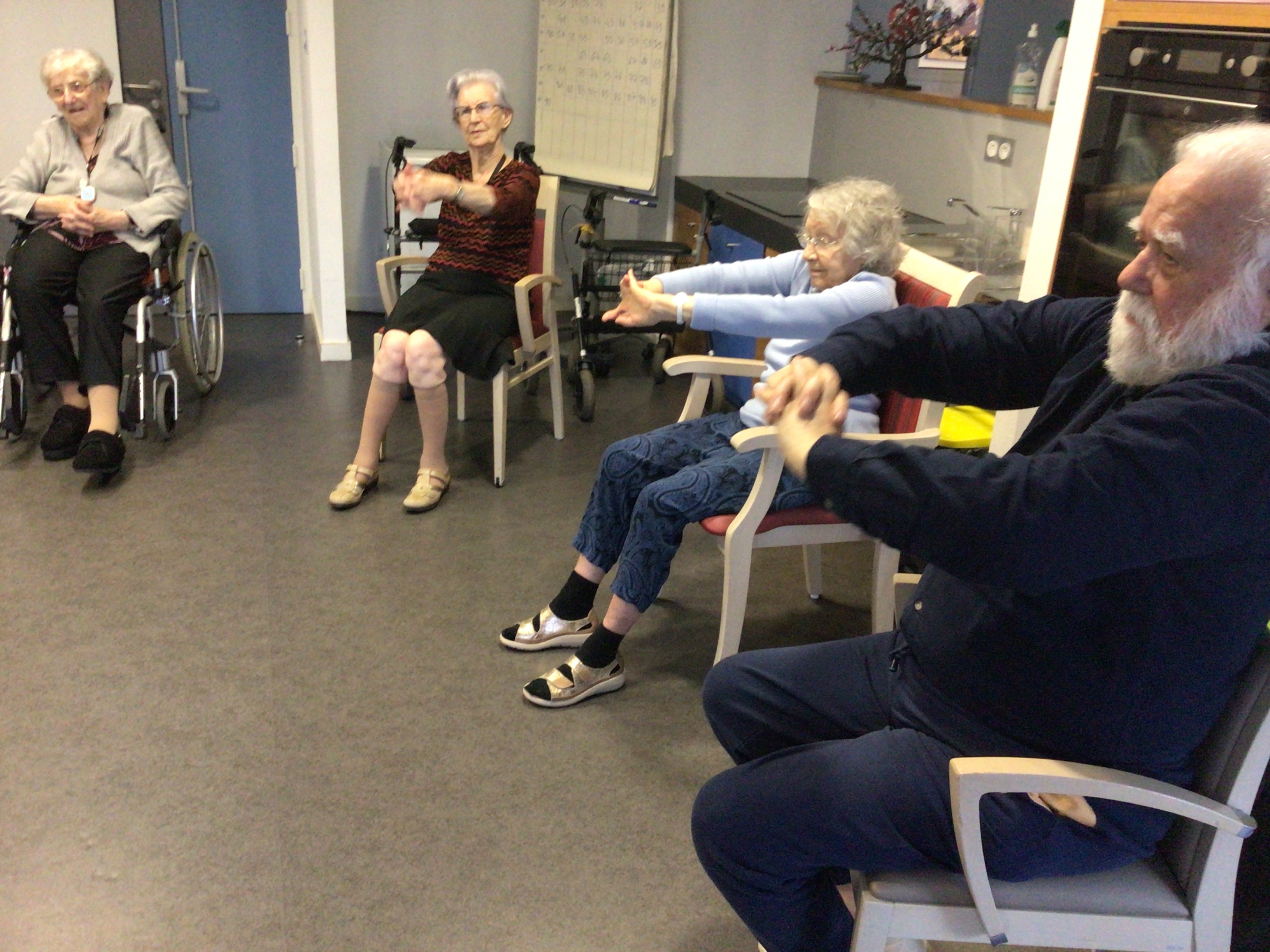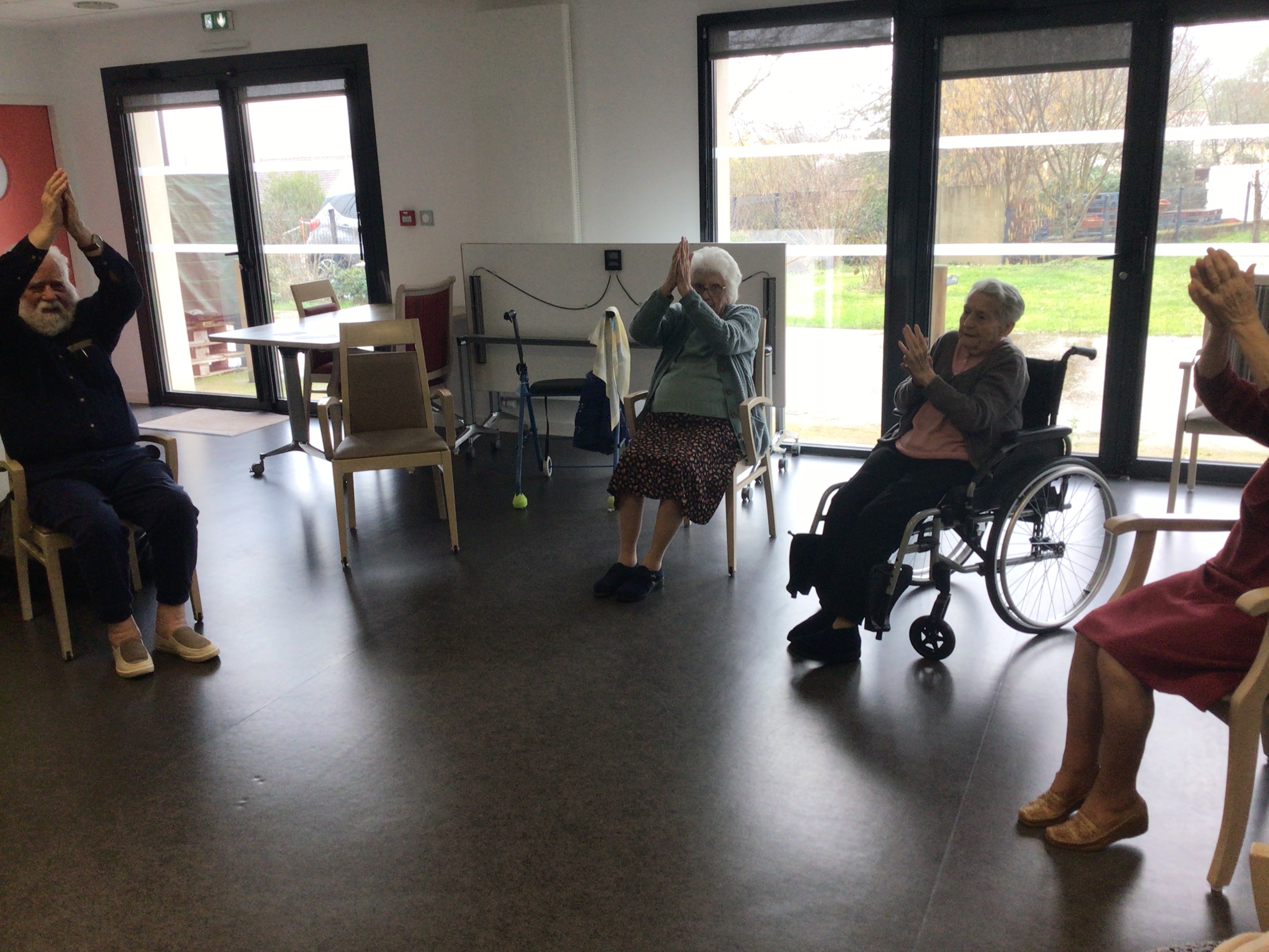 L'après midi, était consacré à l'activité Dérouill'âge: exercices déchauffement, jeu de ballons, ...l'objectif est de continuer à bouger en prenant du plaisir.