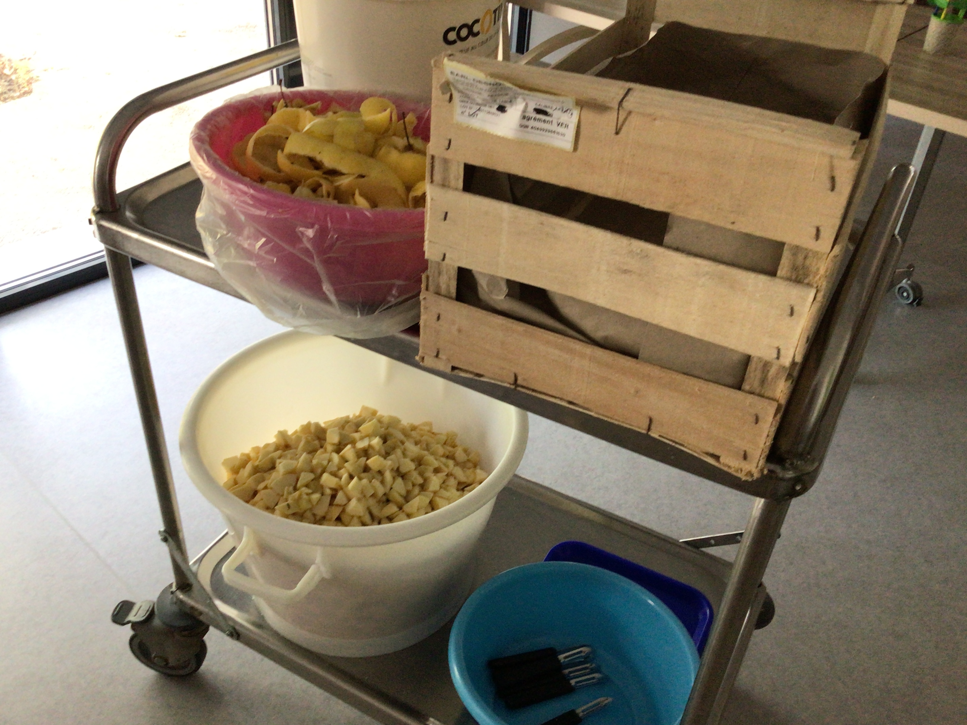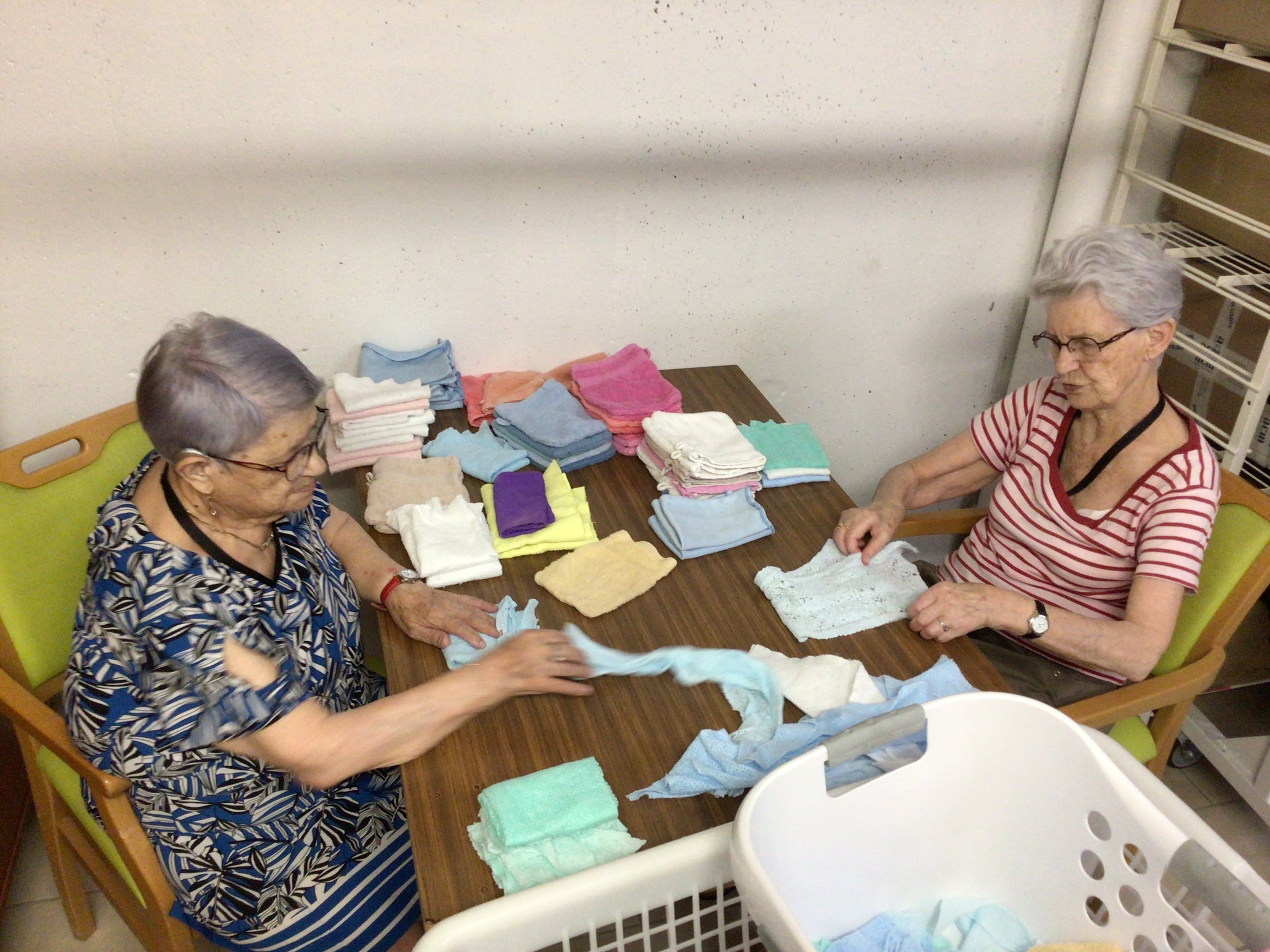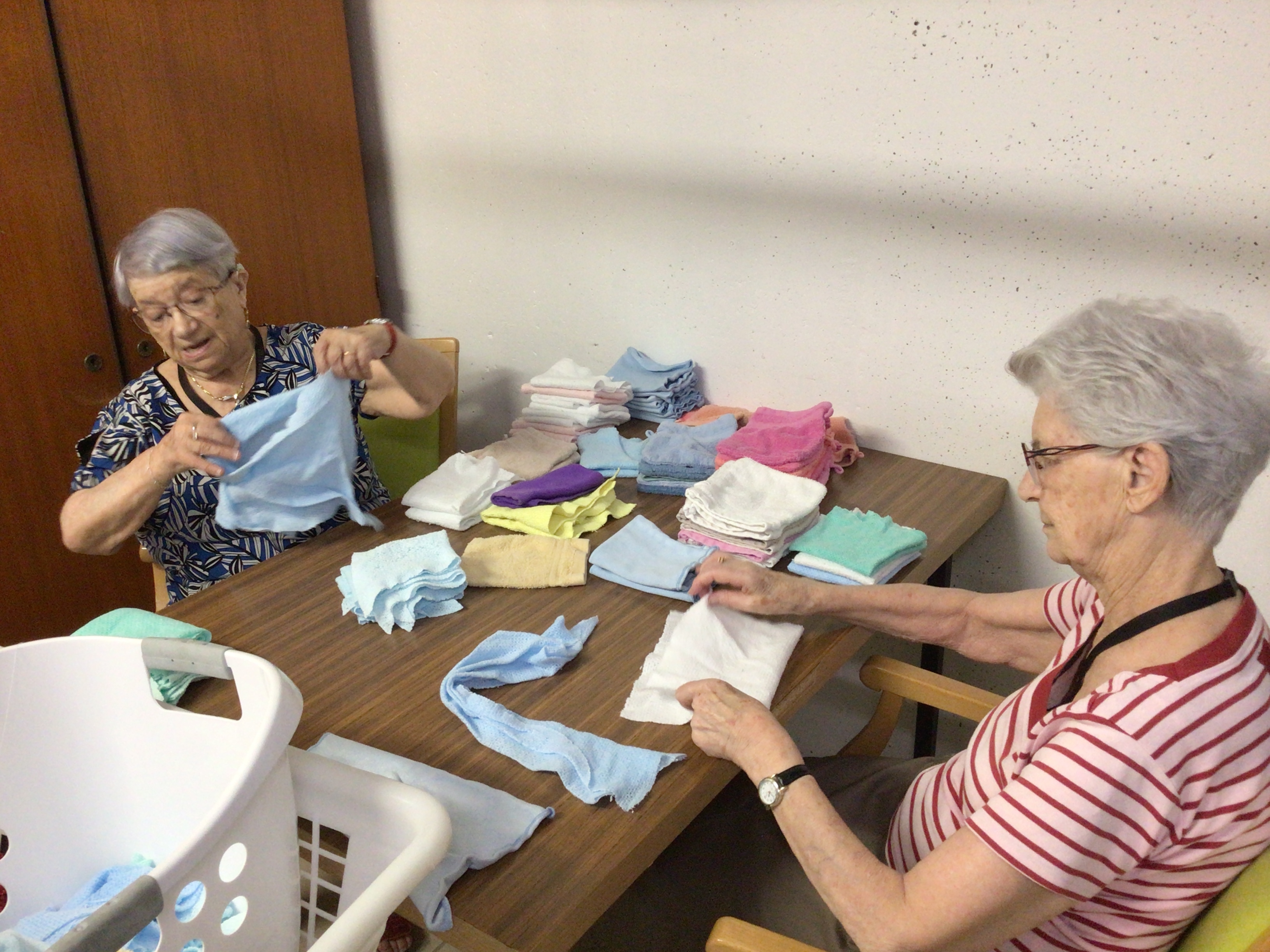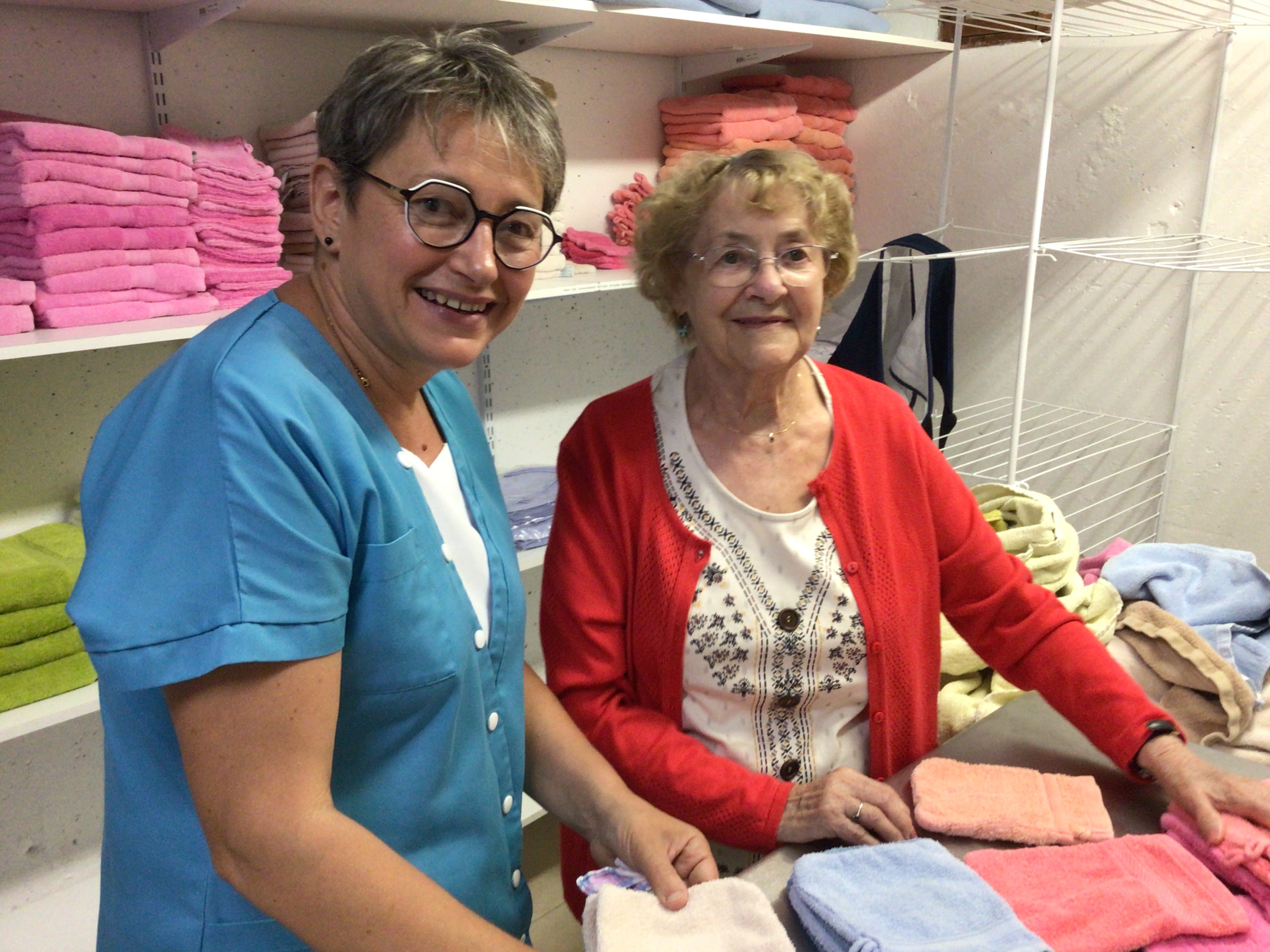 Après l'épluchage des pommes qui permettra de déguster par la suite un bon dessert préparé par les cuisines de l'EHPAD et le pliage du linge par des résidentes volontaires et motivées, la journée s'est poursuivie avec une séance cinéma , et la diffusion du film "le fils de l'épicier".