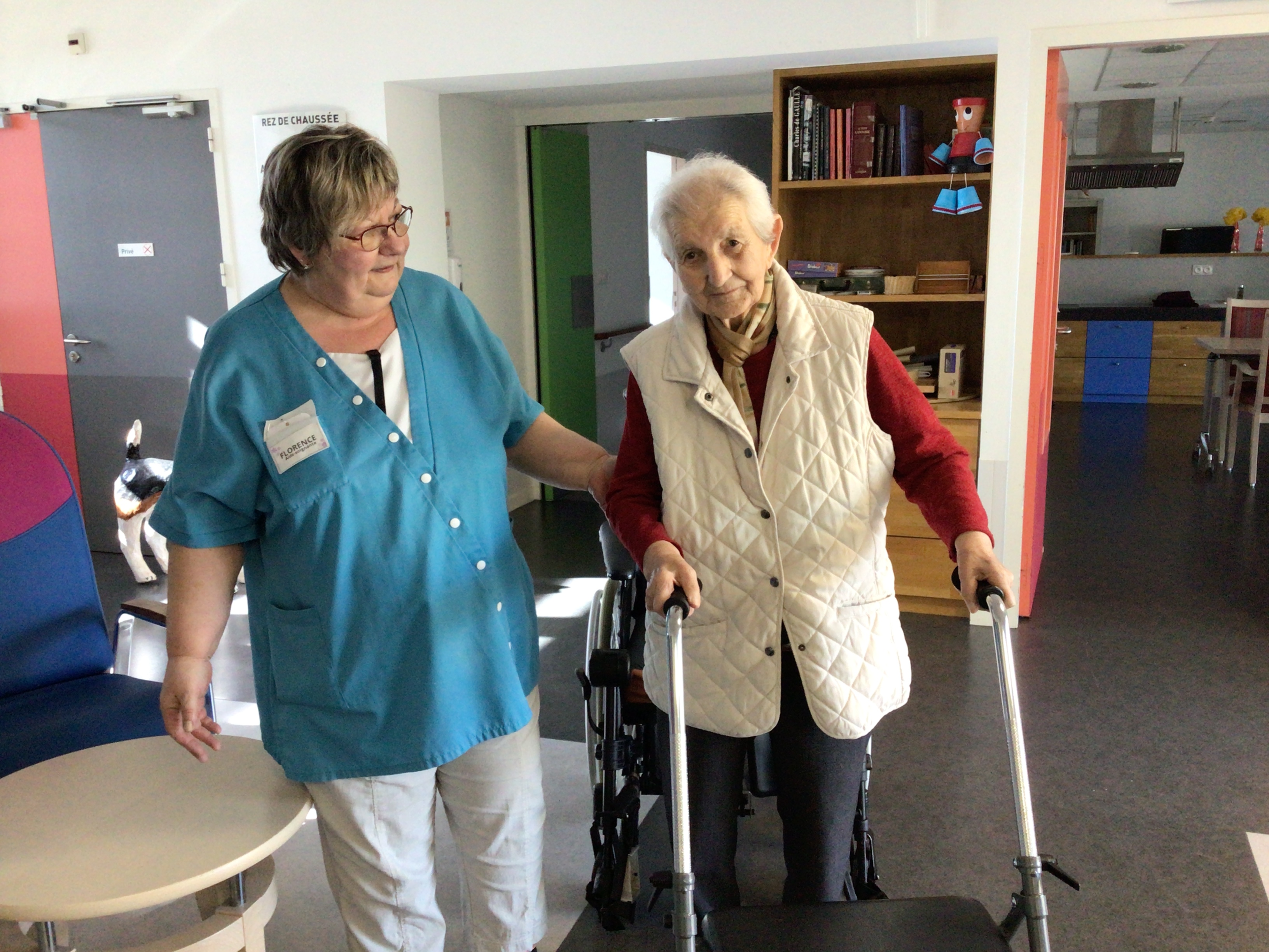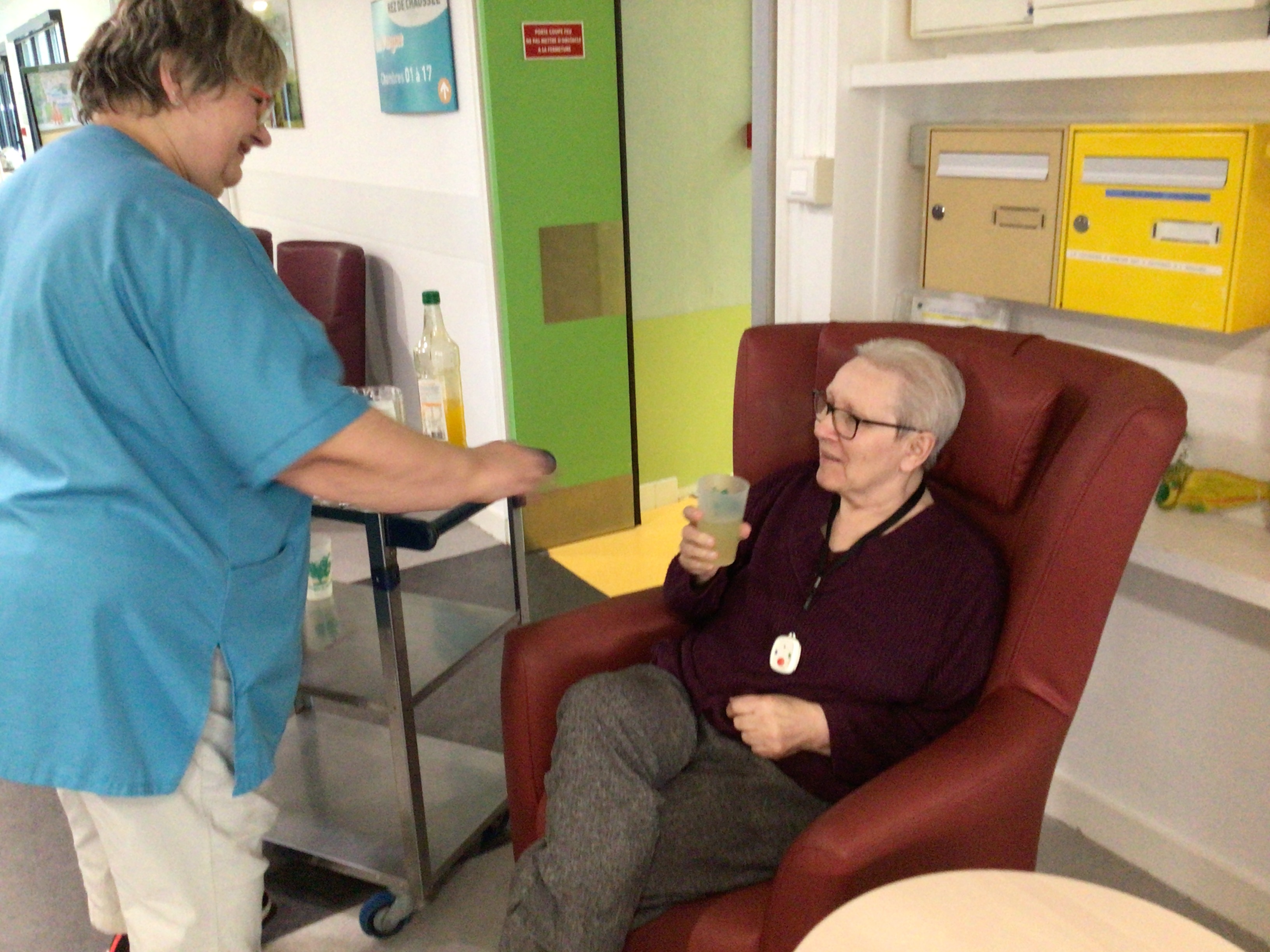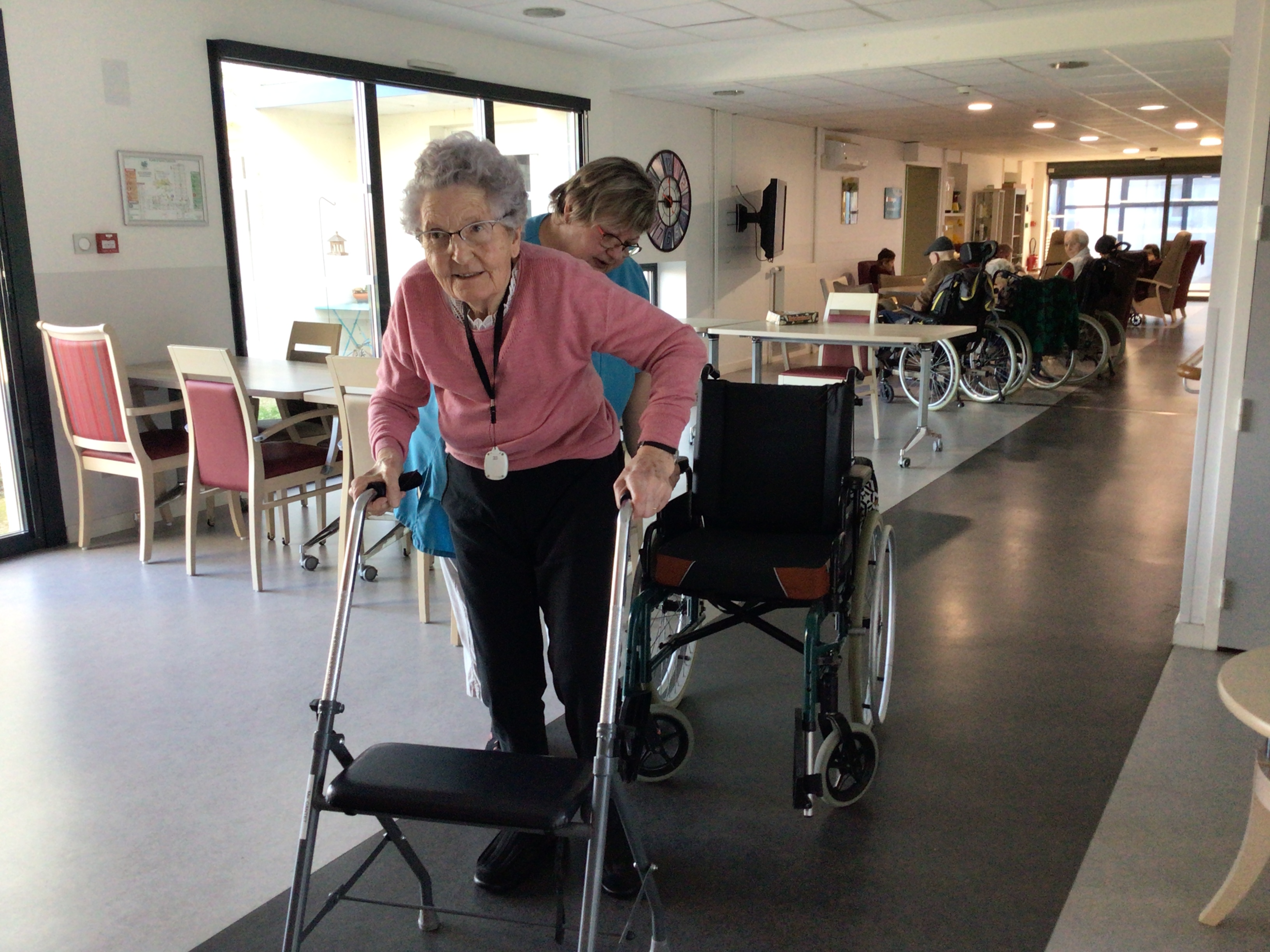 matin: reprise de la marche avec de l'aide pour certaines! Quel plaisir de se mobiliser. Il faut s'hydrater tout au long de la journée afin que son corps soit en bonne santé.