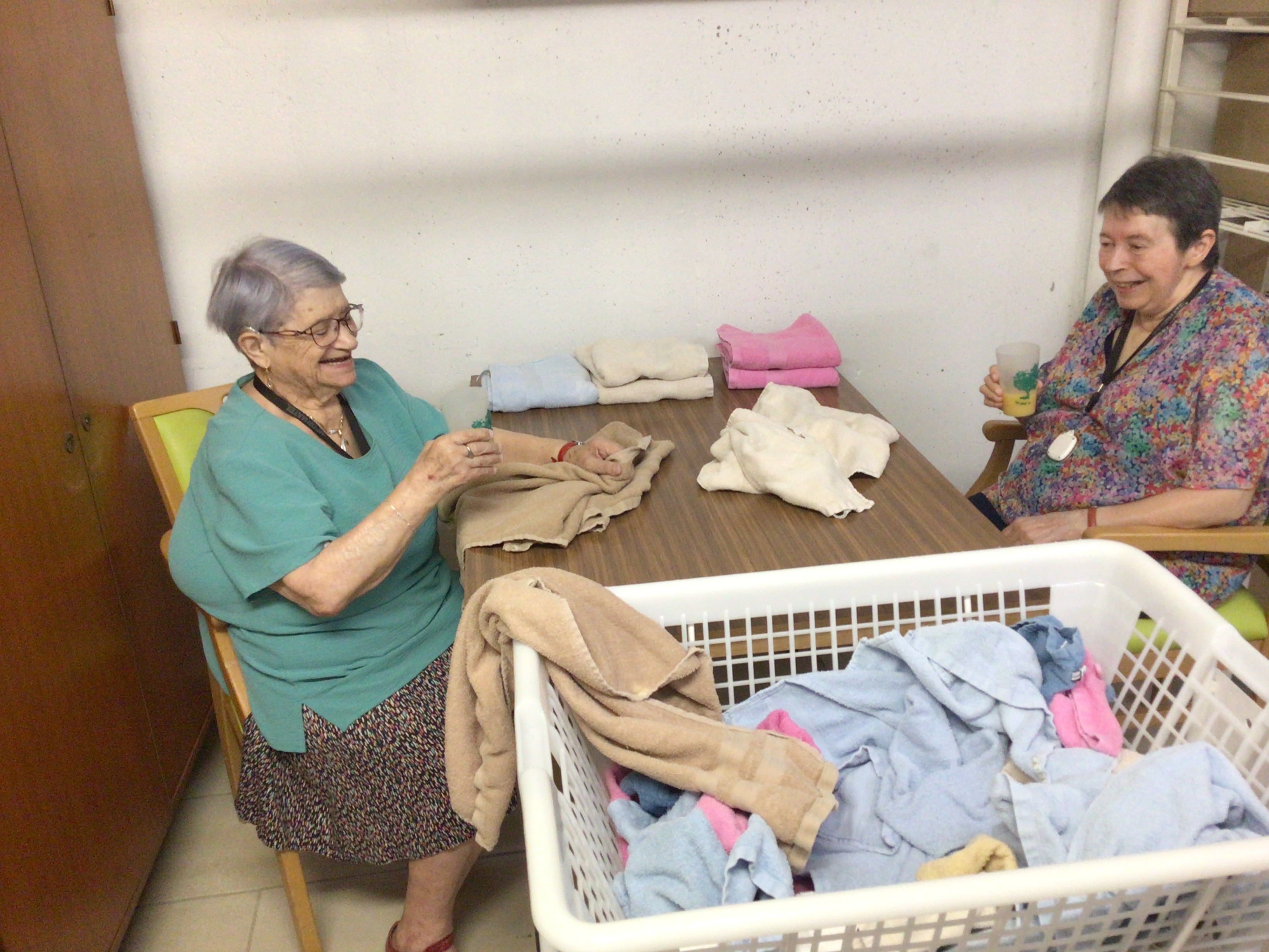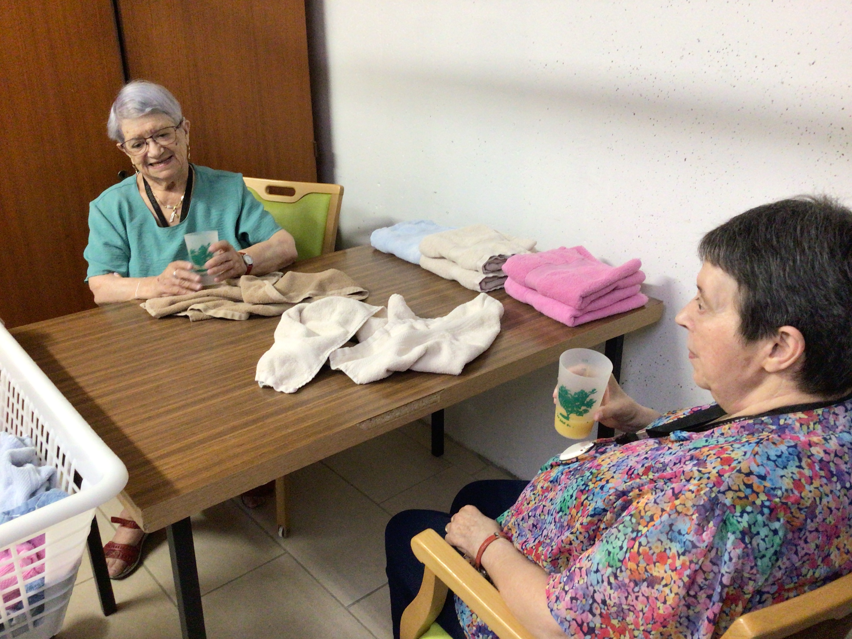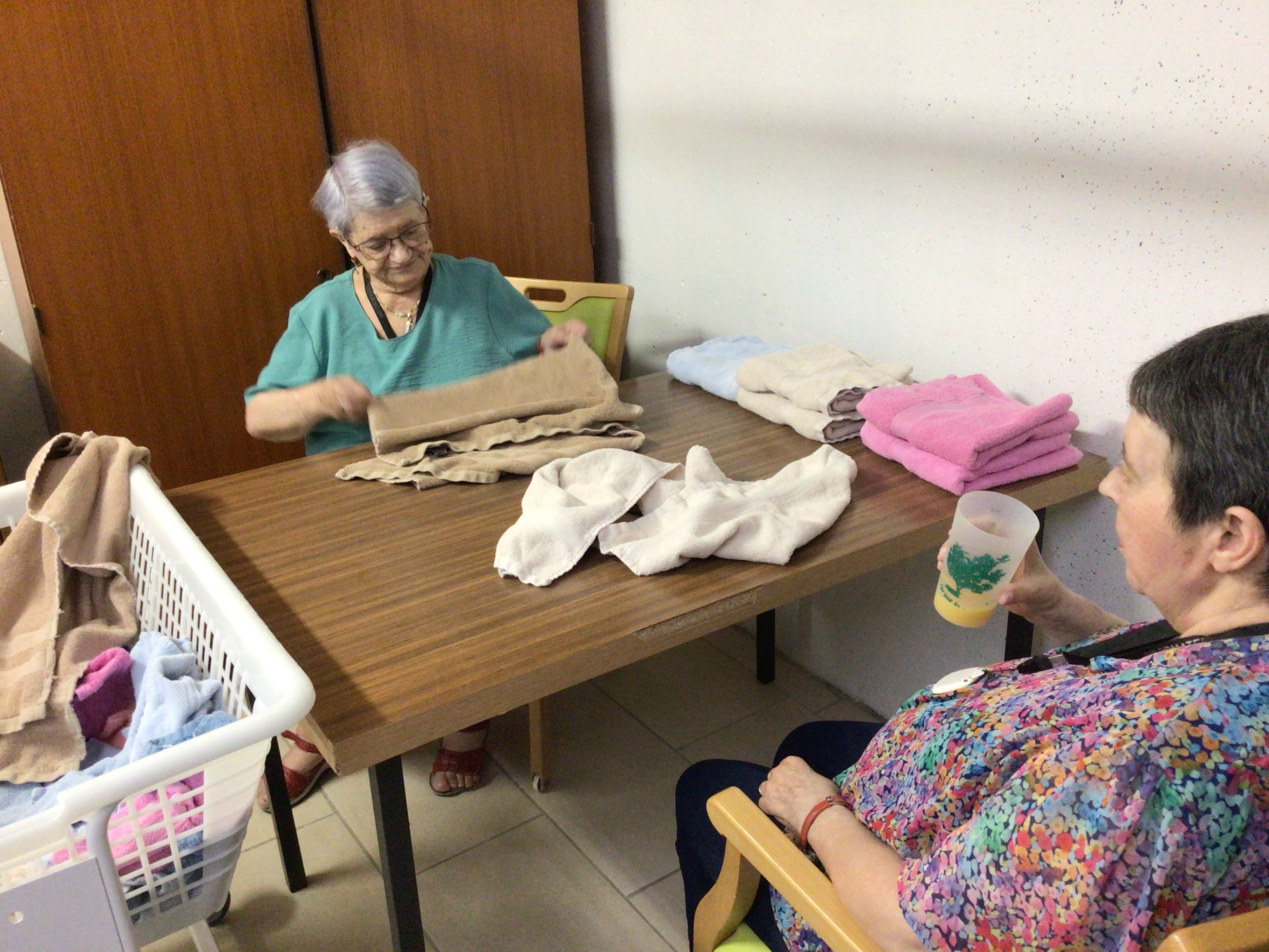 -Pliage du linge comme tous les matins, selon la méthode Montessori, dans la joie et la bonne humeur.