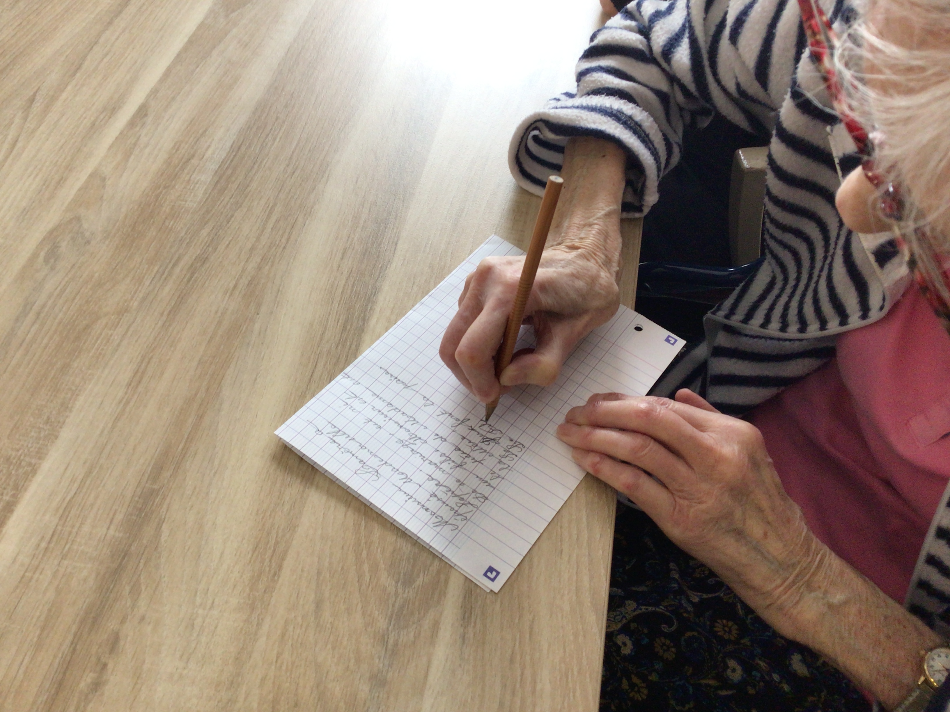 -Dictée cet après-midi, des résidents très à l'écoute,appliqués et qui ont pratiquement fait un sans-faute.