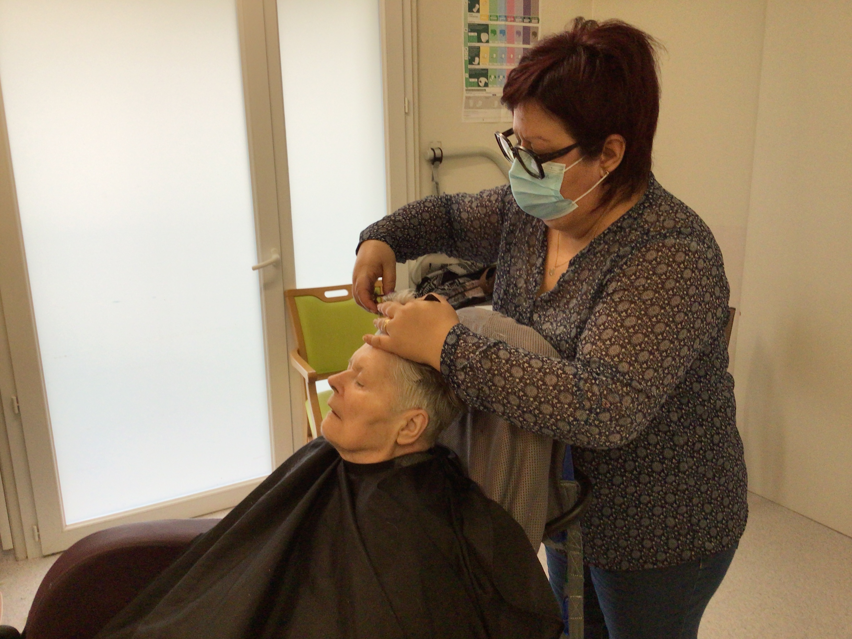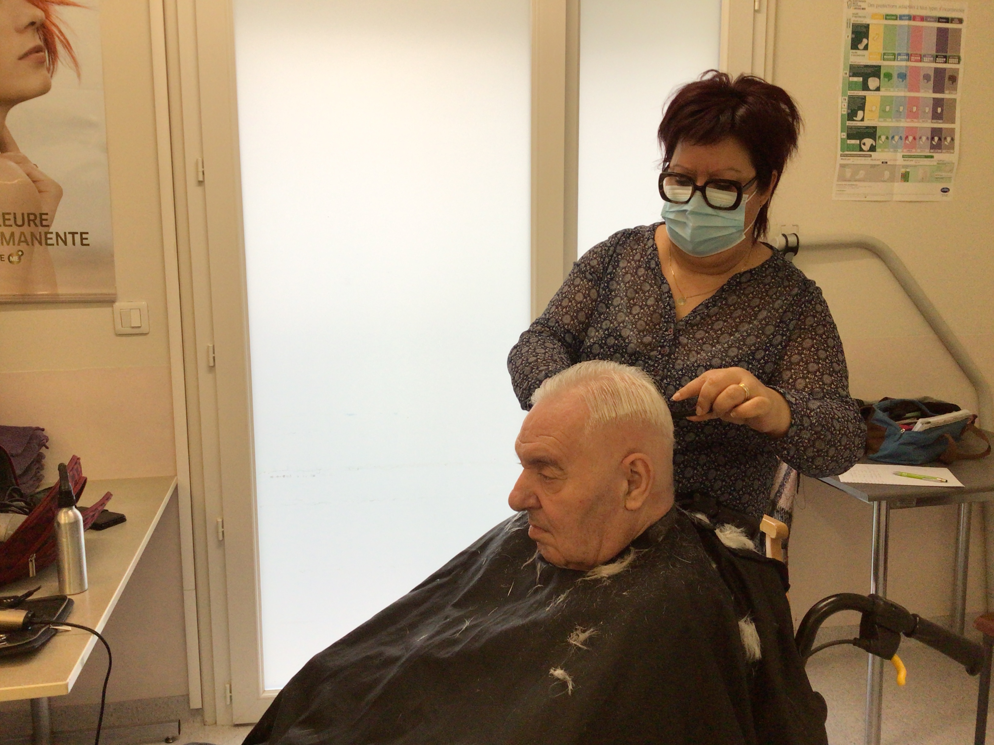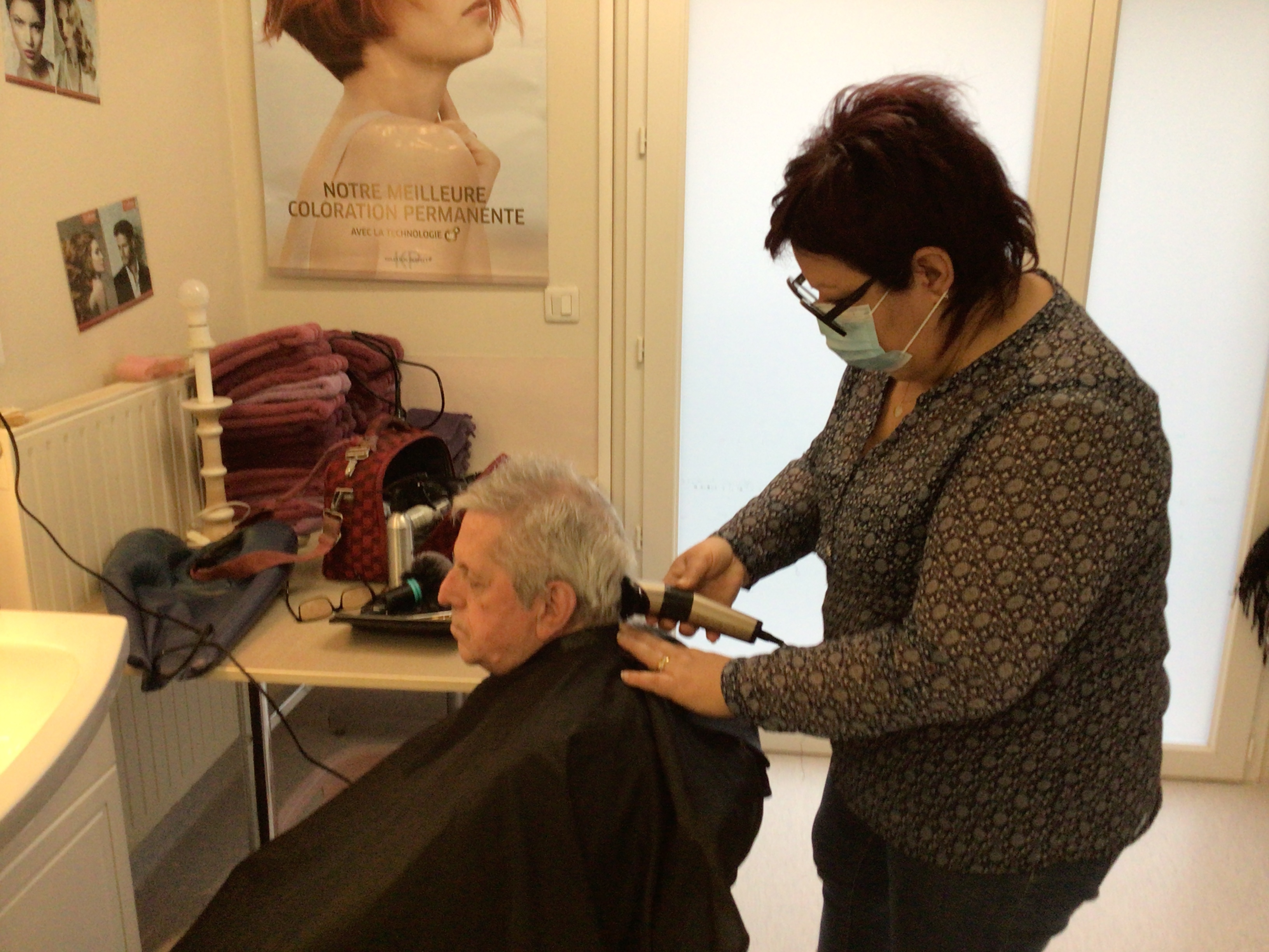 Matin: Passage de la coiffeuse pour se refaire une beauté pour les messieurs et les dames. shampoing, coupe, brushing,...