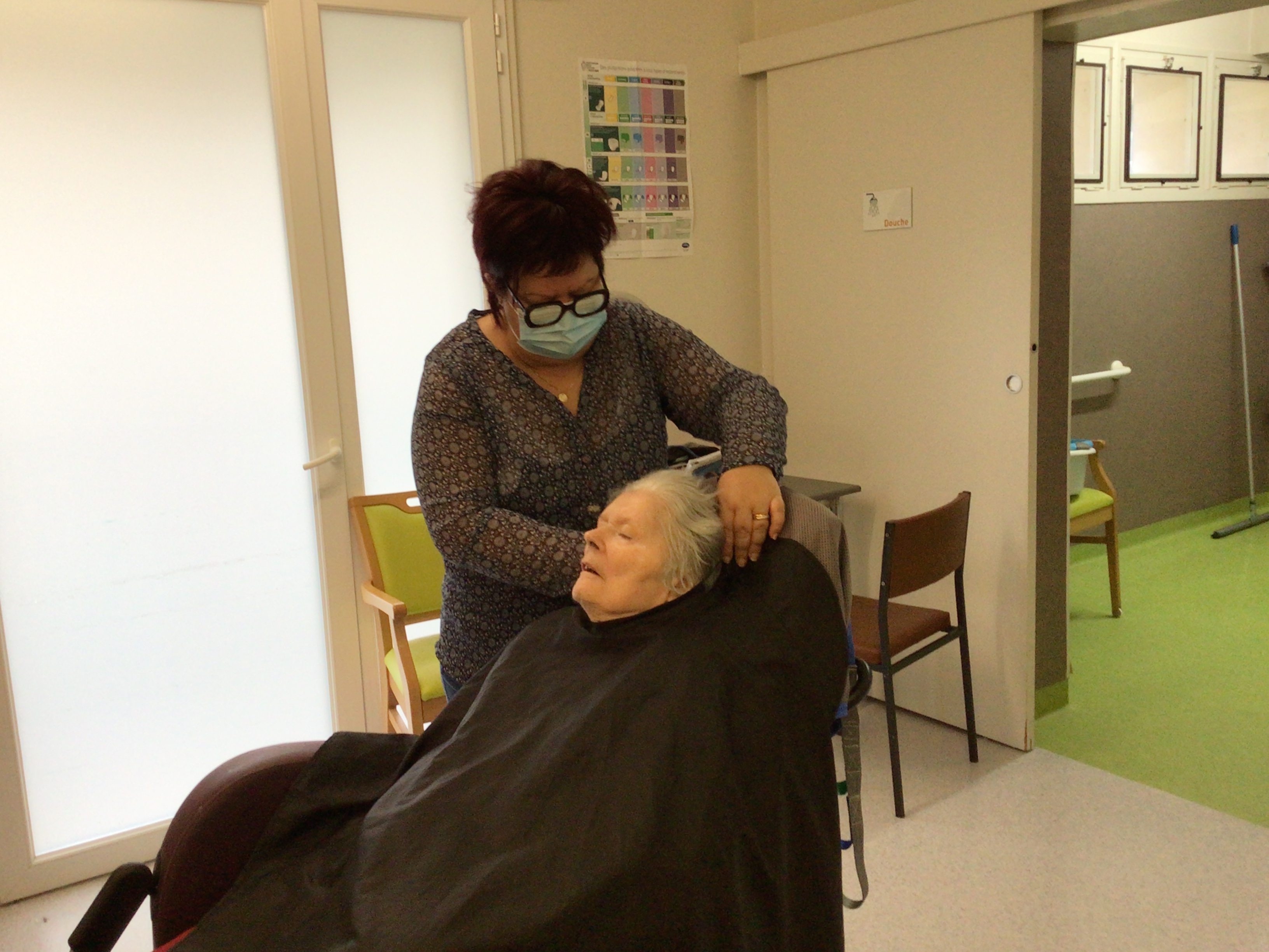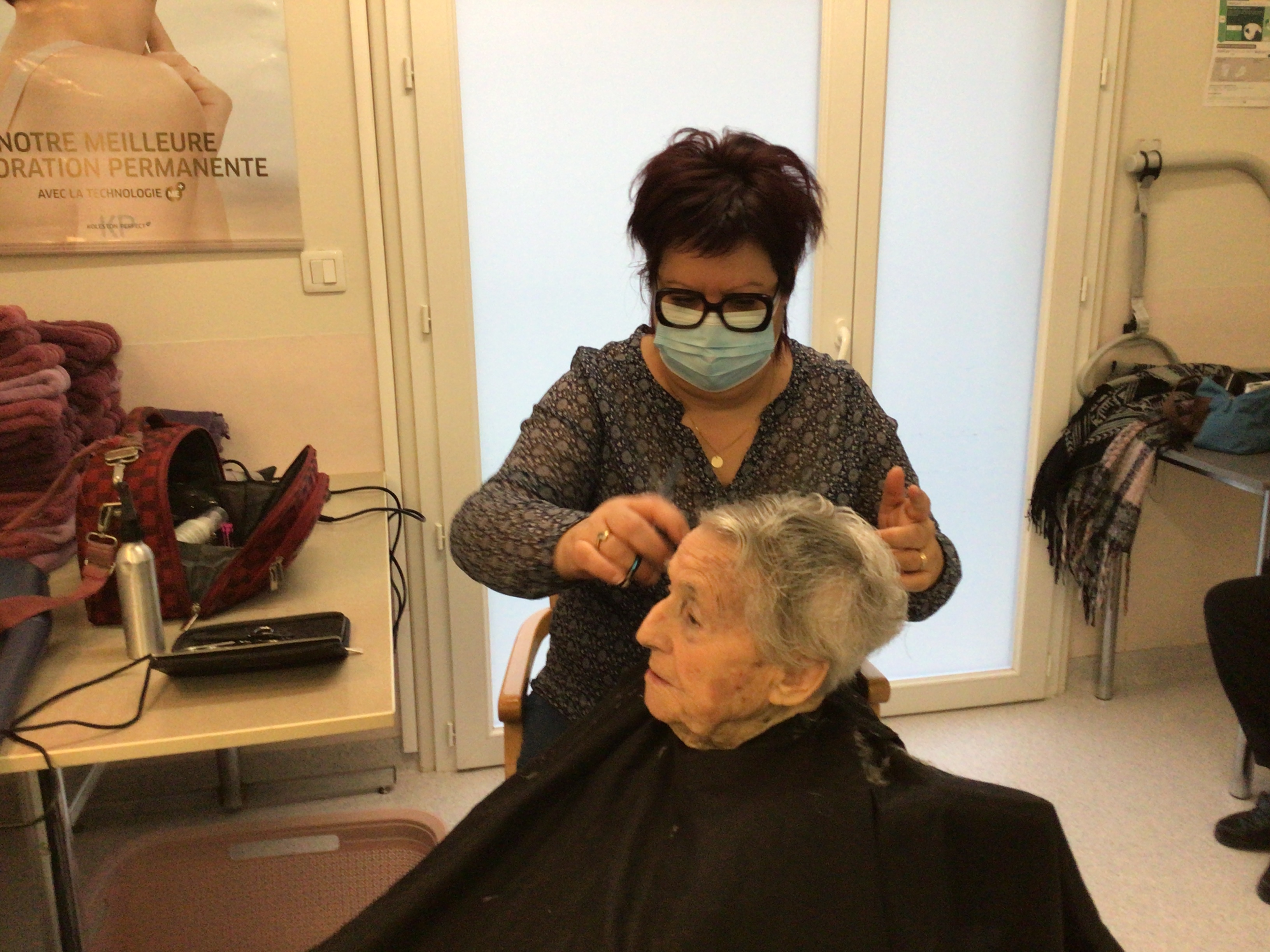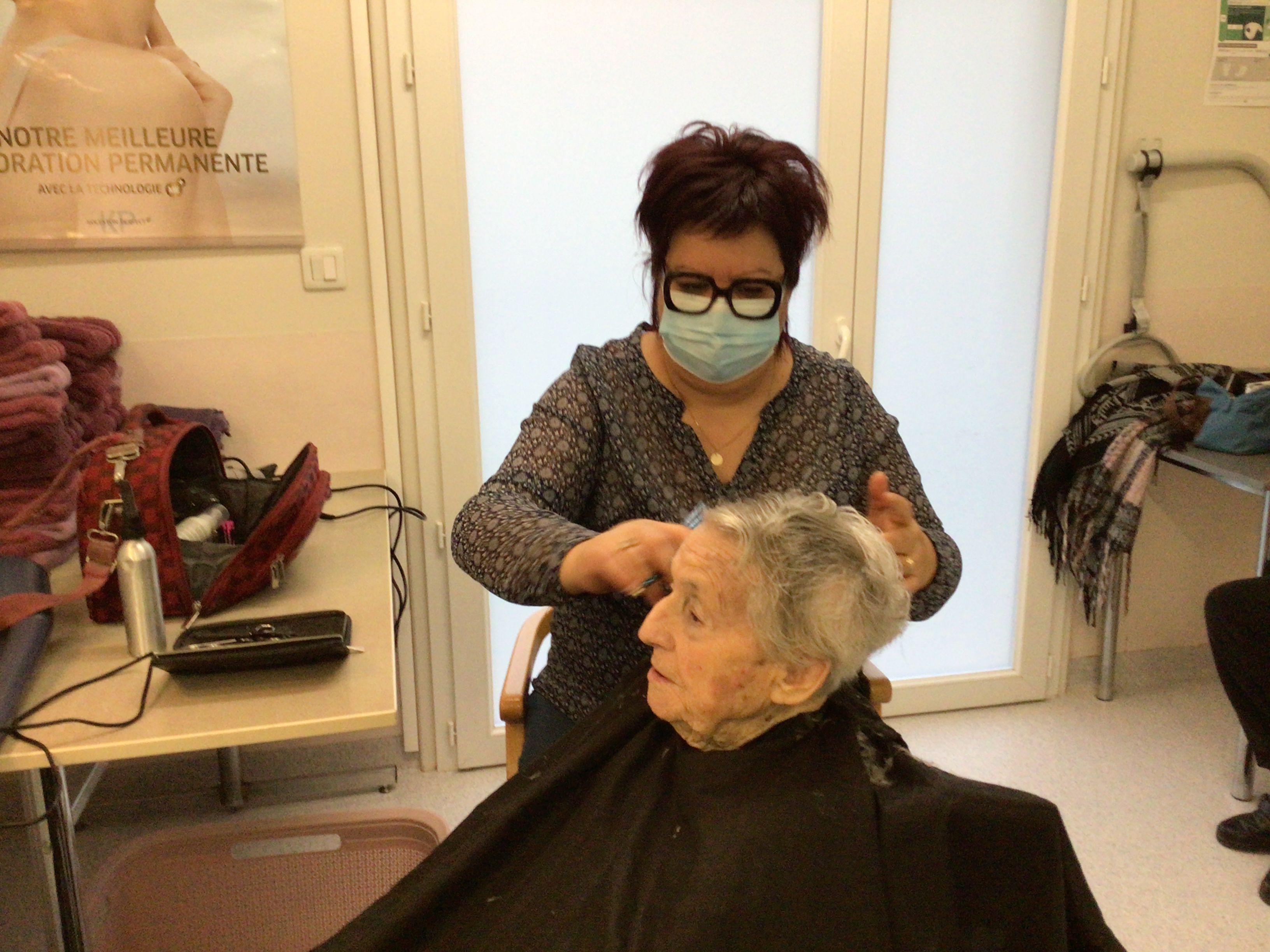 Matin: Passage de la coiffeuse pour se refaire une beauté pour les messieurs et les dames. shampoing, coupe, brushing,...