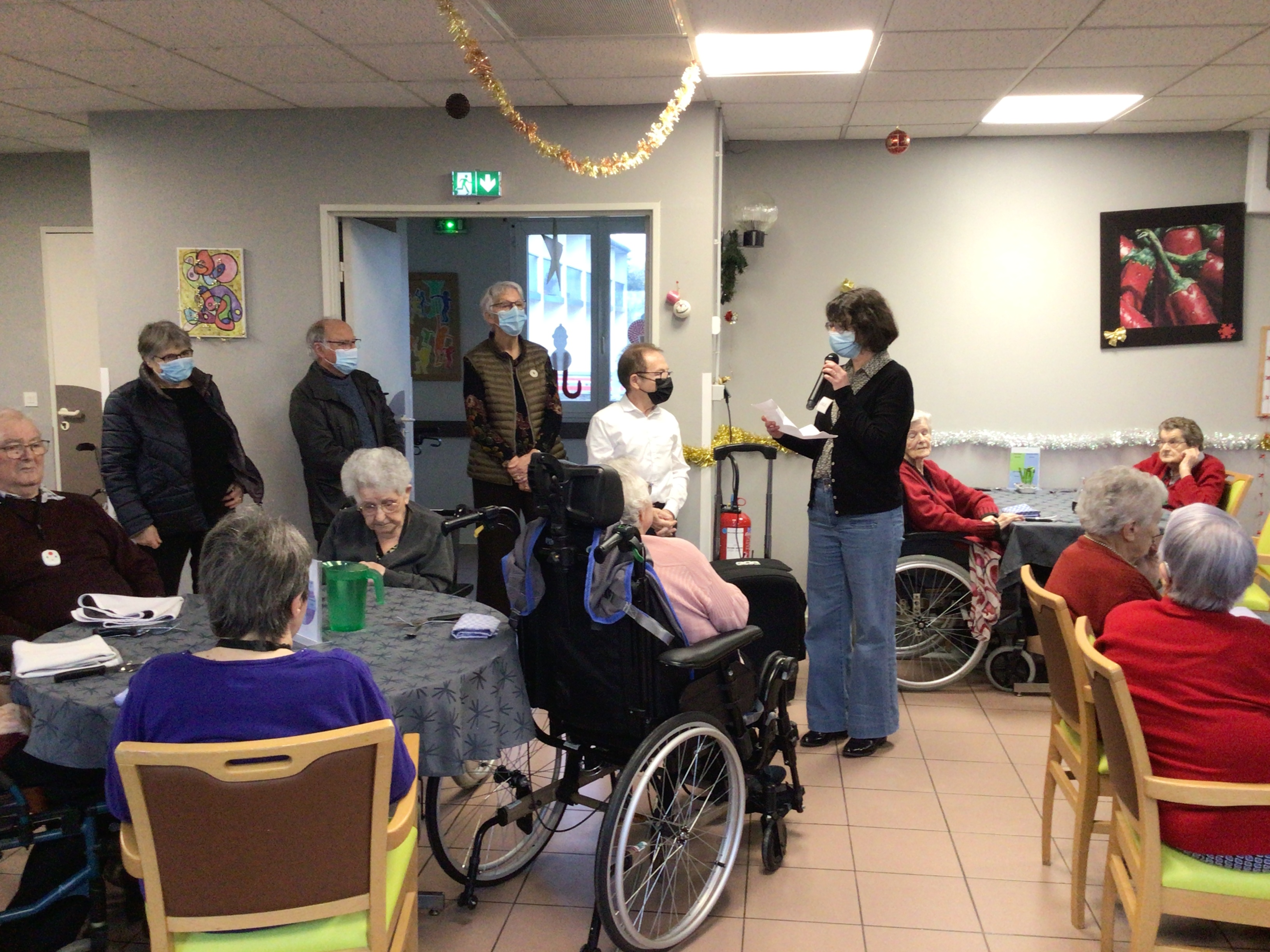 Mr Le Maire Jany Peronnet accompagné de quelques membres du Conseil d'Administration et Me Courot, Directrice de la structure sont venus présenter leurs voeux pour l'année 2025. Un discours et un verre de l'amitié ont accompagné ces voeux ave le personnel présent et les Résidents.