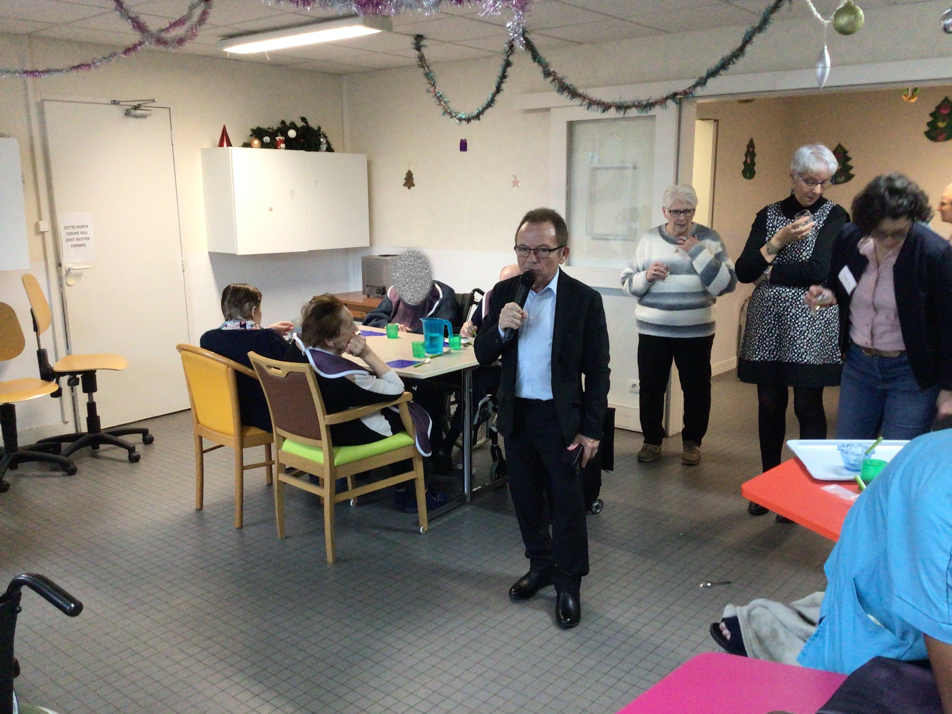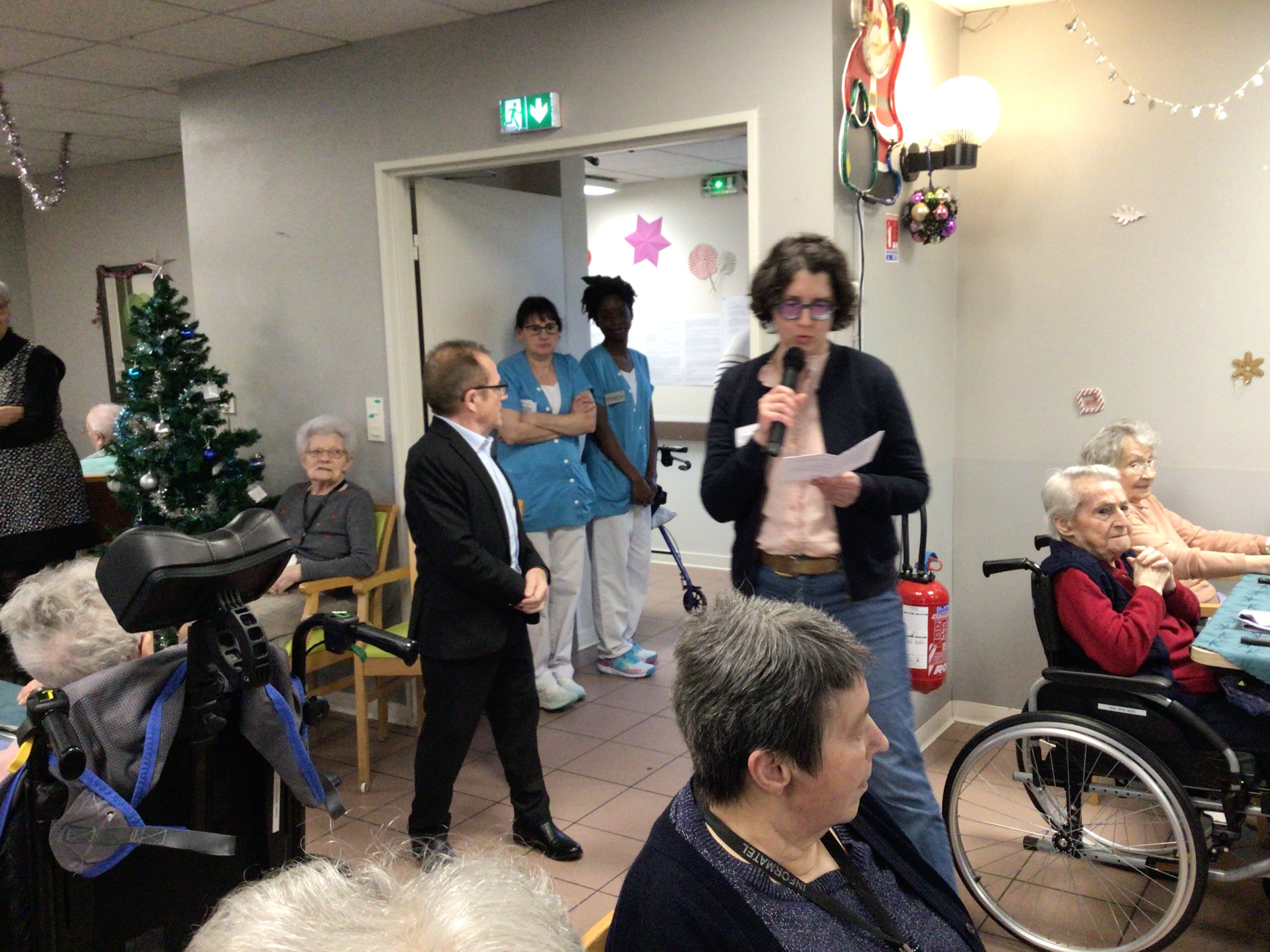 Aux côtés d’Emilie Courot, Directrice de l’etablissement, M. le Maire Jany Péronet a souhaité la bonne année aux résidents et à l’ensemble du personnel de l’ehpad.