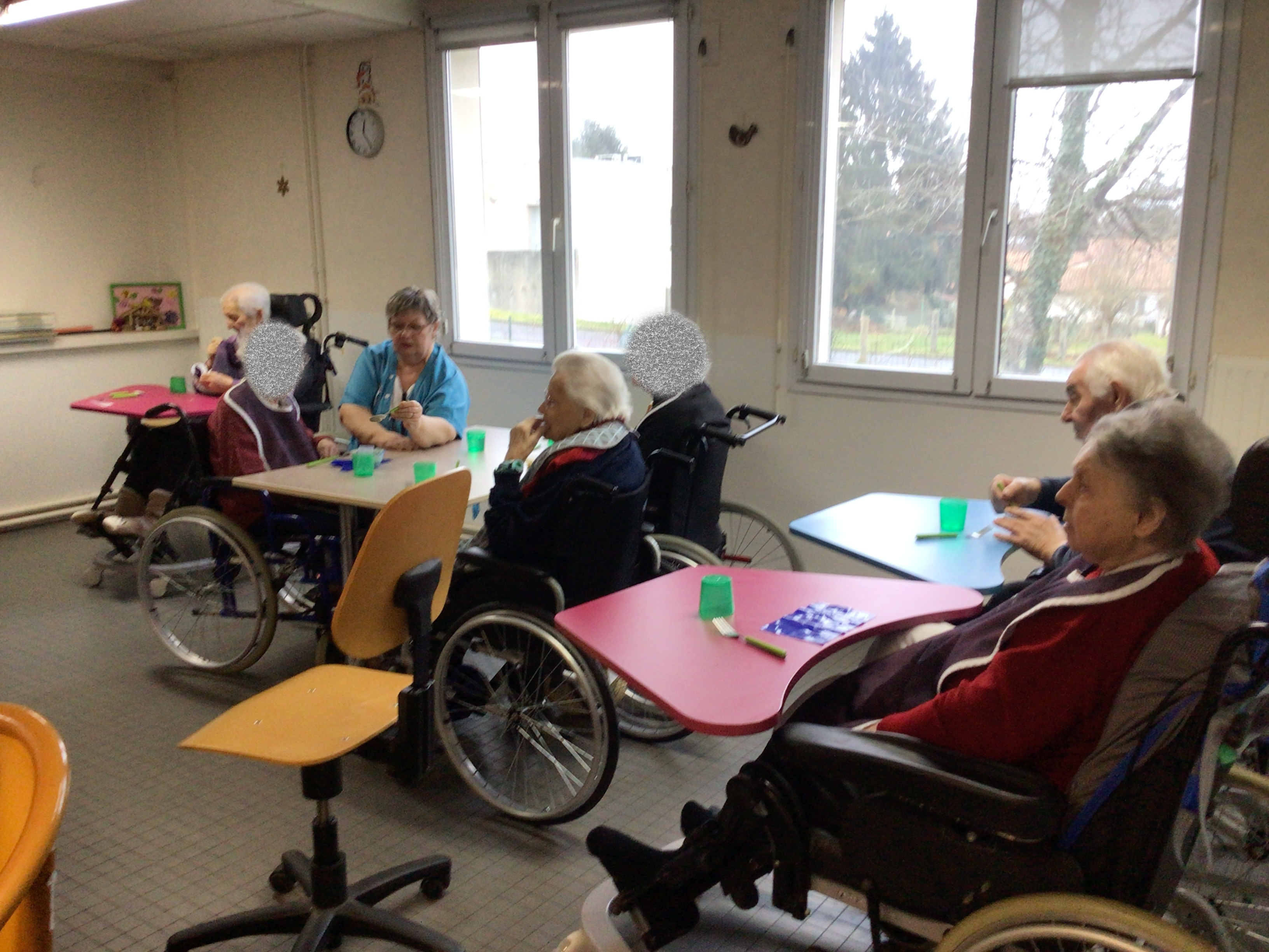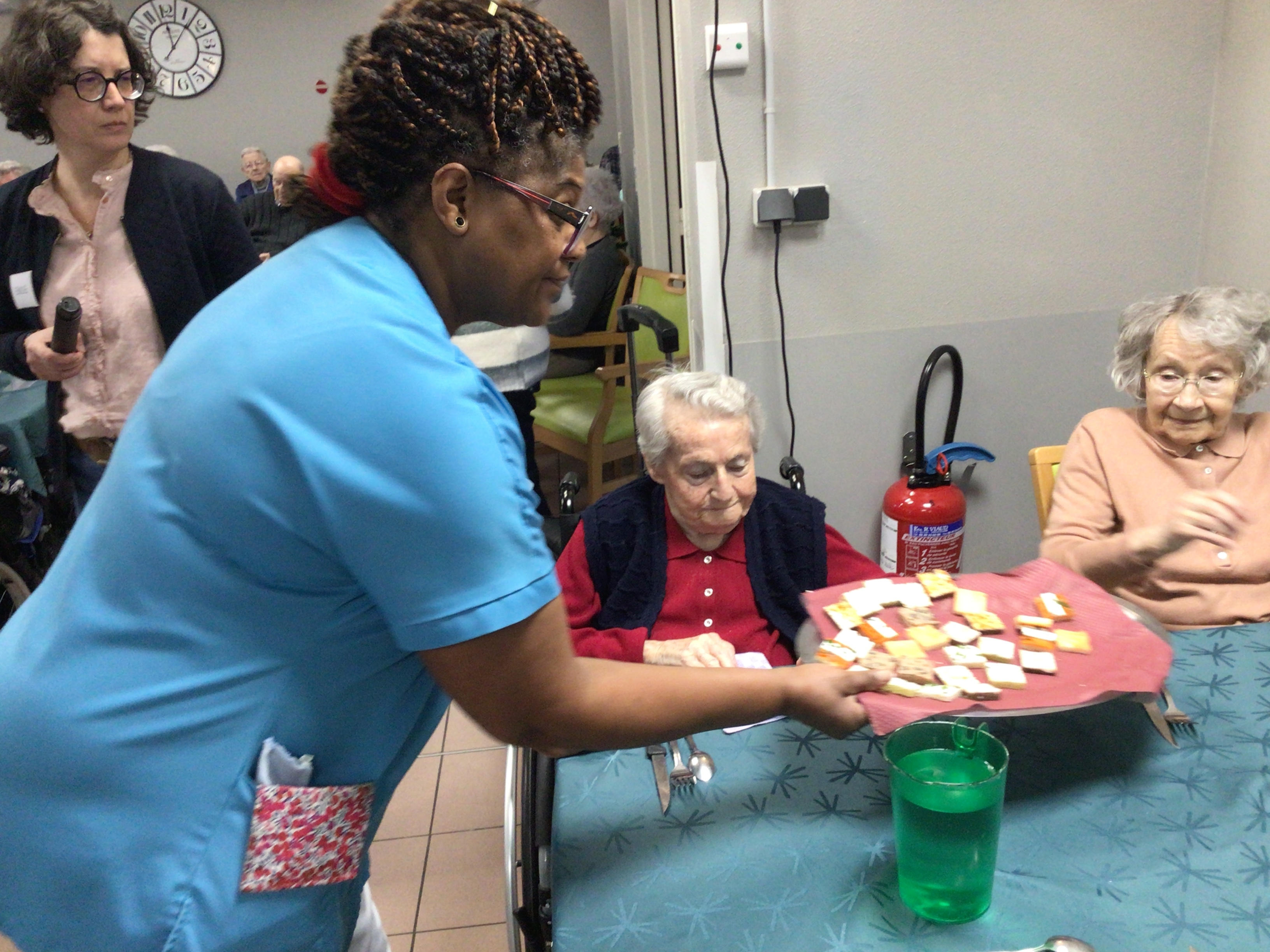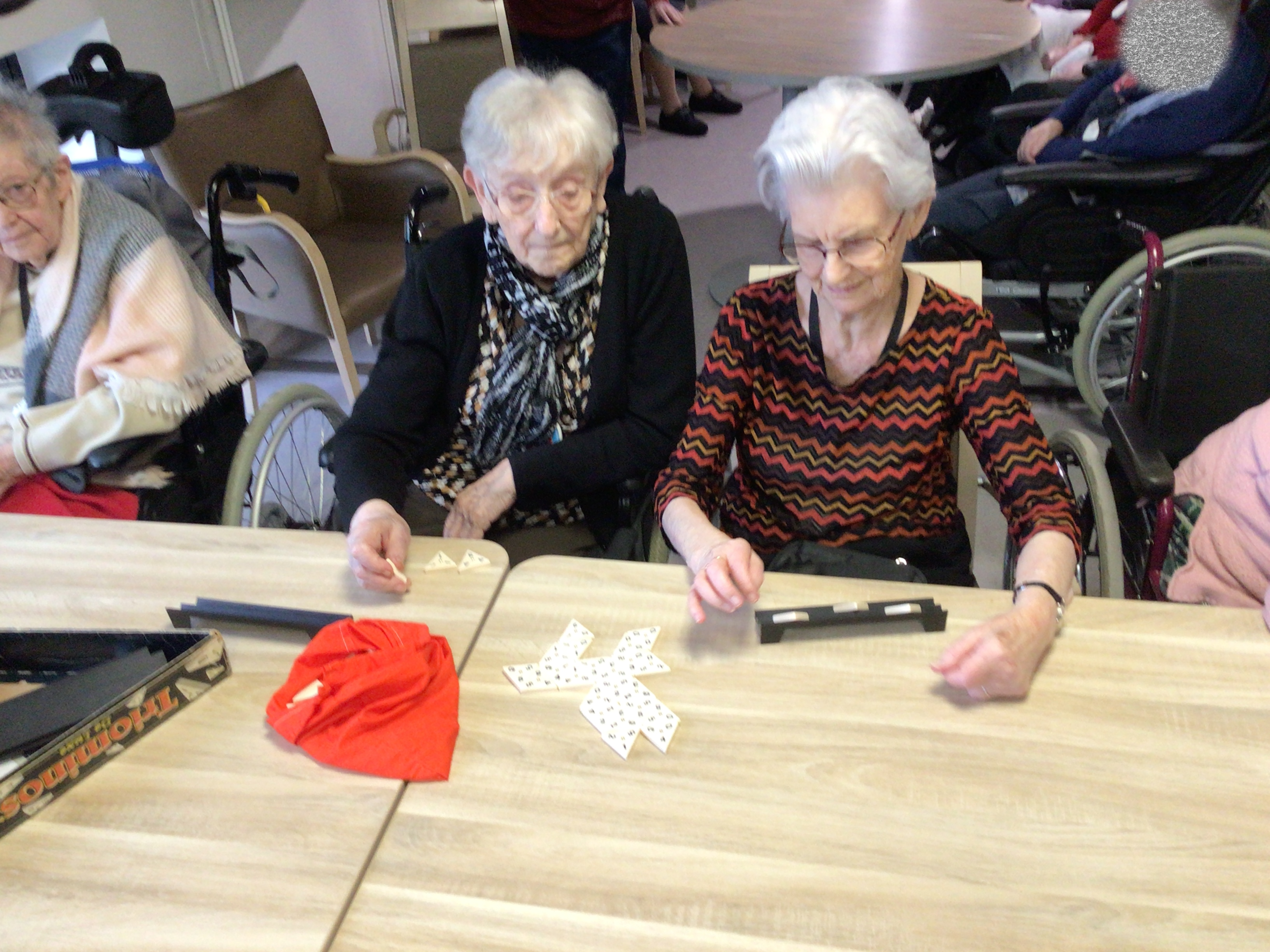 Marguerite notre bénévole était aussi présente pour participer aux jeux de petits chevaux et Claudie, l'animatrice a géré les jeux de société divers qui étaient proposés (petits chevaux, triominos, crack list…).
