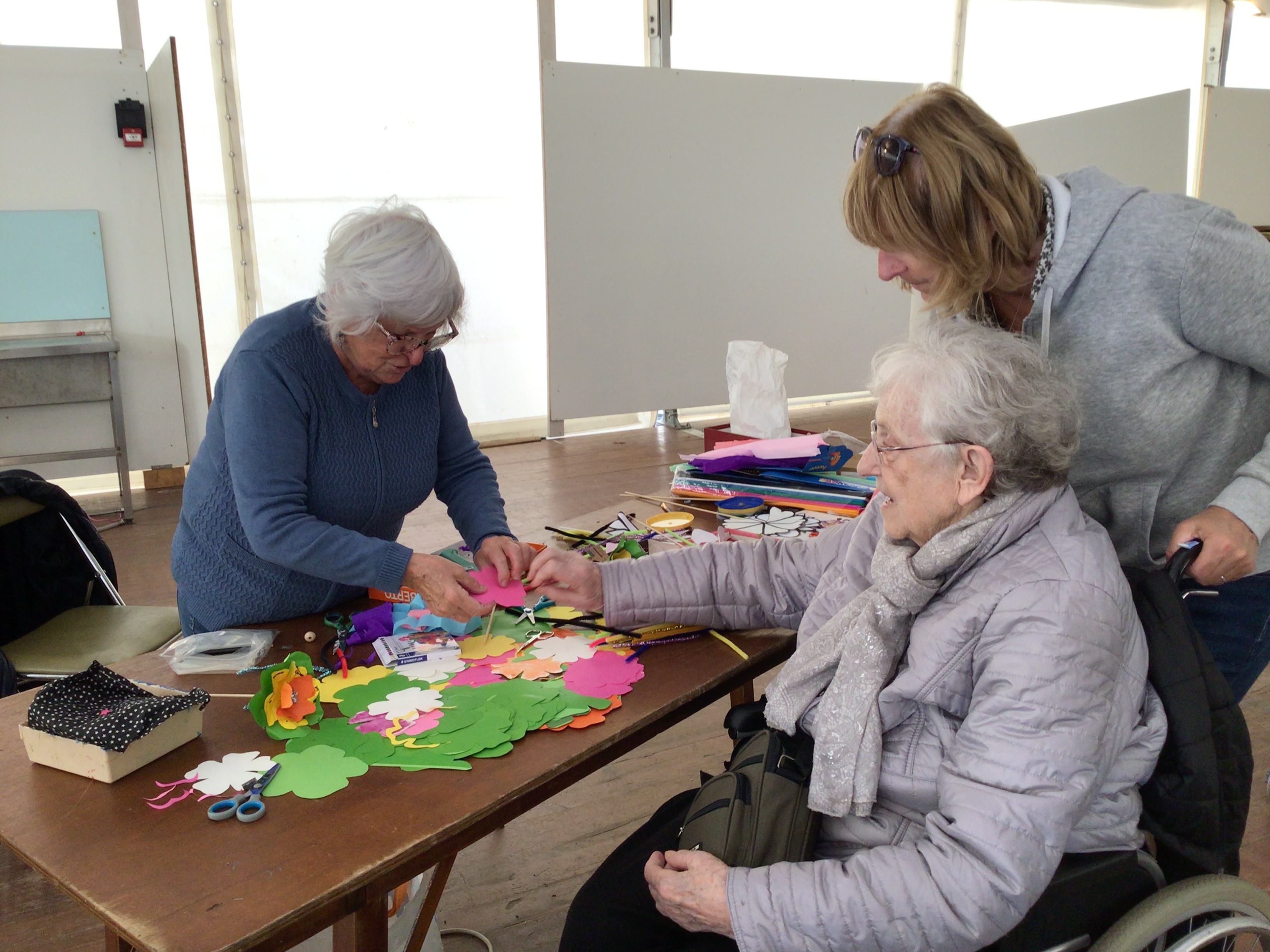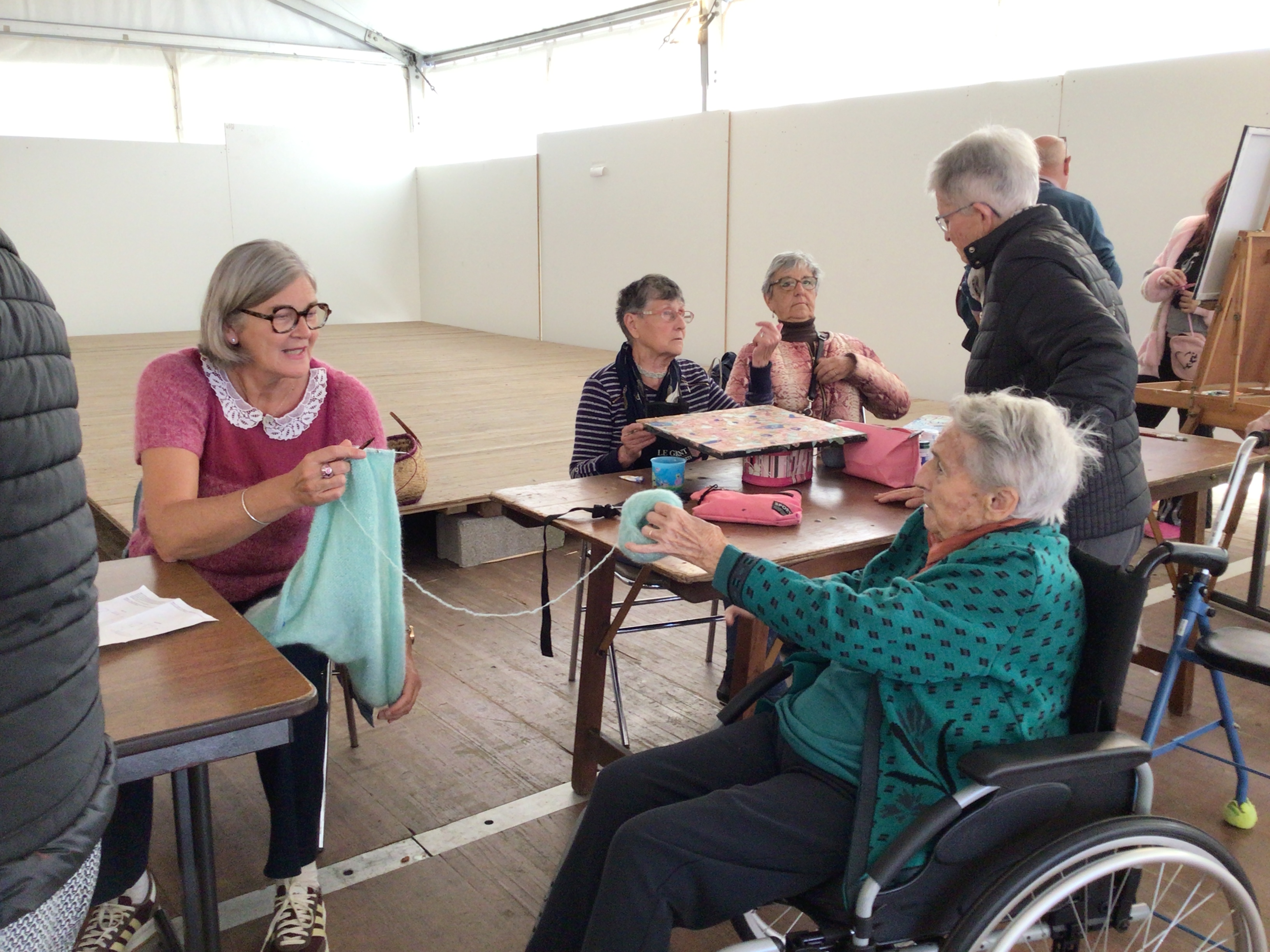 Sortie à Pomm'Expo, découverte des "Ateliers des Arts" avec de l'art floral, des ateliers autour du cuir, de la peinture et du tricot.
