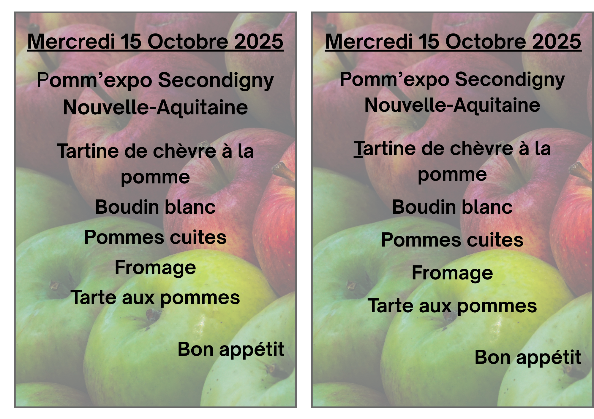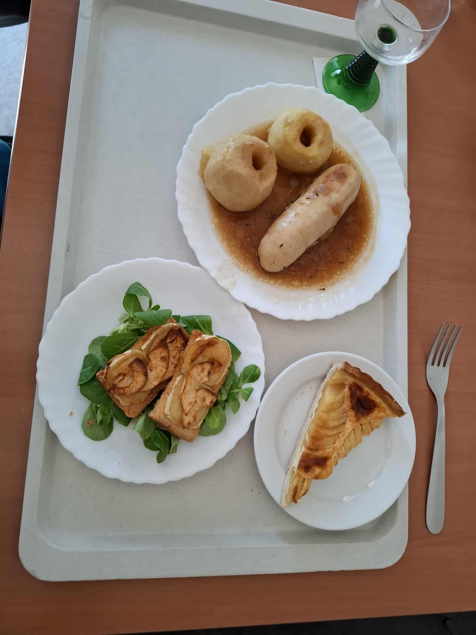 Menu Nouvelle-Aquitaine ce midi avec des plats à base de pommes, un produit local mis à l'honneur.