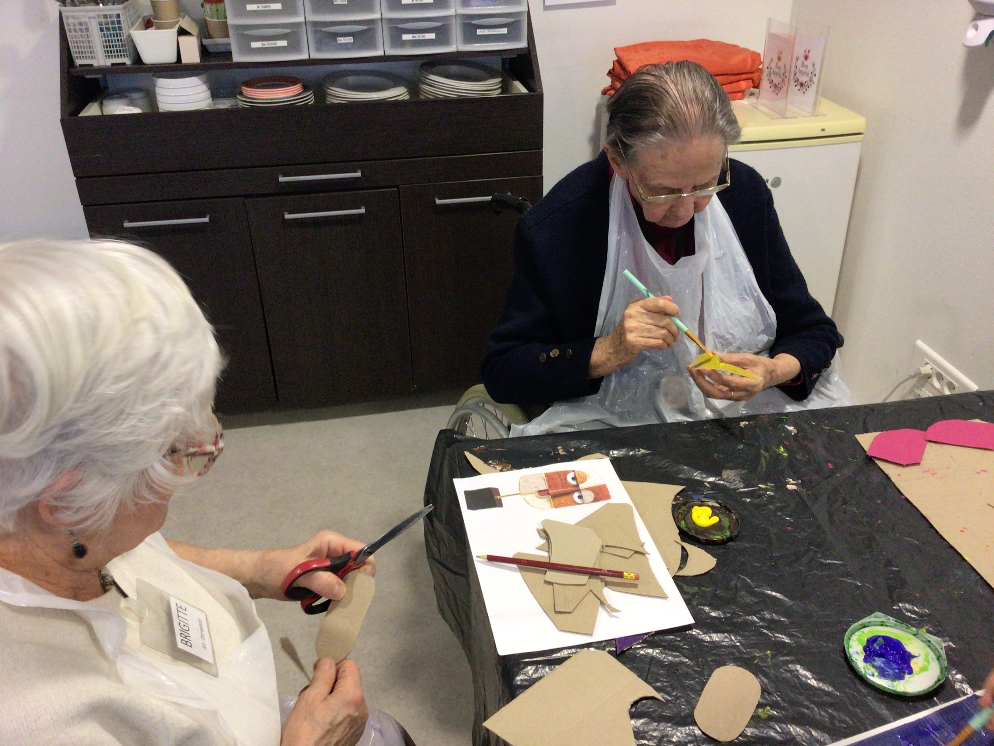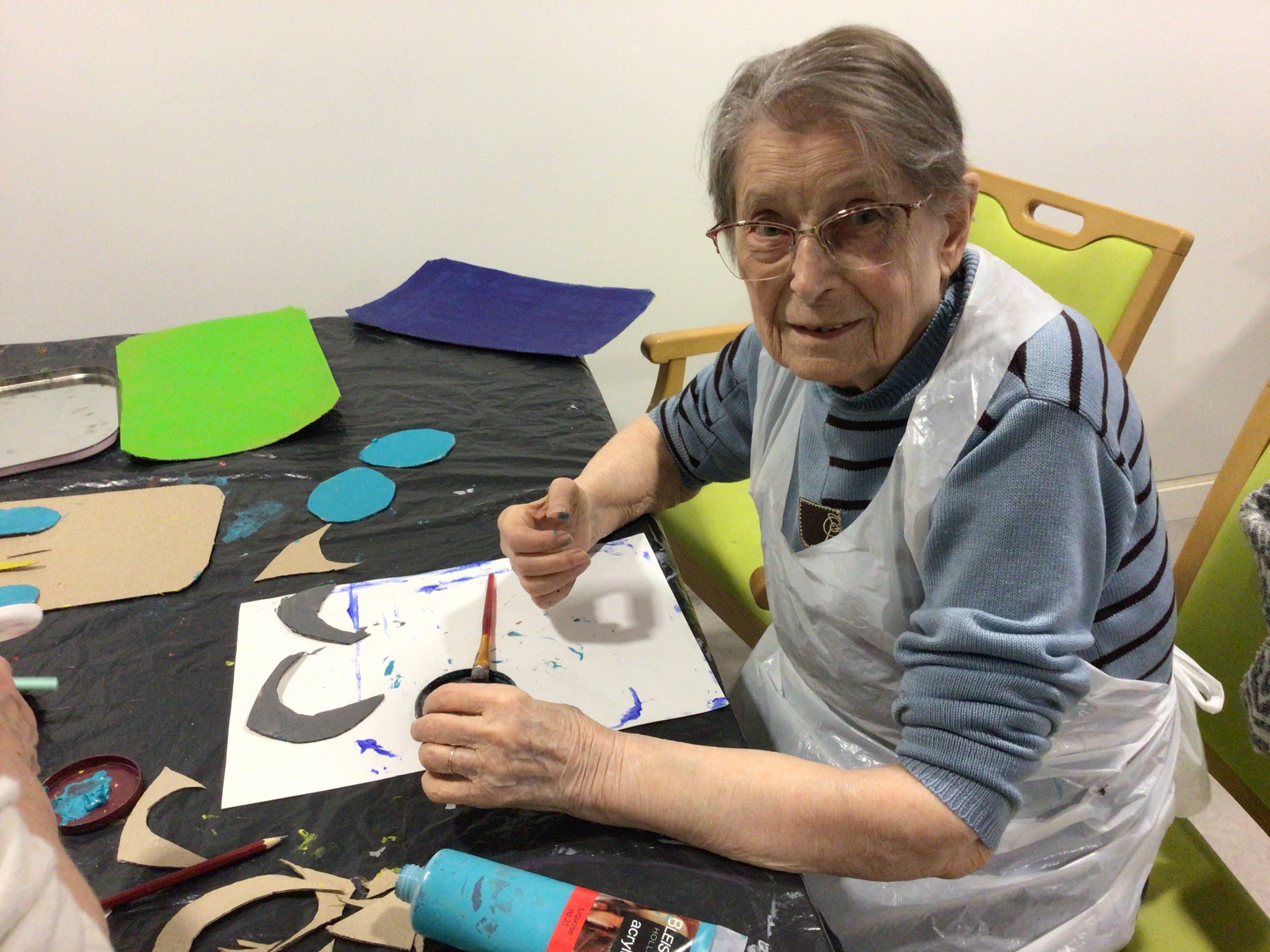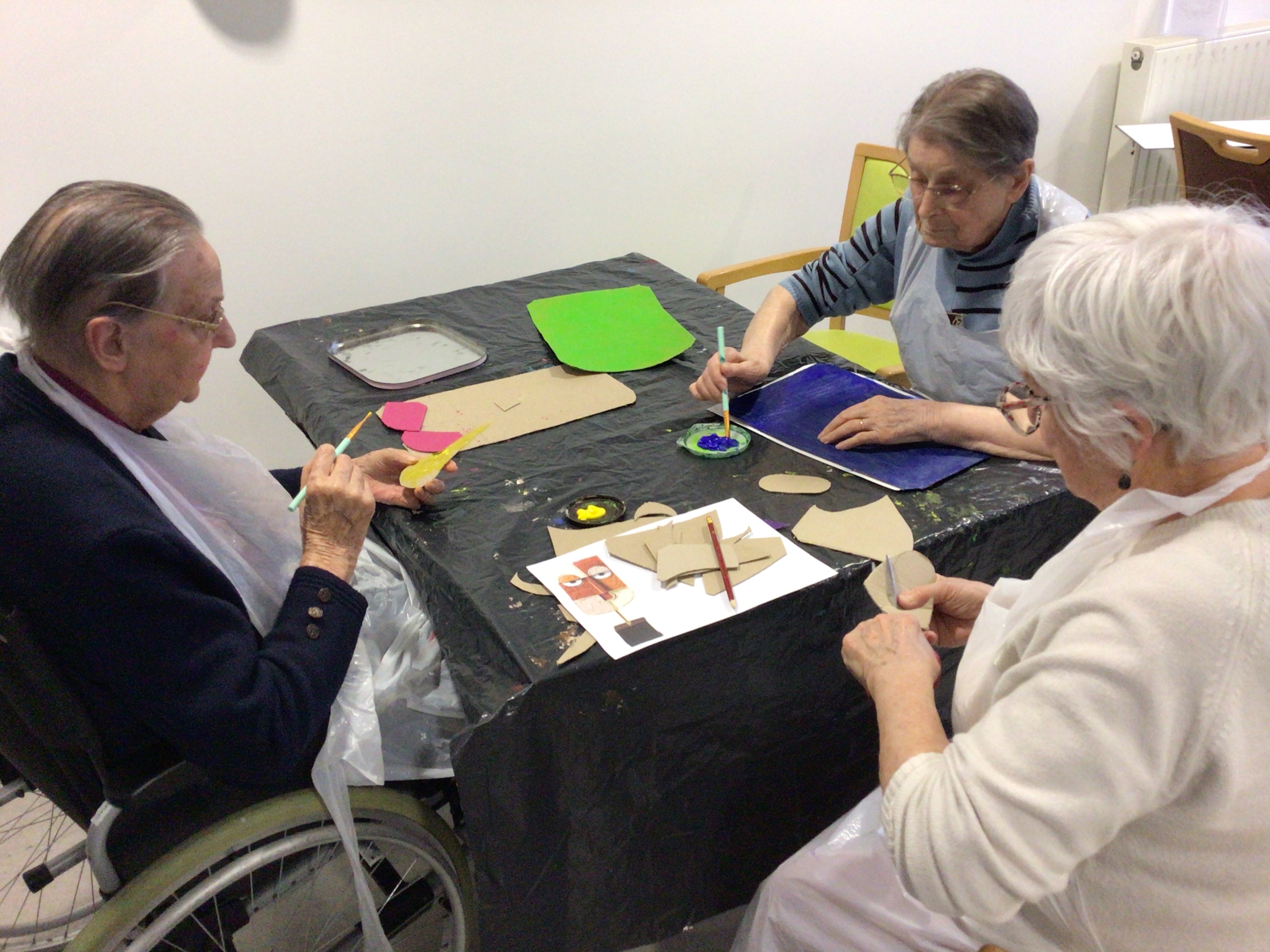 --Art thérapie en individuel et en groupe.Un temps artistique attendu des résidents qui apprécie tout particulièrement ce moment de création libre avec l’accompagnement de Brigitte Belaud Art thérapeute.