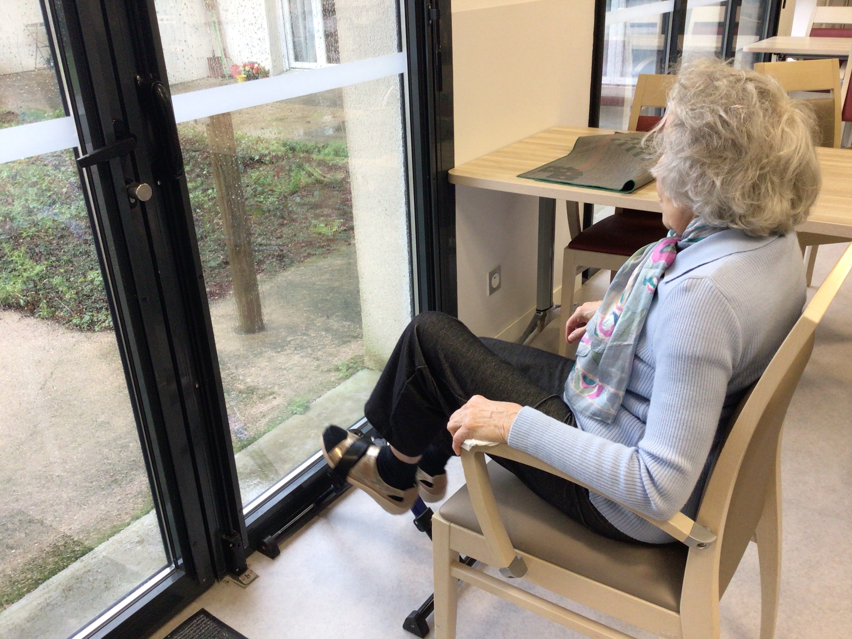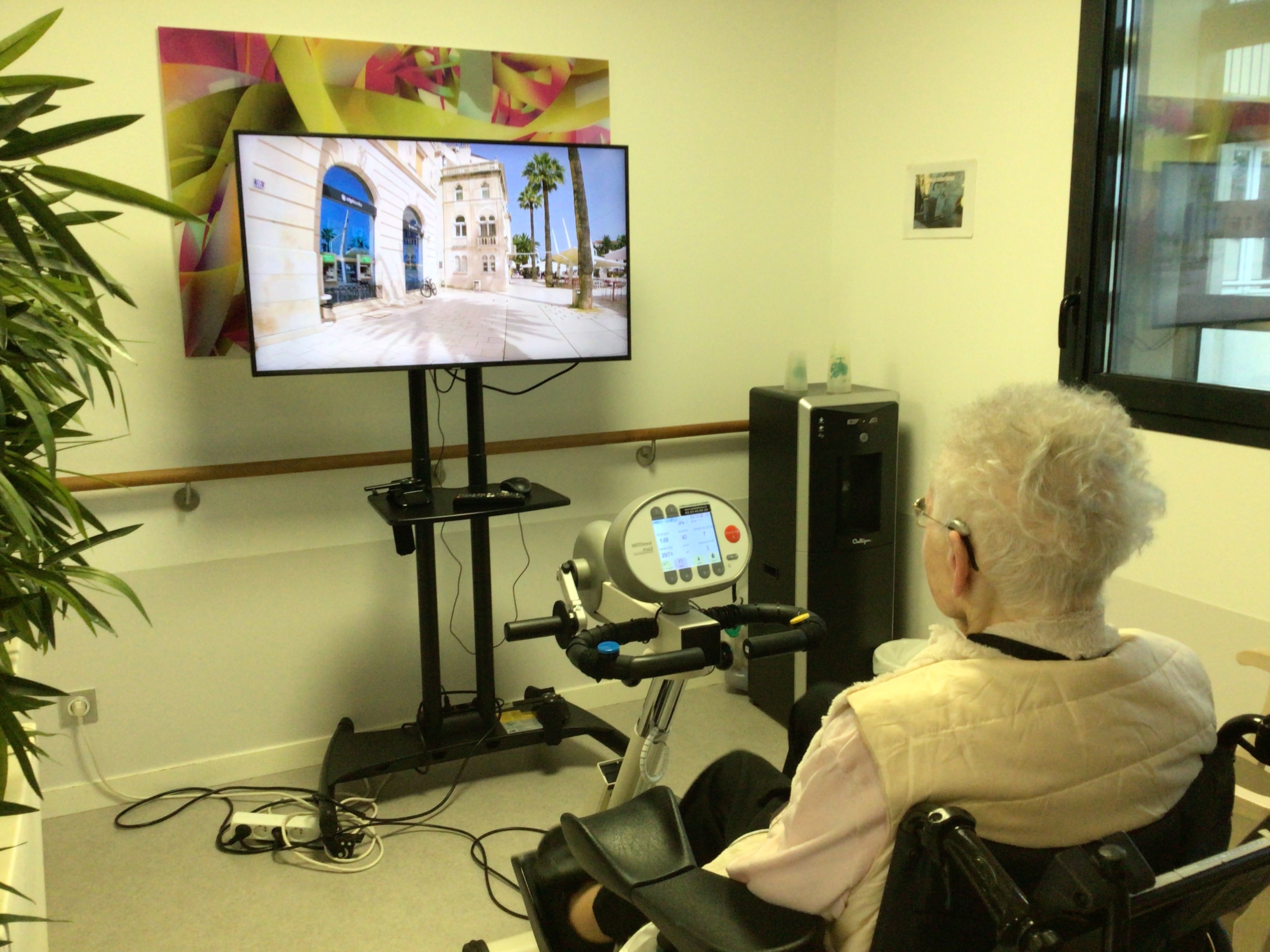 -Certains résidents en présence de la kiné ont pu faire leurs exercices à l’aide du pédalier et du vélo voyageur.