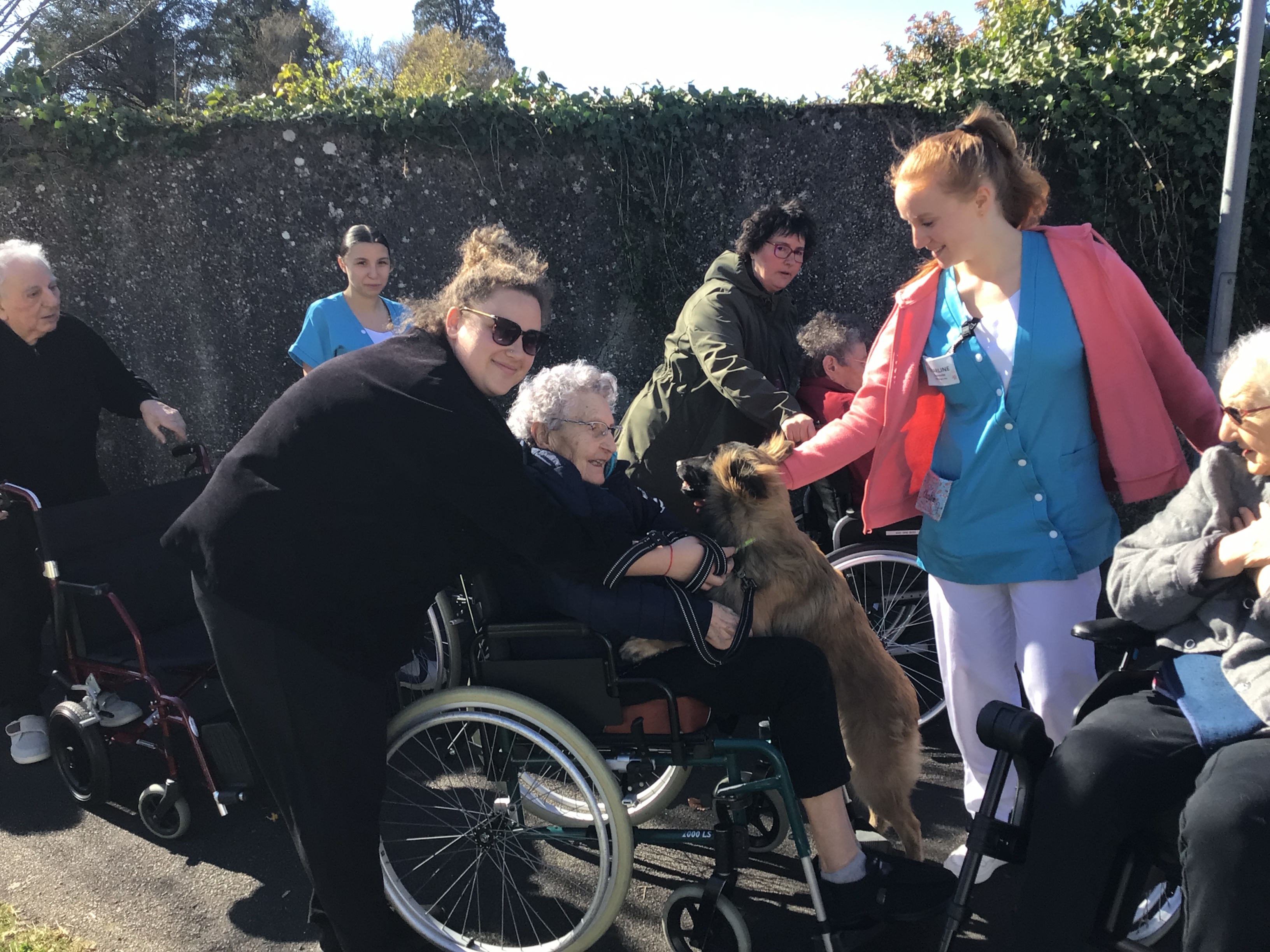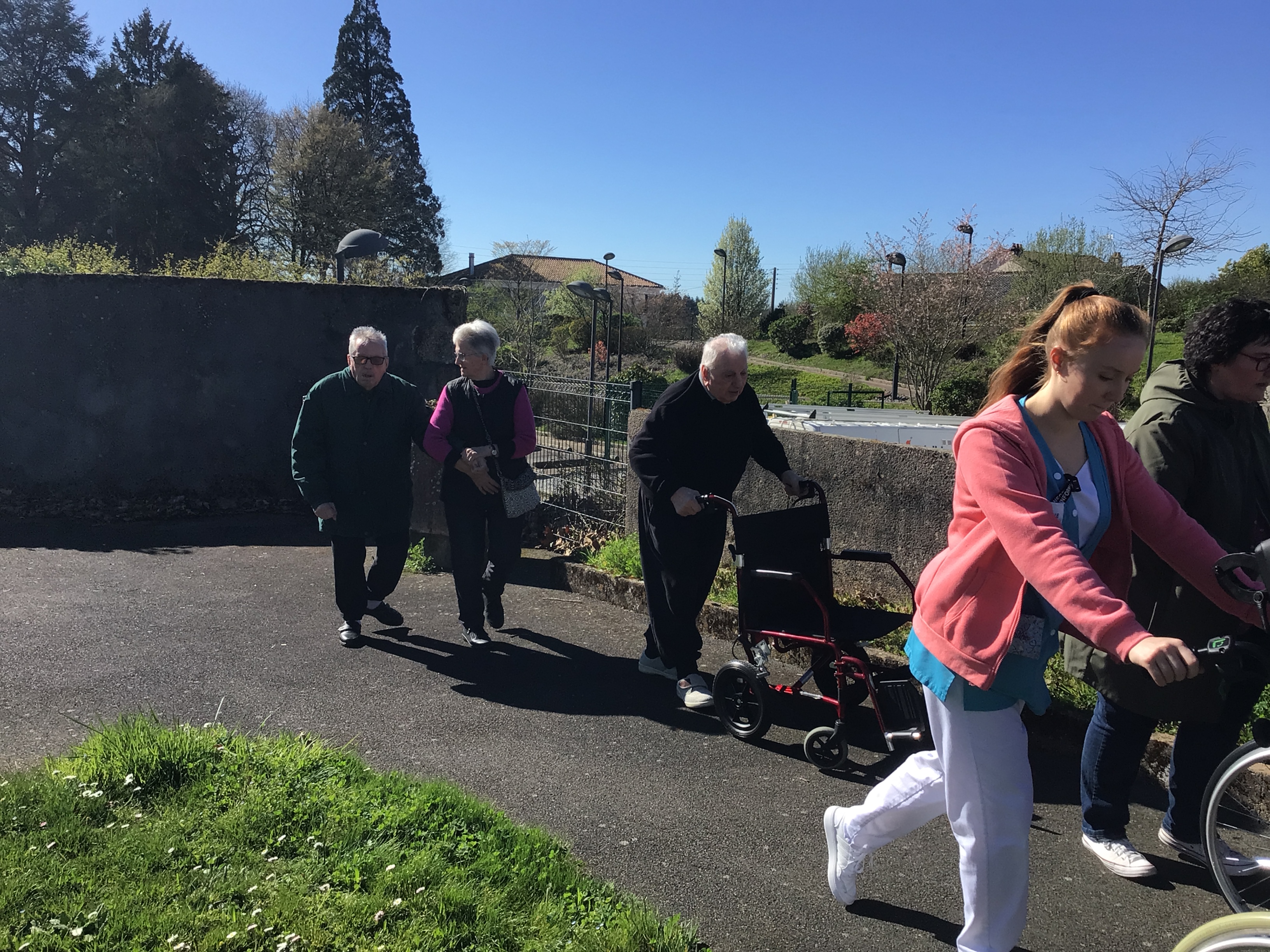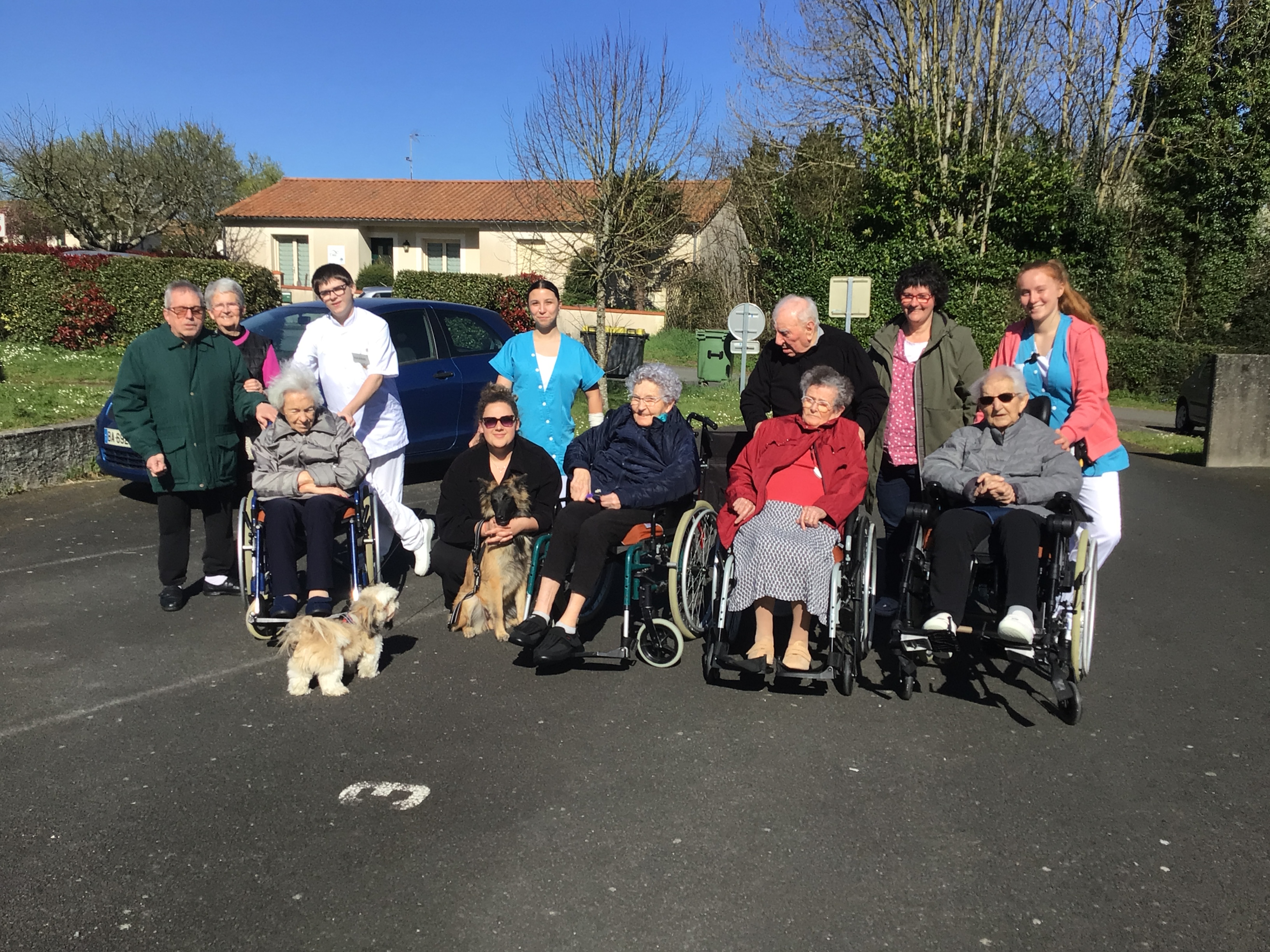 Un groupe de résidents est allé se promener dans les rues de Secondigny avec un accompagnateur à 4 pattes. Et oui, un chien bien éduqué avec son maître nous a accompagné sur toute la sortie. il faisait beau mais le vent du Nord soufflait.