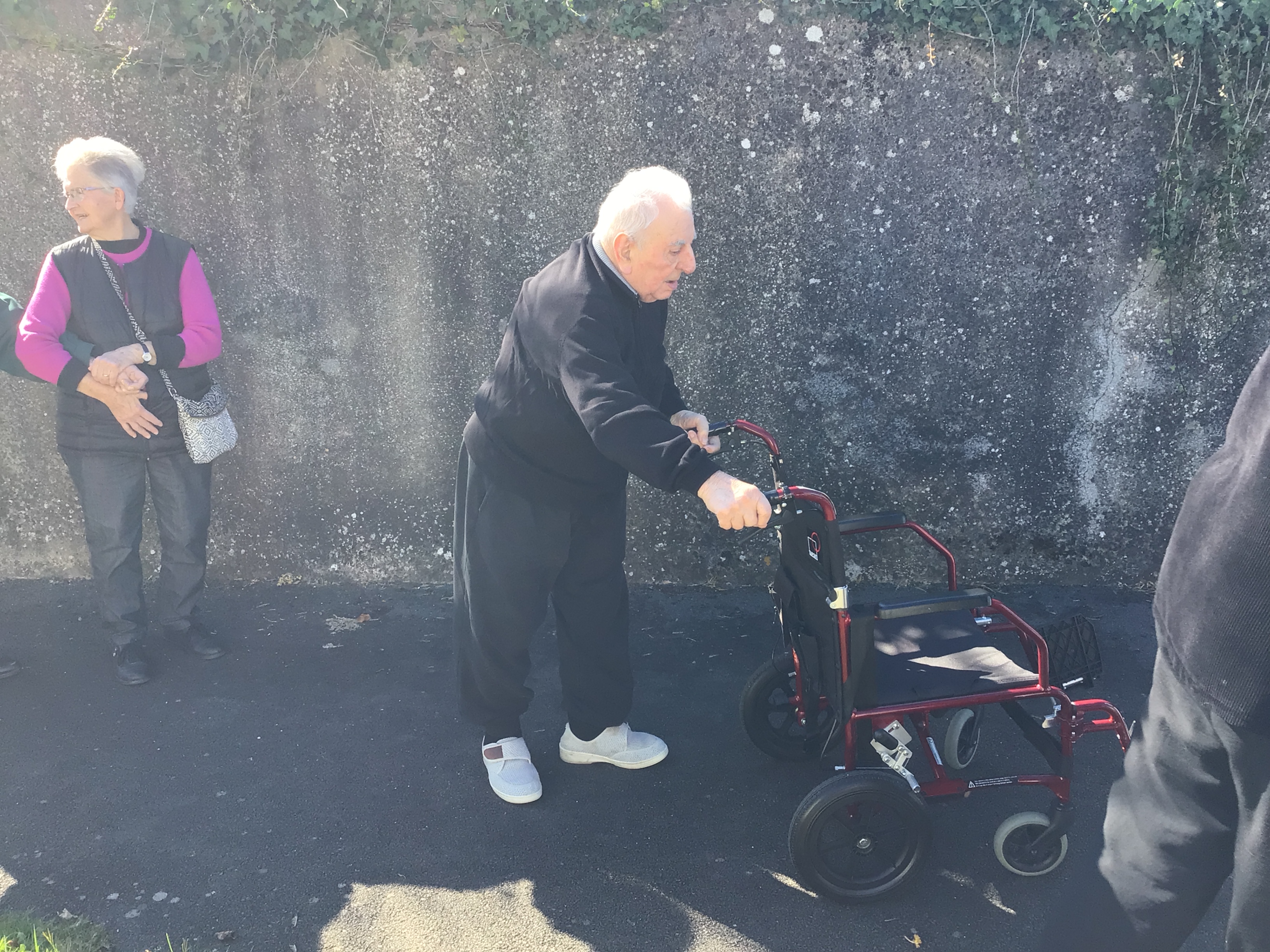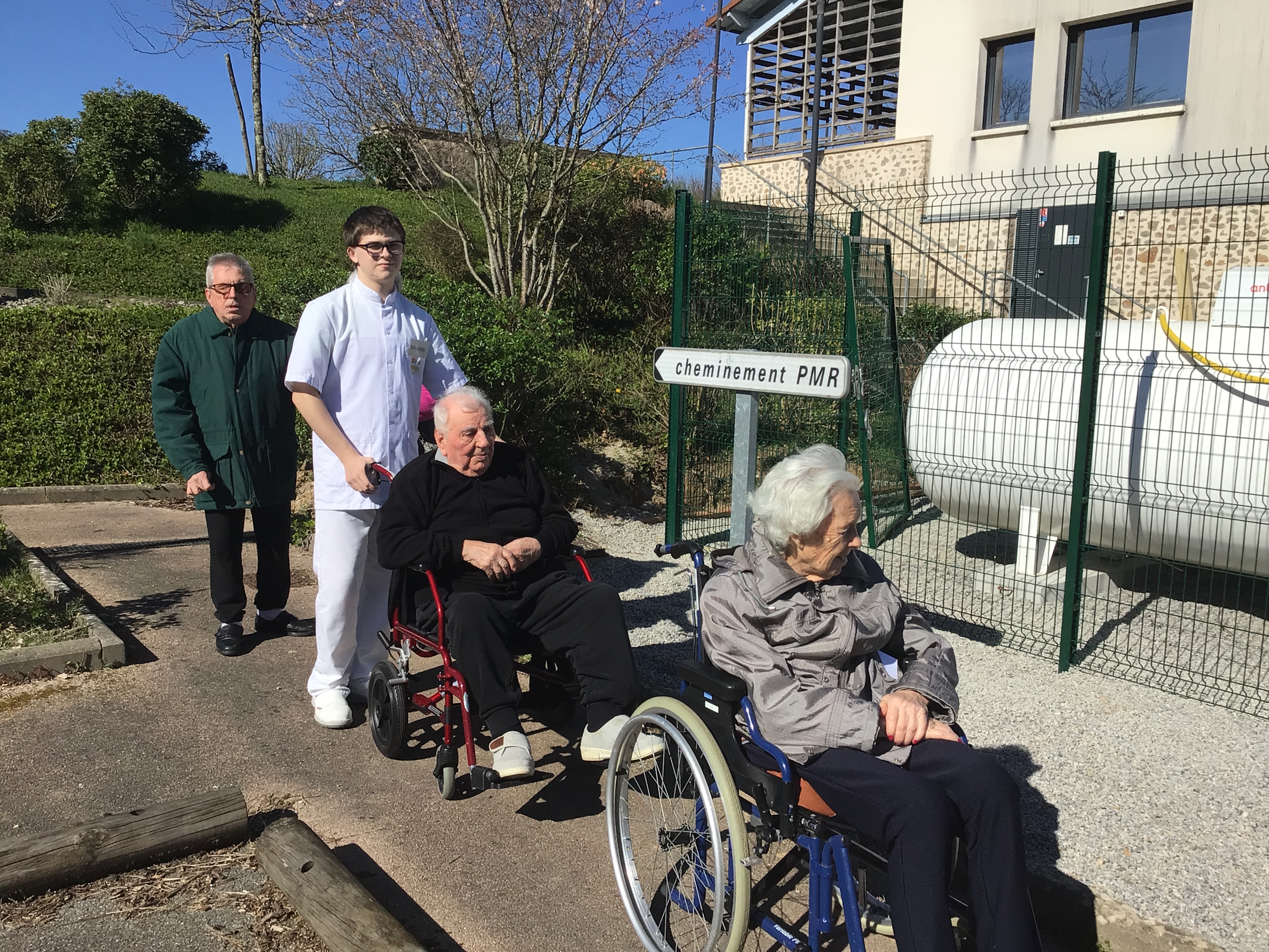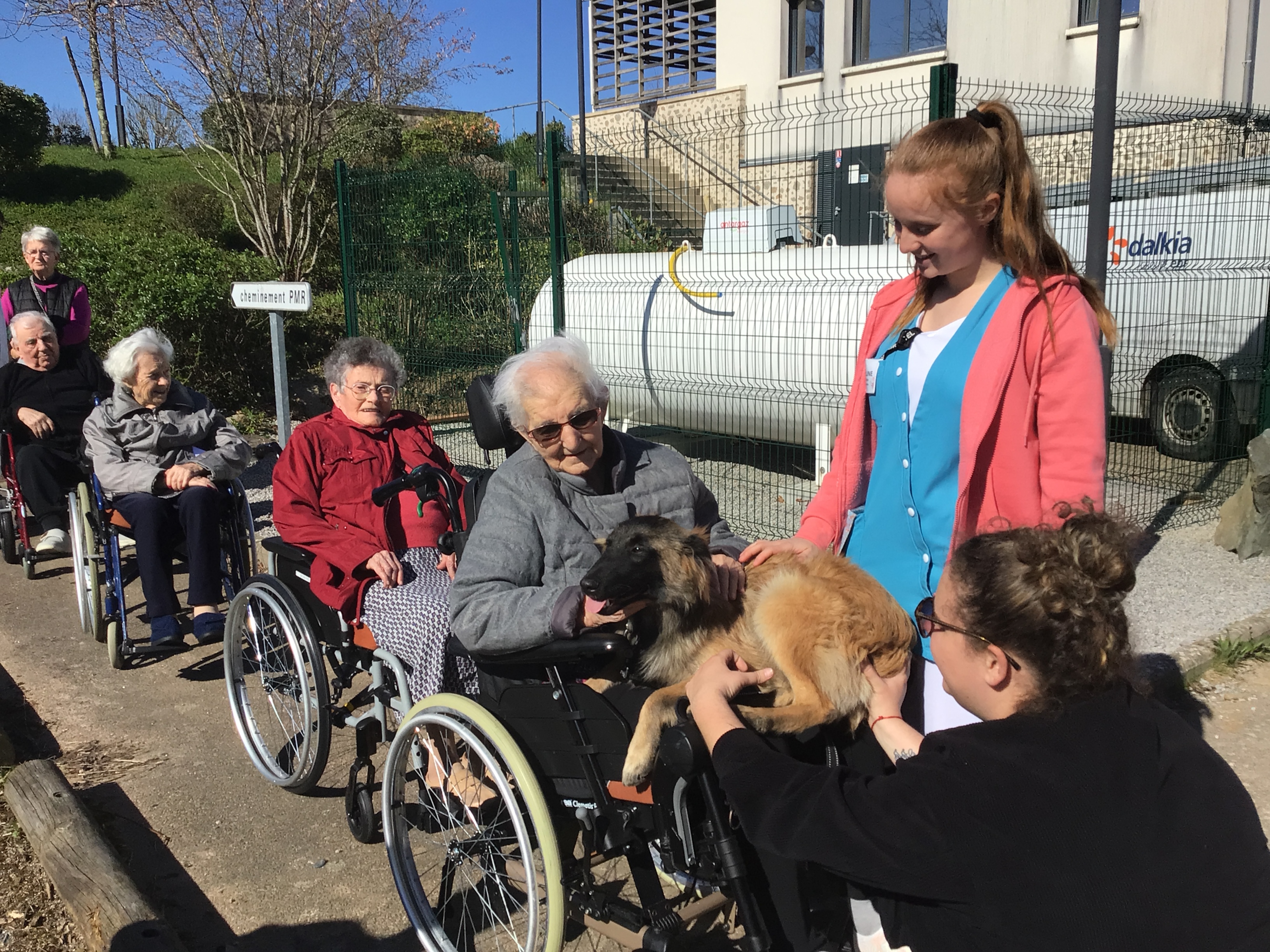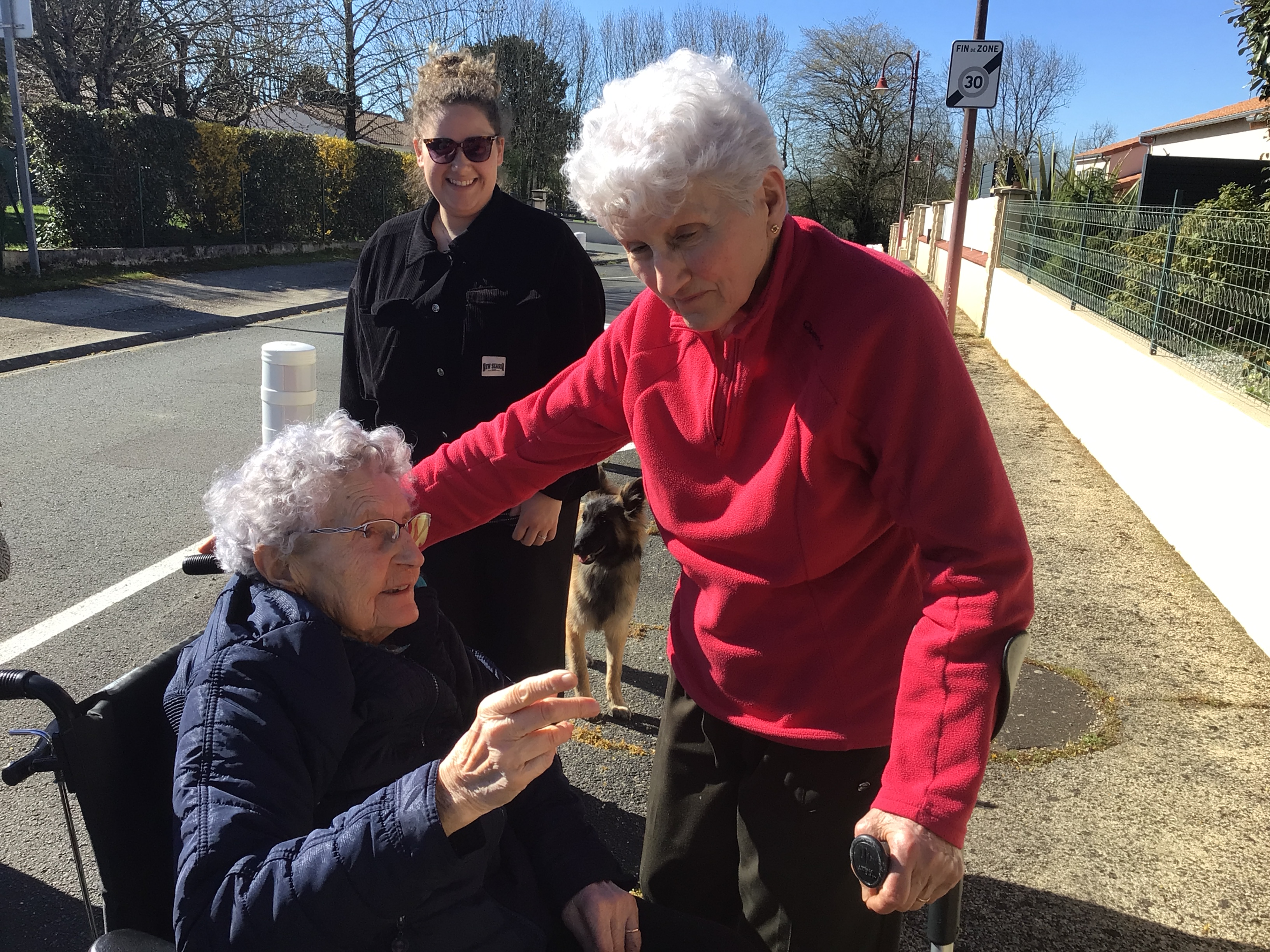 Un groupe de résidents est allé se promener dans les rues de Secondigny avec un accompagnateur à 4 pattes. Et oui, un chien bien éduqué avec son maître nous a accompagné sur toute la sortie. il faisait beau mais le vent du Nord soufflait.