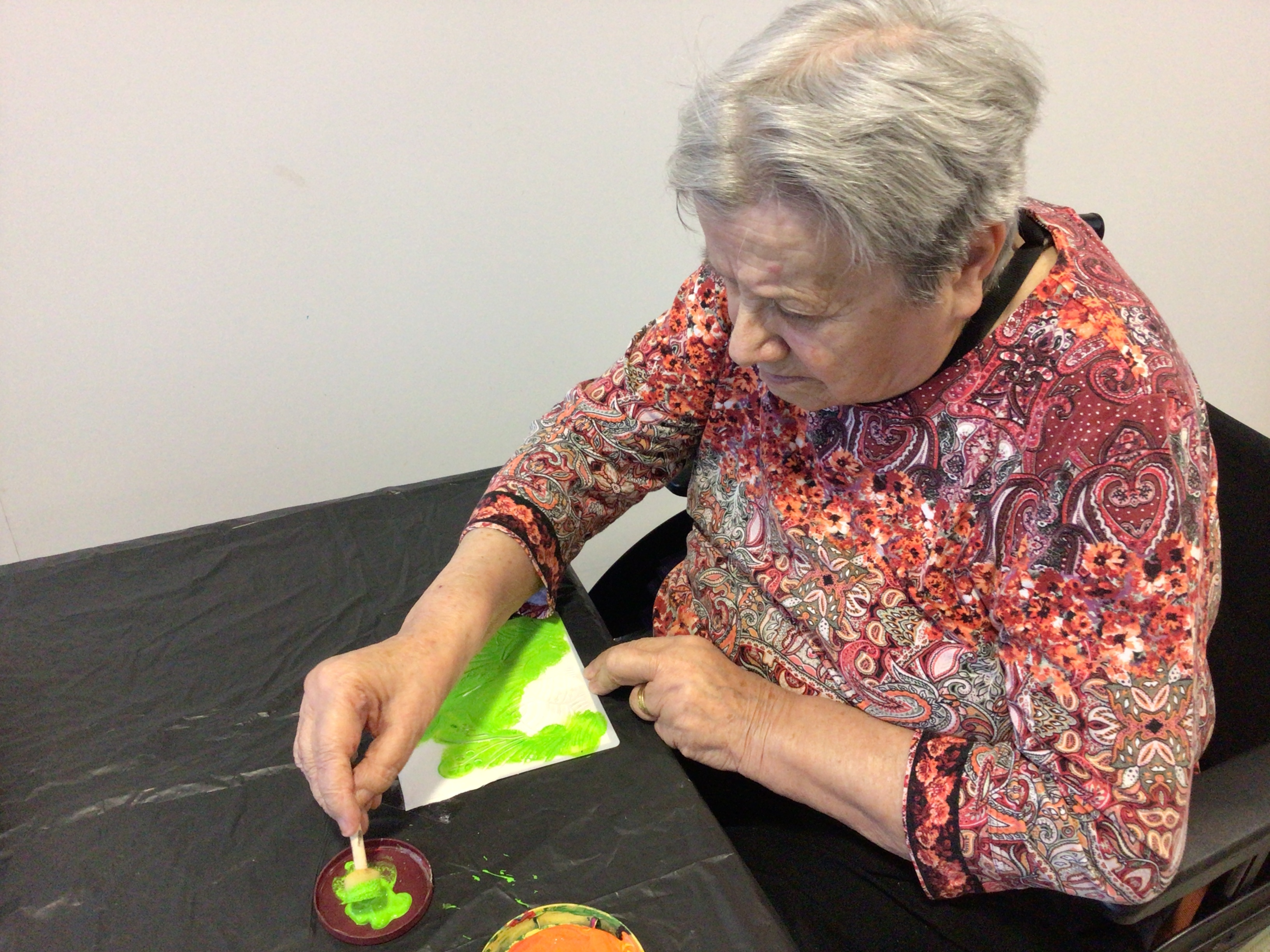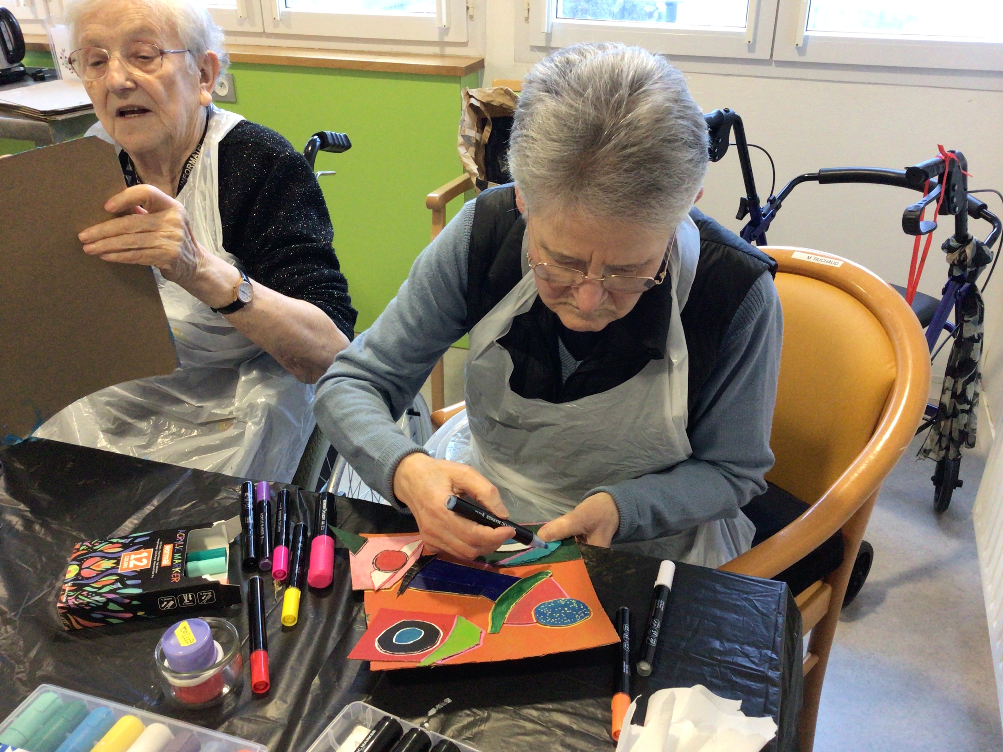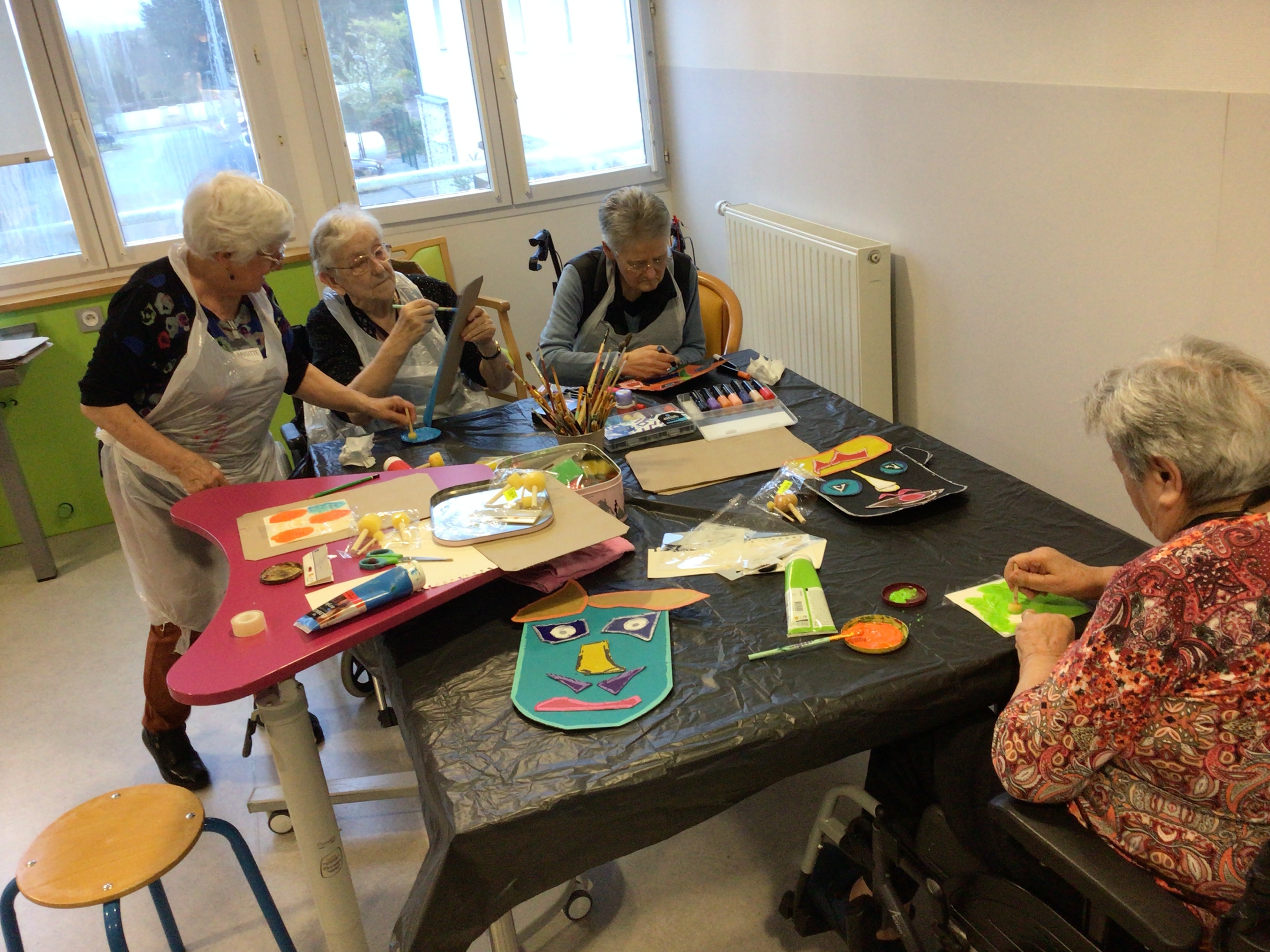 L’atelier art thérapie de Brigitte Belaud a permis cet après-midi, aux résidentes présentes à l’activité de s’exprimer à travers de la peinture, du découpage… Pour certaines, des réalisations de décorations pour Pâques mais pour d’autres, un travail de de création en s’inspirant des œuvres de Gaston Chaissac.