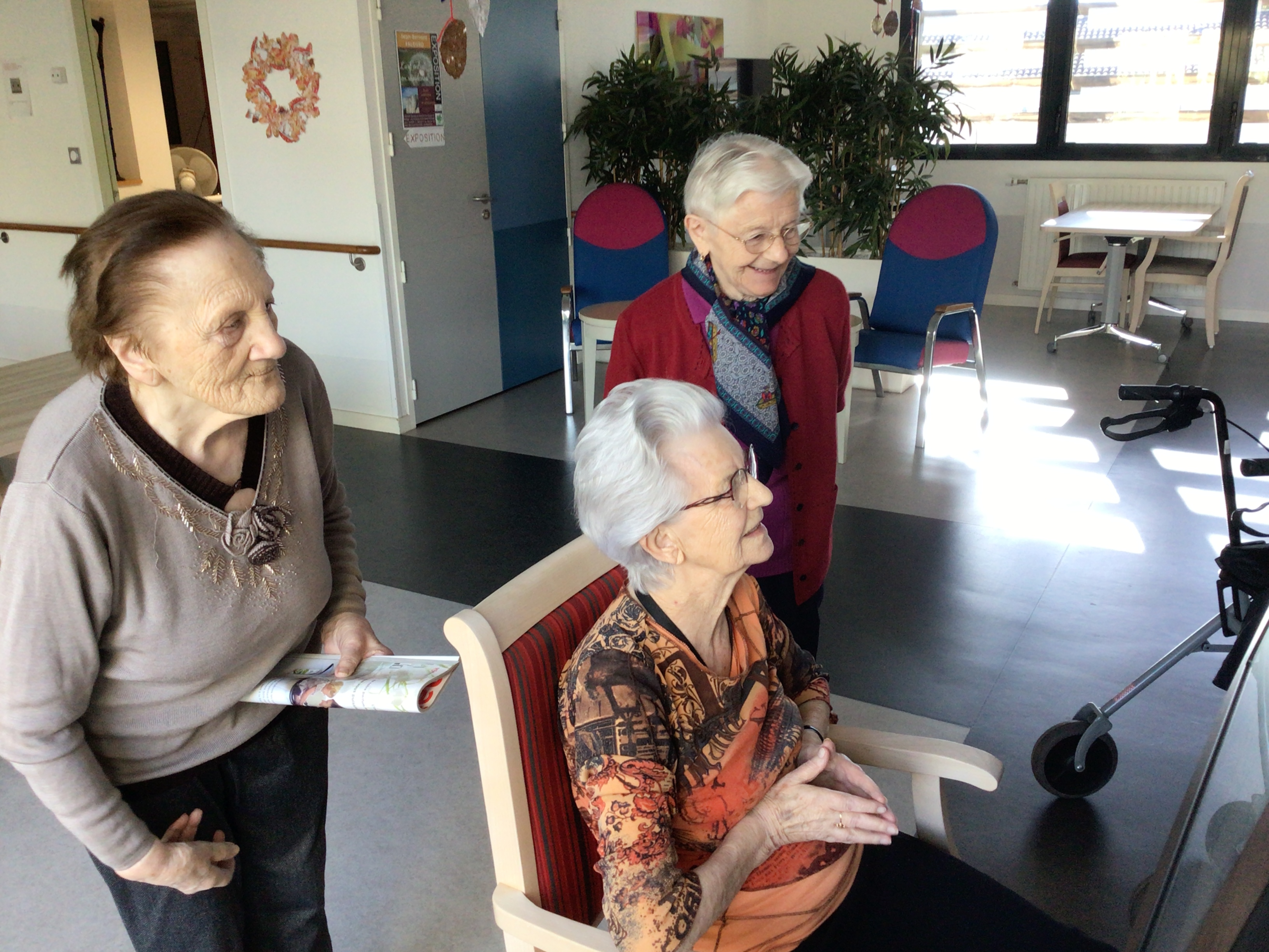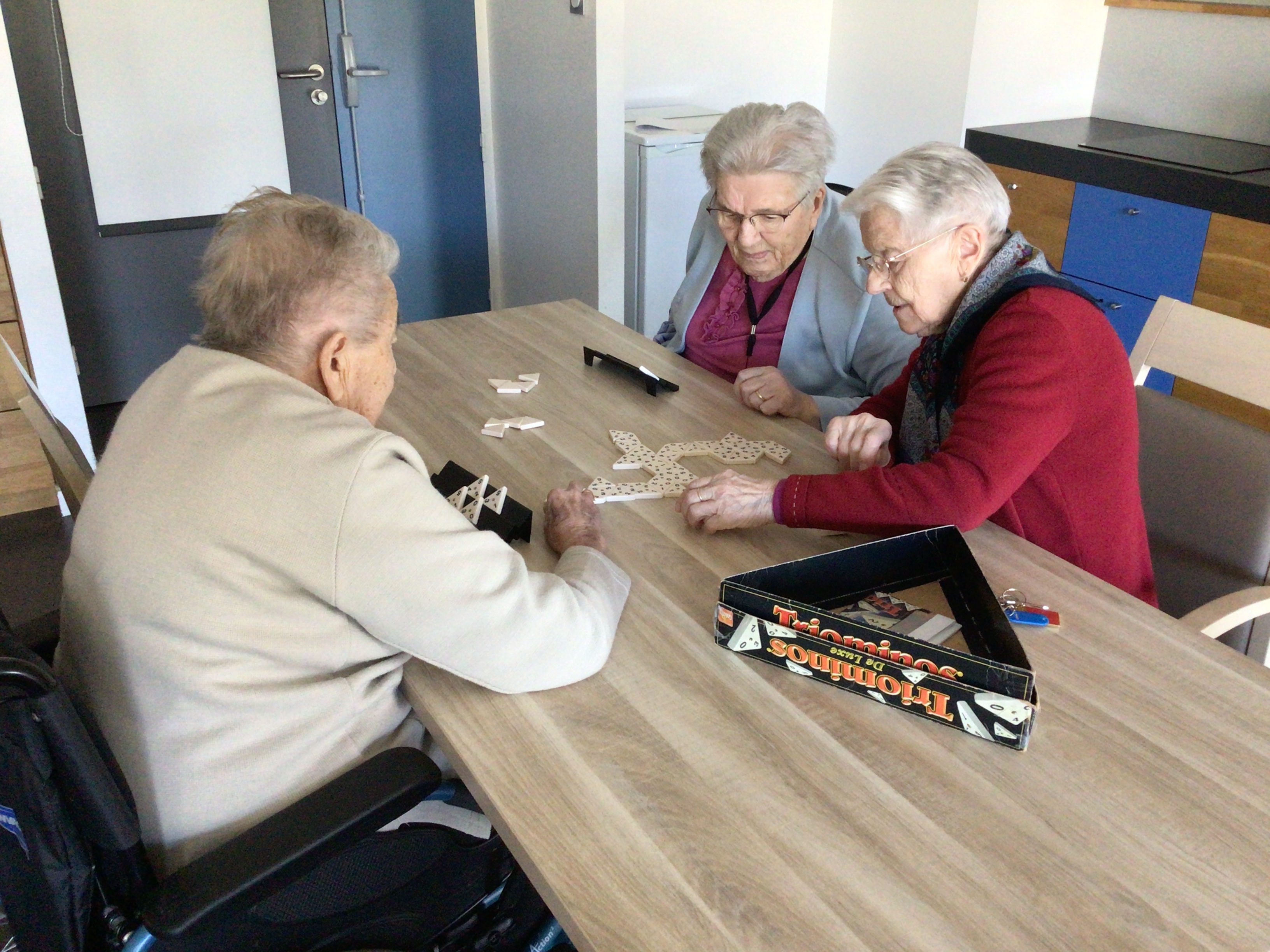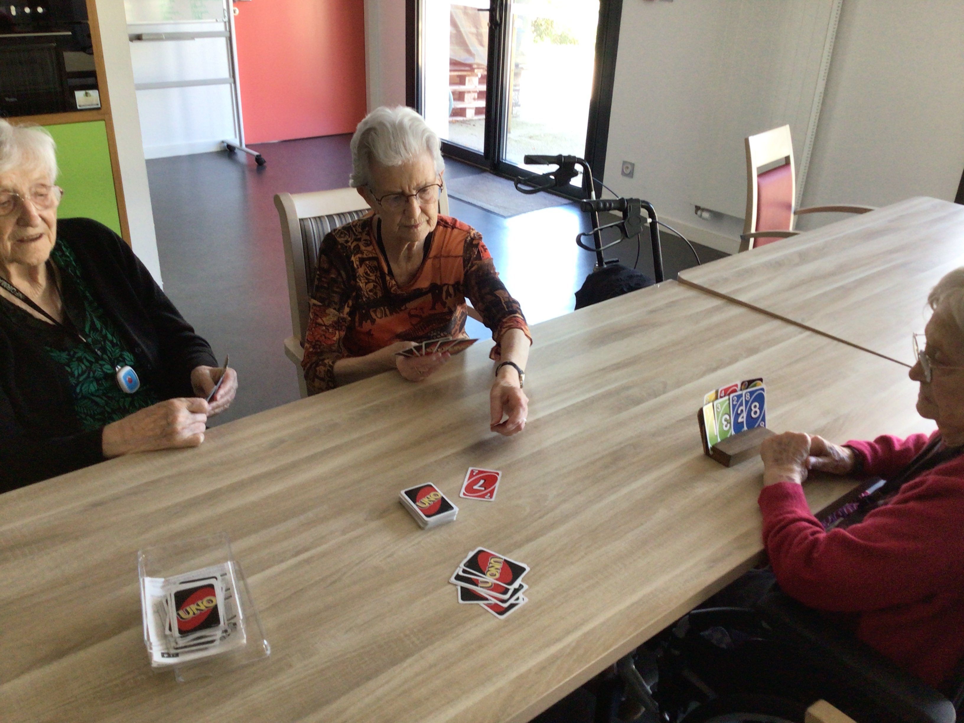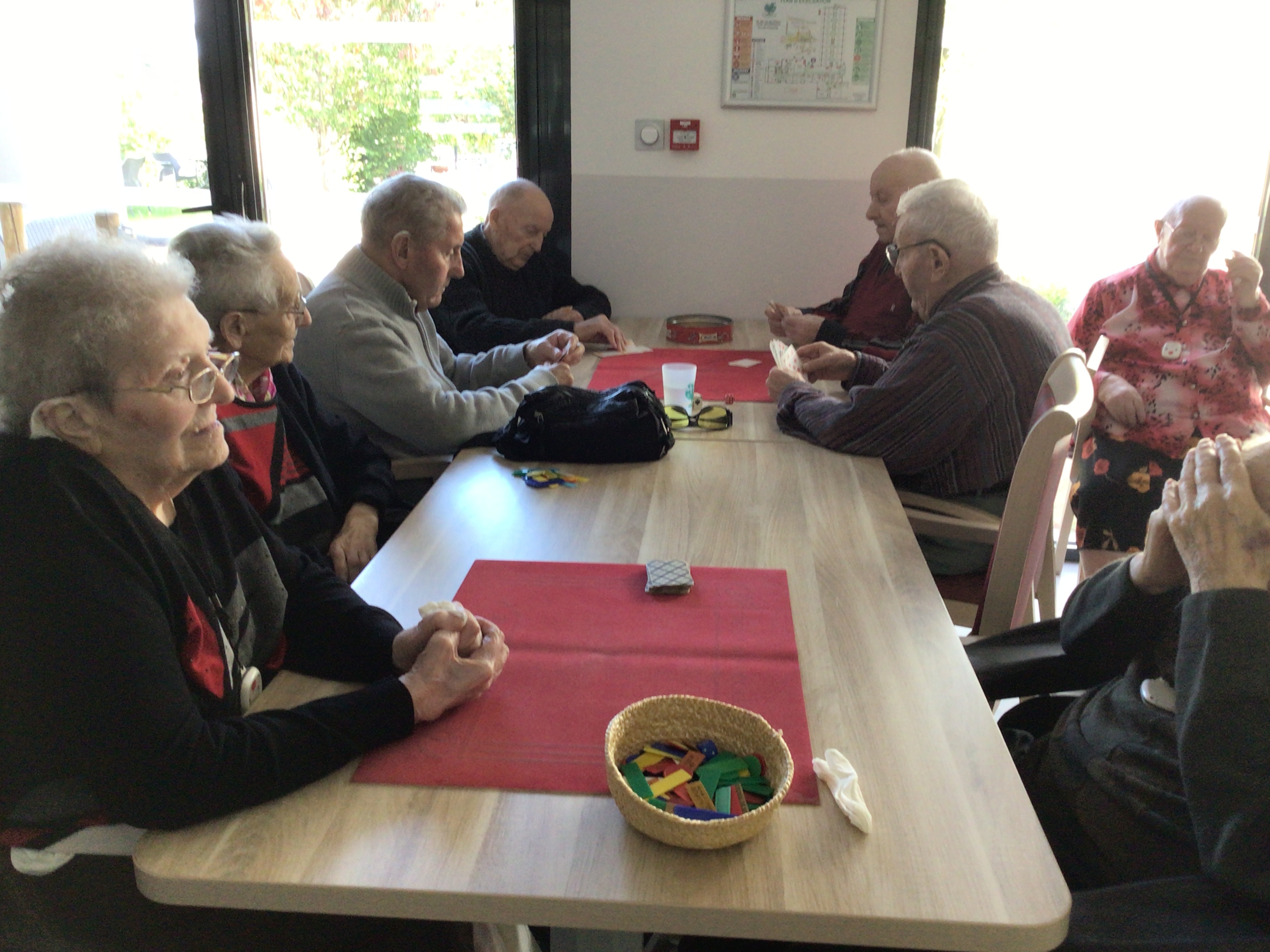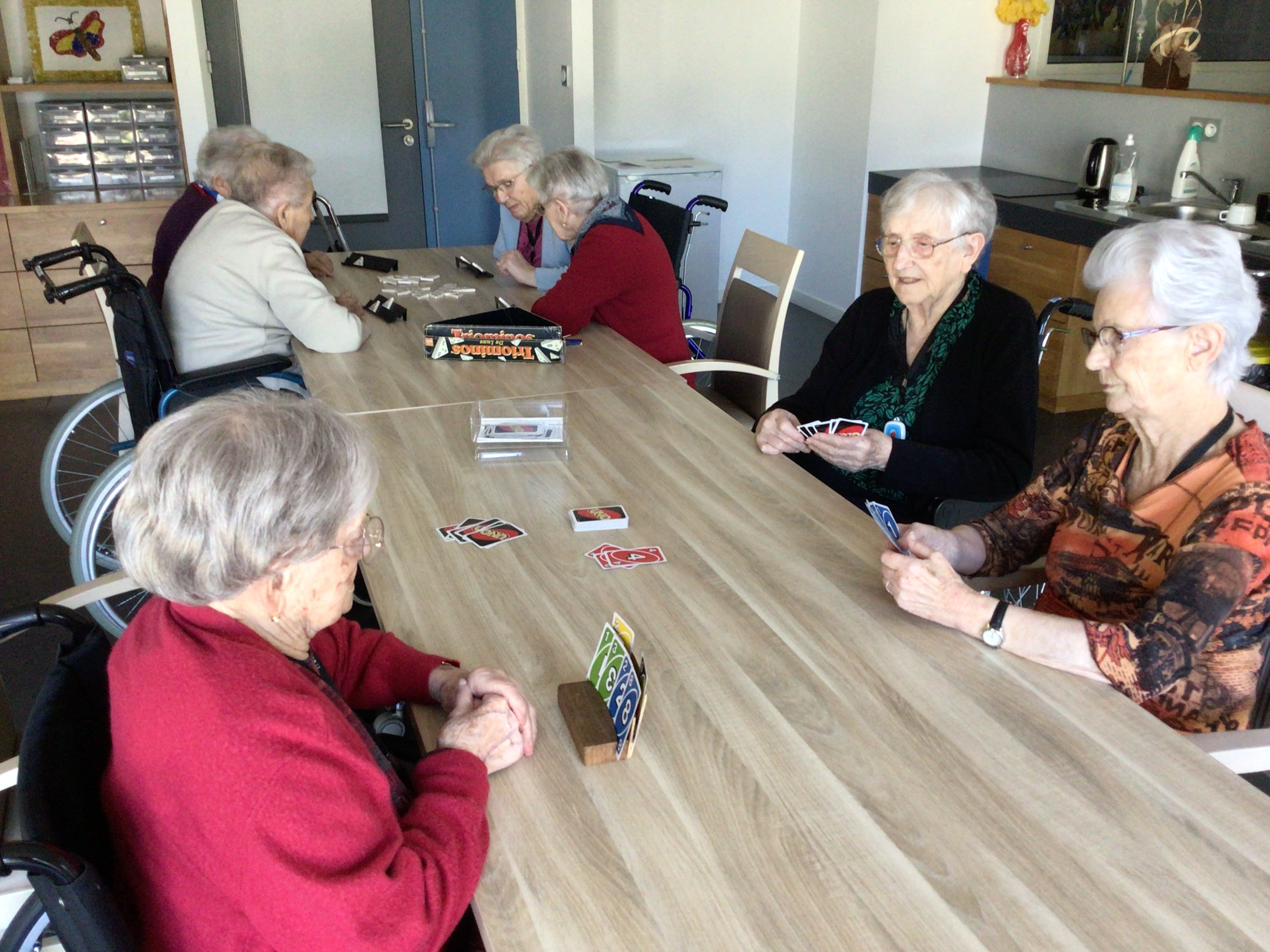Une matinée de détente et de moment de convivialité autour de la table de jeux, du pliage du linge, lecture du journal...