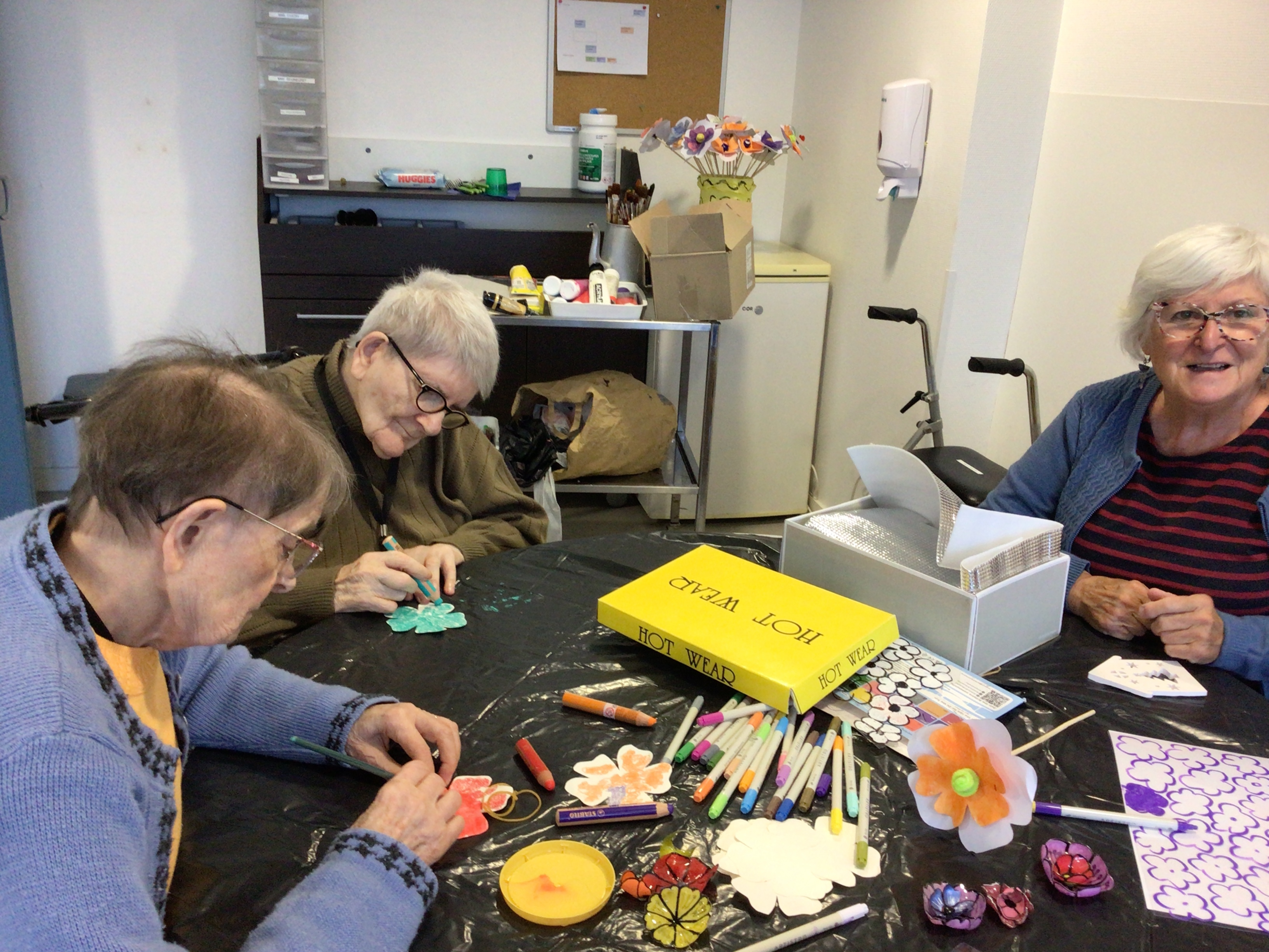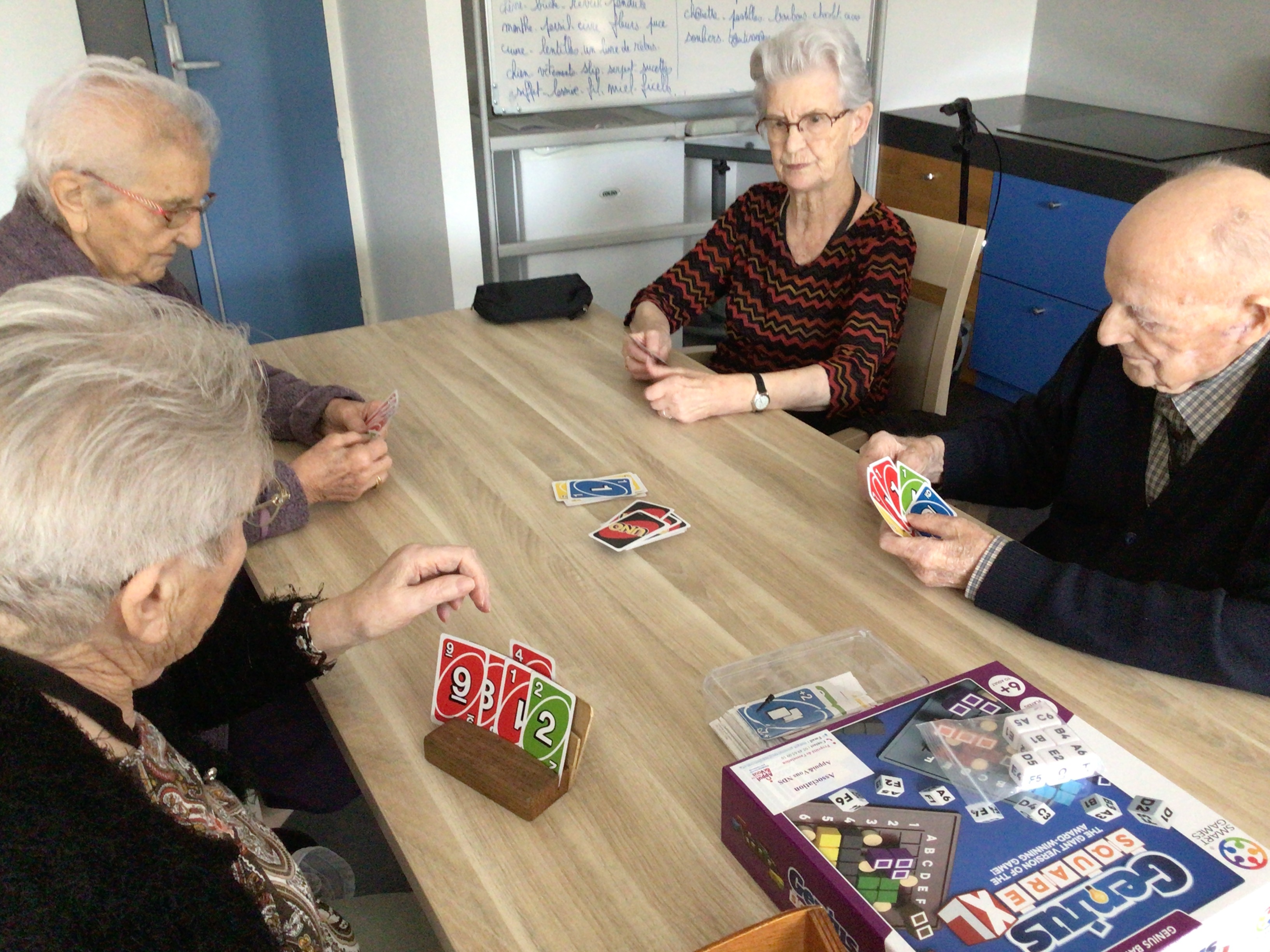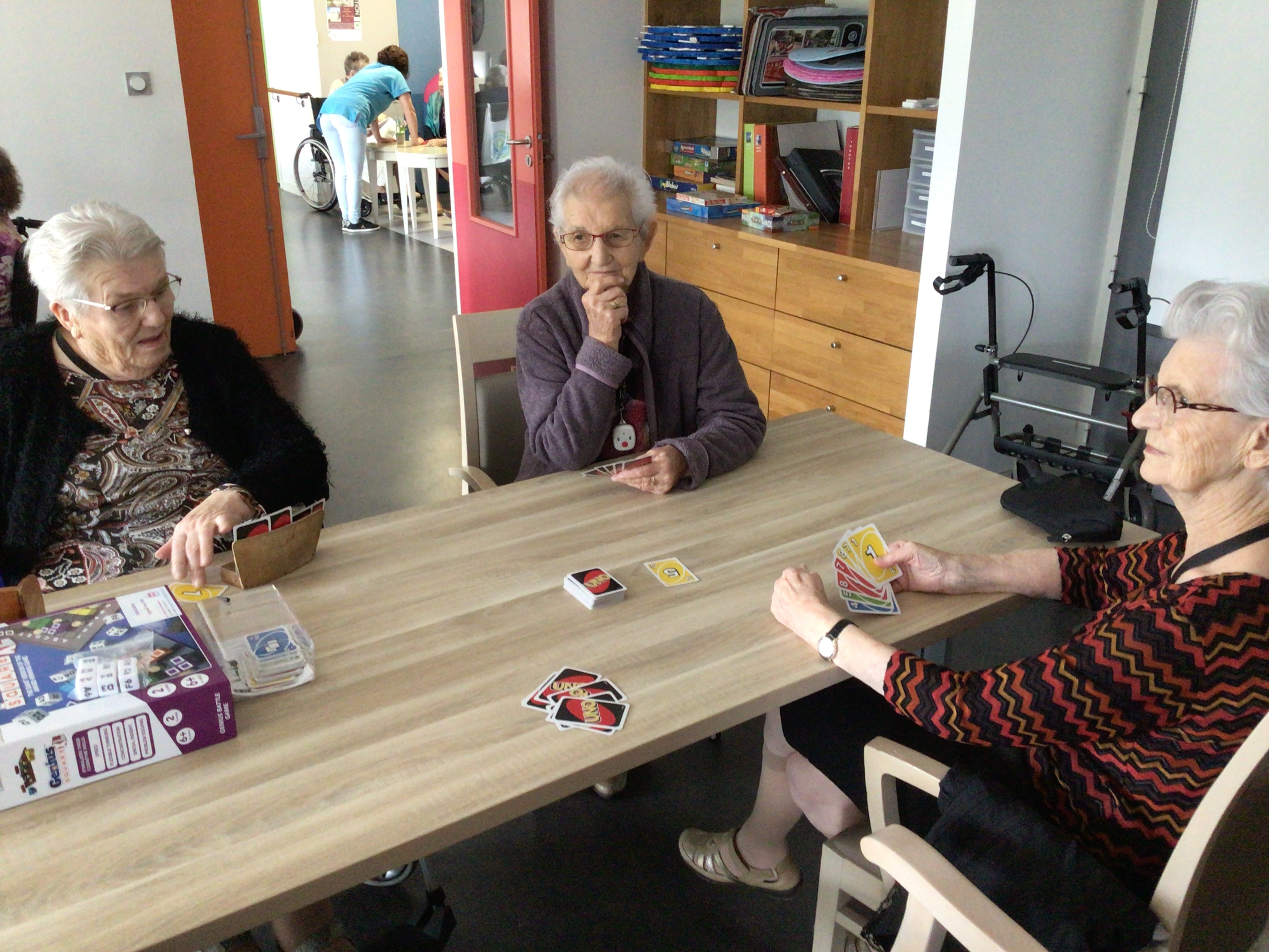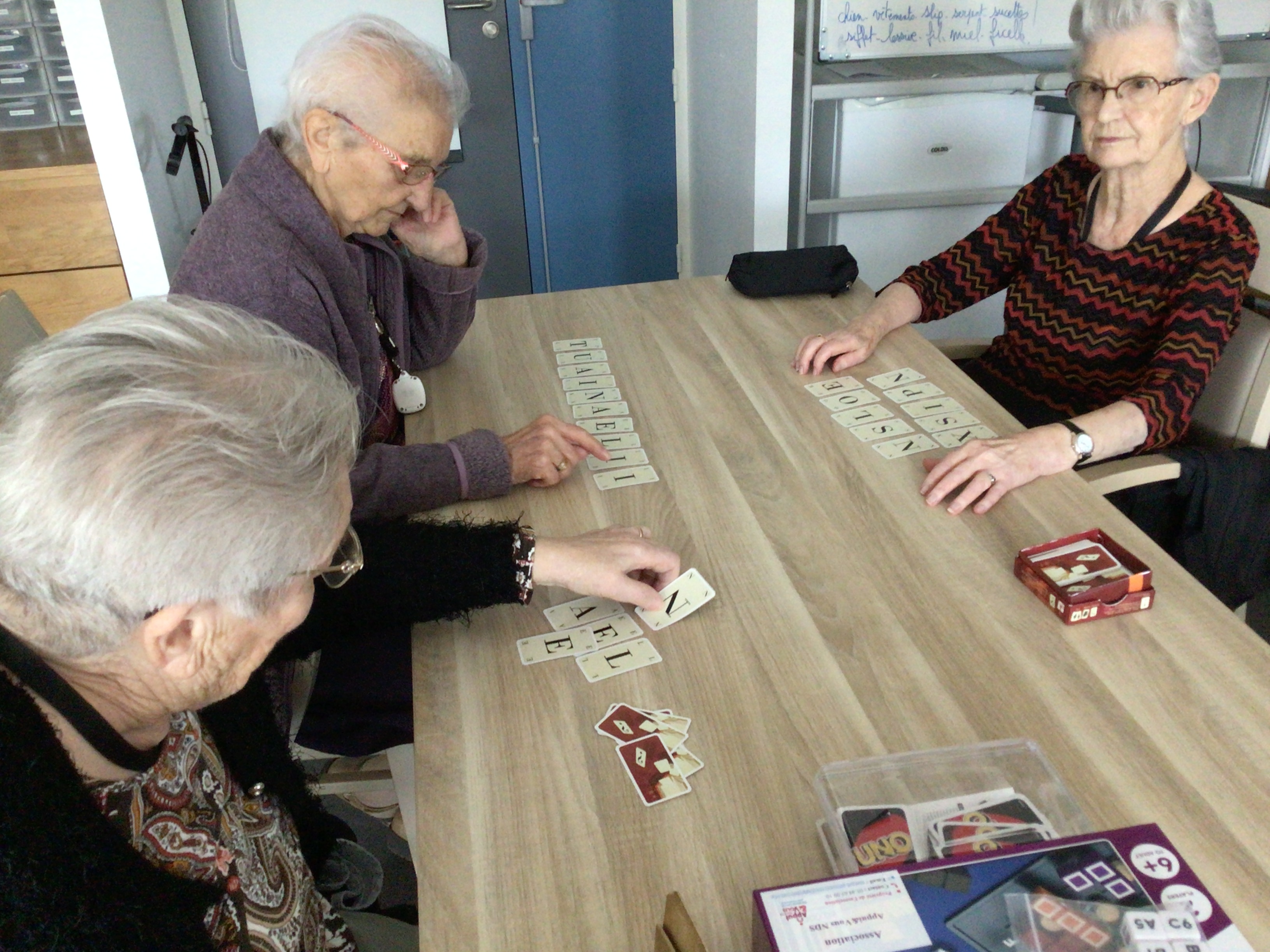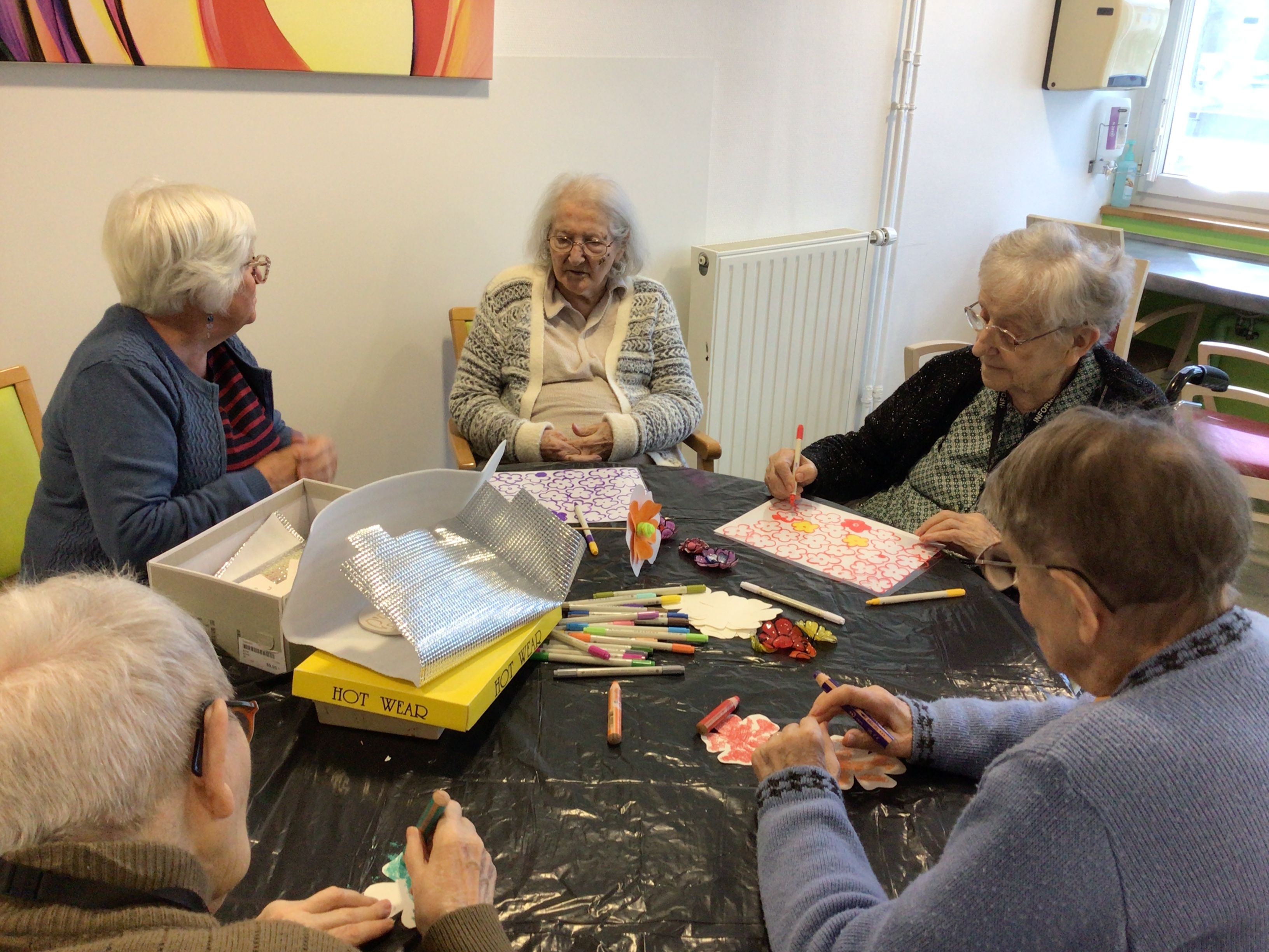 Activités collectives cet après-midi avec le nouveau groupe d'Art thérapie encadré par Brigitte Art thérapeuthe , et les jeux de société avec notre bénévole Marguerite.