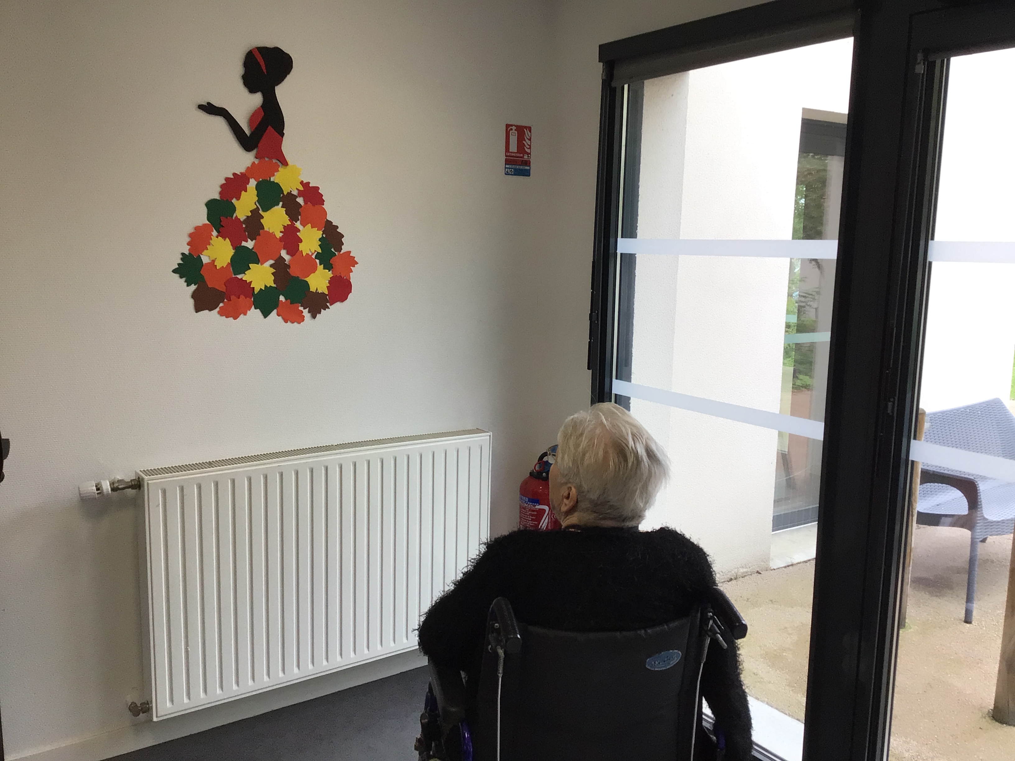 Certains résidents ont pu bénéficier pendant cette matinée d'activités individuelles en chambre : Art thérapie, Papote avec Violette du Nombril du monde, début d'installation de la décoration d'automne ainsi que le passage "Des plaisirs ambulants";