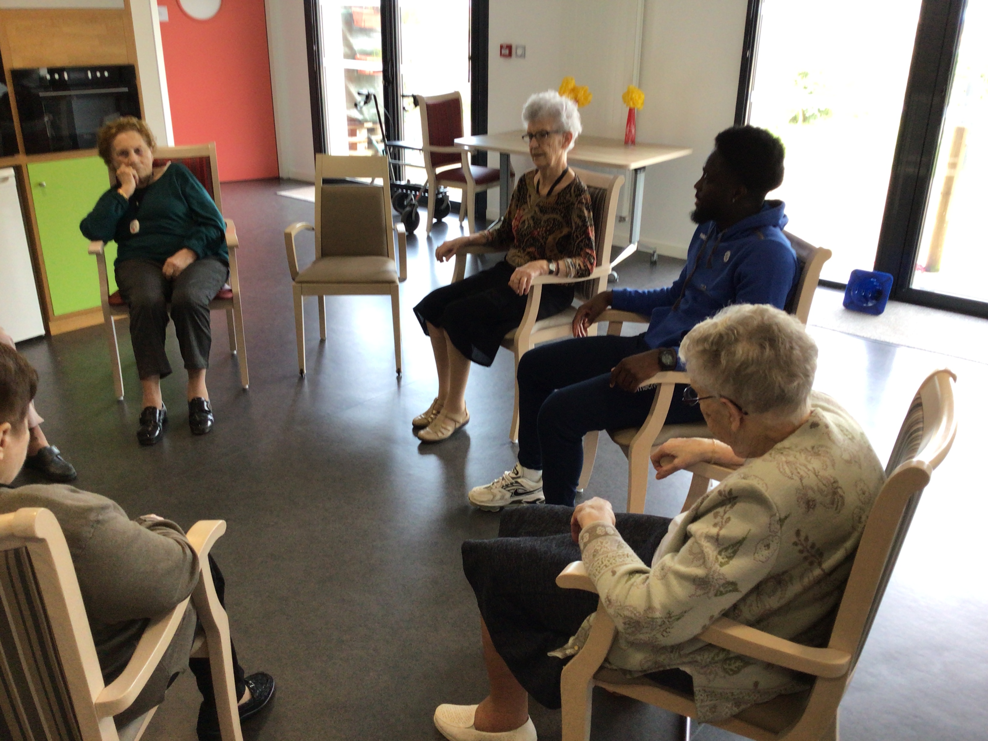 matin: dérouill'âge pour se maintenir en forme: échauffement des articulations , jeu d'adresse, football sur chaises, relaxation et hydratation.