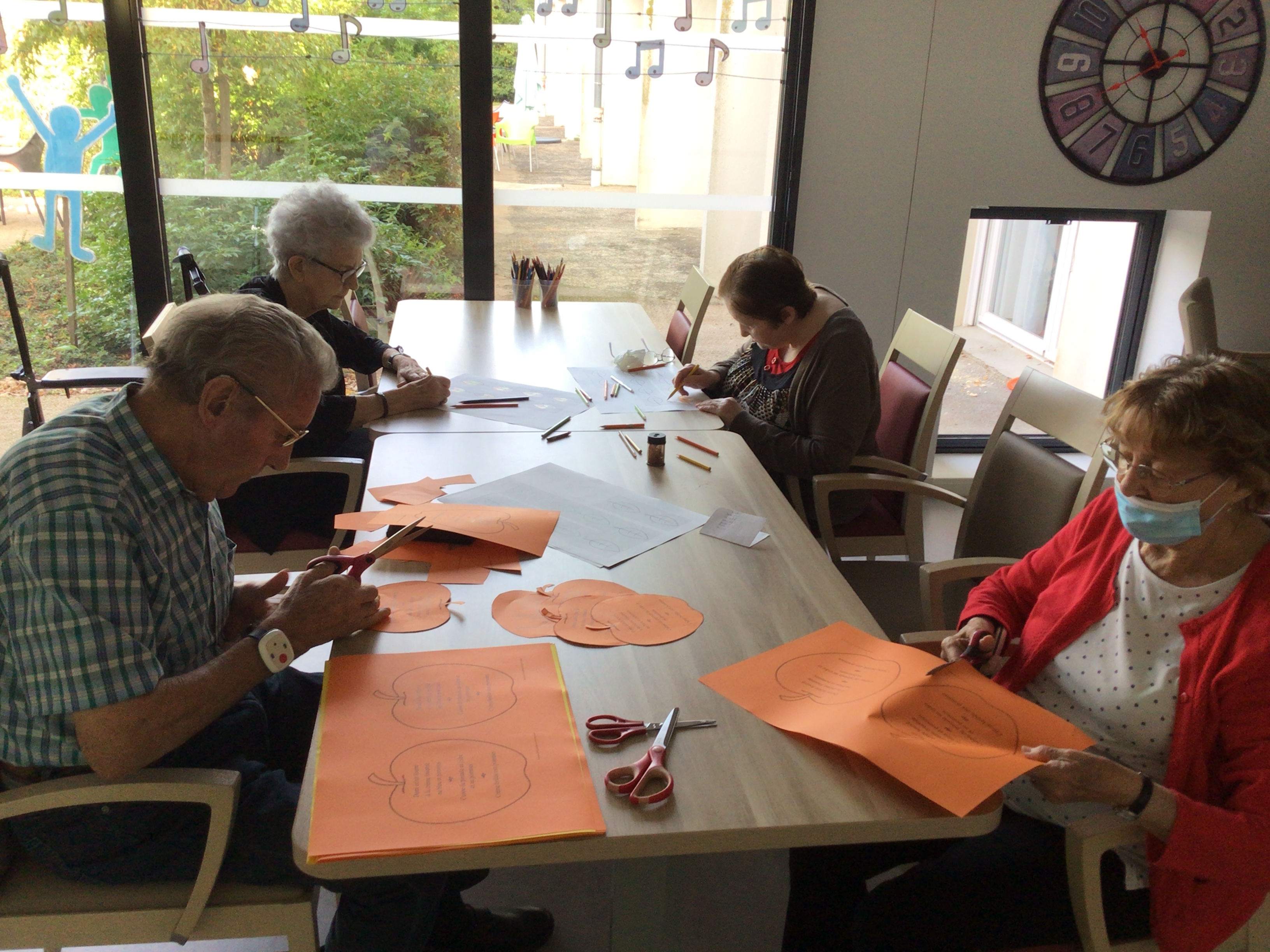 Activités manuelles: Préparation des menus pour le déjeuner sur le thème de la pomme.