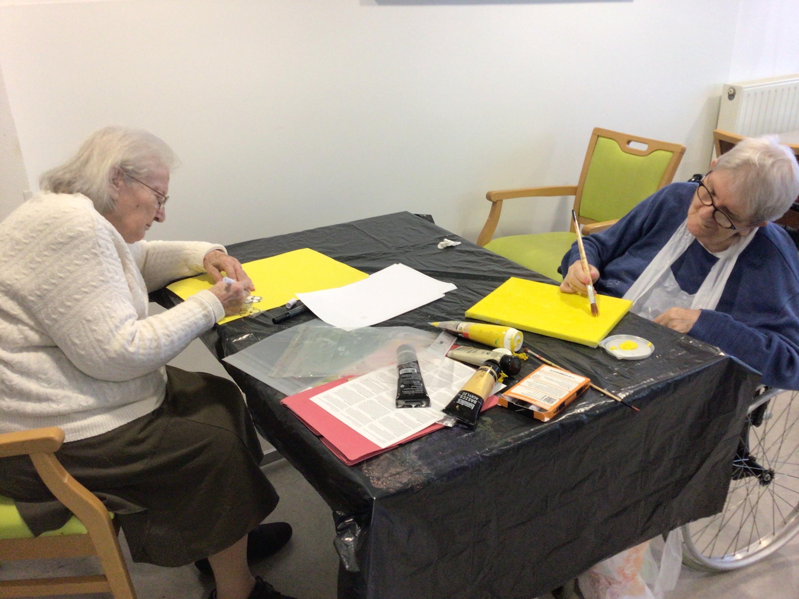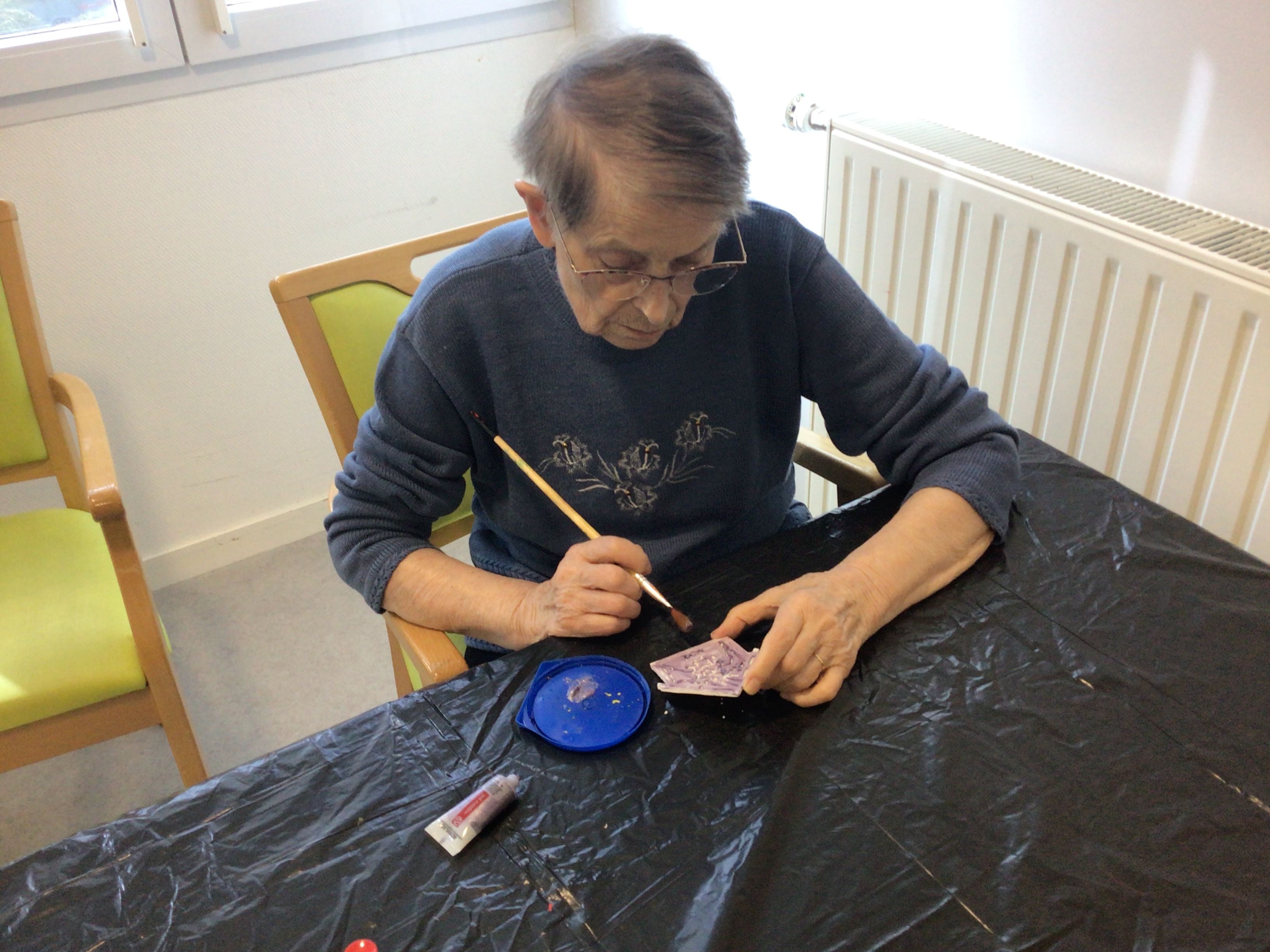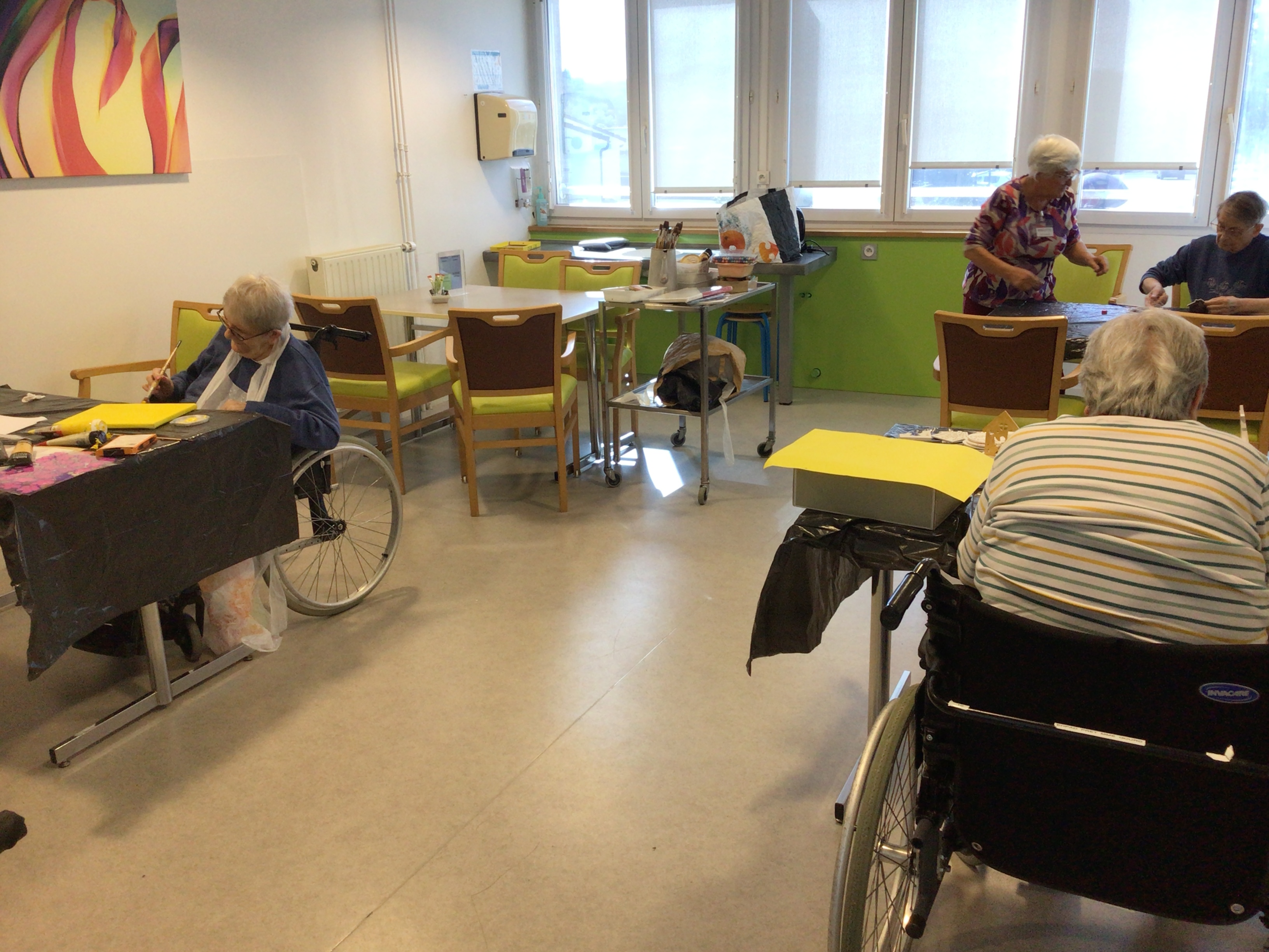 Art thérapie avec Brigitte Belaud : le groupe de résidentes s'est affairée à la préparation de décorations pour le marché de Noël.