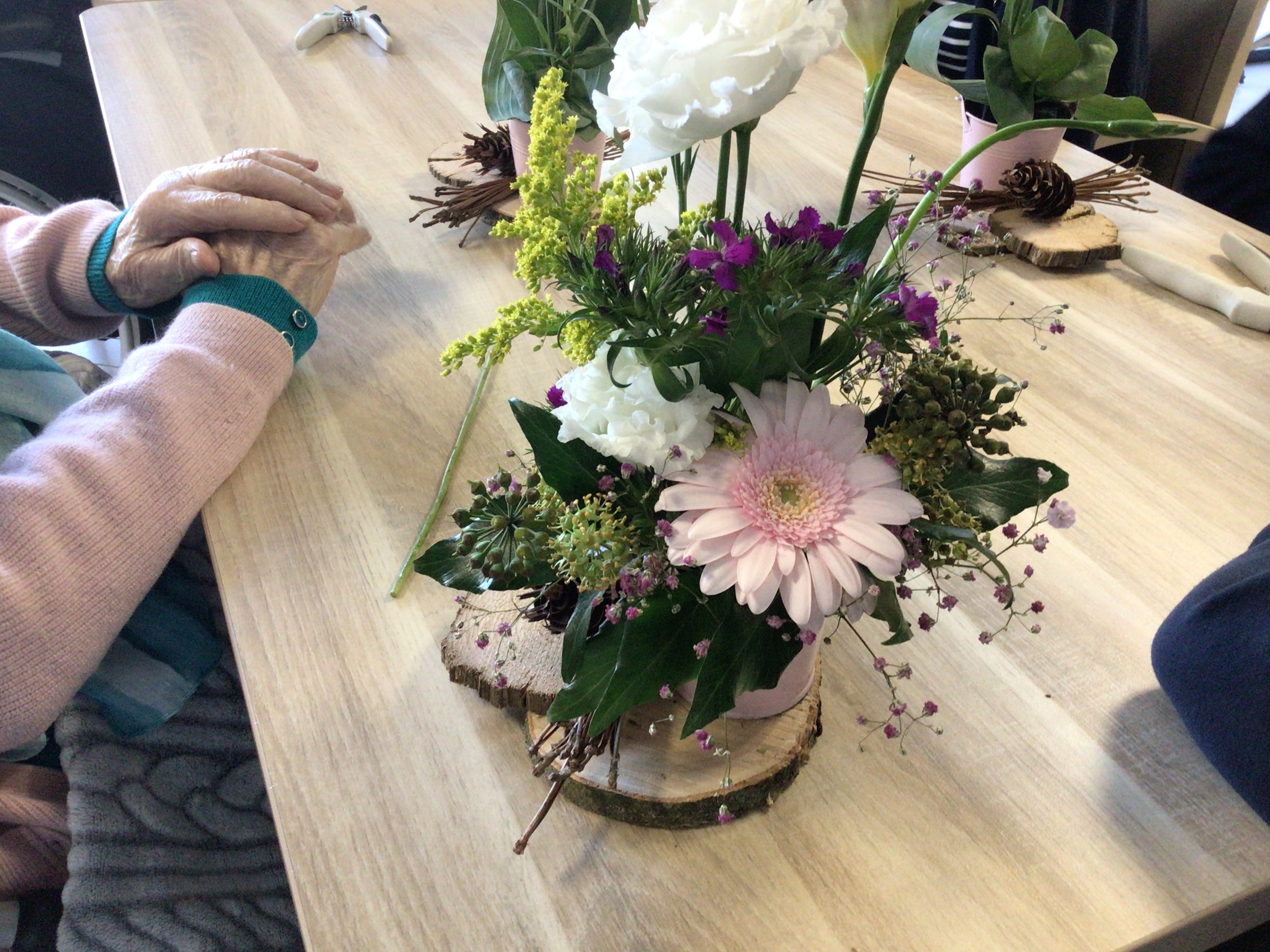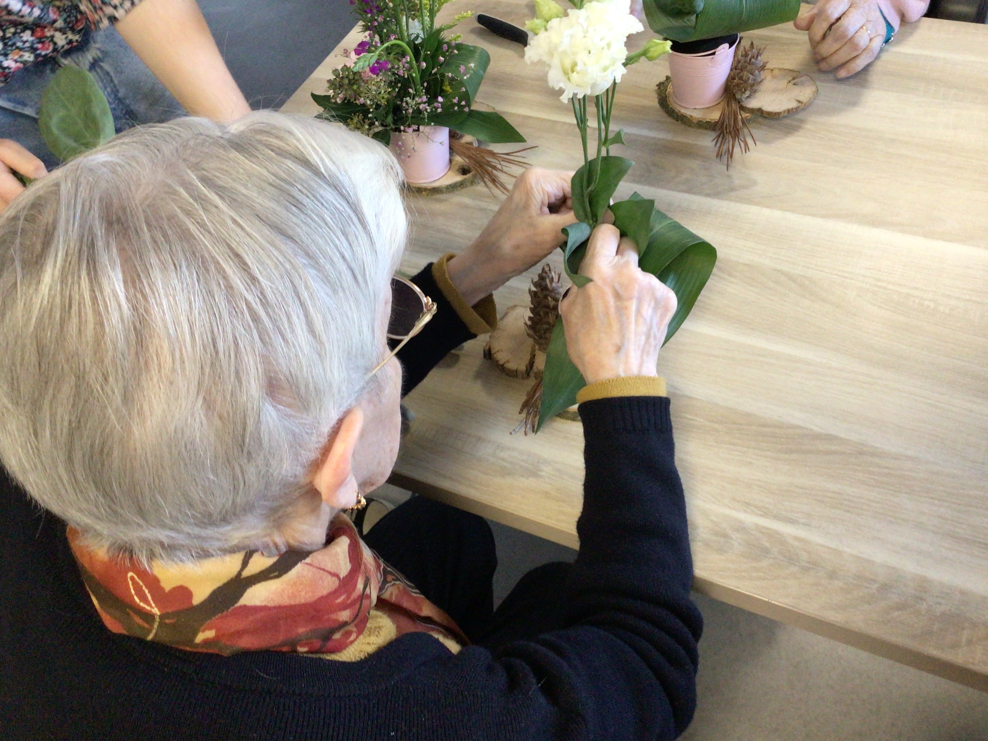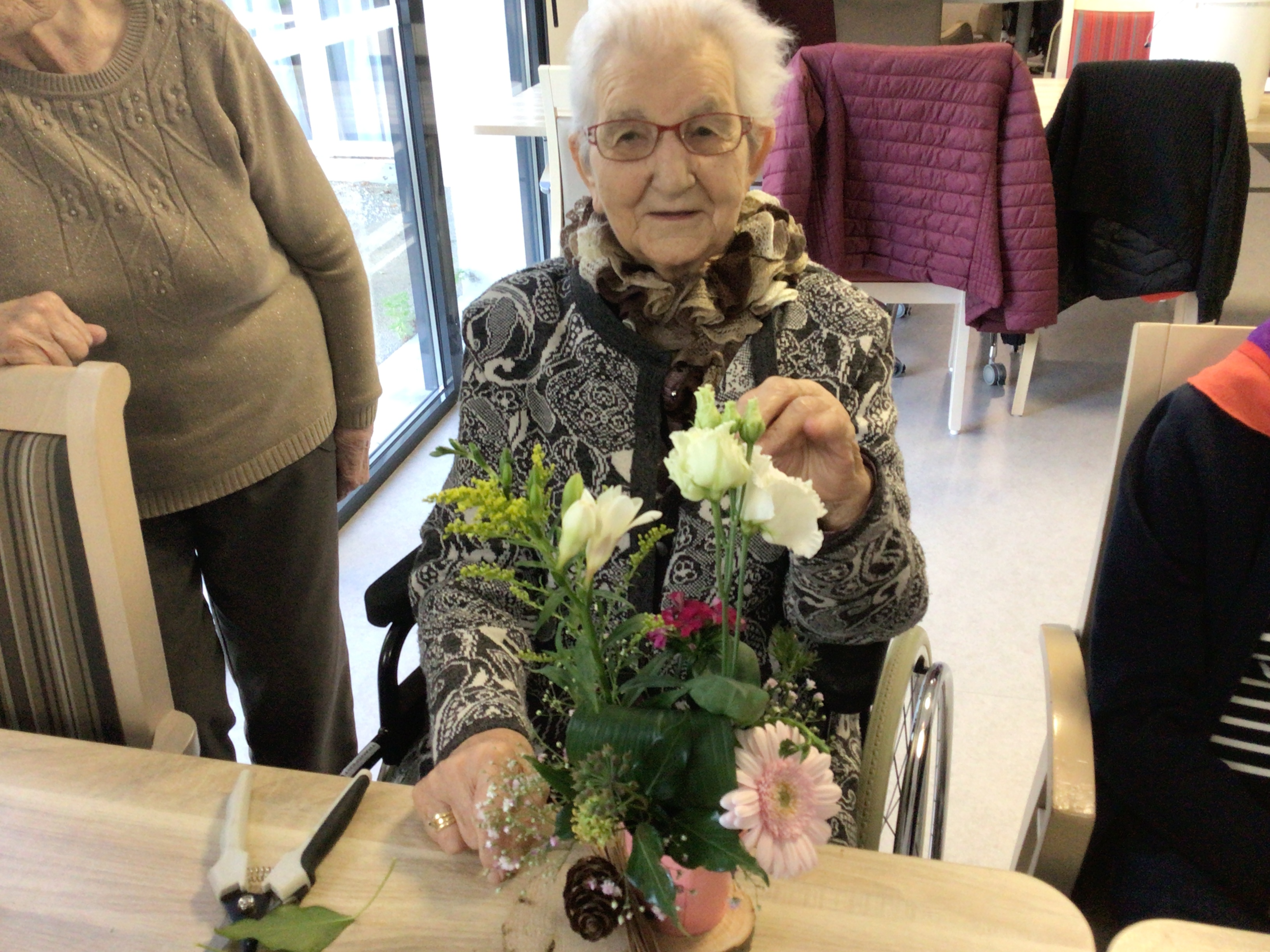 Une belle journée qui commence par la présence d'Honorine la fleuriste de Secondigny accompagnée d'une bénévole qui sont venues ce matin à l'EHPAD pour un atelier Art Floral qui a ravie les participantes.