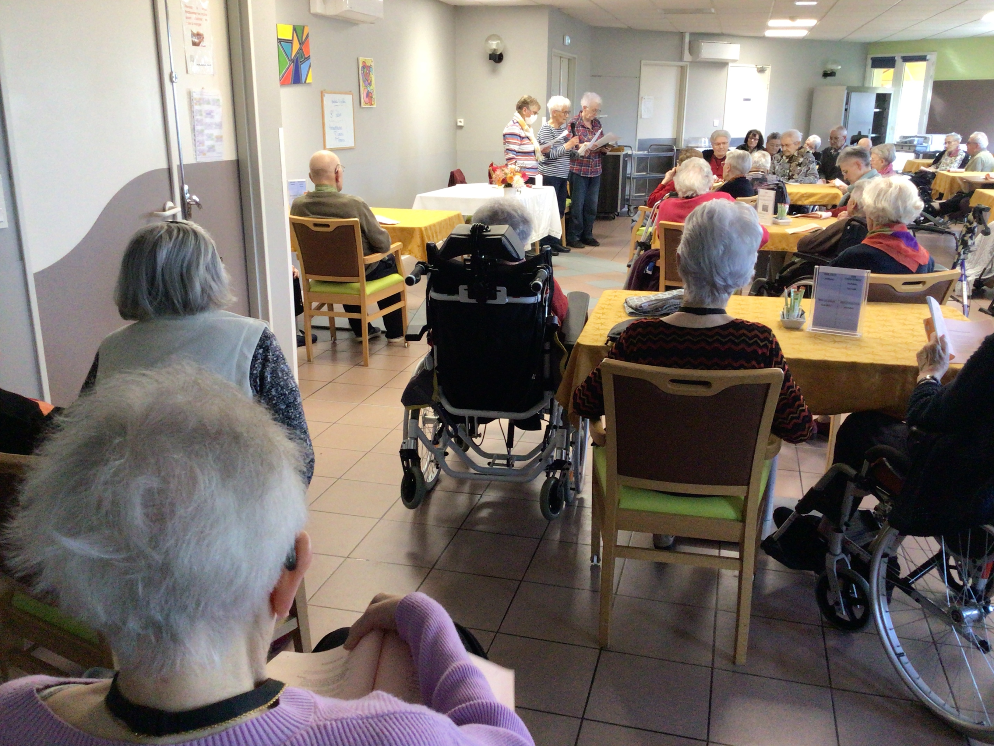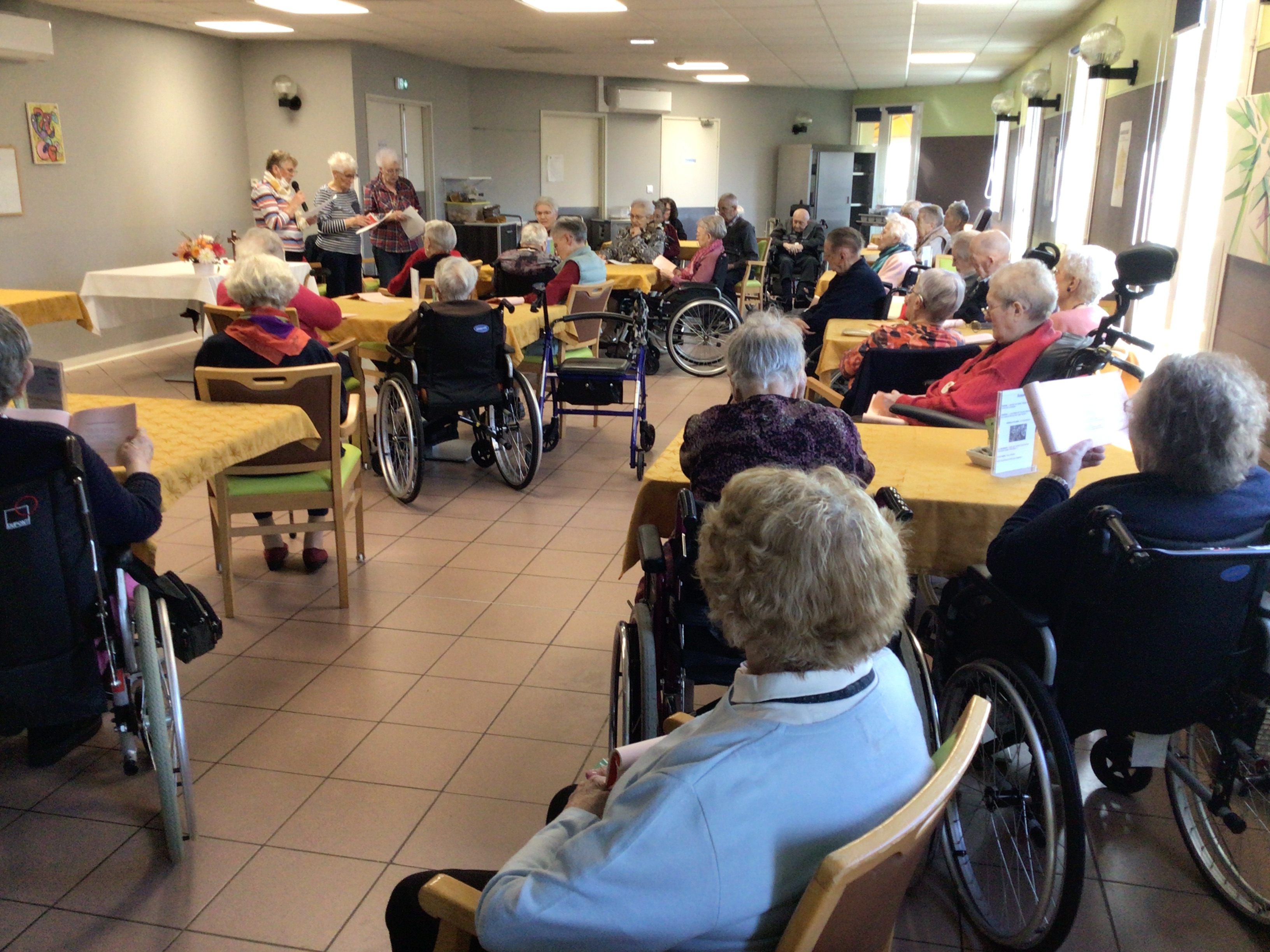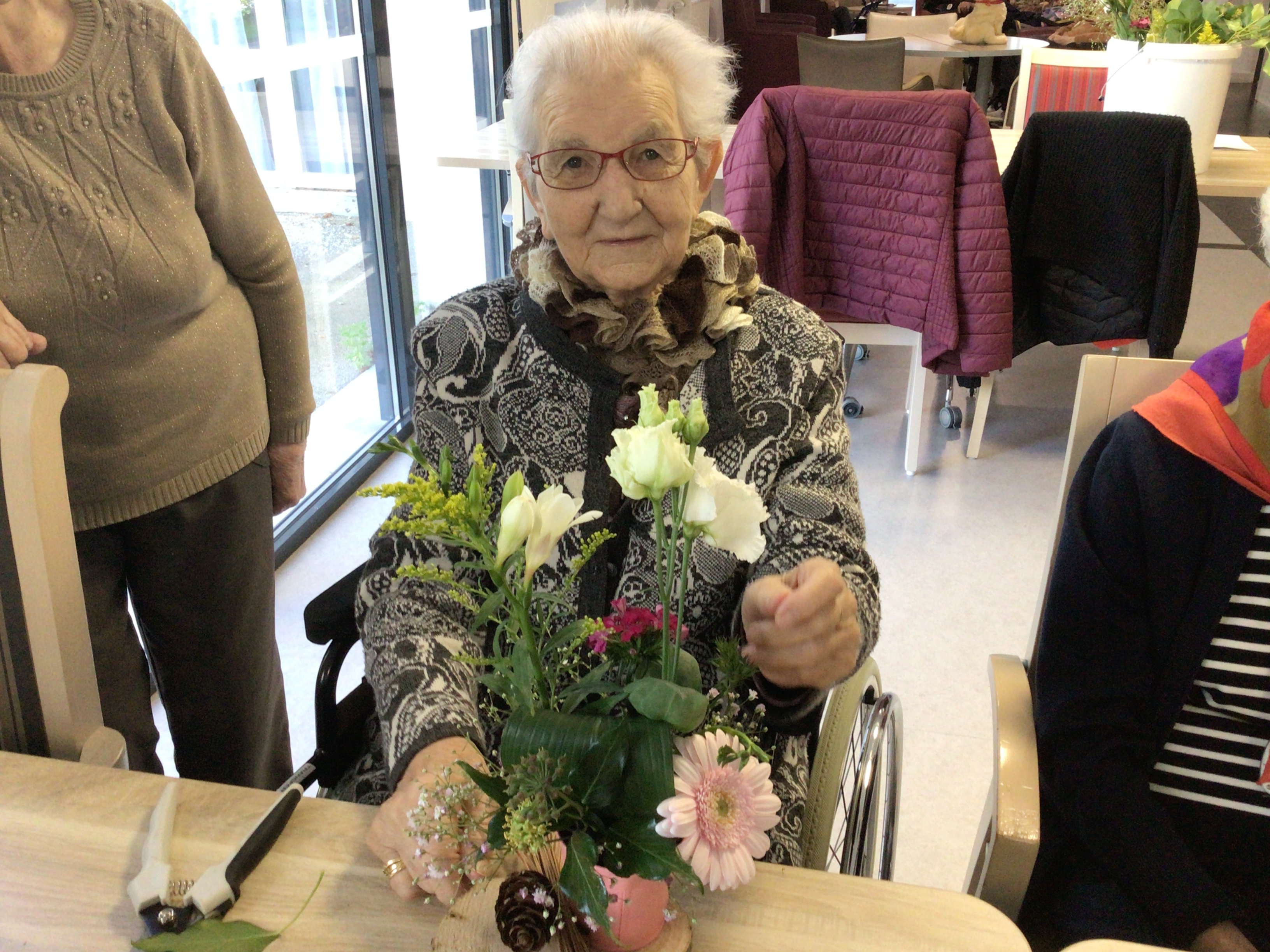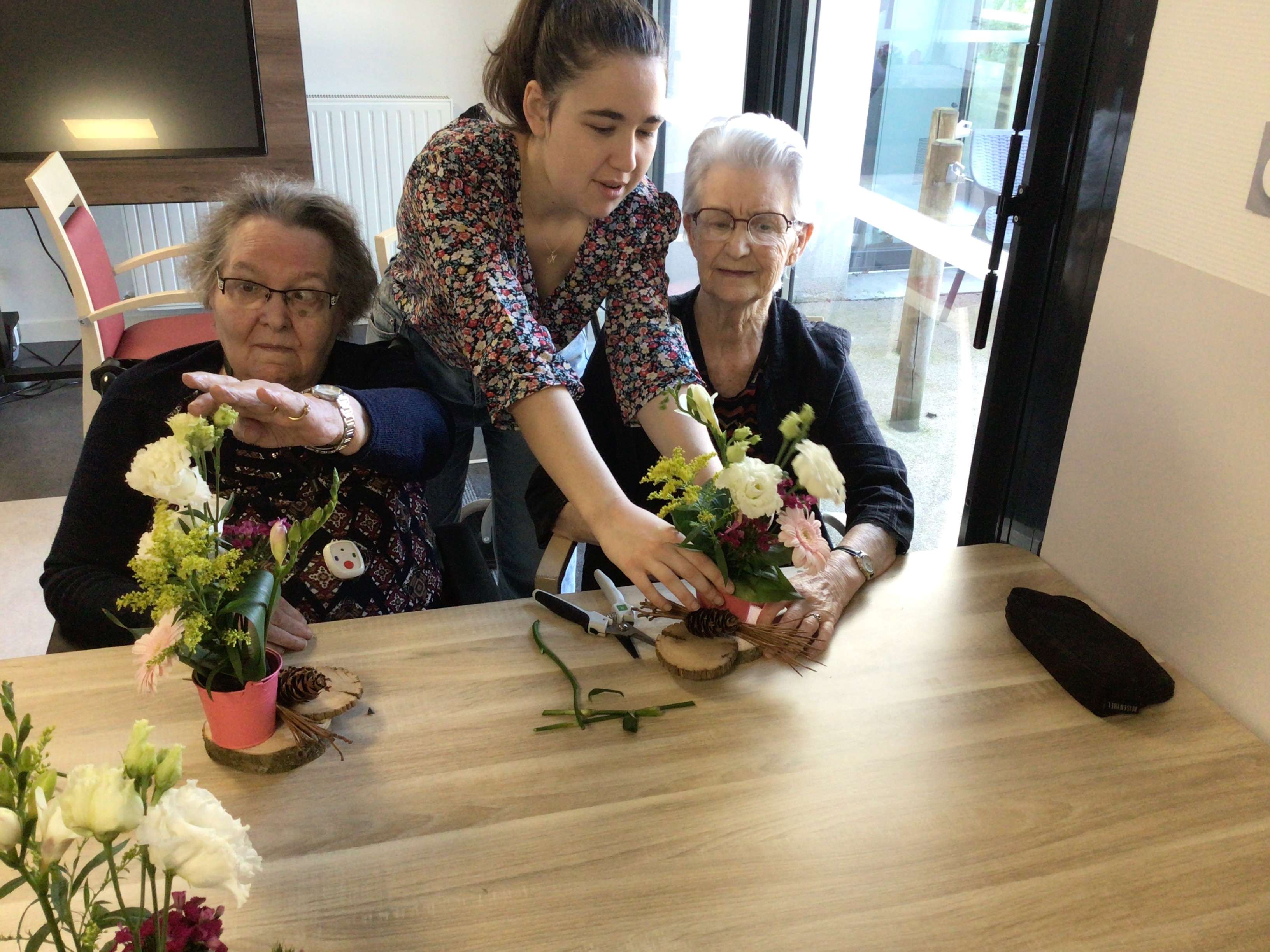 Une belle journée qui commence par la présence d'Honorine la fleuriste de Secondigny accompagnée d'une bénévole qui sont venues ce matin à l'EHPAD pour un atelier Art Floral qui a ravie les participantes.