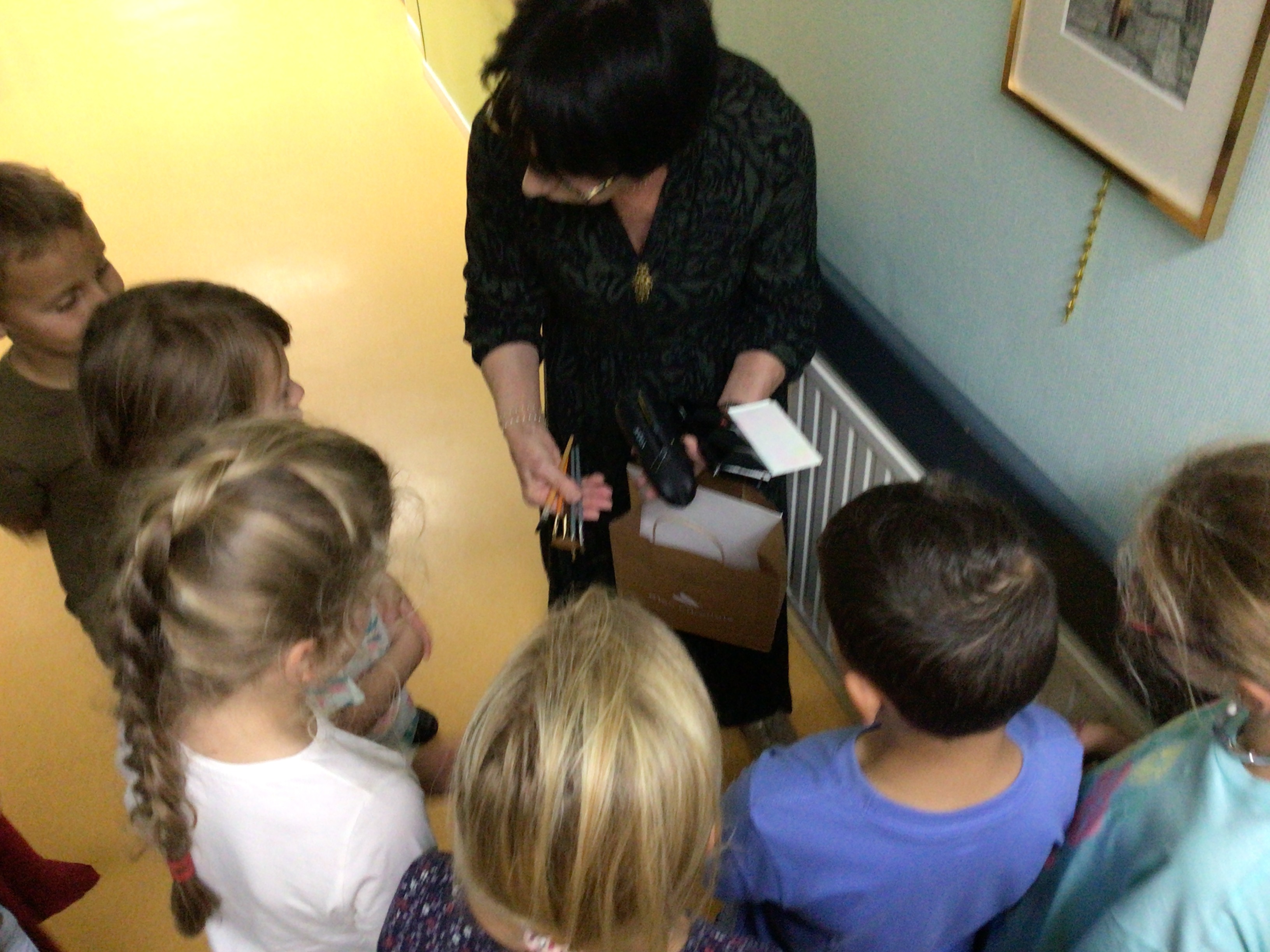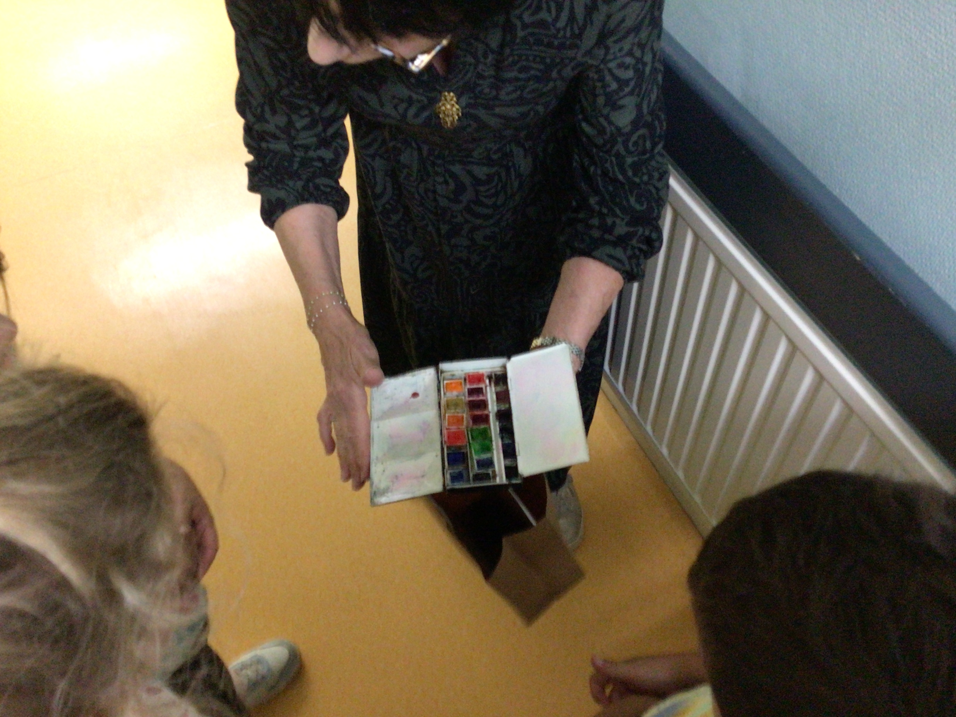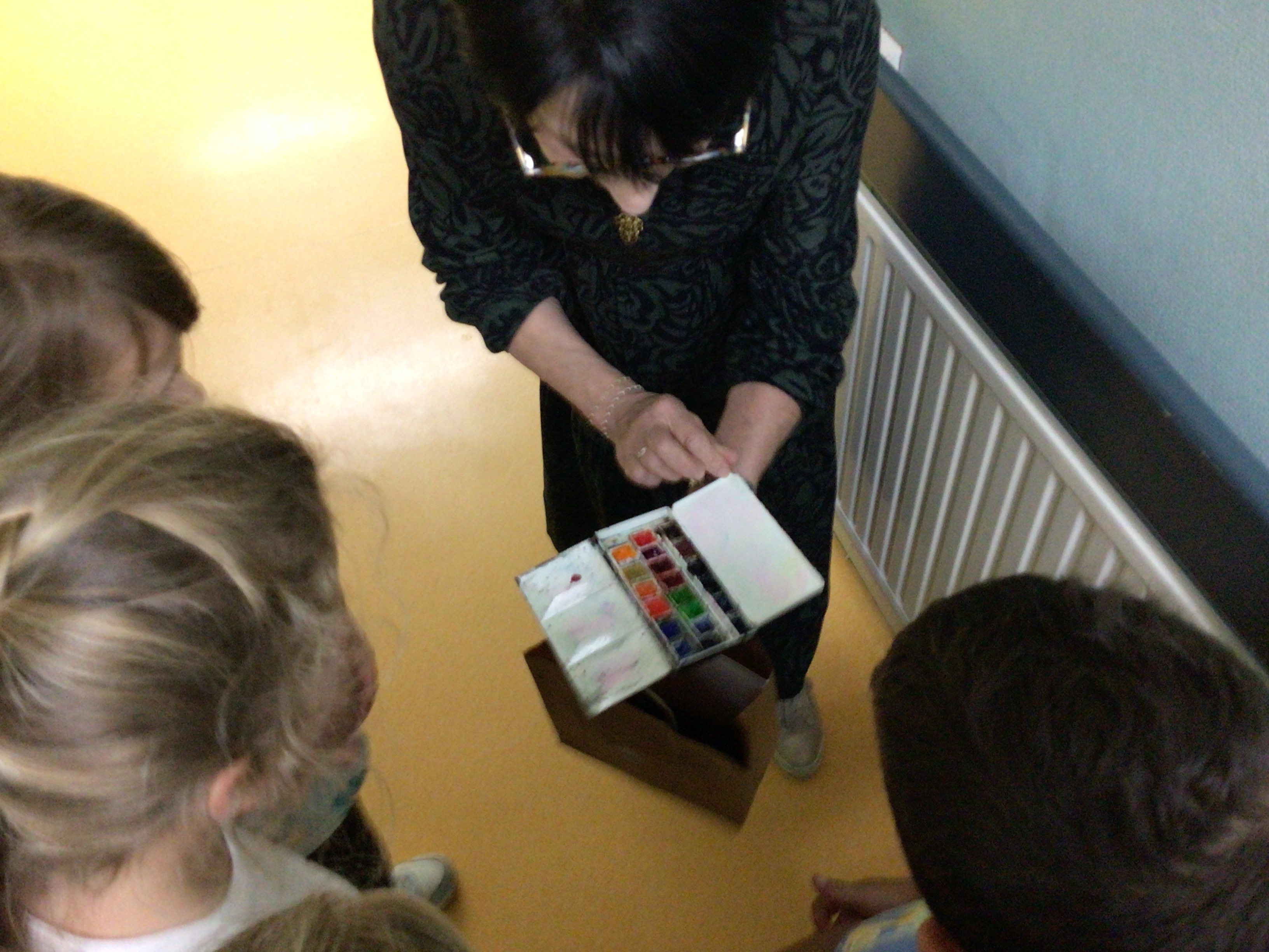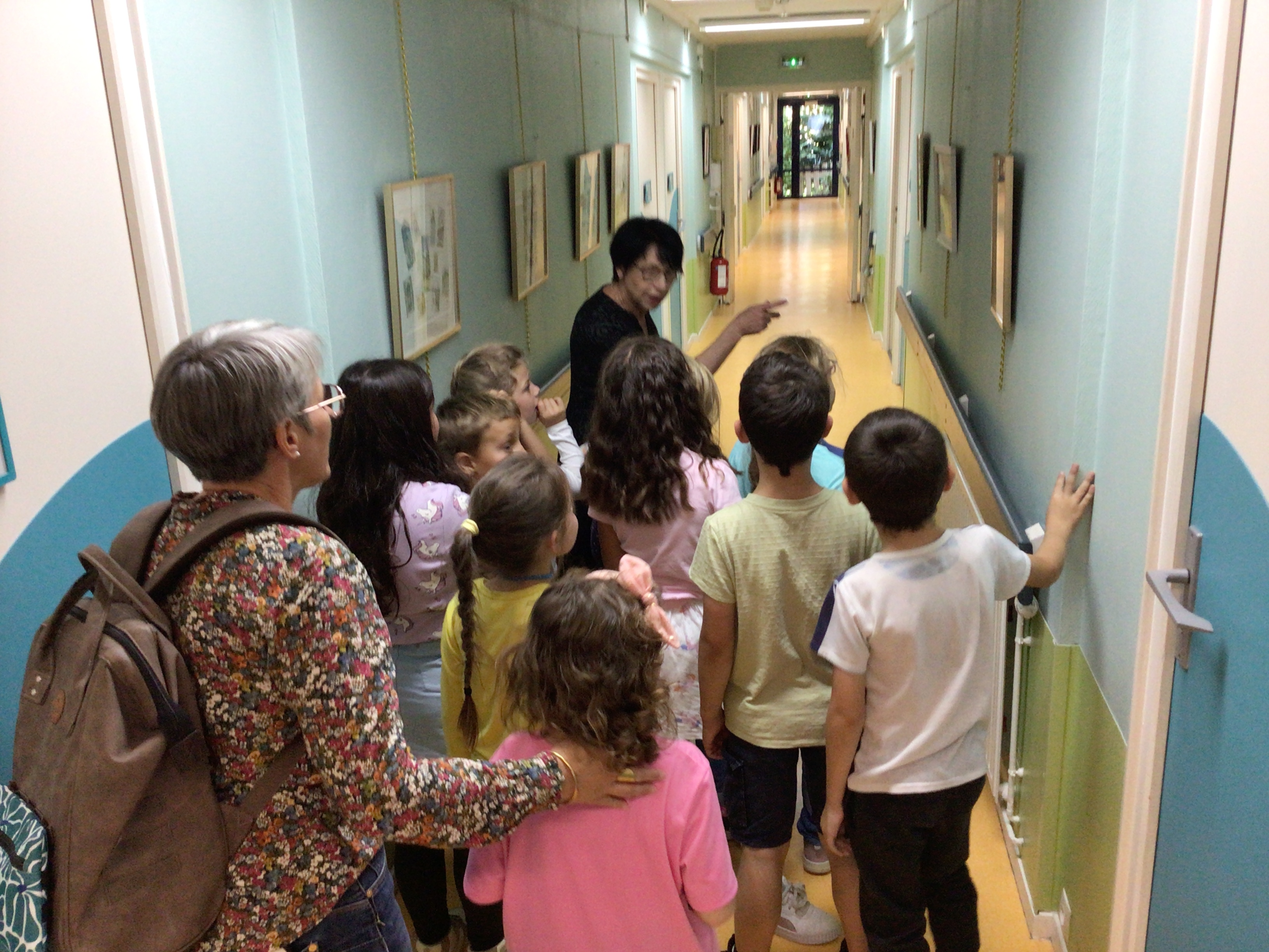 Cet après-midi, la classe de primaire (CP/CE1/CE2) de l'école Ste Marie est venue visiter l'exposition "l'art entre en résidence". A cette occasion , ils ont pu rencontrer l'artiste Josette Calvet , et échanger sur les différentes oeuvres.