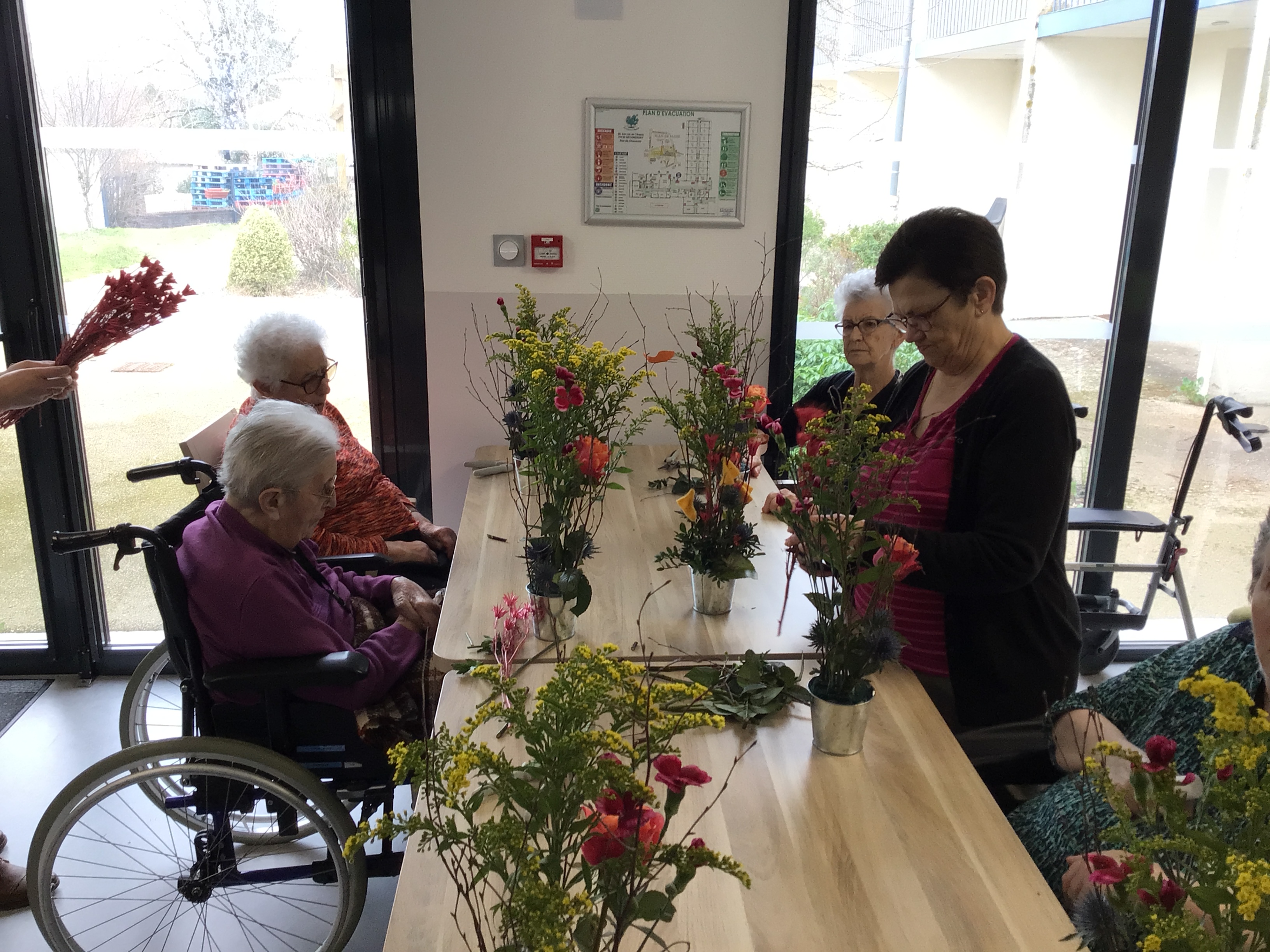 Séance d'art floral avec Mathilde et Jacqueline pour la confection de compositions florales.
