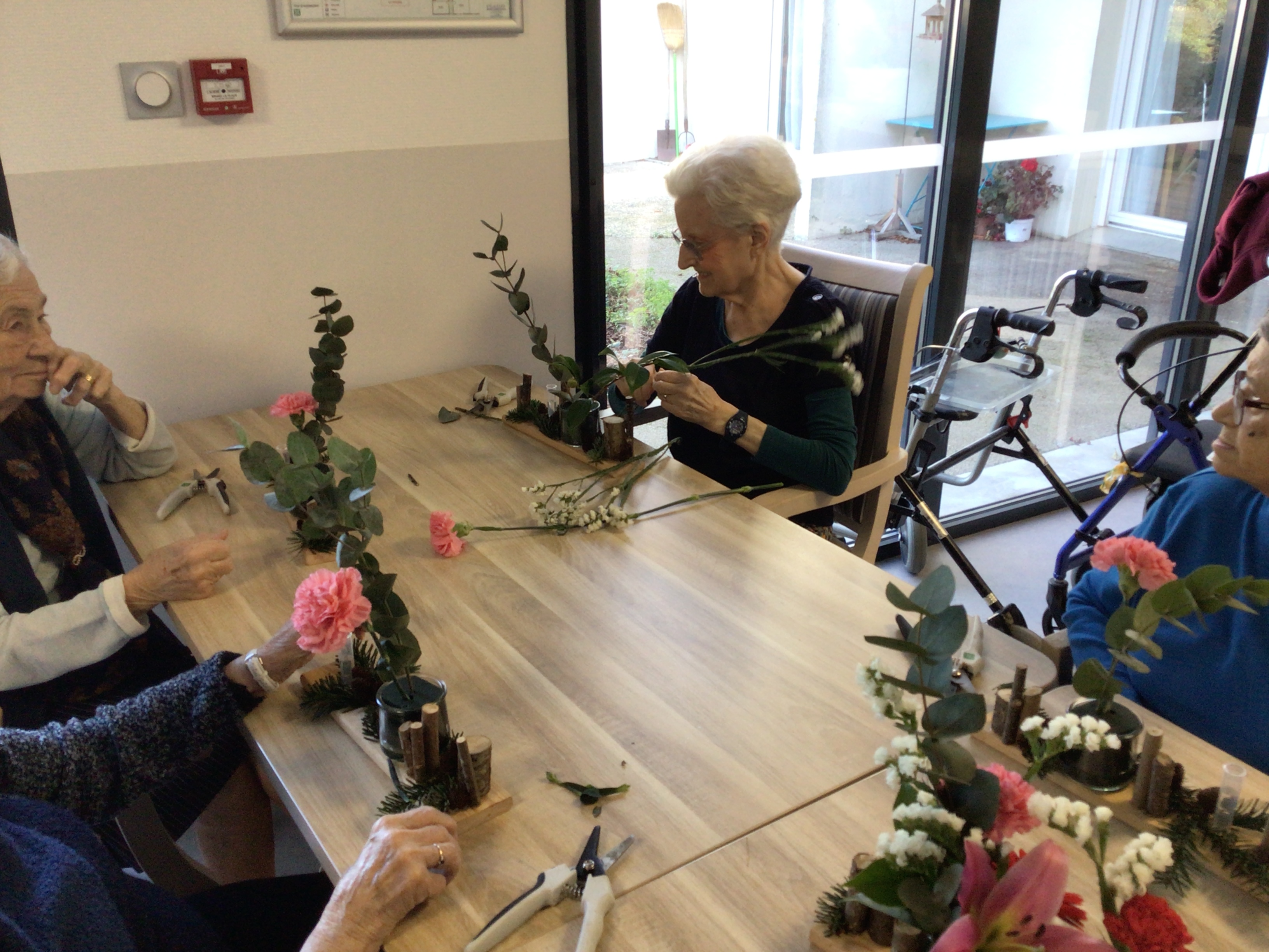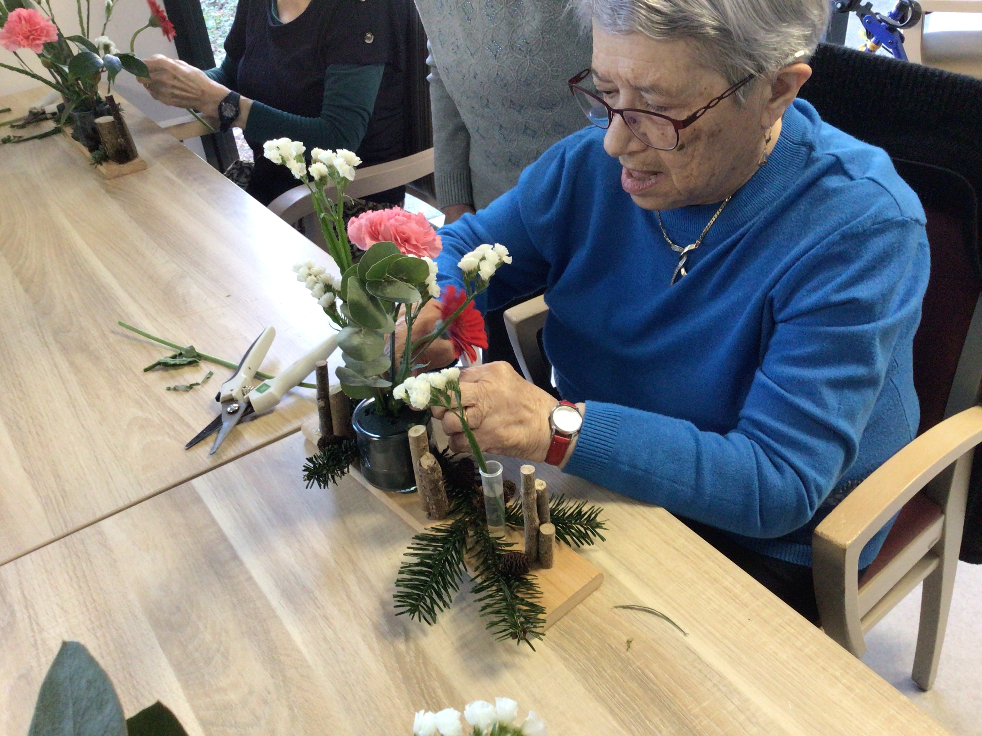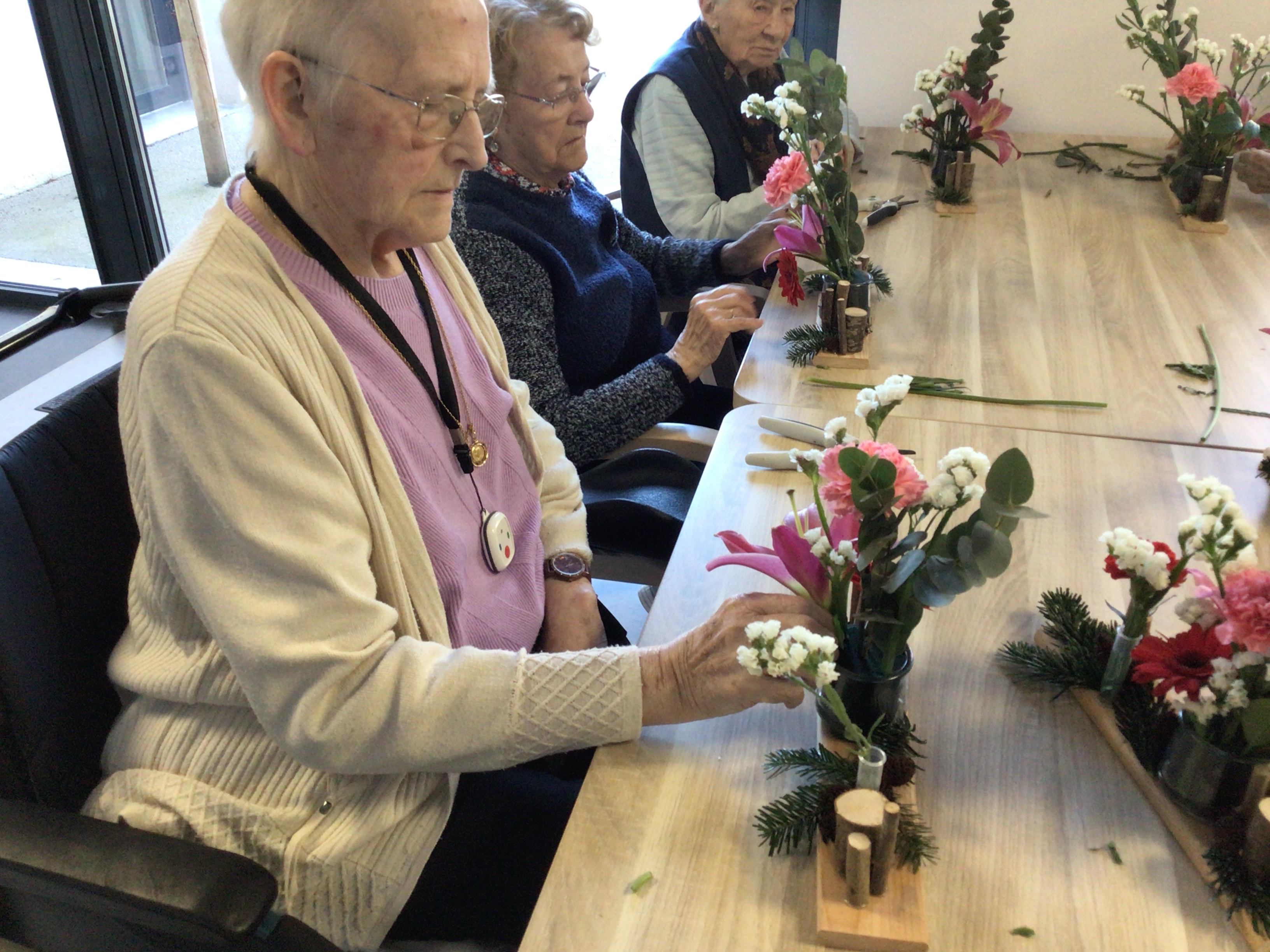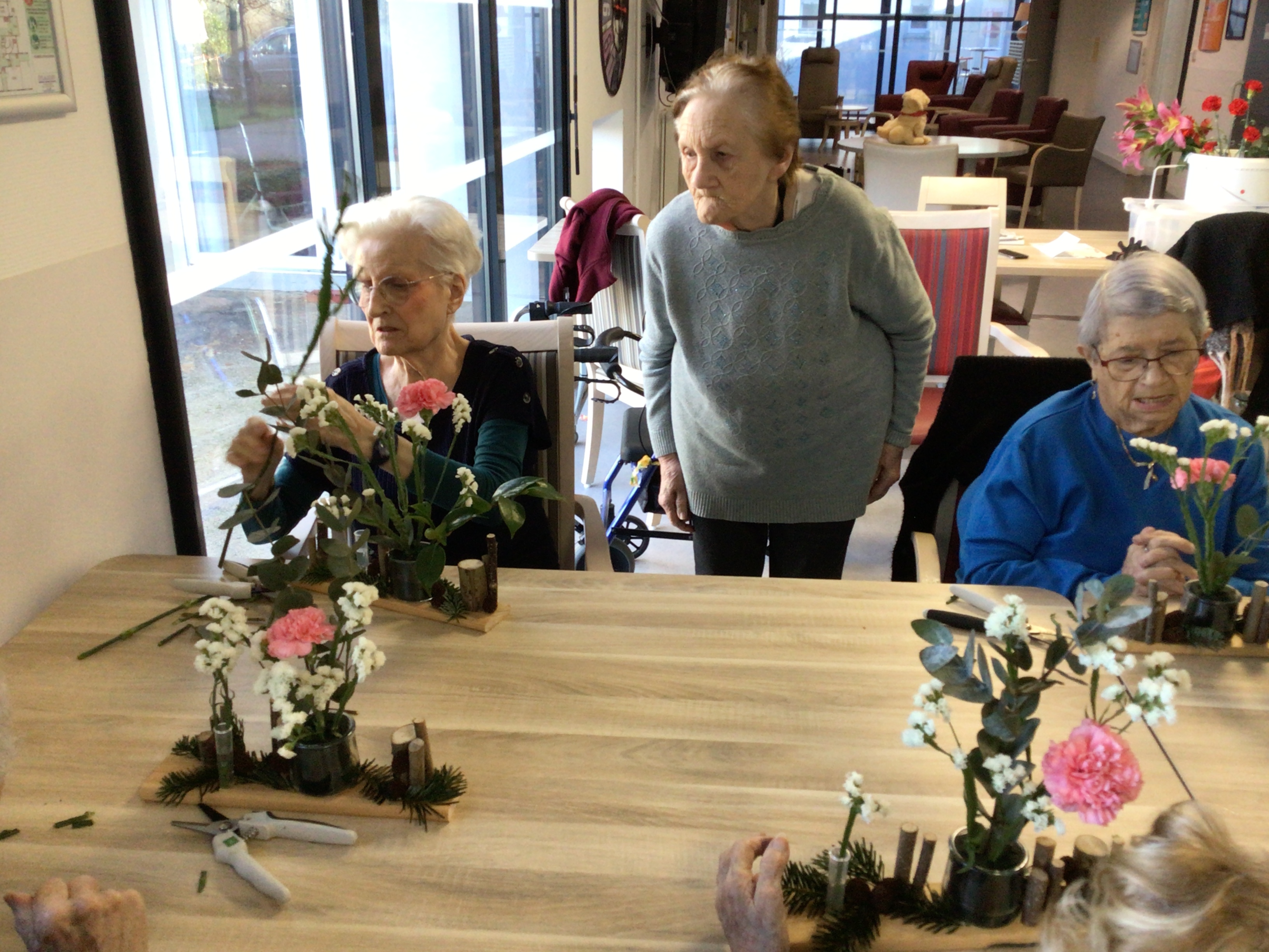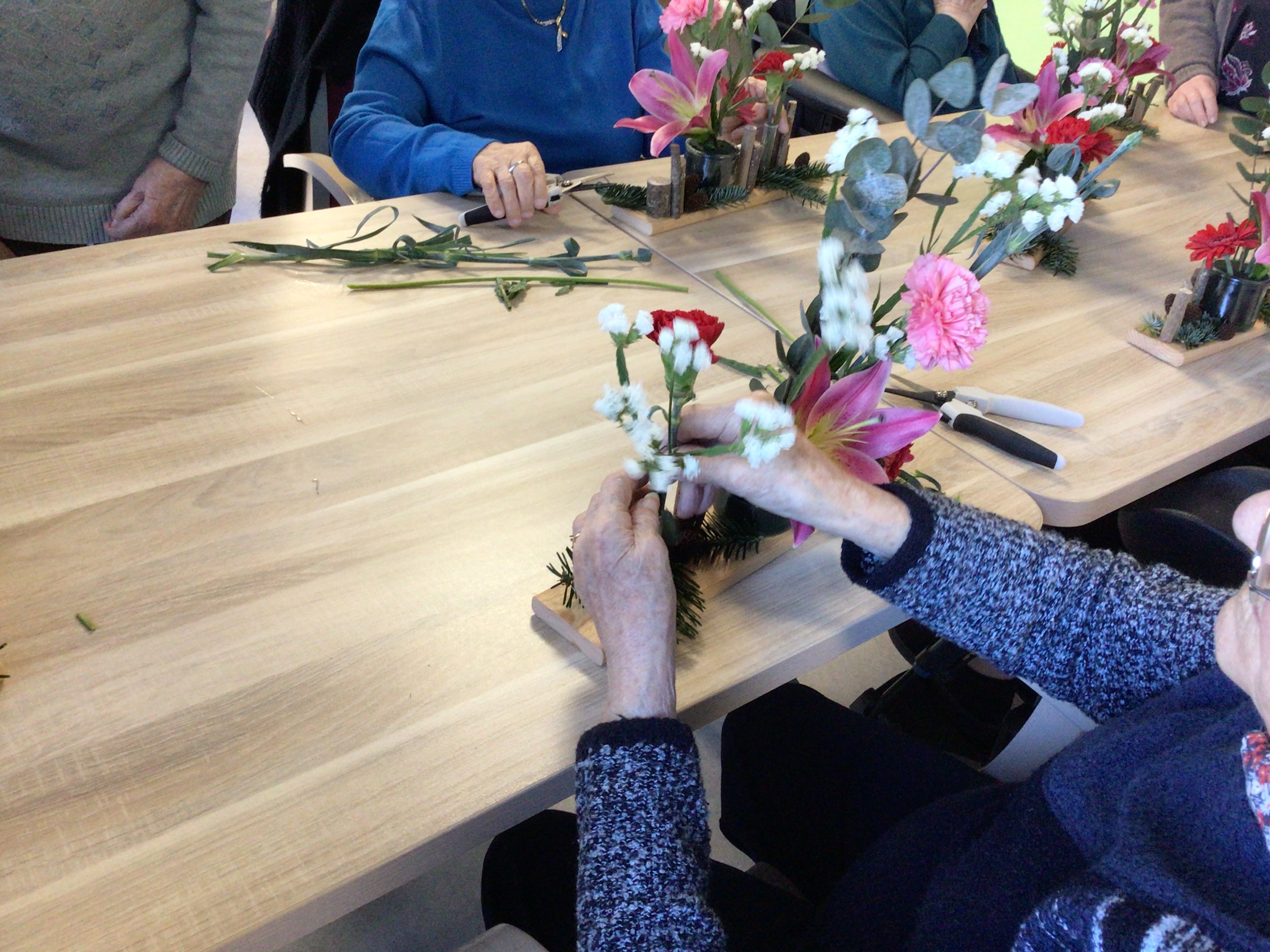 Certaines résidentes ont pu être guidées grâce un modèle proposé par la fleuriste, d'autre ont laissé libre court à leur créativité.