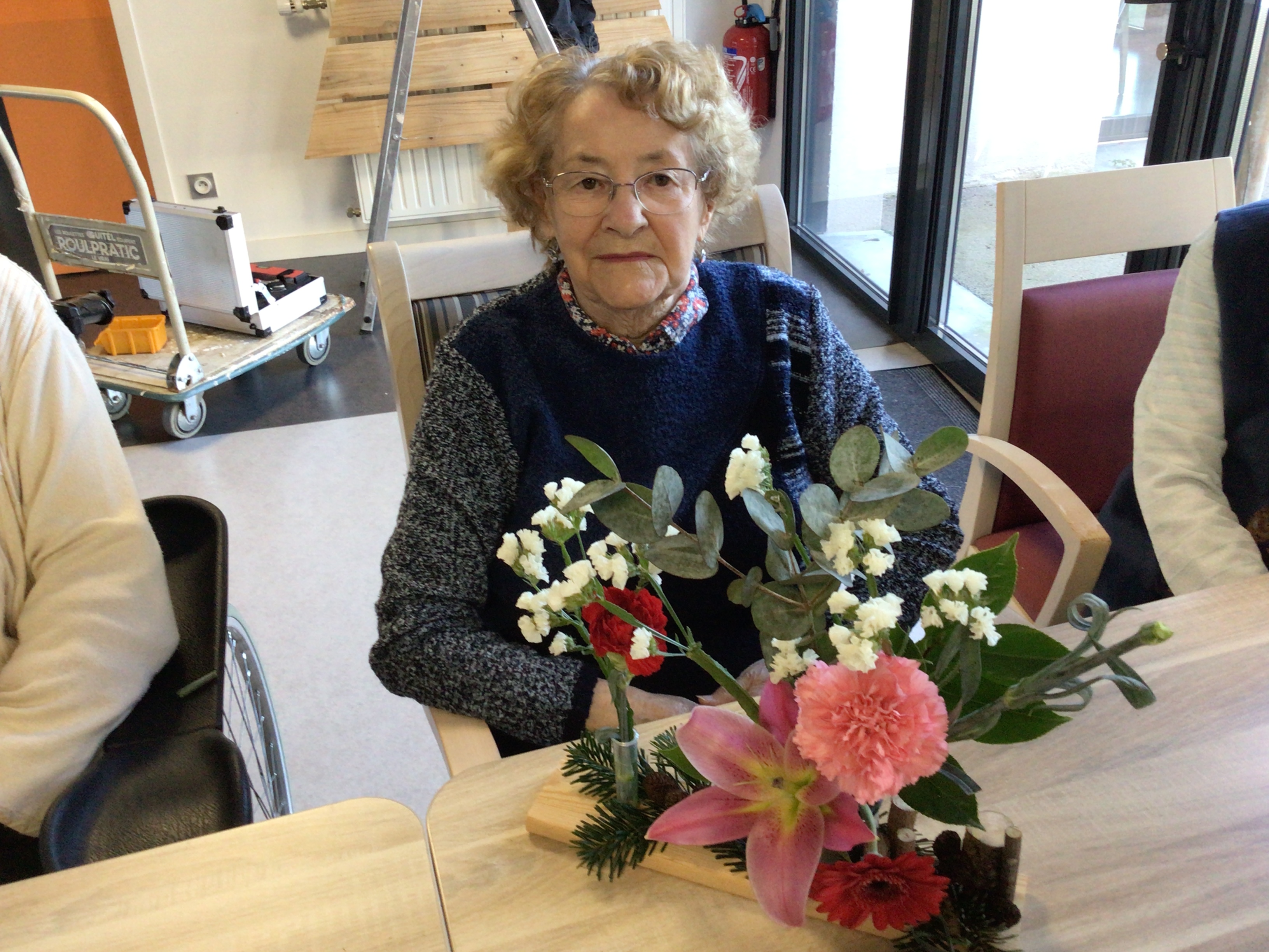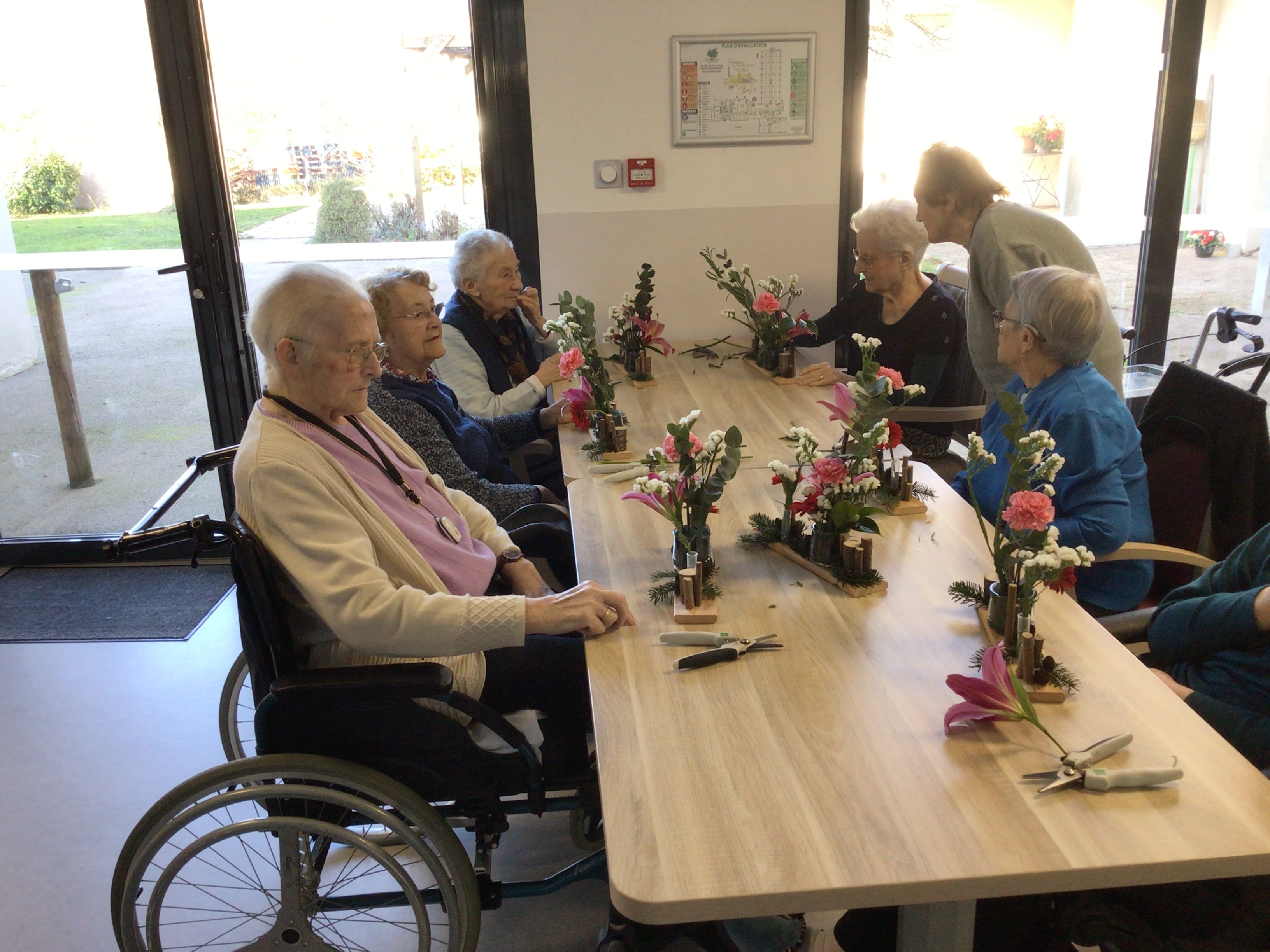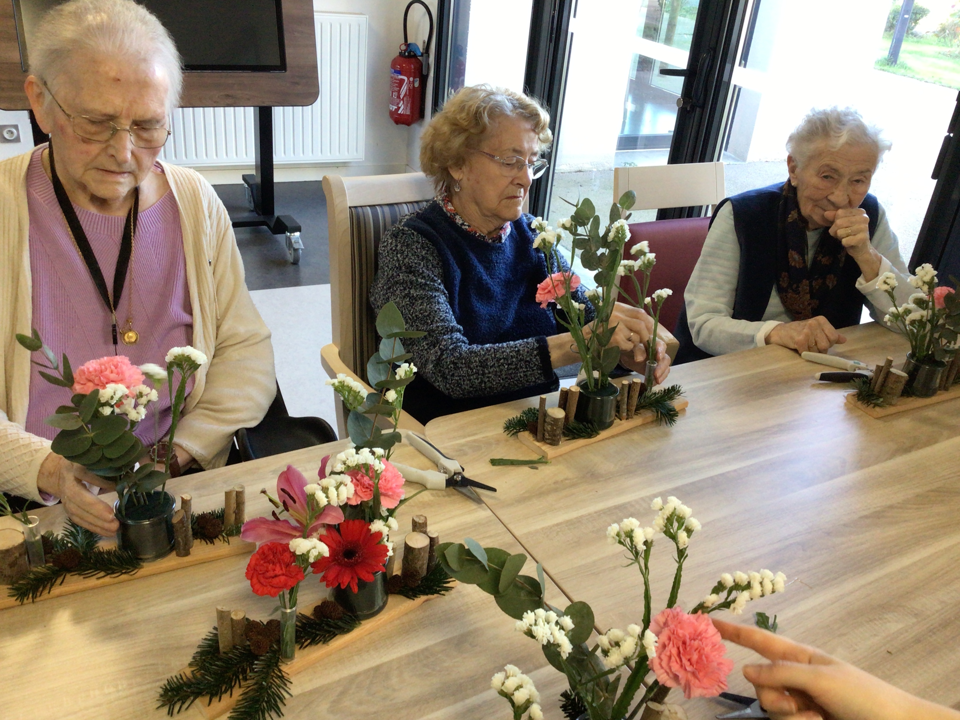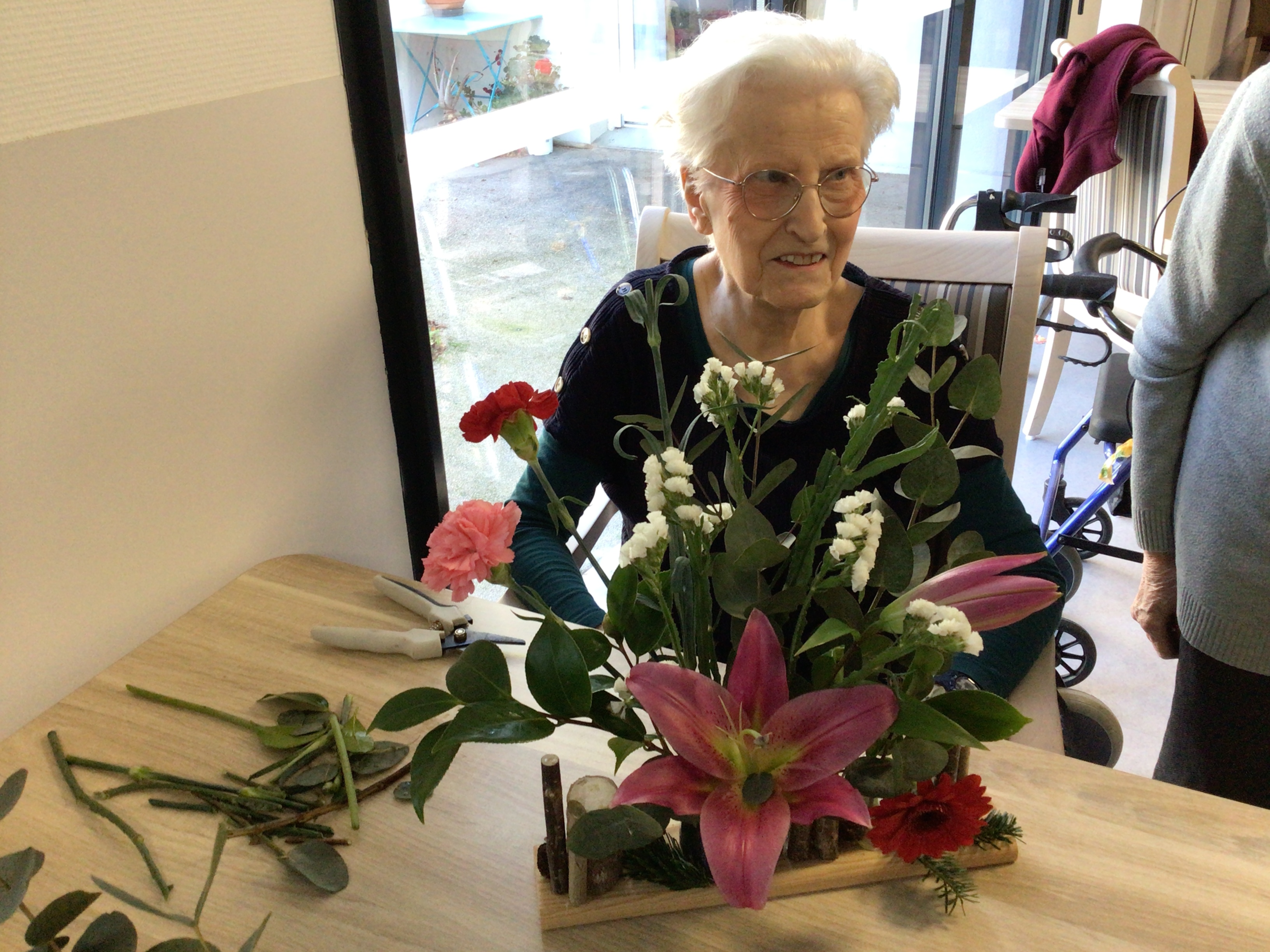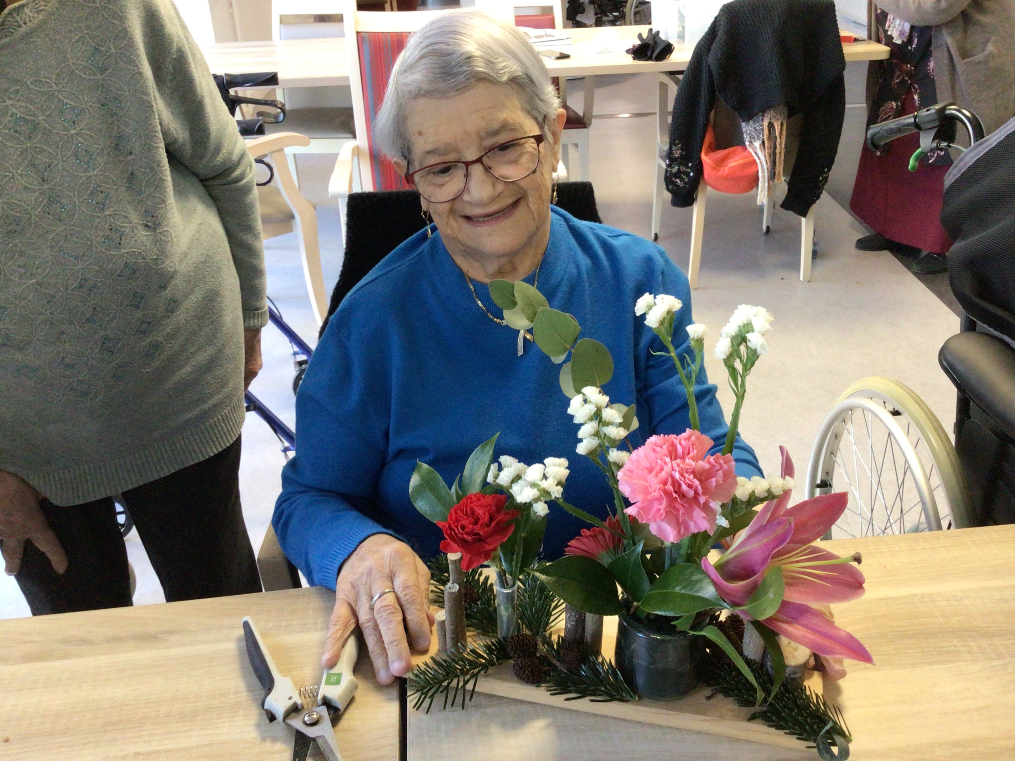 Certaines résidentes ont pu être guidées grâce un modèle proposé par la fleuriste, d'autre ont laissé libre court à leur créativité.