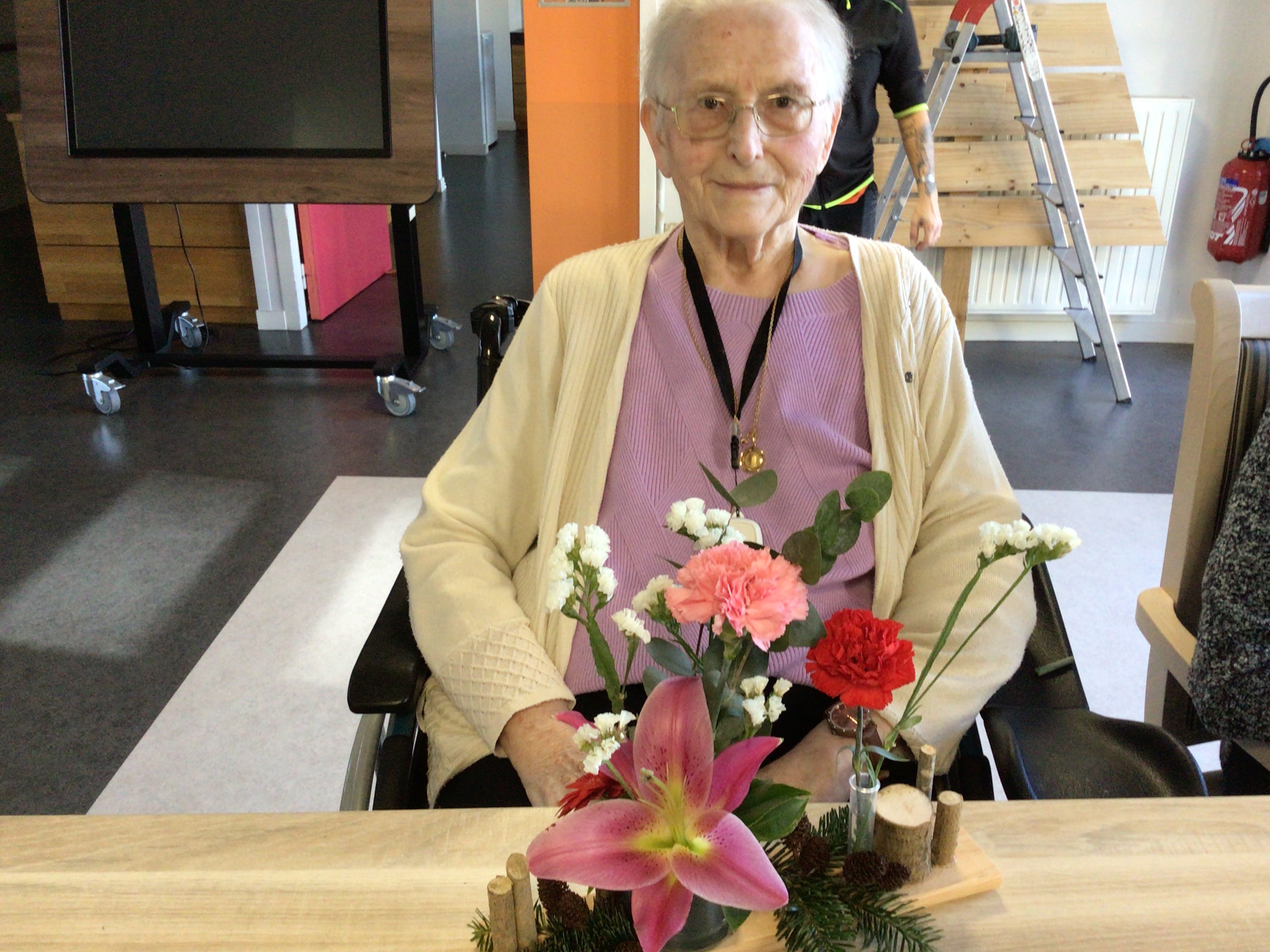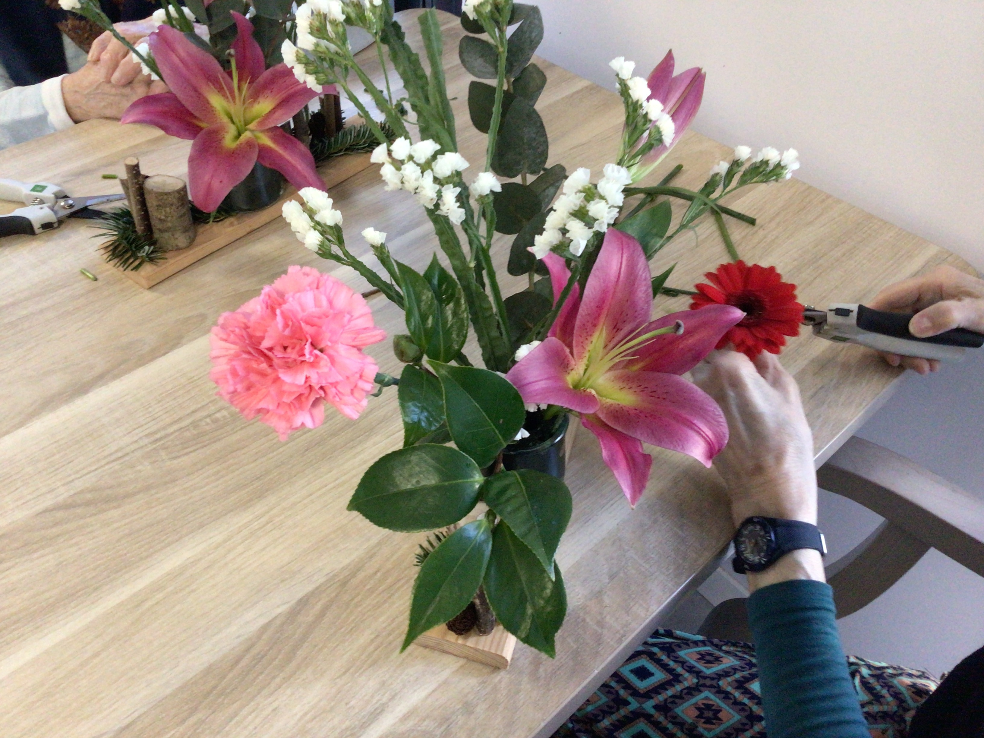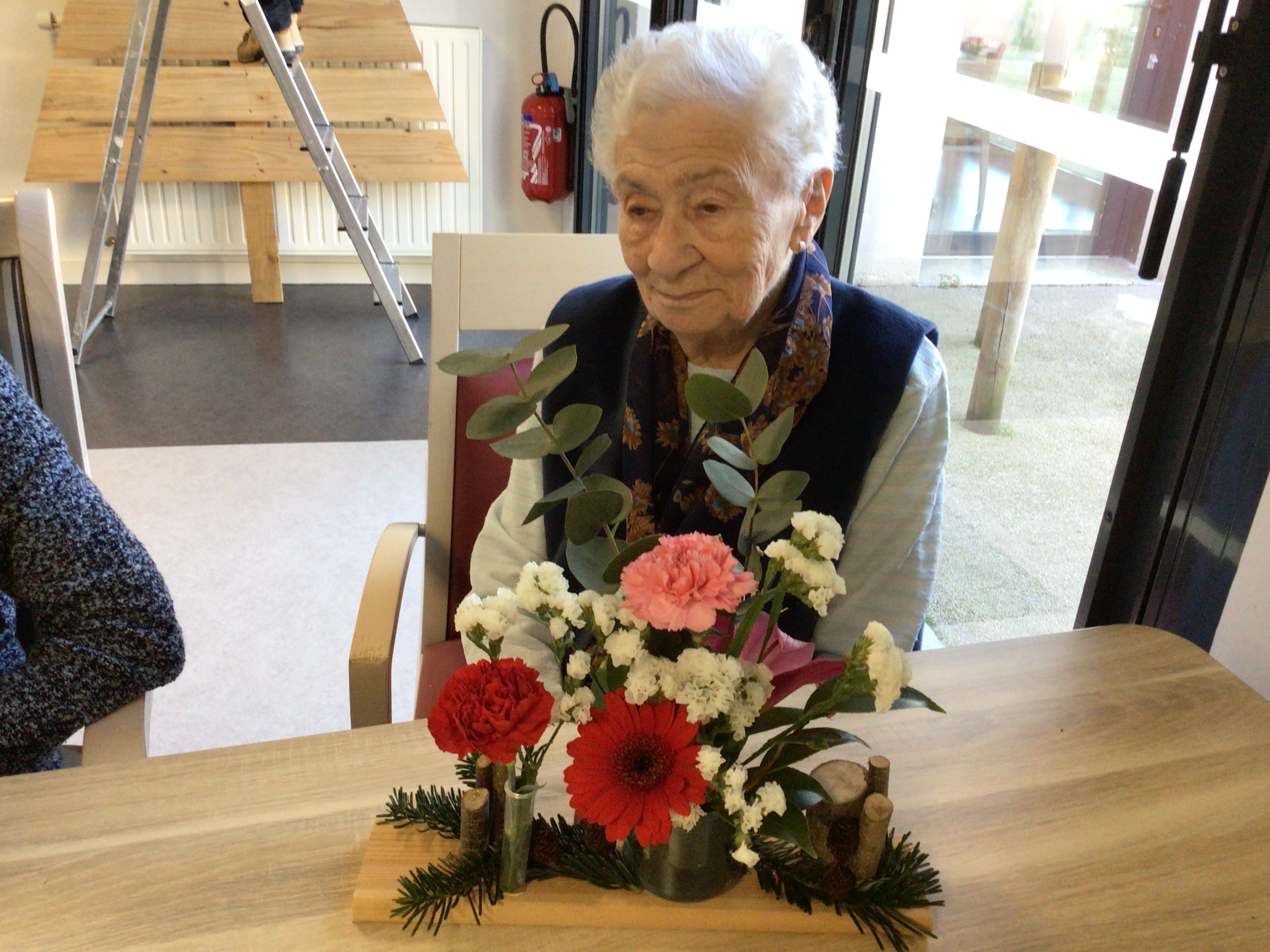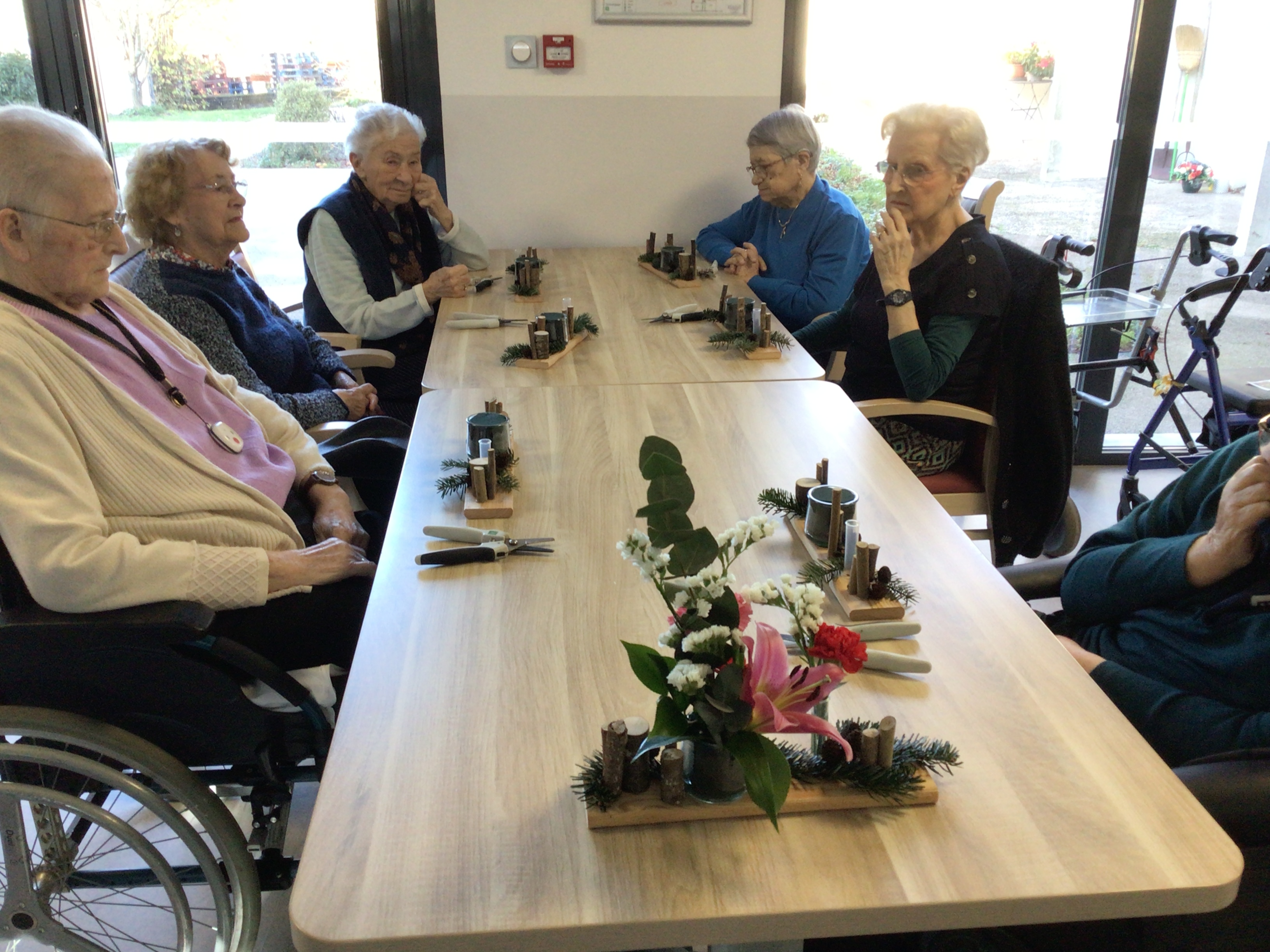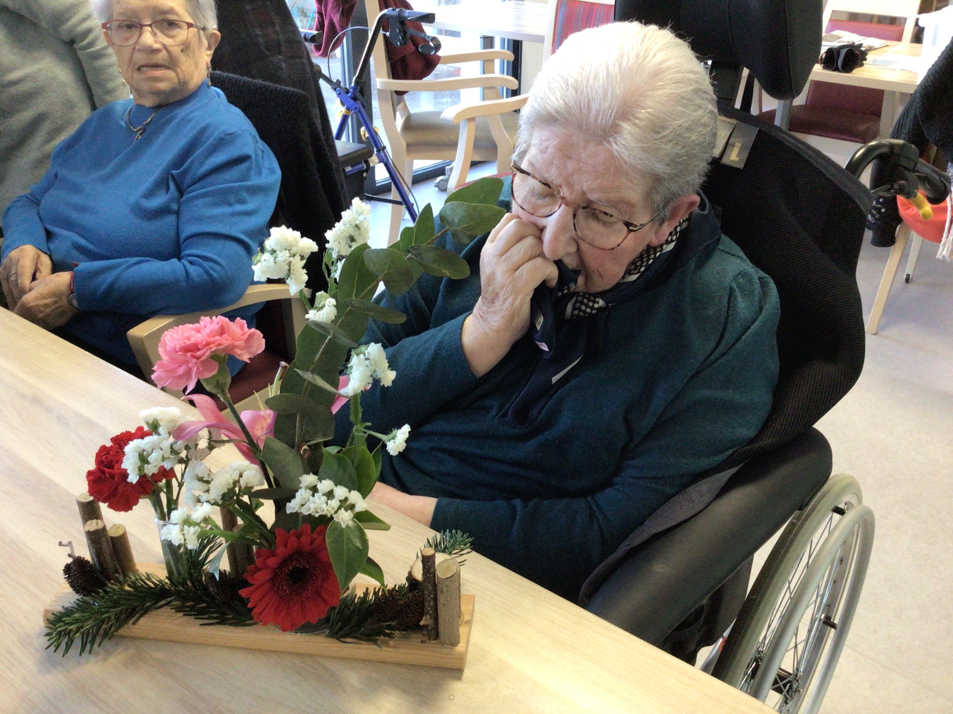 Certaines résidentes ont pu être guidées grâce un modèle proposé par la fleuriste, d'autre ont laissé libre court à leur créativité.