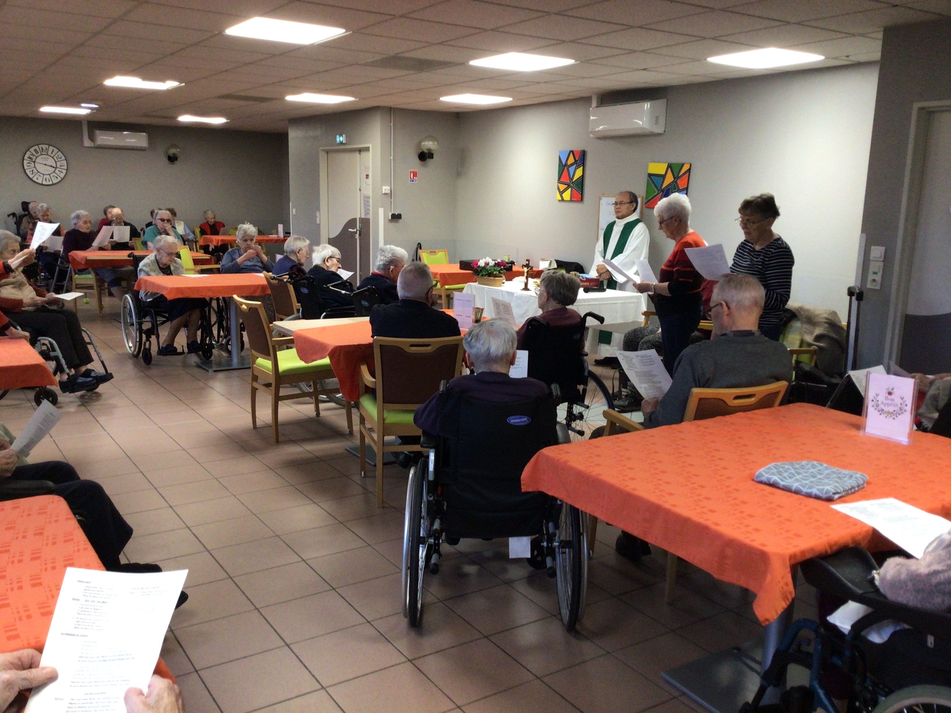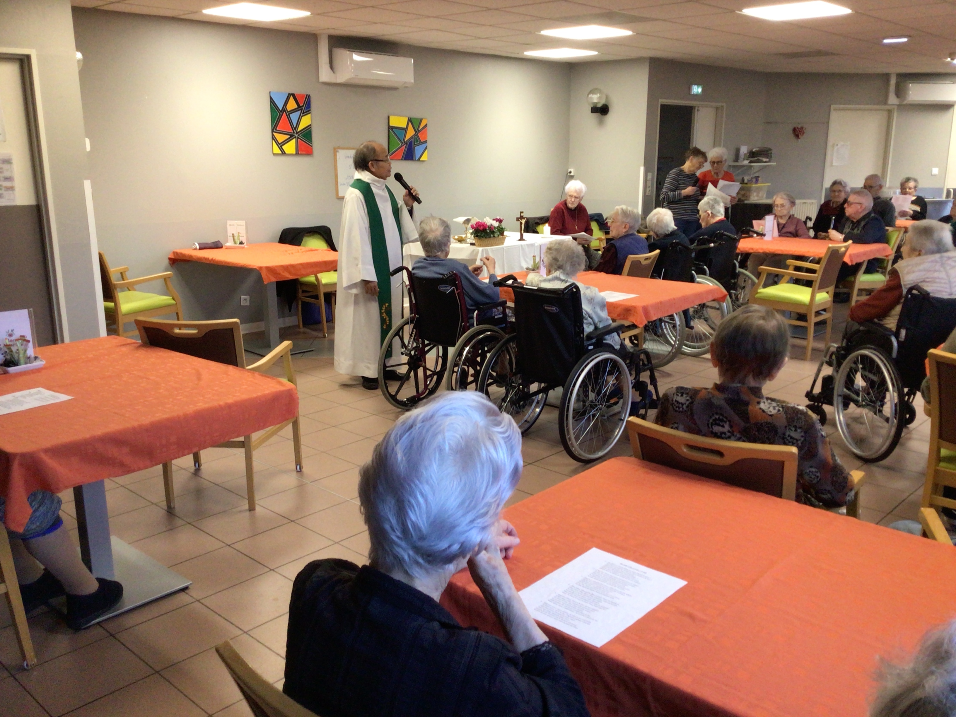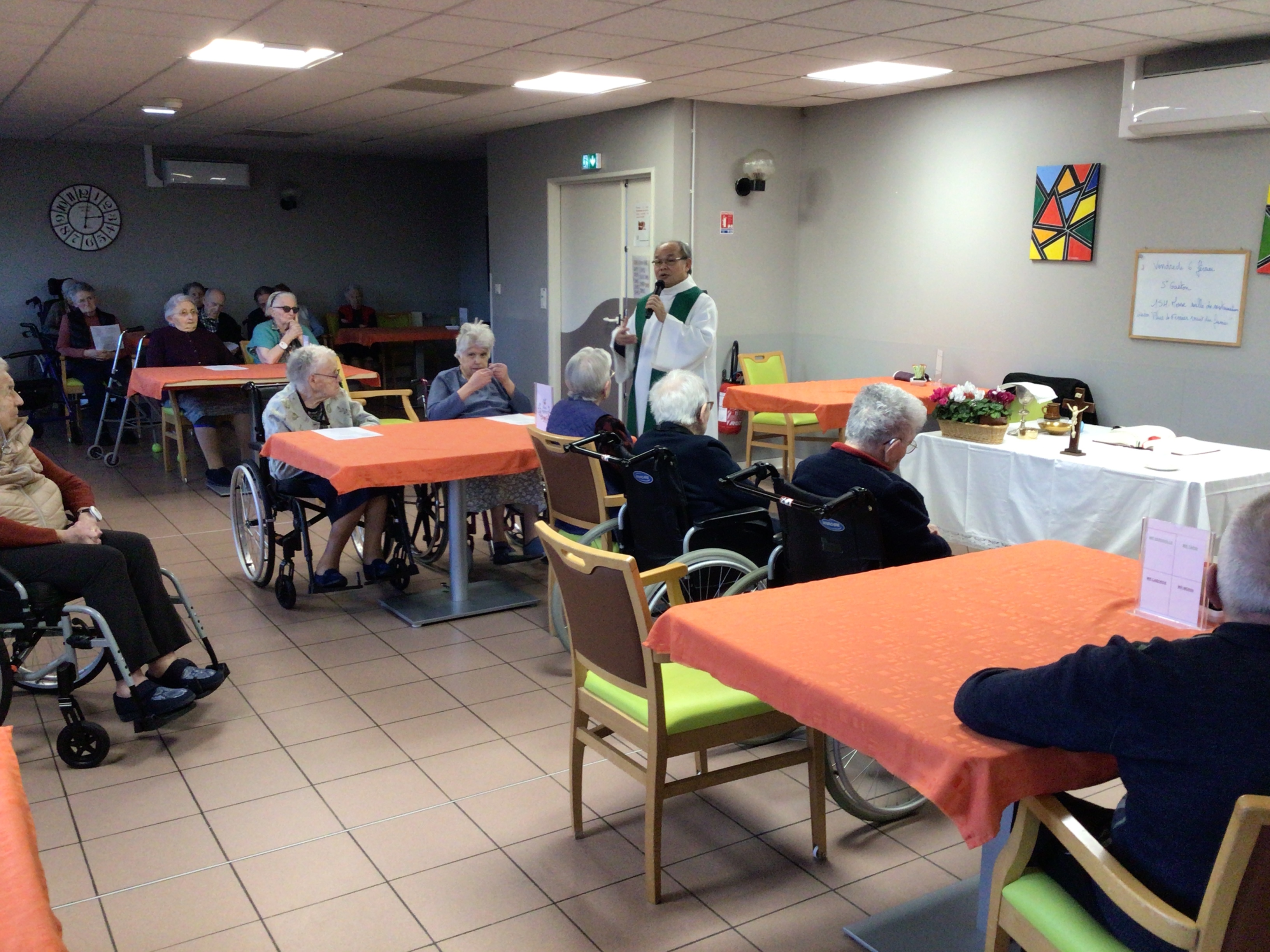 cet après midi, messe célébrée par le Père Minh accompagnée par nos bénévoles de la paroisse. Cette messe est attendue par nos résidents.