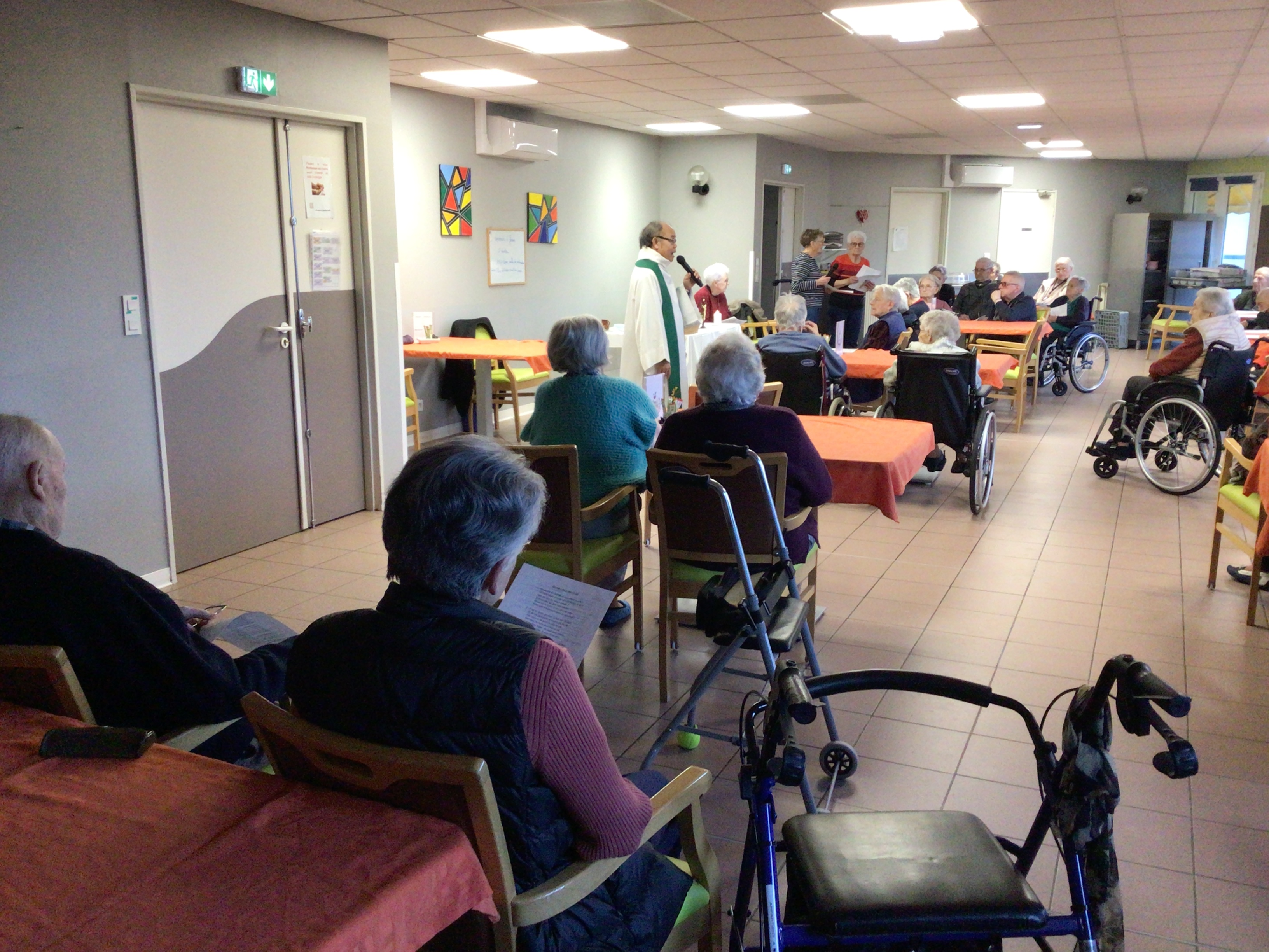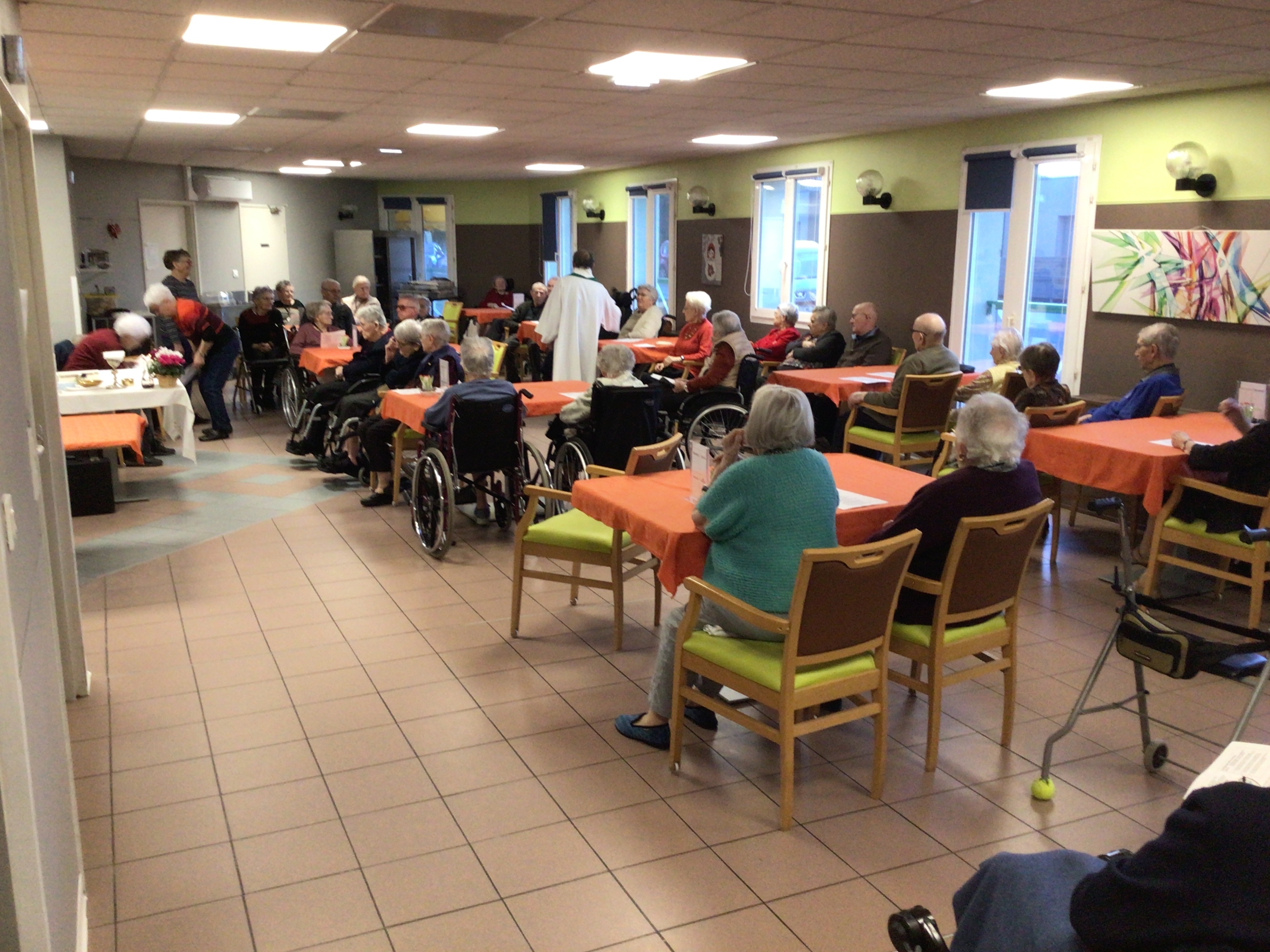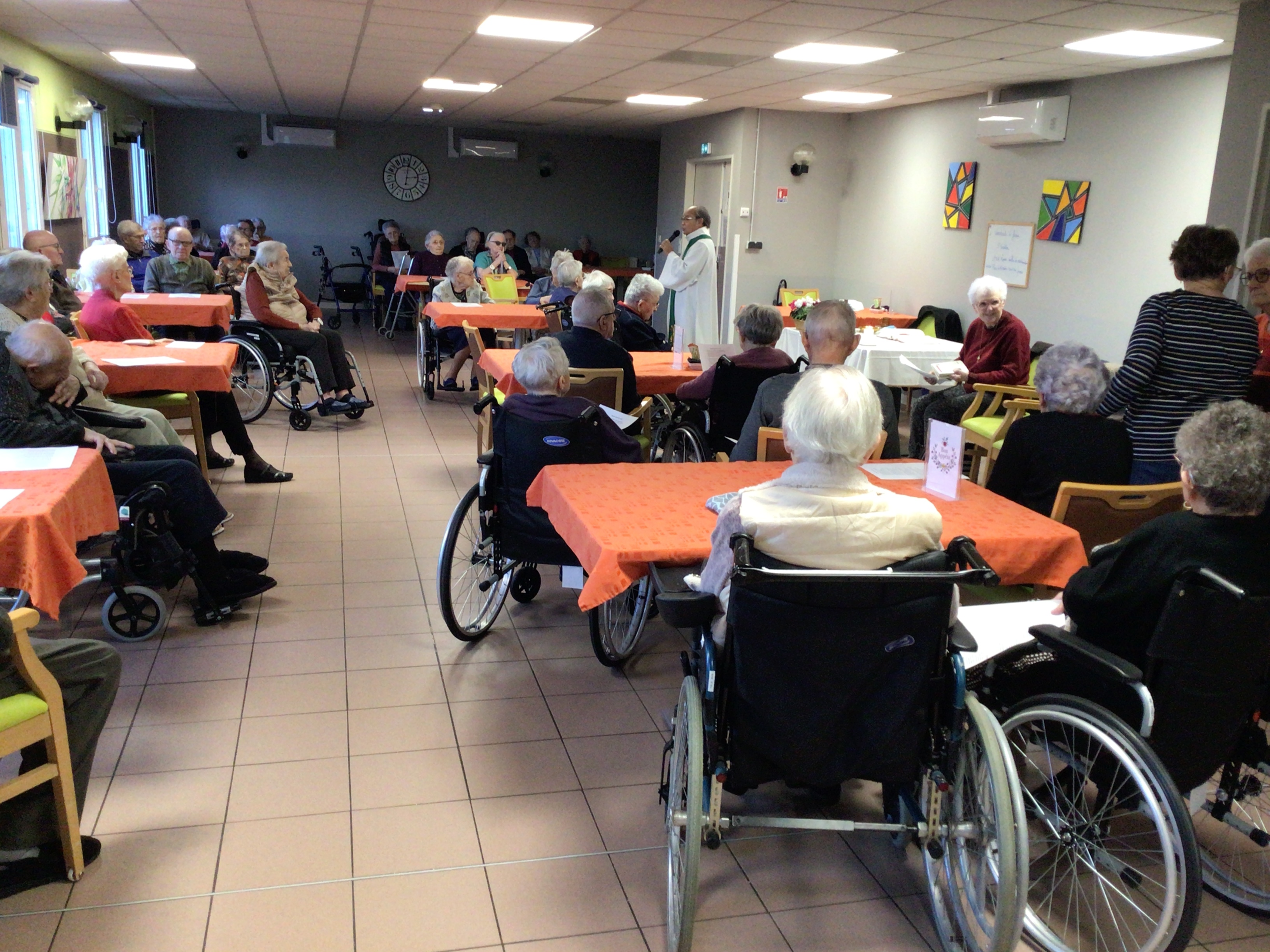 cet après midi, messe célébrée par le Père Minh accompagnée par nos bénévoles de la paroisse. Cette messe est attendue par nos résidents.